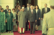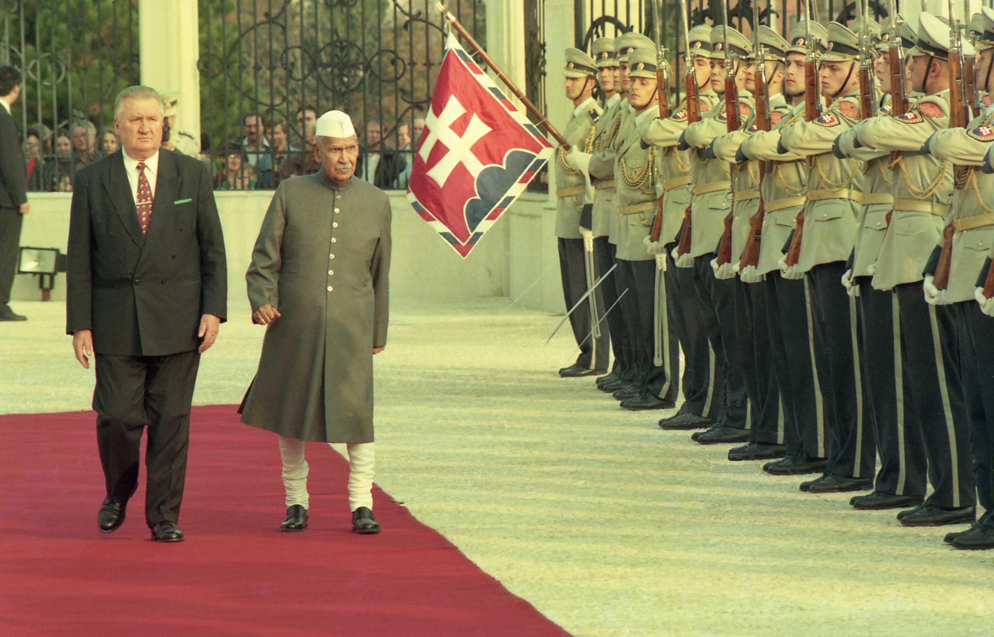 | Caption: | The President of India, Dr. Shankar Dayal Sharma with the President of the Slovak Republic, Mr. Michal Kovac, at farewell ceremony, at Presidential Palace, in Bratislava, Slovakia on October 10, 1996. |