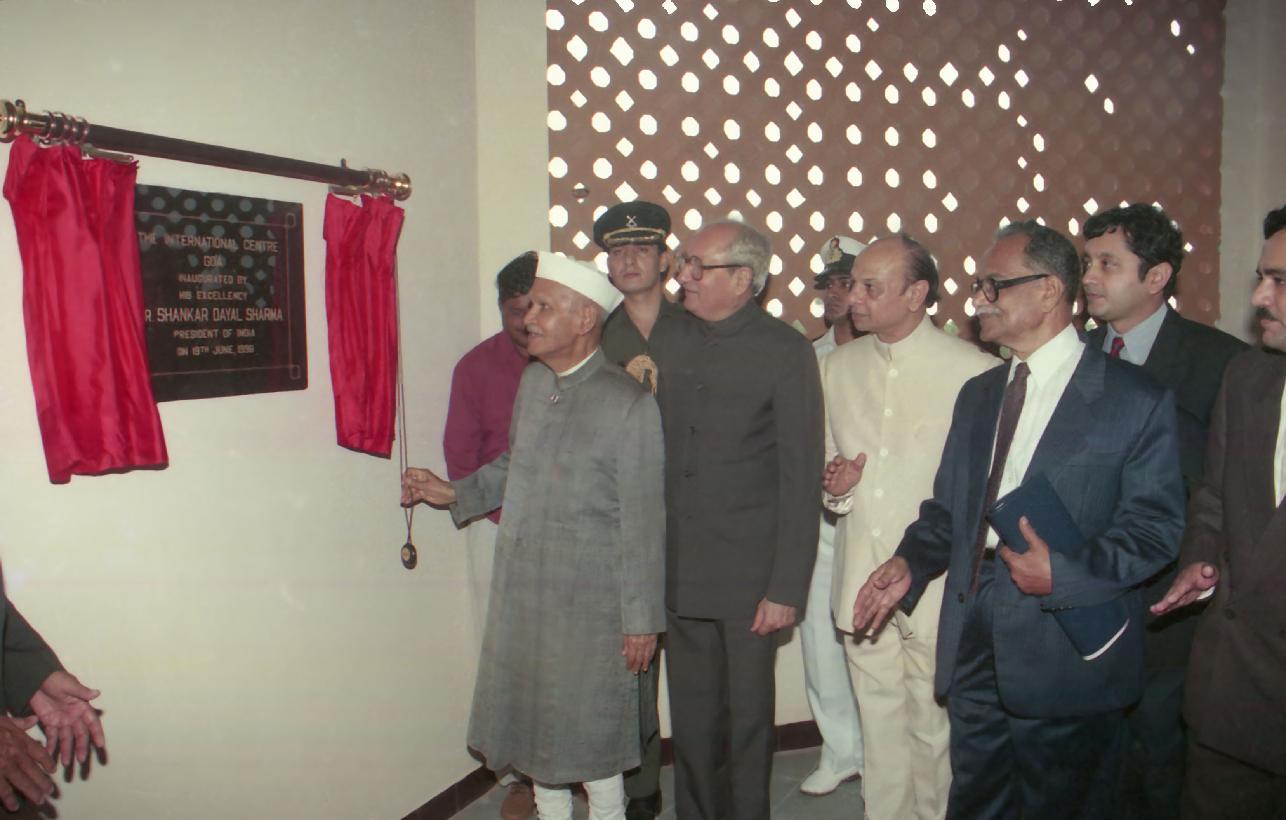 | Caption: | The President of India, Dr. Shankar Dayal Sharma unveiling the plaque to inaugurate the International Centre, at Panjim on June 18, 1996. |