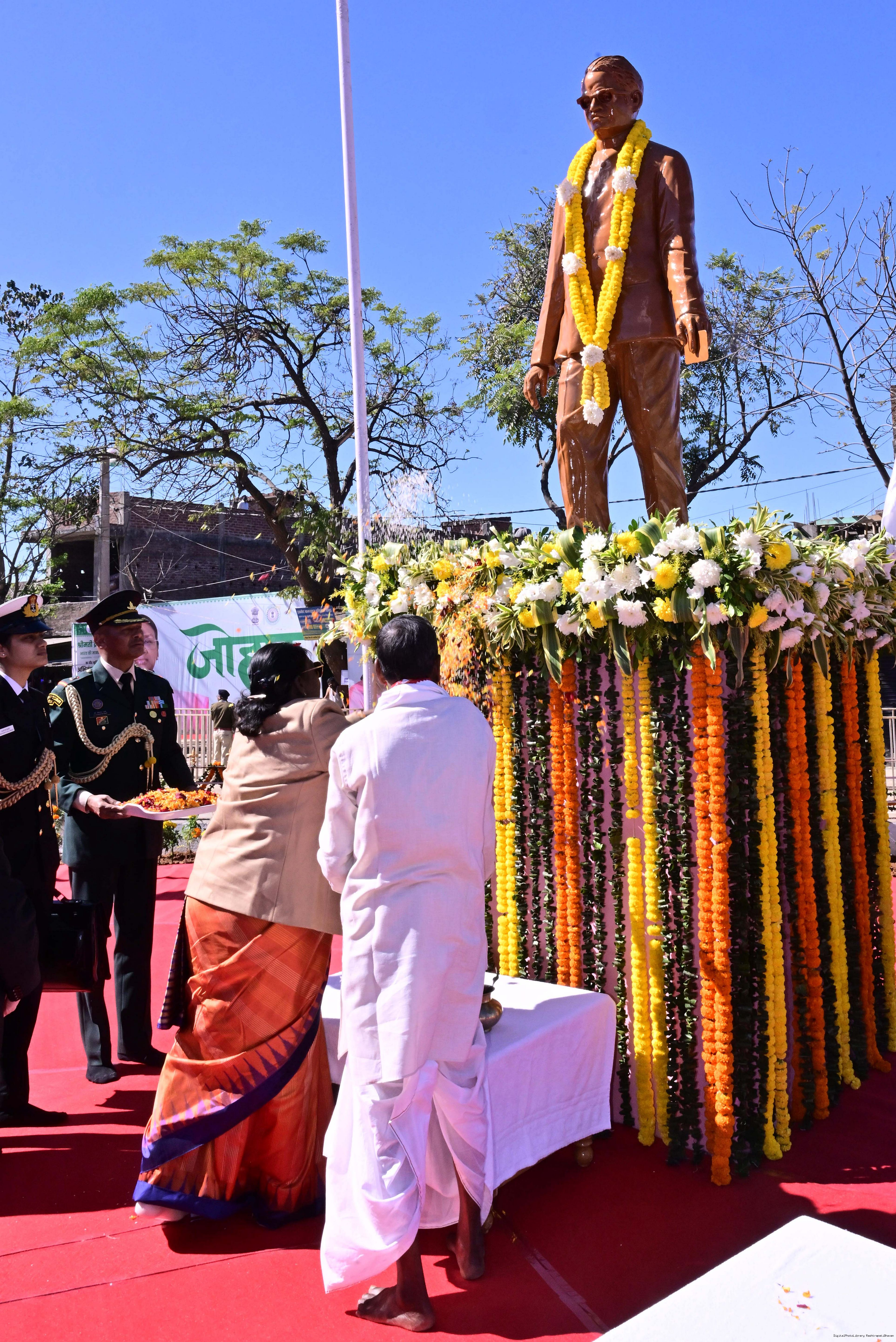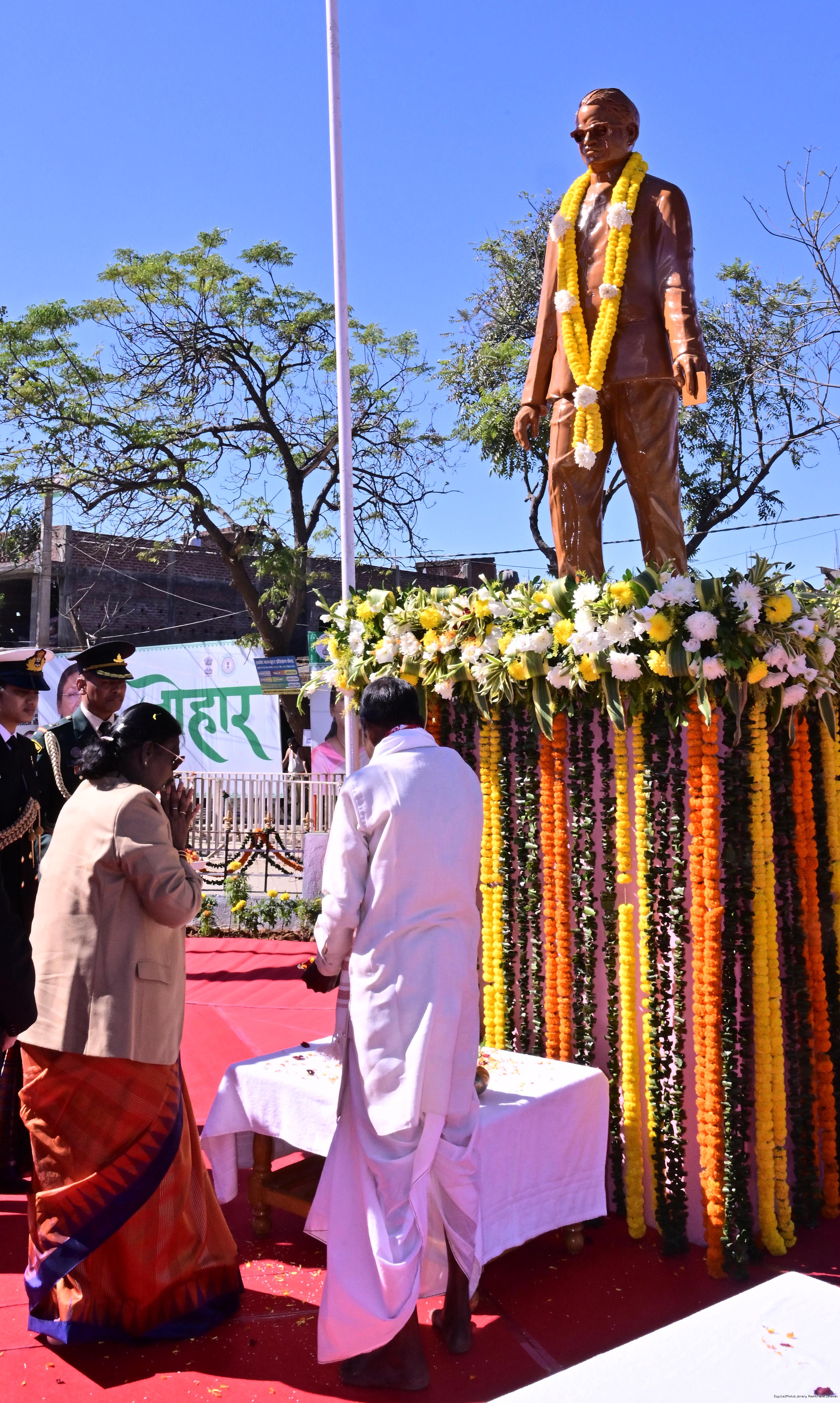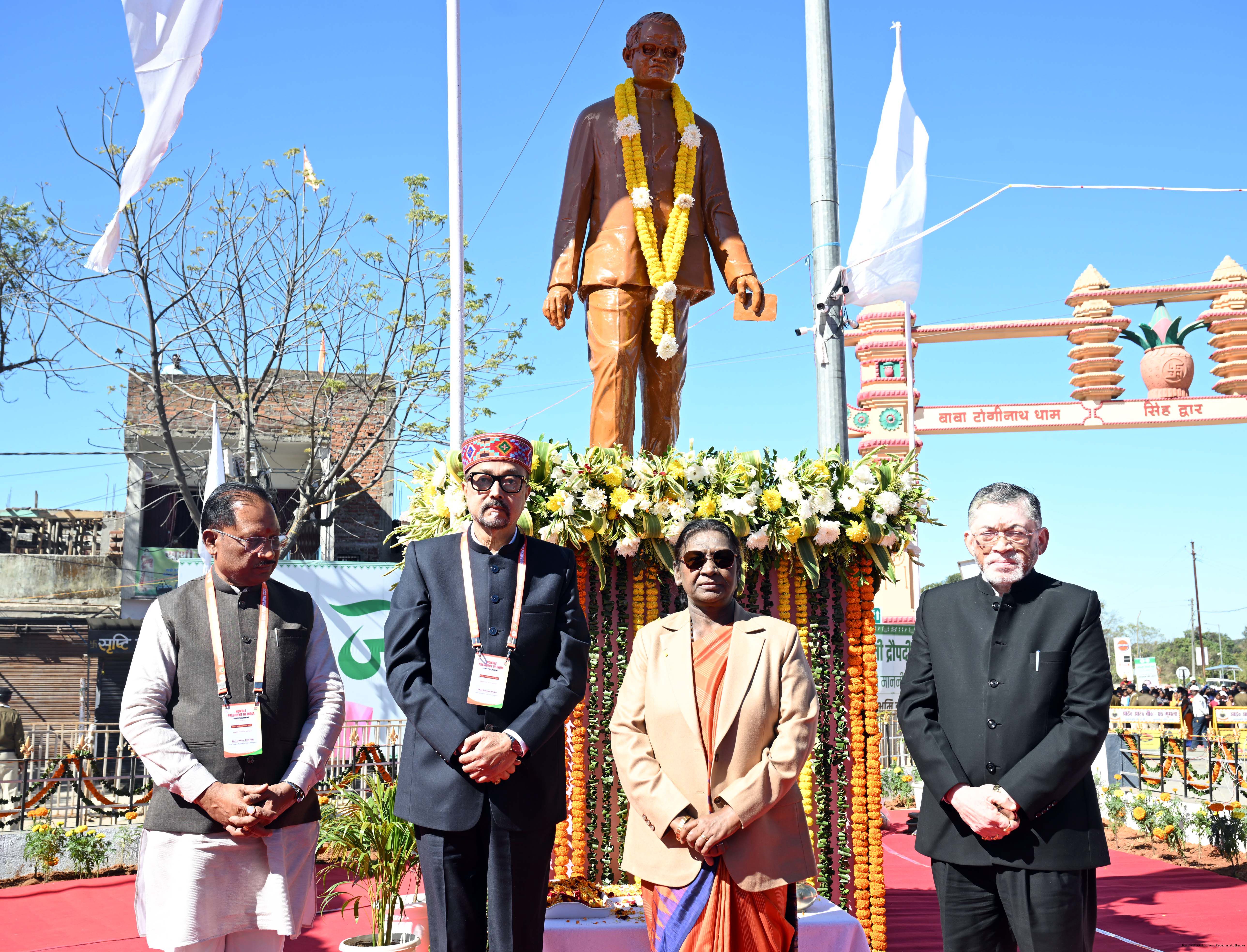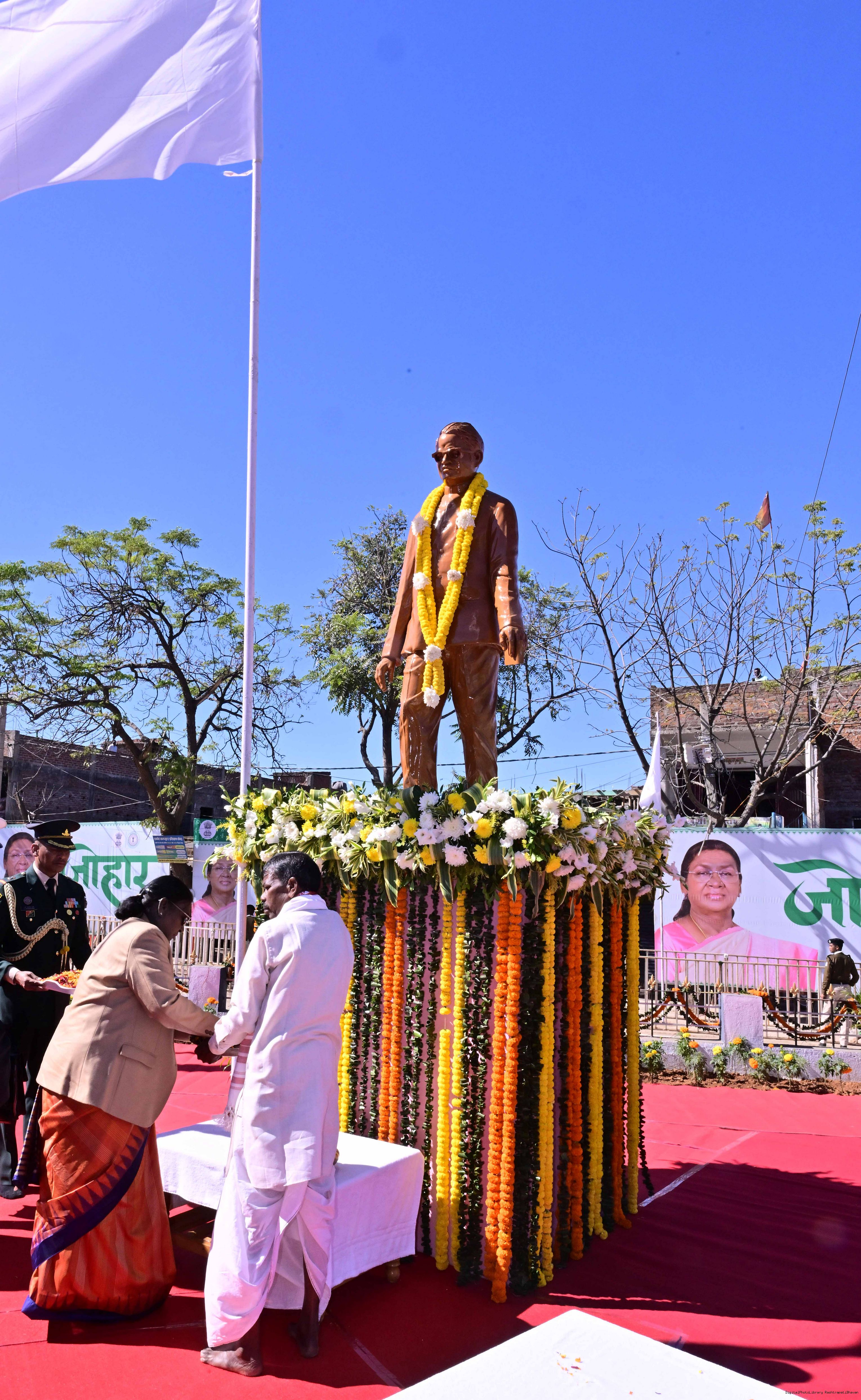 | Caption: | The President of India, Smt. Droupadi Murmu paid floral tributes at the Statu of late Shri Kartik Oraon at Gumla, Jharkhand on December 30, 2025. |
