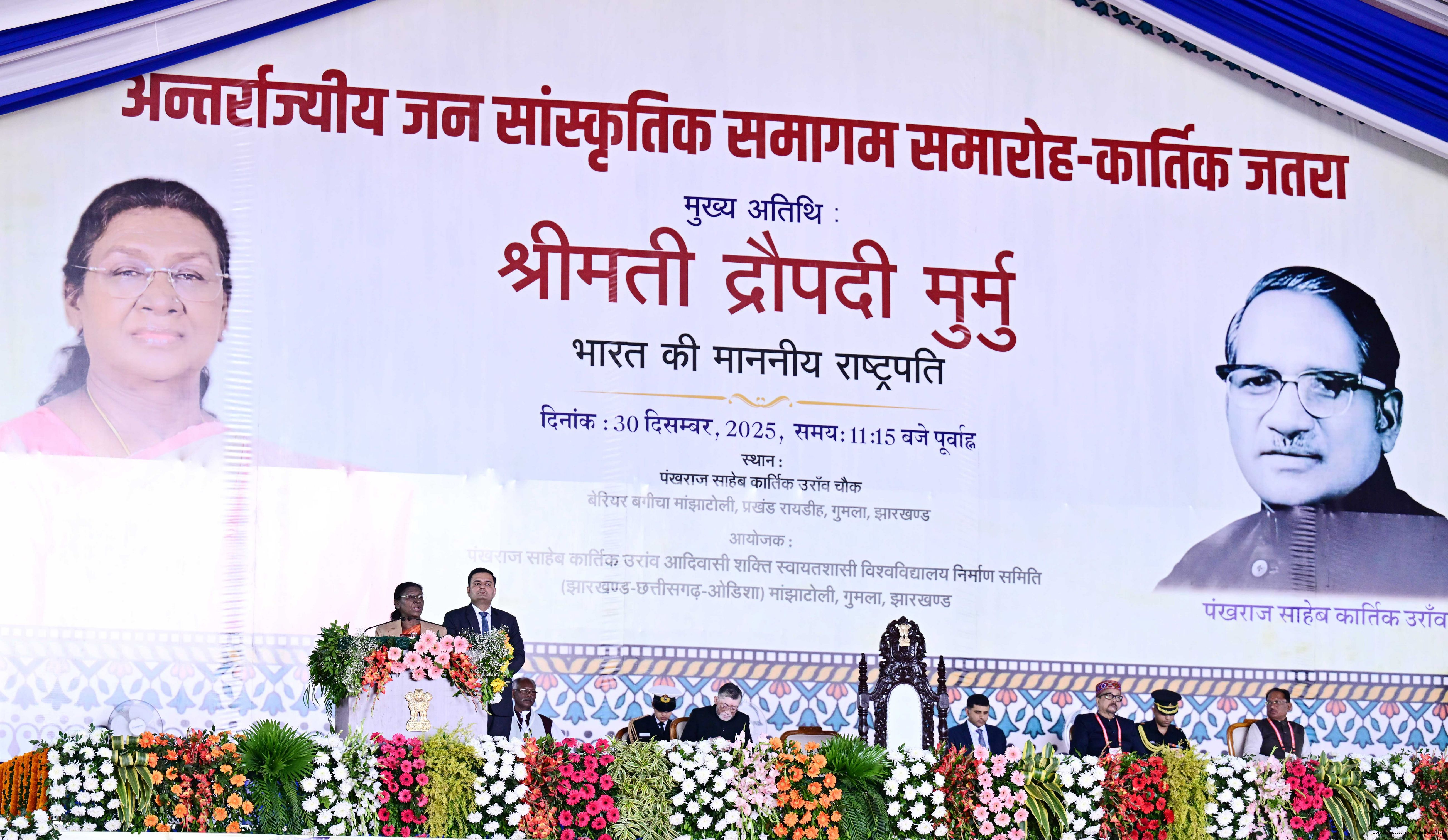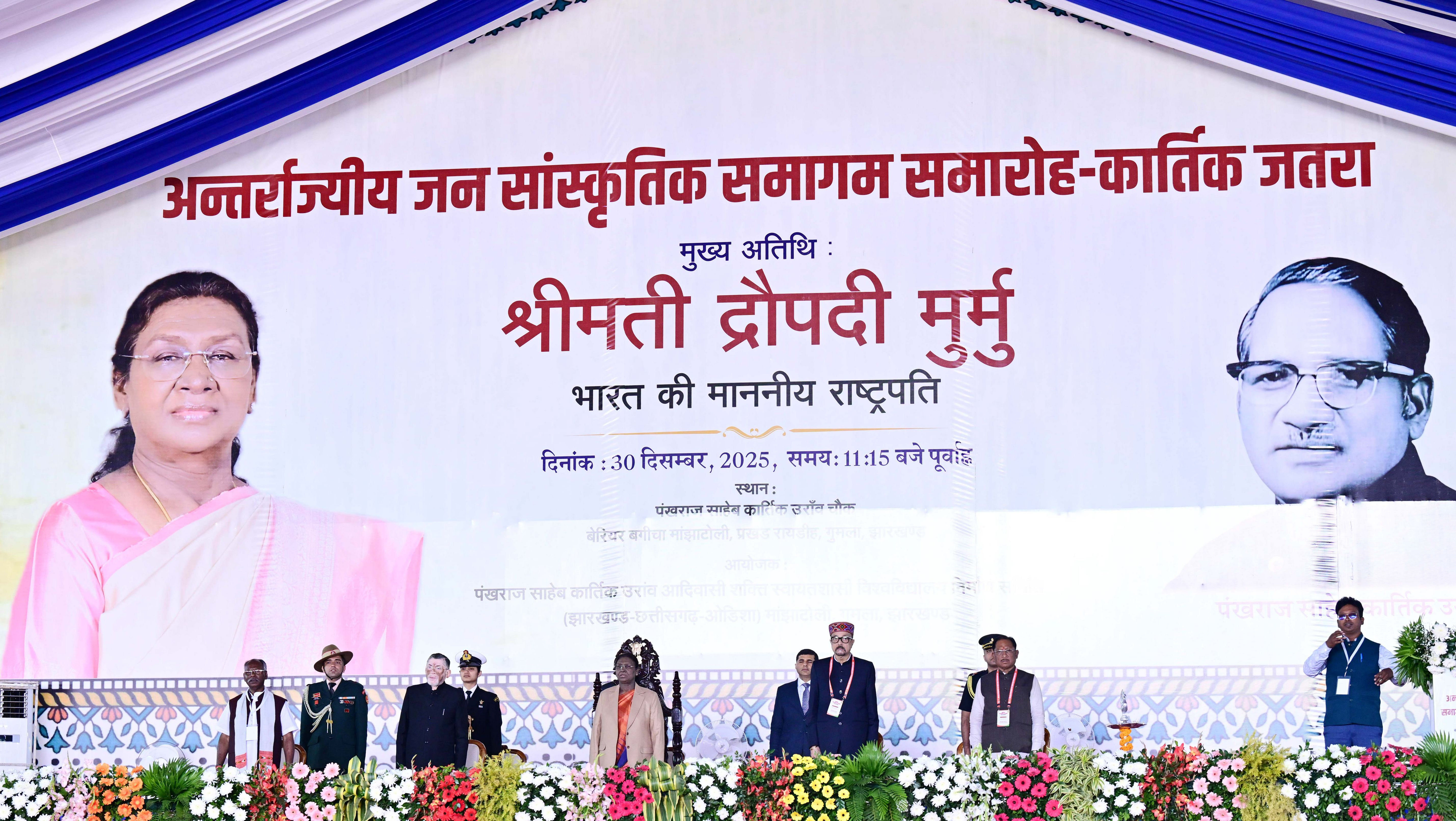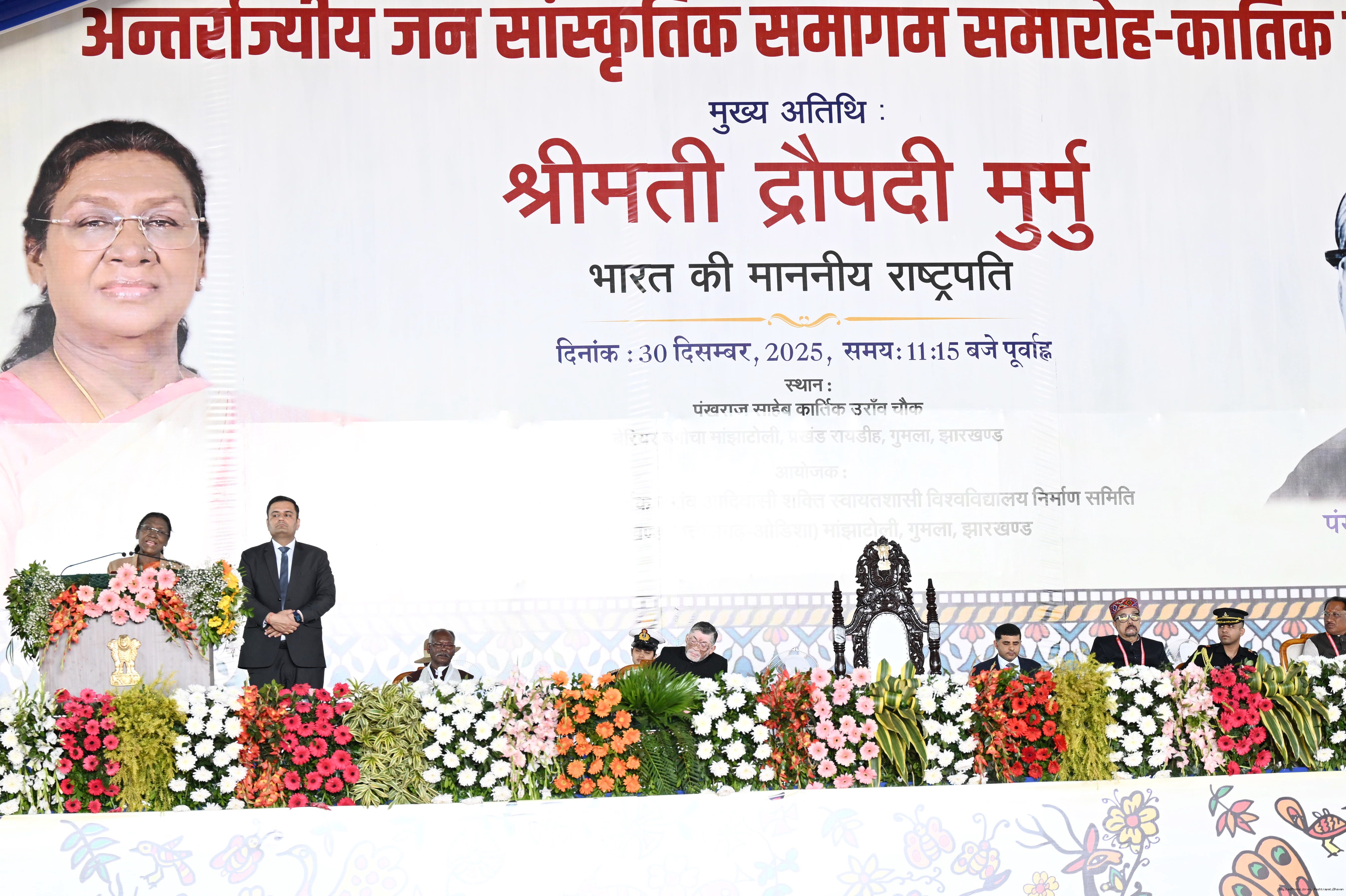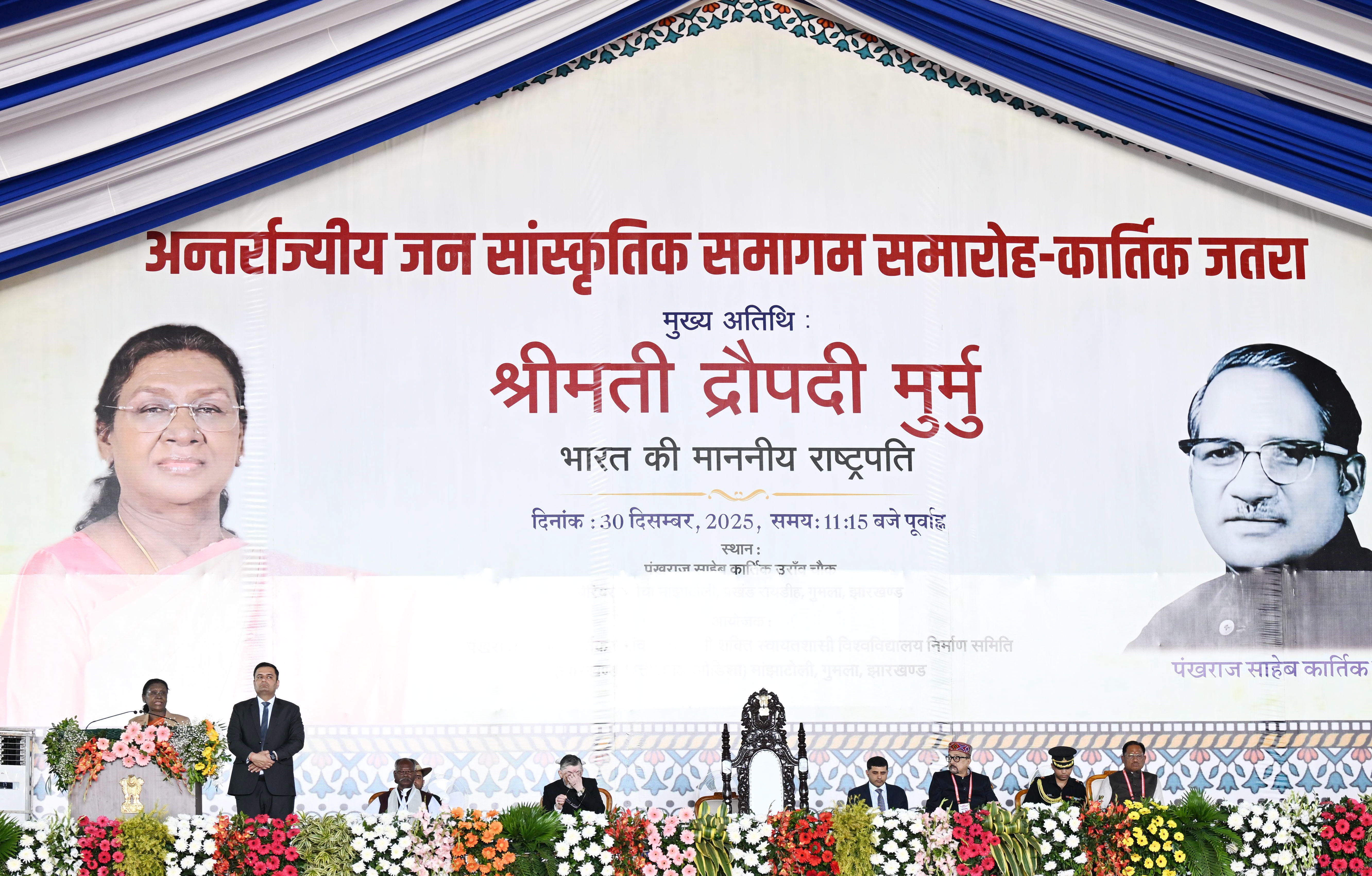 | Caption: | The President of India, Smt. Droupadi Murmu graced Antarrajyiy Jansanskritik Samagam Samaroh – Kartik Jatra at Gumla, Jharkhand on December 30, 2025. |