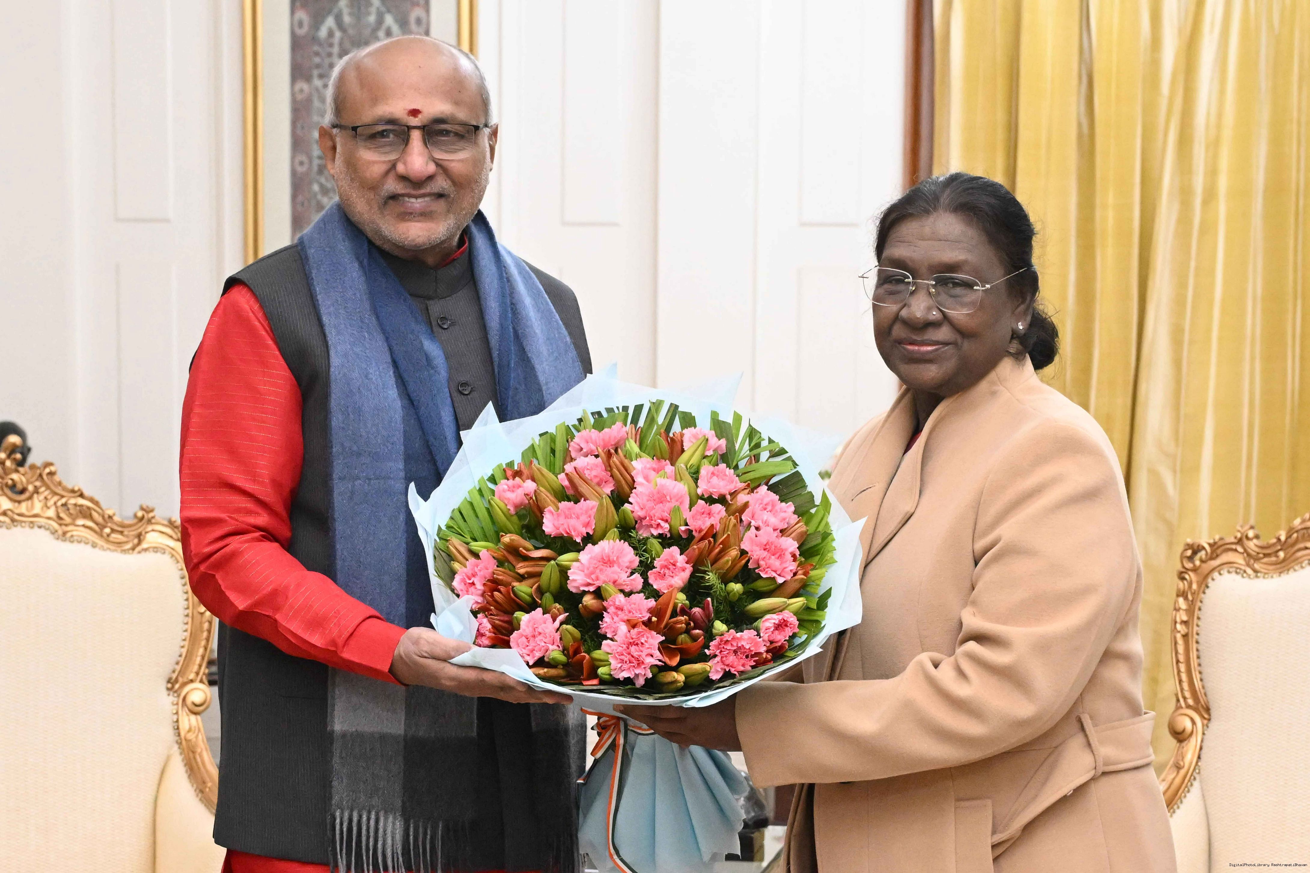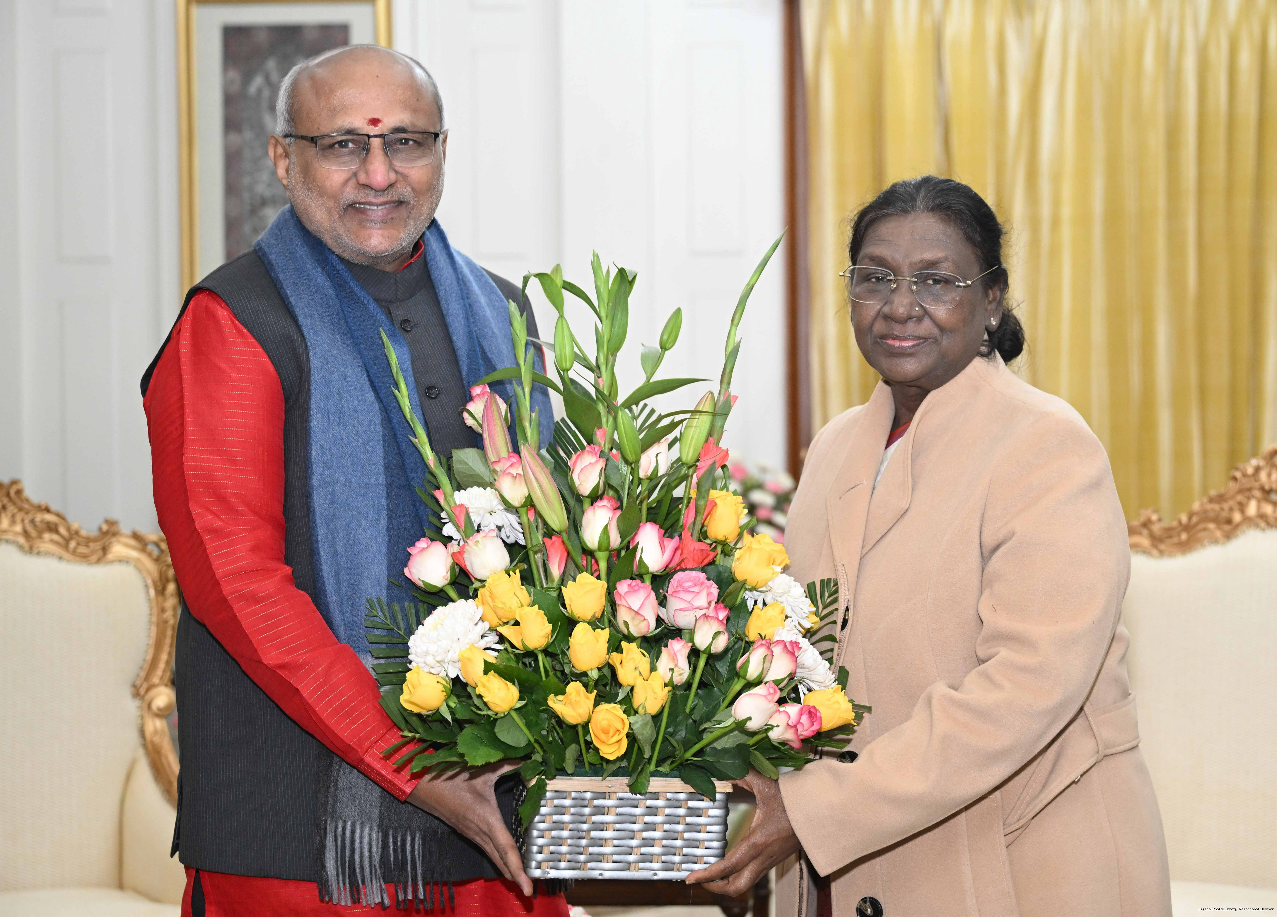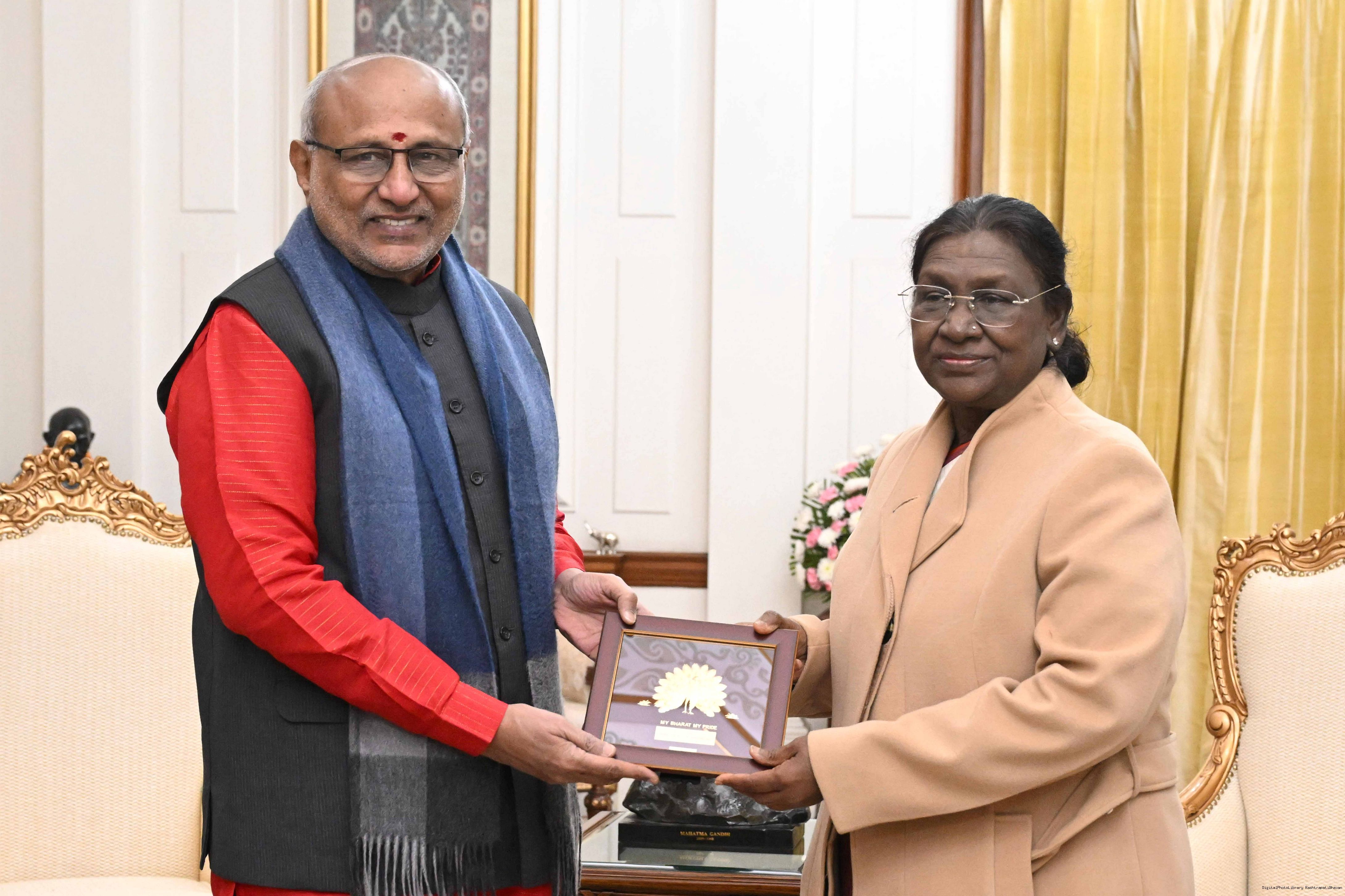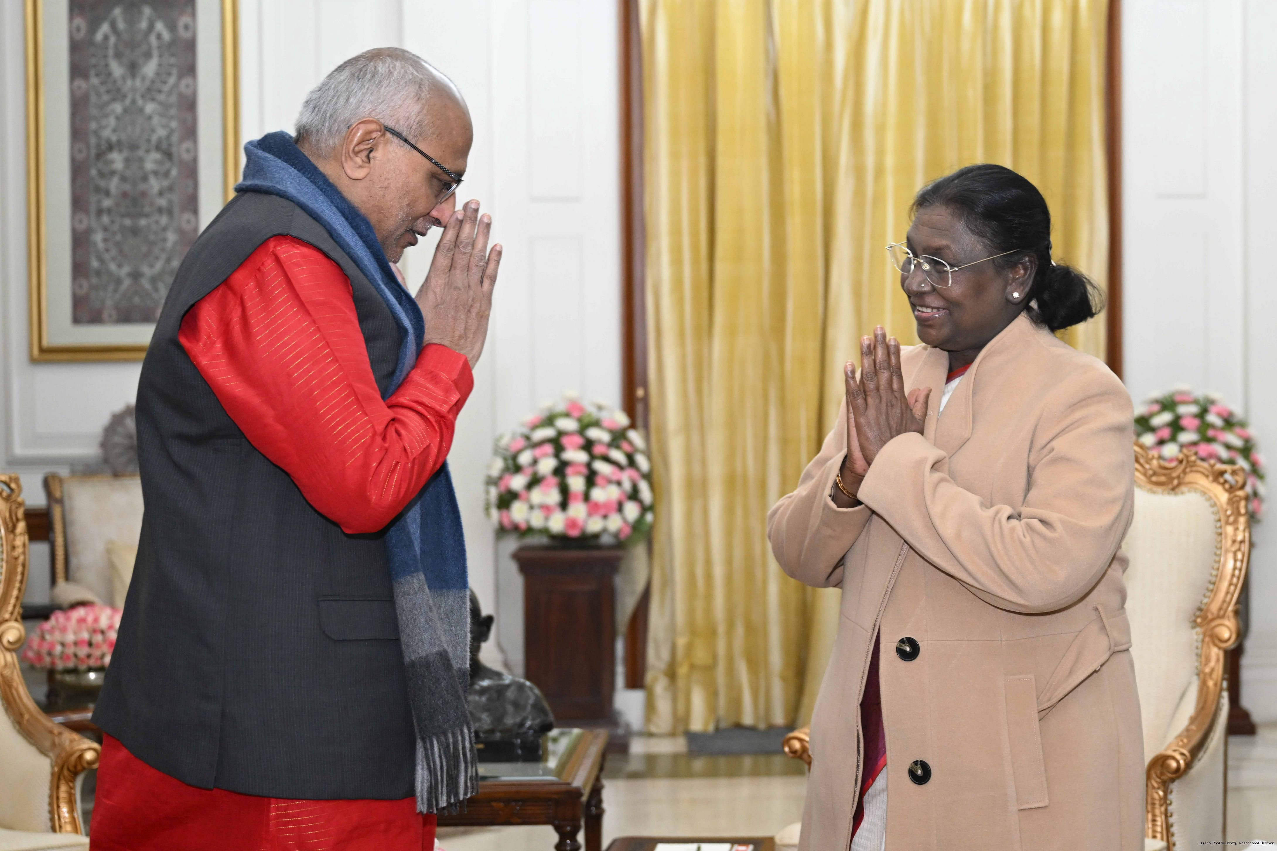 | Caption: | Shri C. P. Radhakrishnan, Vice President of India called on the President of India, Smt. Droupadi Murmu at Rashtrapati Bhavan and exchanged New Year greetings on January 1, 2026. |