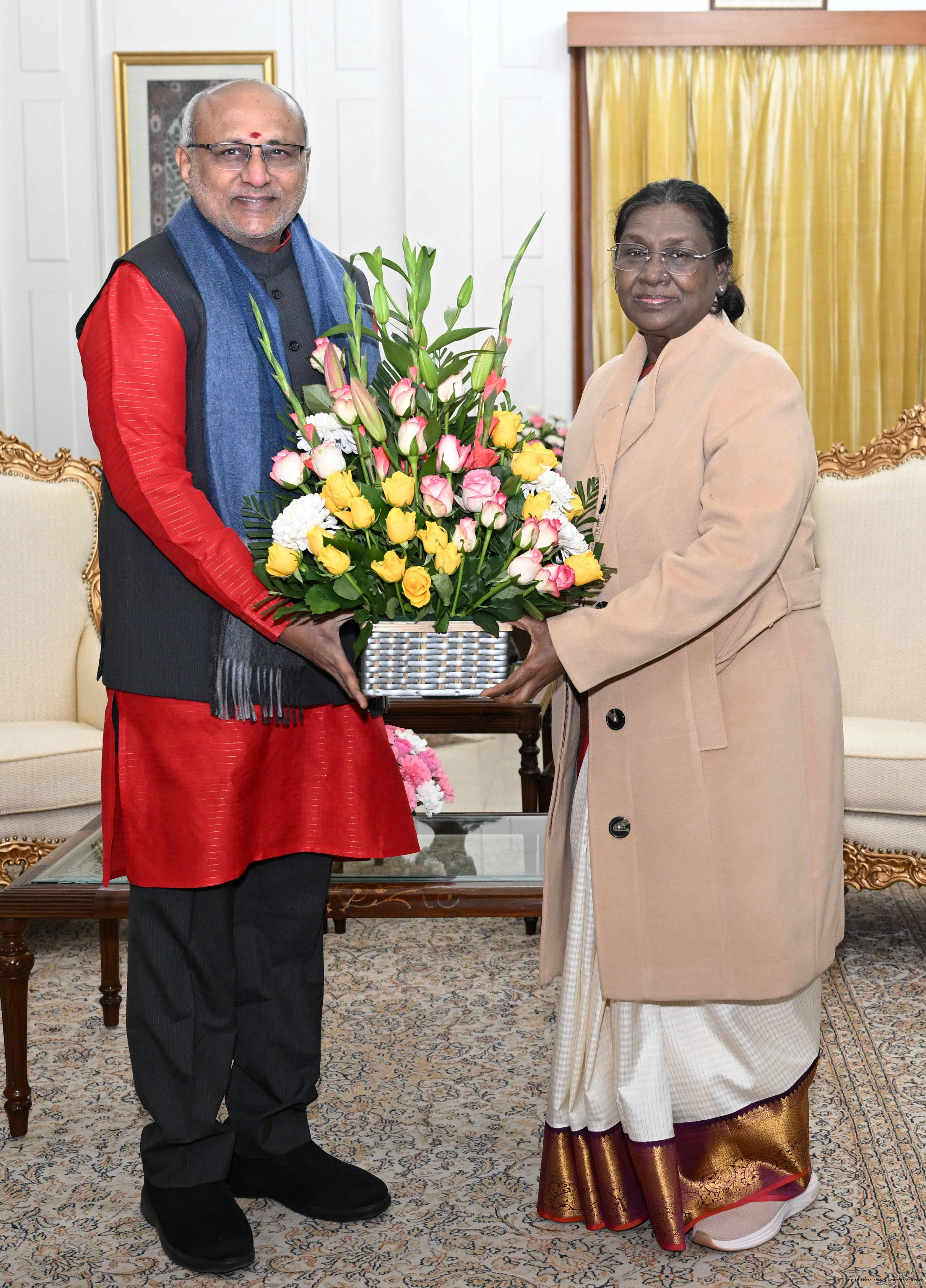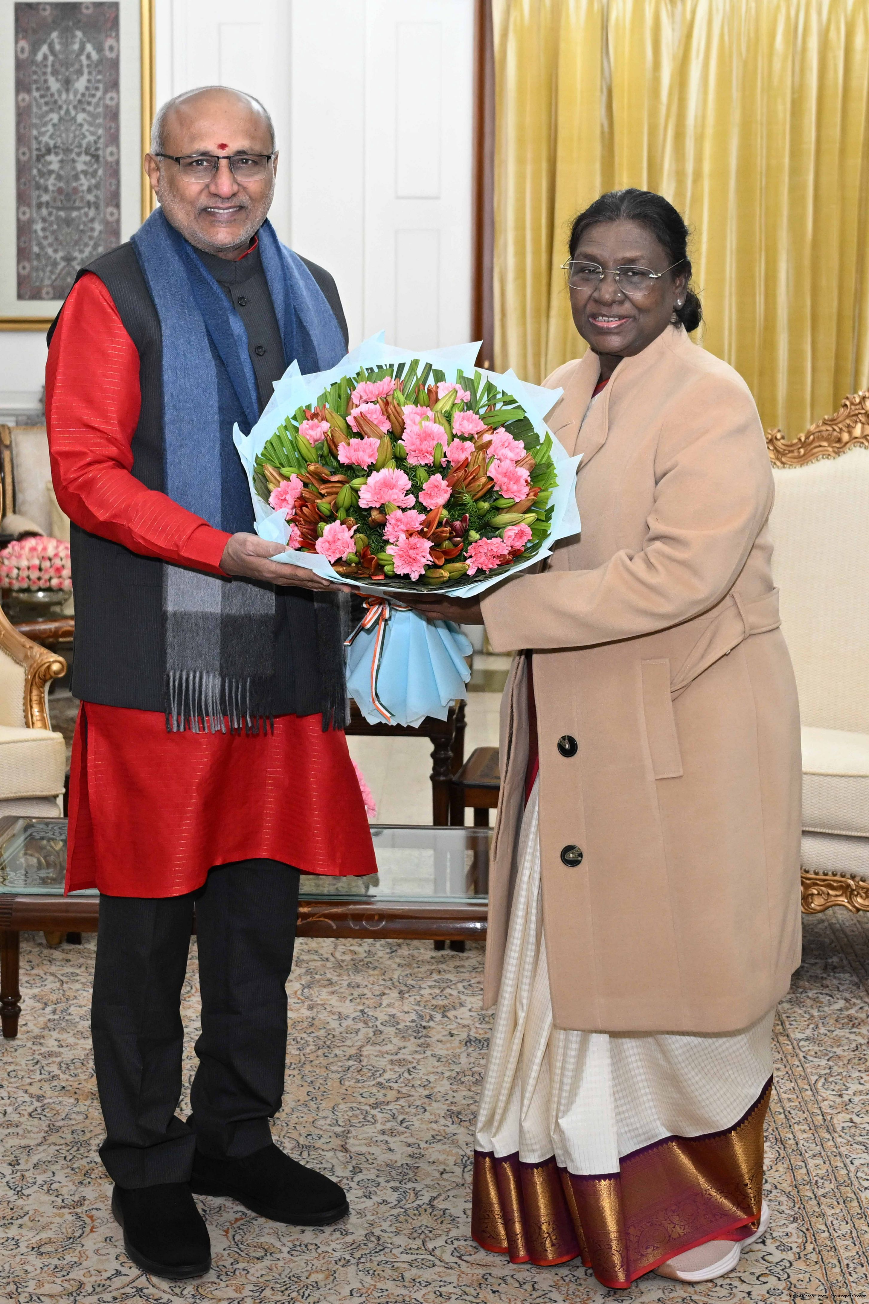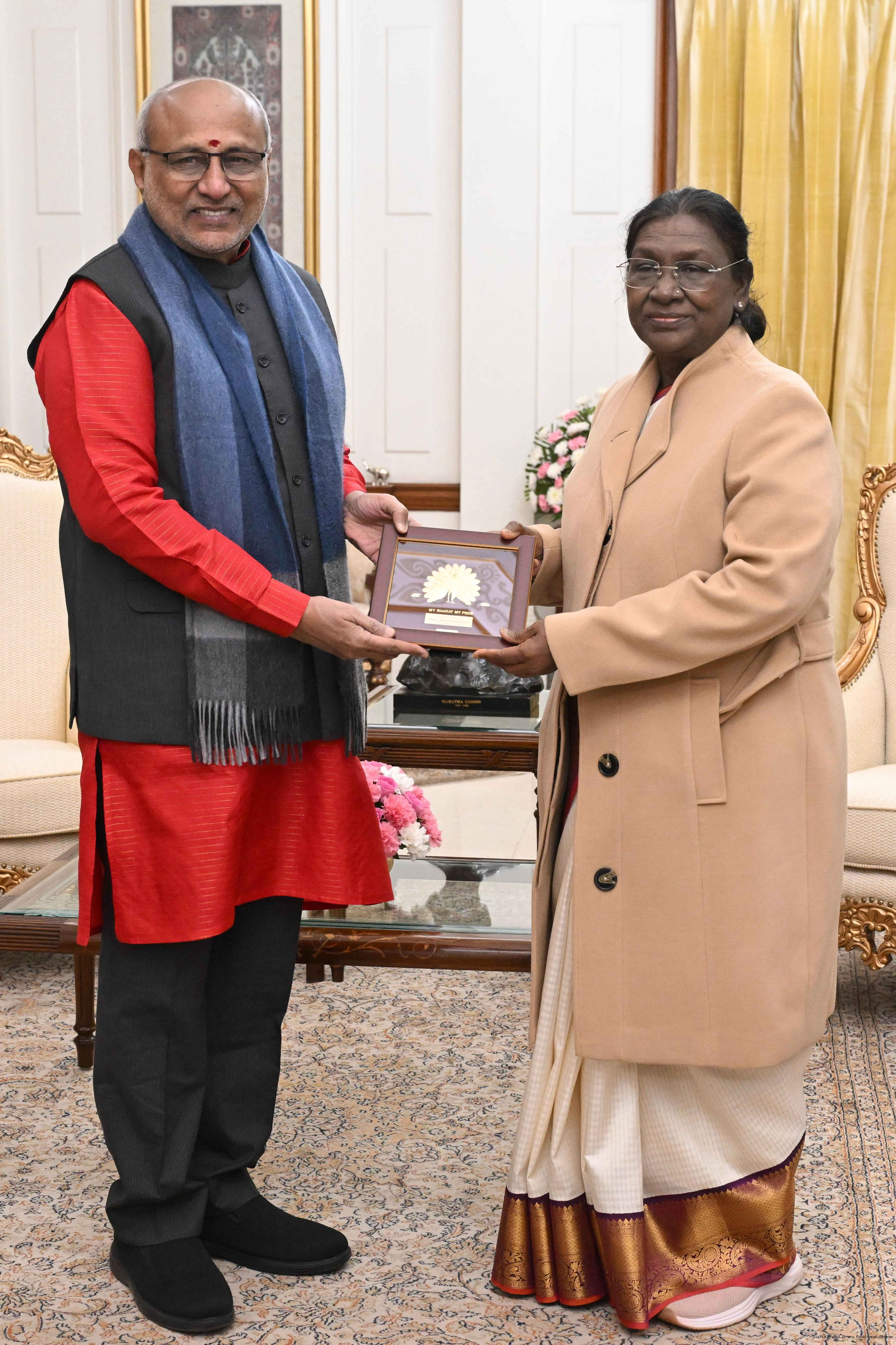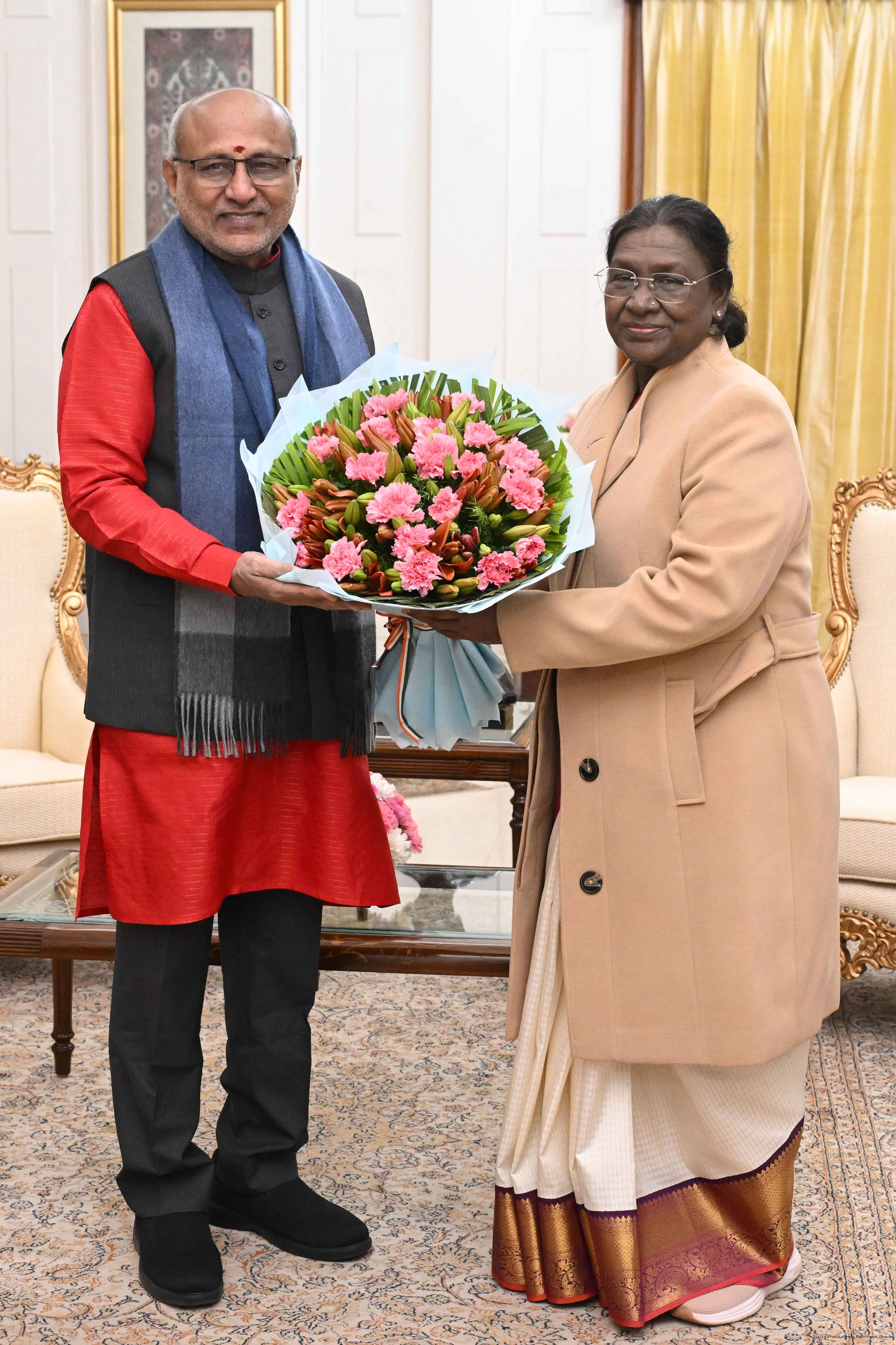 | Caption: | Shri C. P. Radhakrishnan, Vice President of India called on the President of India, Smt. Droupadi Murmu at Rashtrapati Bhavan and exchanged New Year greetings on January 1, 2026. |