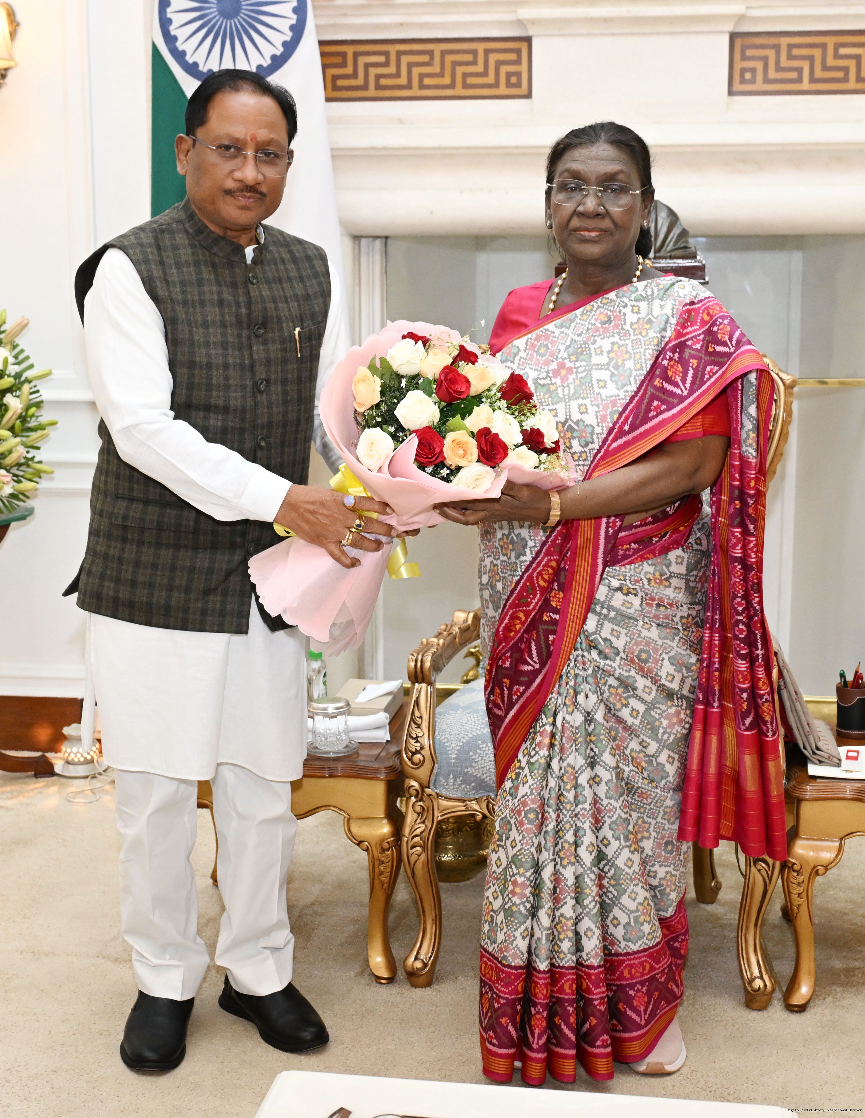 | Caption: | The Chief Minister of Chhattisgarh, Shri Vishnu Deo Sai called on the President of India, Smt Droupadi Murmu at Rashtrapati Bhavan on January 3, 2025. |