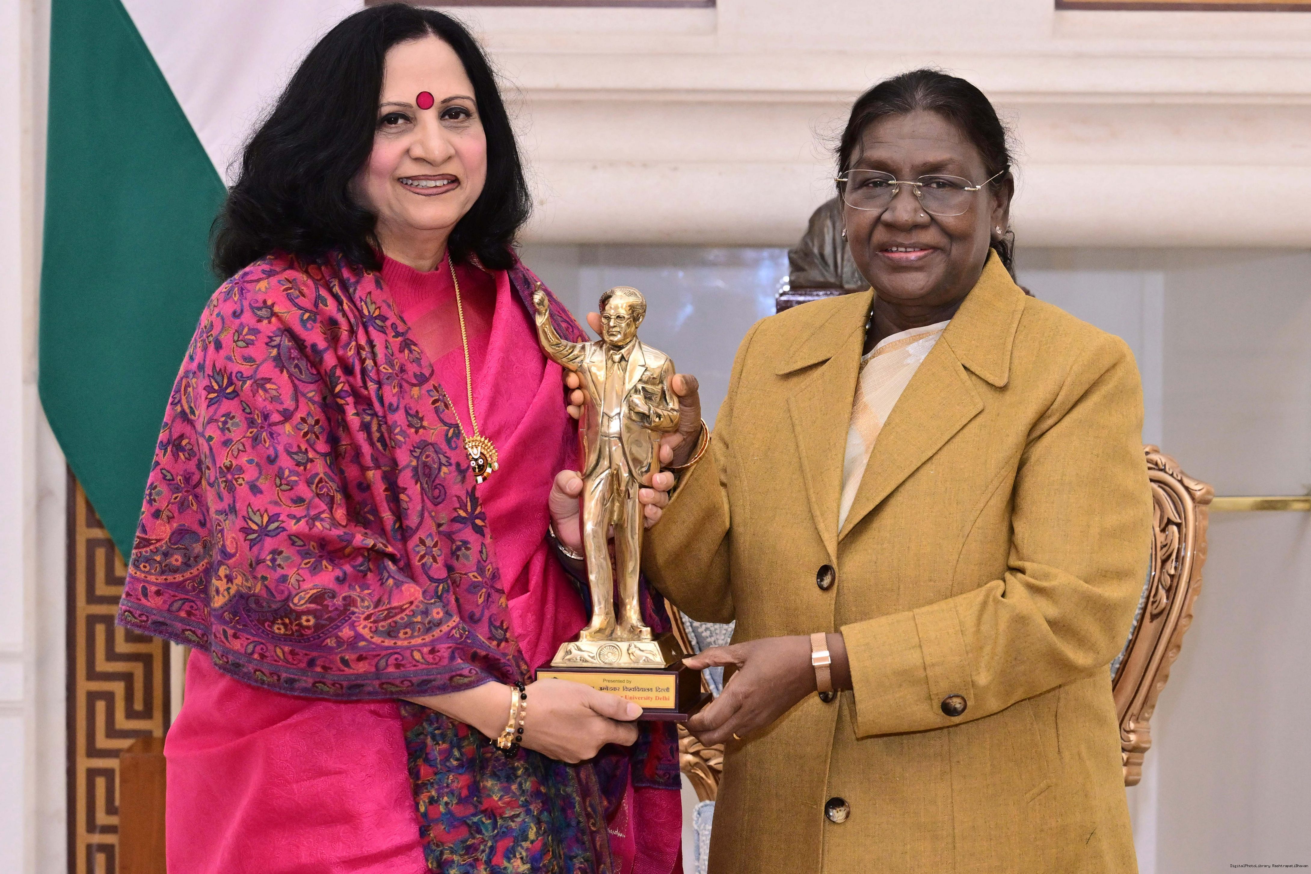 | Caption: | Prof. Anu Singh Lather, VC, Dr. BR Ambedkar University Delhi meeting with the President of India, Smt. Droupadi Murmu at Rashtrapati Bhavan on January 6, 2026. |