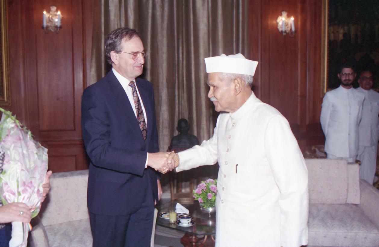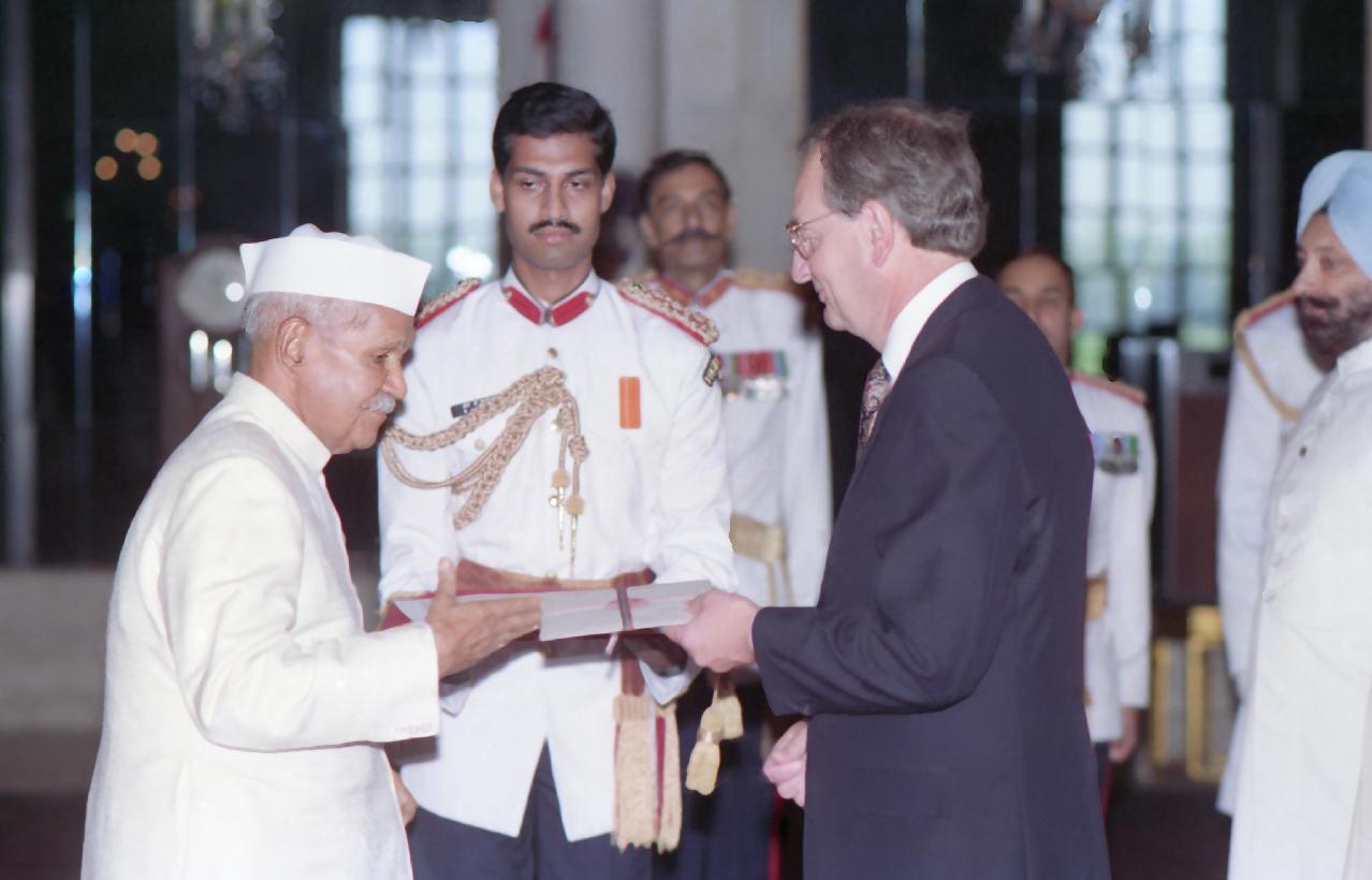 | Caption: | The High Commissioner-Designate of Canada to India, H.E. Mr. Stanley E. Gooch presenting his credentials to the President of India, Dr. Shankar Dayal Sharma at Rashtrapati Bhavan in New Delhi on October 04, 1994. |
