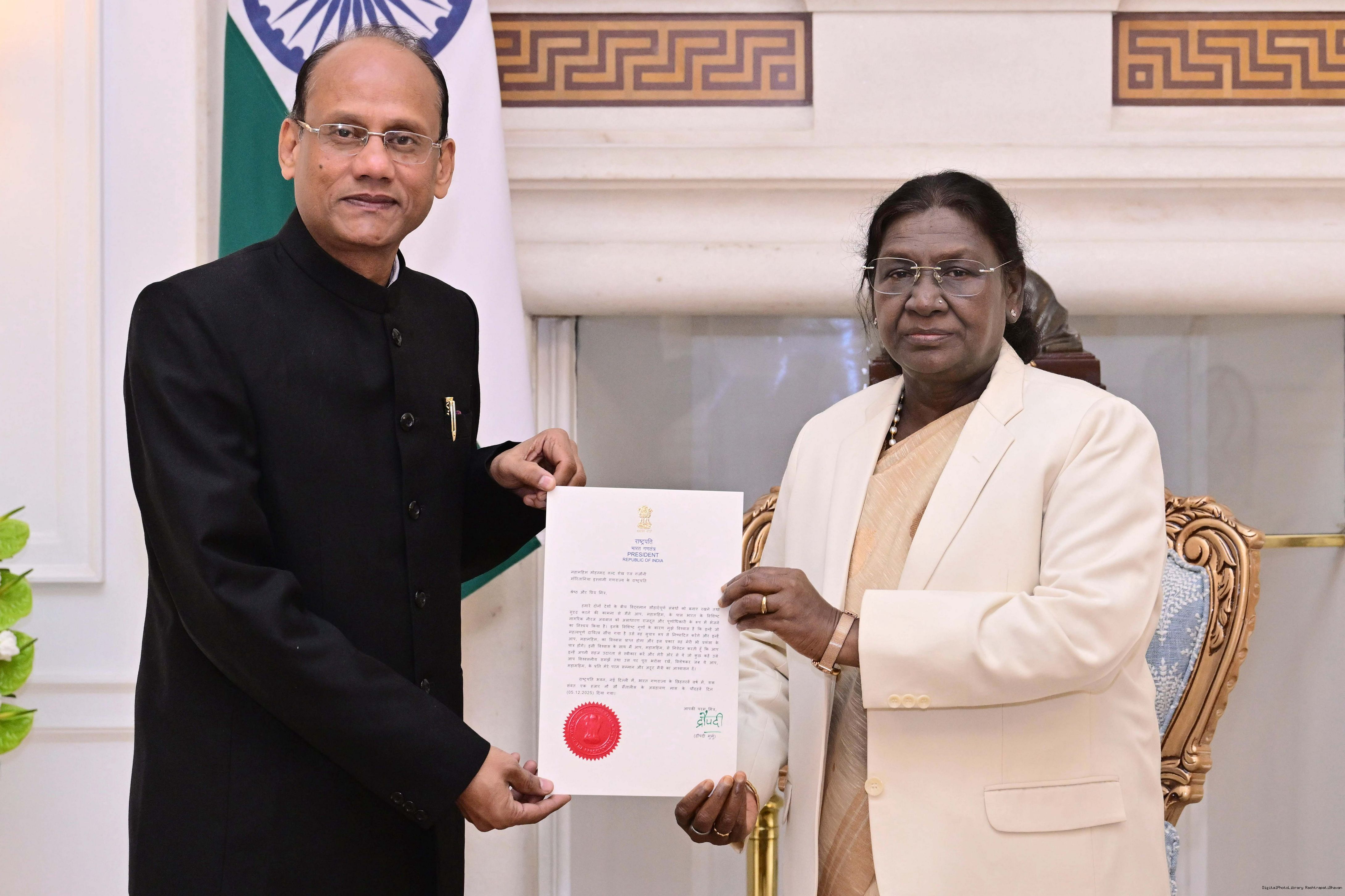 | Caption: | The Ambassador-designate to the Islamic Republic of Mauritania, Shri Neeraj Agrawal meeting with the President of India, Smt Droupadi Murmu at Rashtrapati Bhavan on January 7, 2026. |