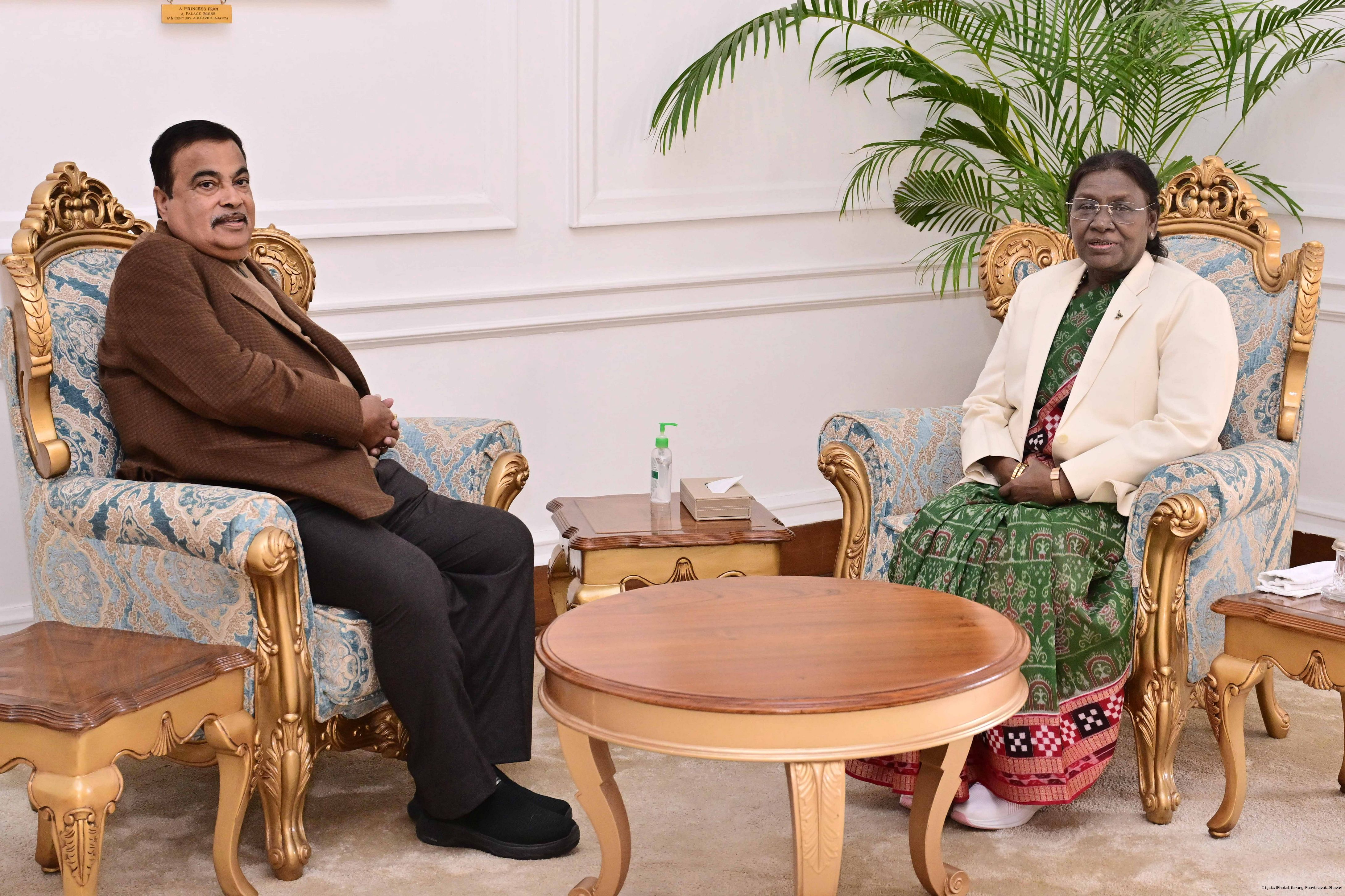 | Caption: | Shri Nitin Jairam Gadkari, Minister of Road Transport Highways, Govt of India called on the President of India, Smt Droupadi Murmu at Rashtrapati Bhavan on January 7, 2026. |