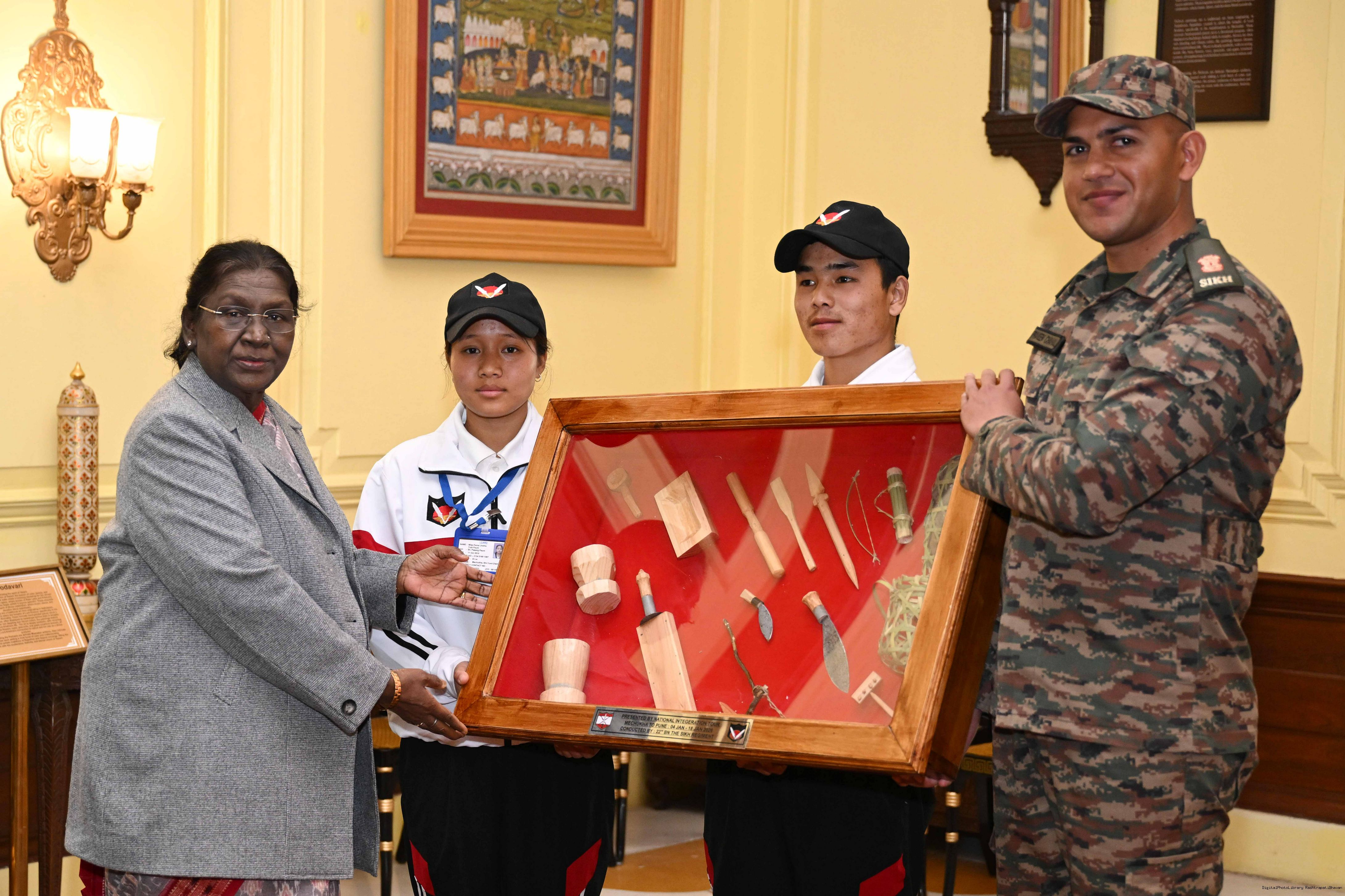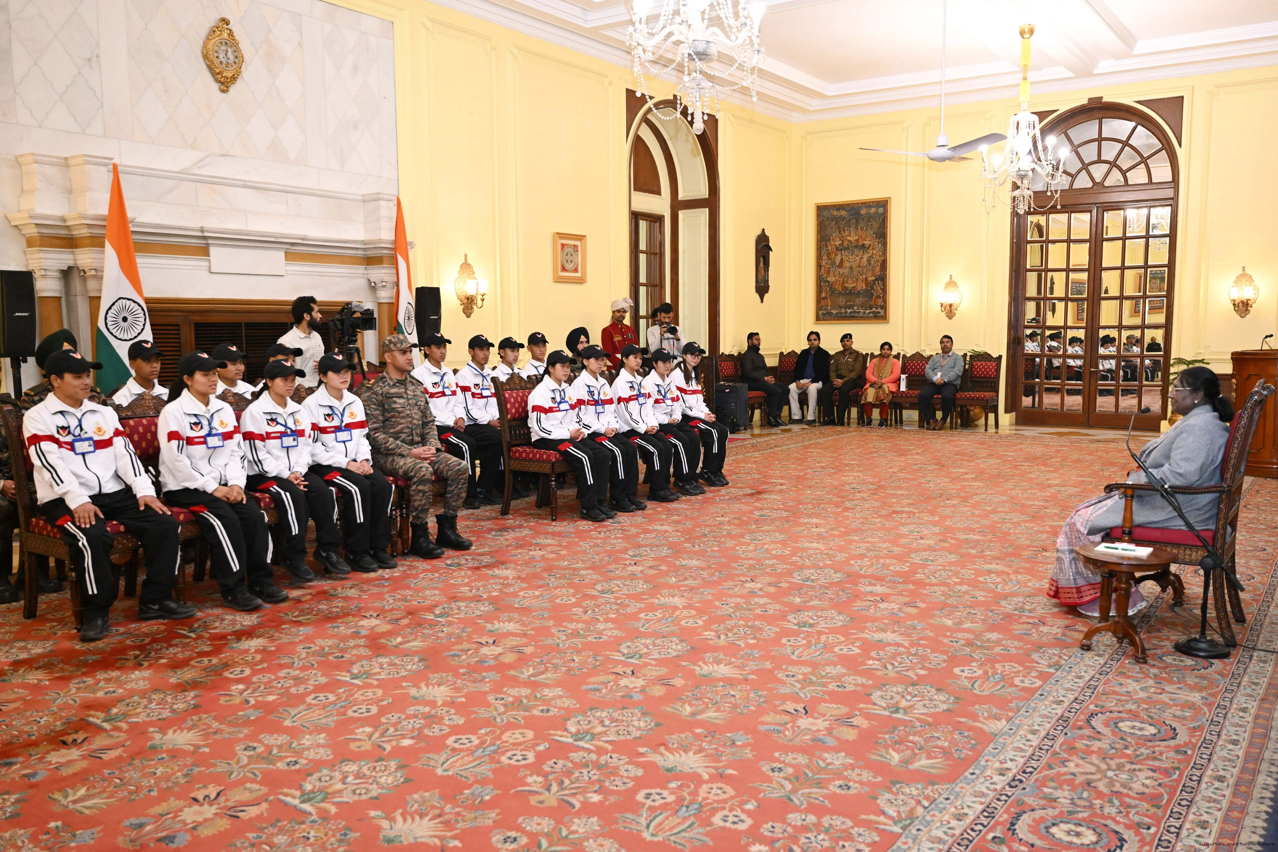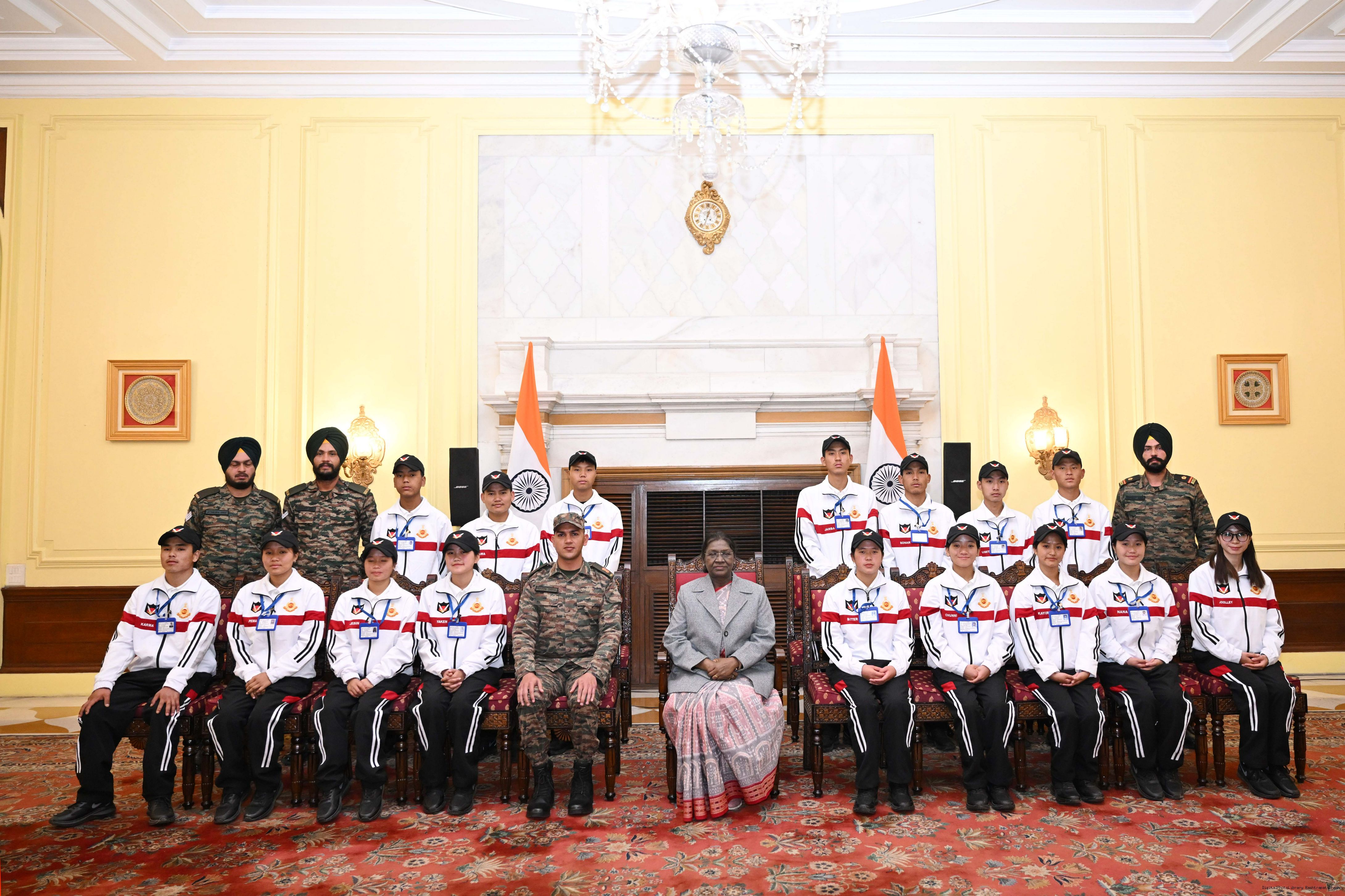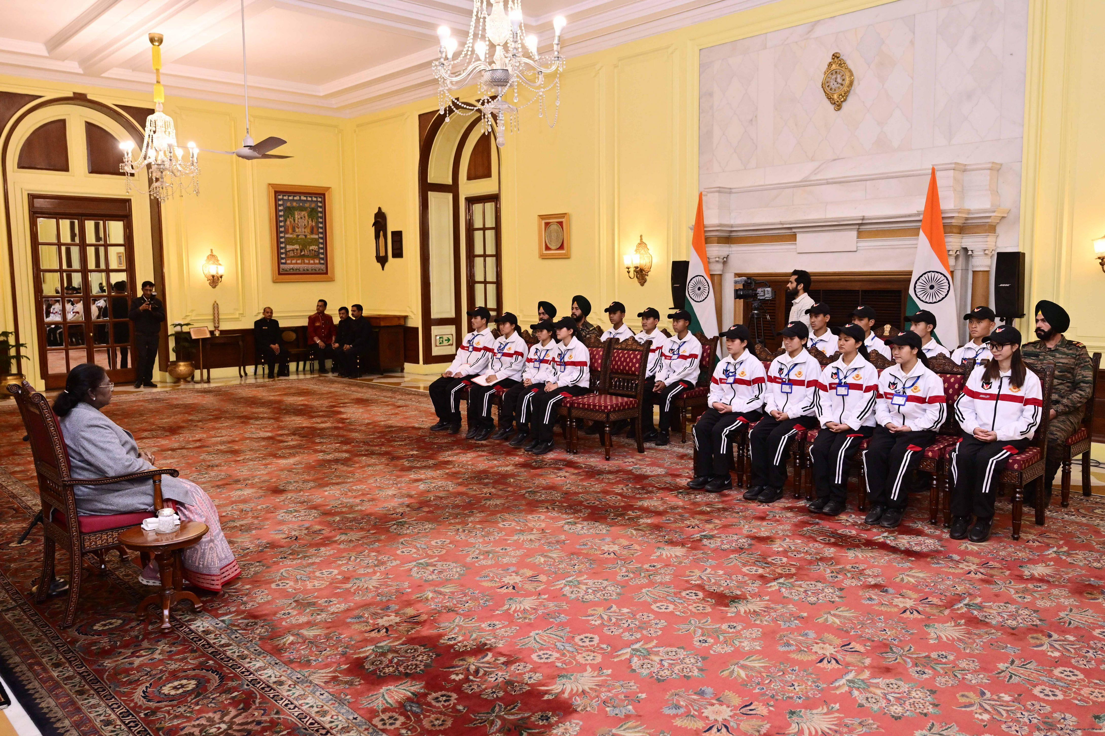 | Caption: | A group of students from Arunachal Pradesh called on the President of India, Smt Droupadi Murmu at Rashtrapati Bhavan on January 8, 2026. They visited Rashtrapati Bhavan as part of the National Integration Tour (NIT). |