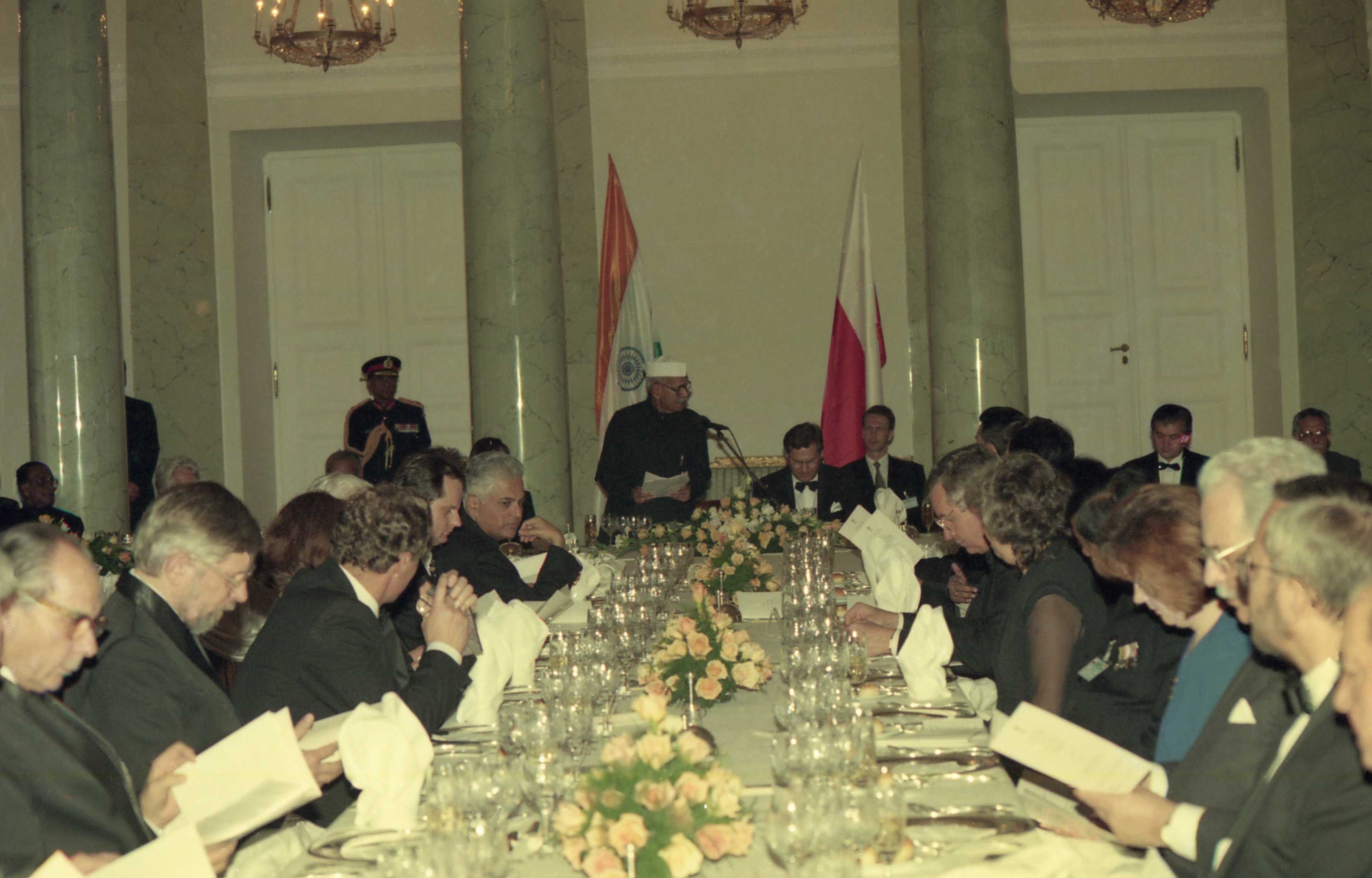 | Caption: | The President of India, Dr. Shankar Dayal Sharma addressing at the Banquet, hosted by Polish President, Mr. Aleksander Kwa?niewski, at Presidential Palace, Warsaw in Poland October 07, 1996. |