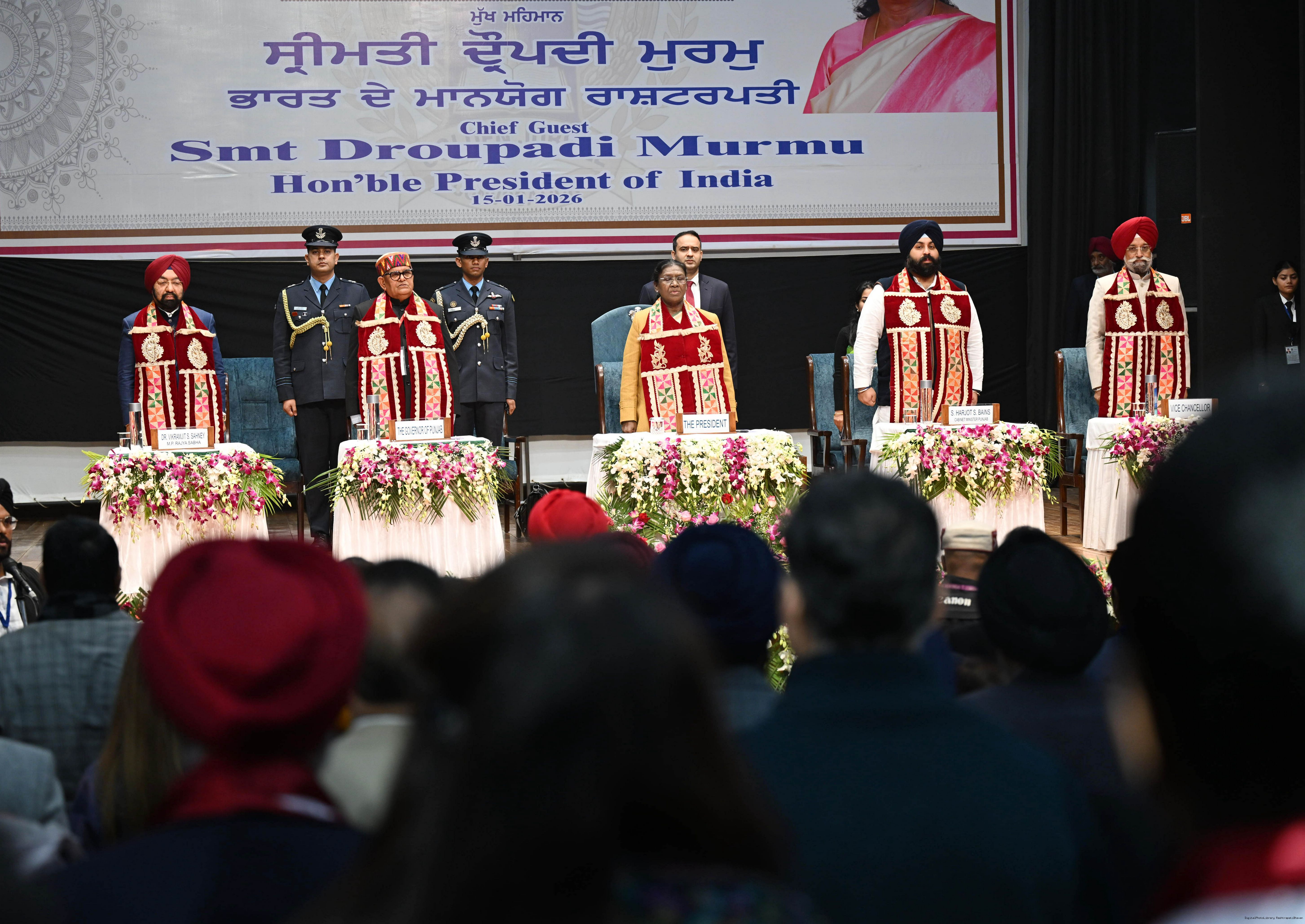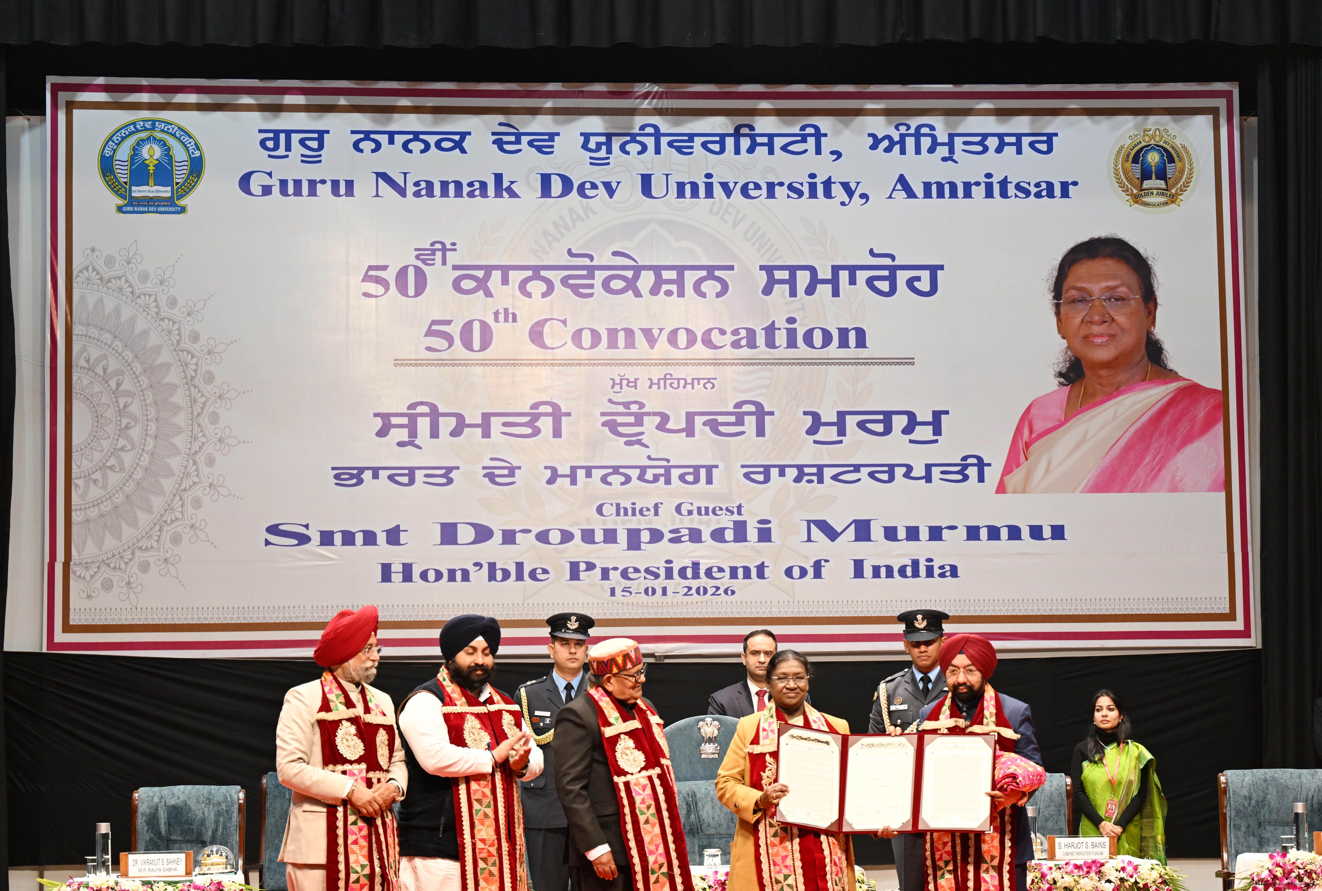 | Caption: | The President of India, Smt Droupadi Murmu, graced and addressed the convocation ceremony of the Guru Nanak Dev University at Amritsar, Punjab on January 15, 2026. |