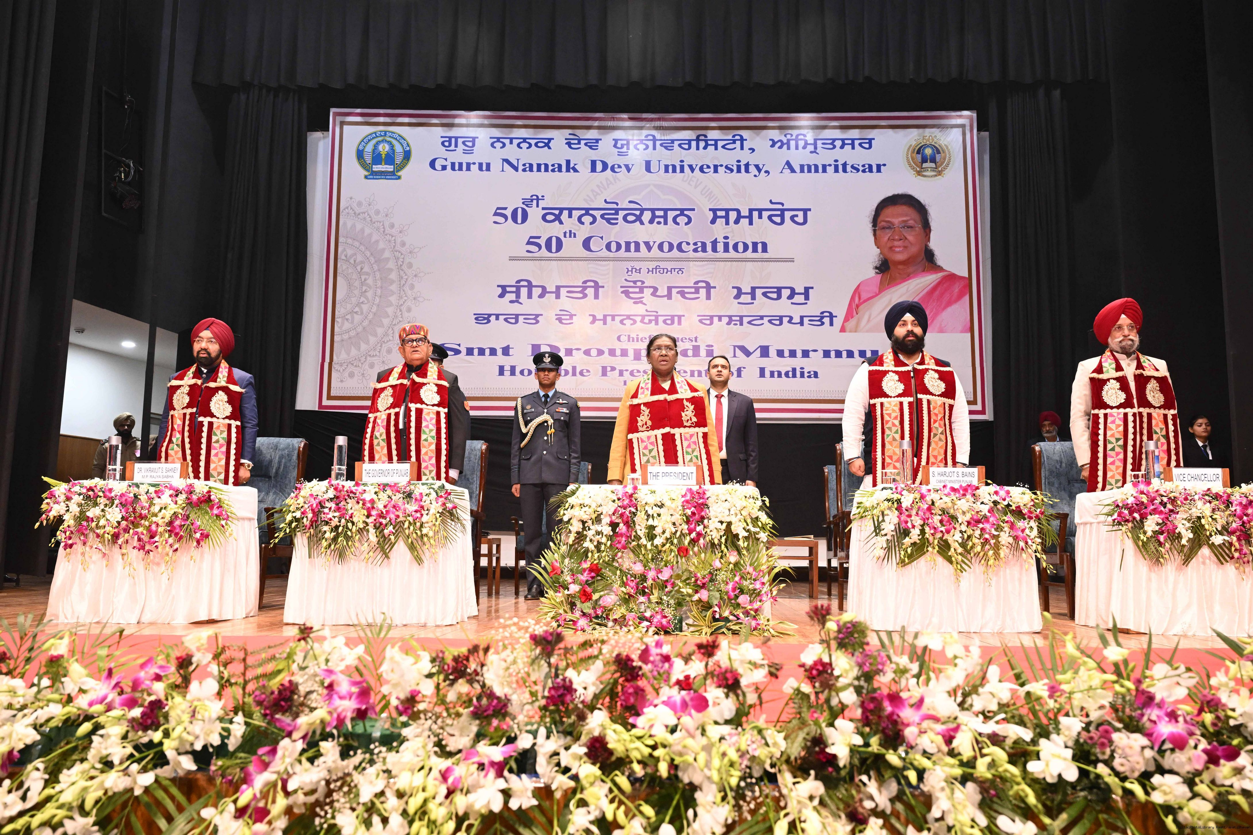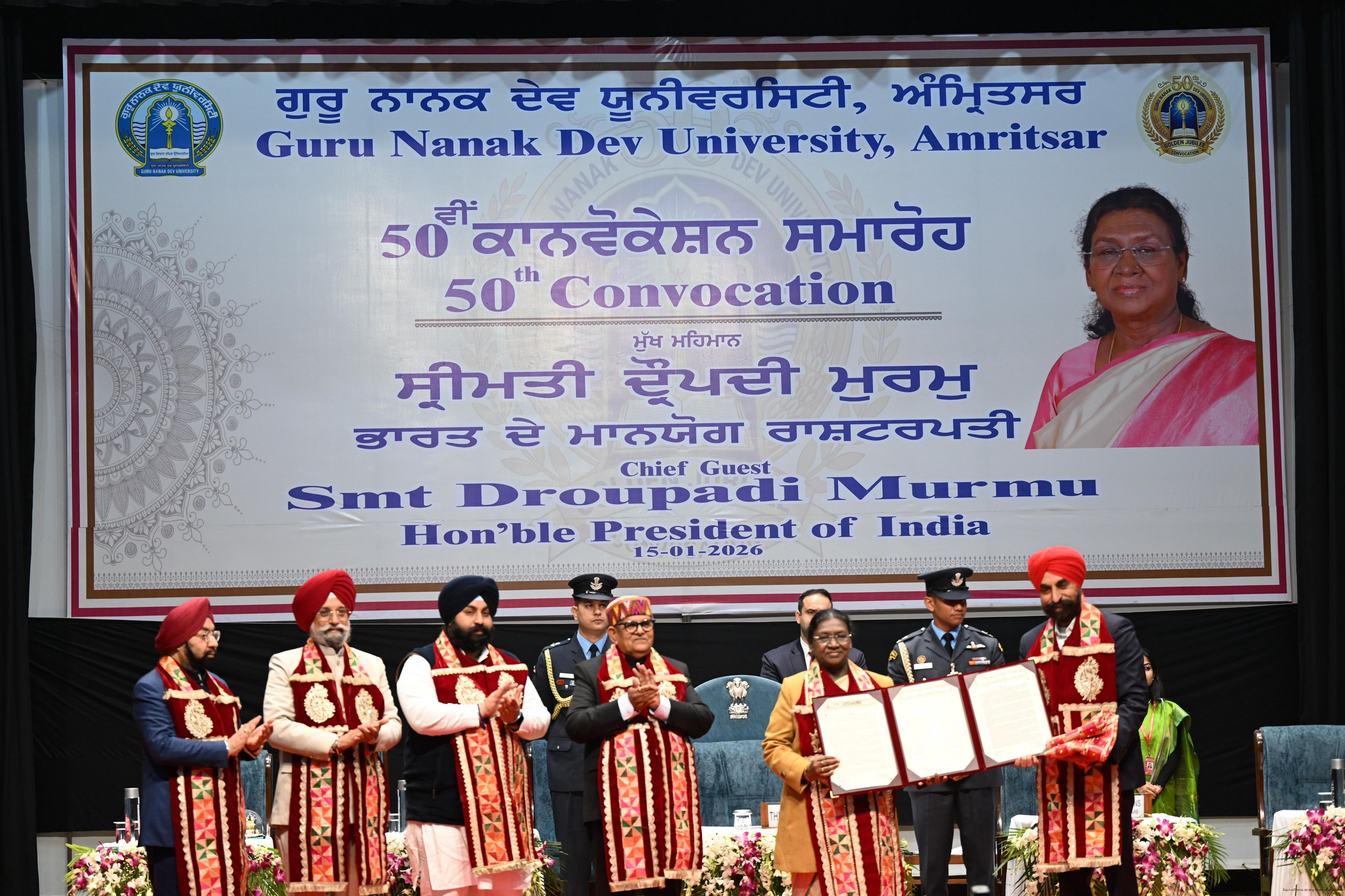 | Caption: | The President of India, Smt Droupadi Murmu, graced and addressed the convocation ceremony of the Guru Nanak Dev University at Amritsar, Punjab on January 15, 2026. |