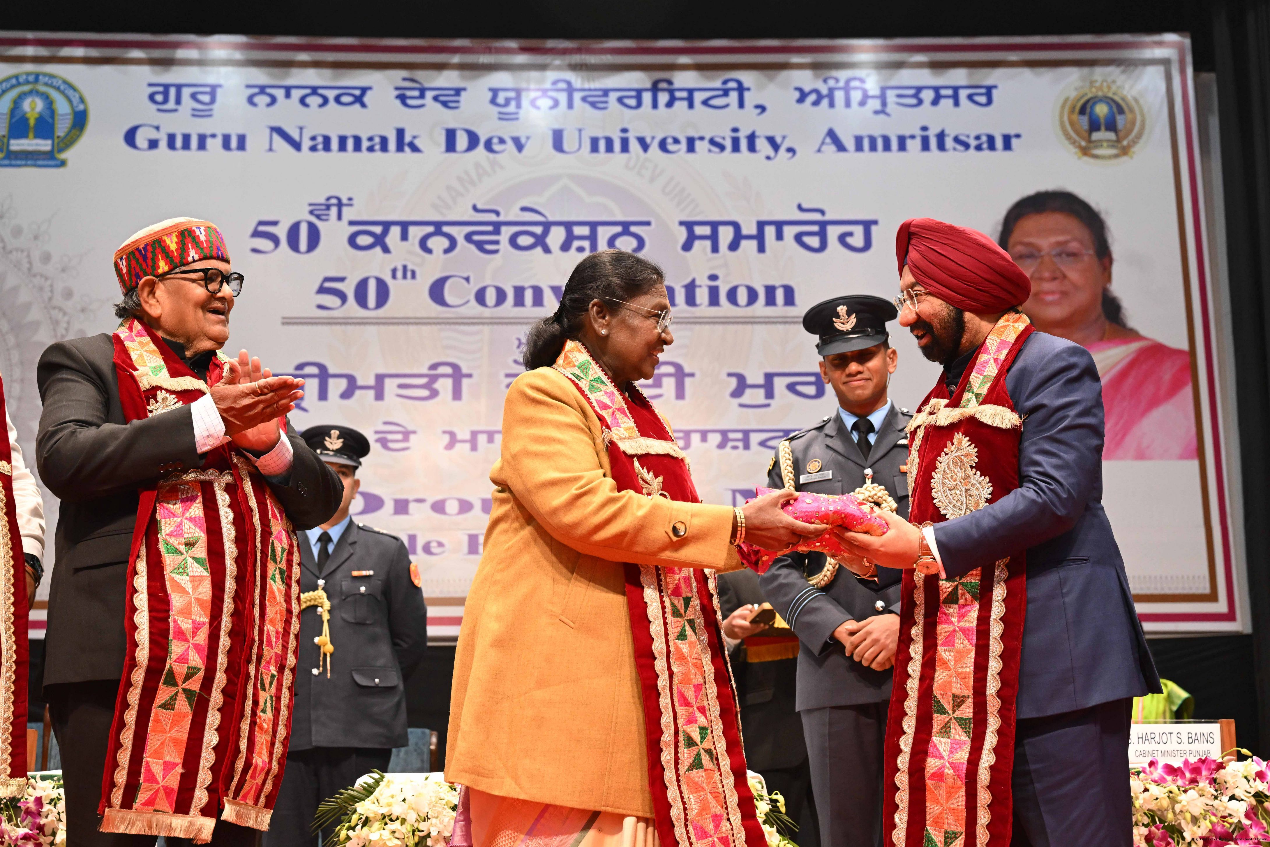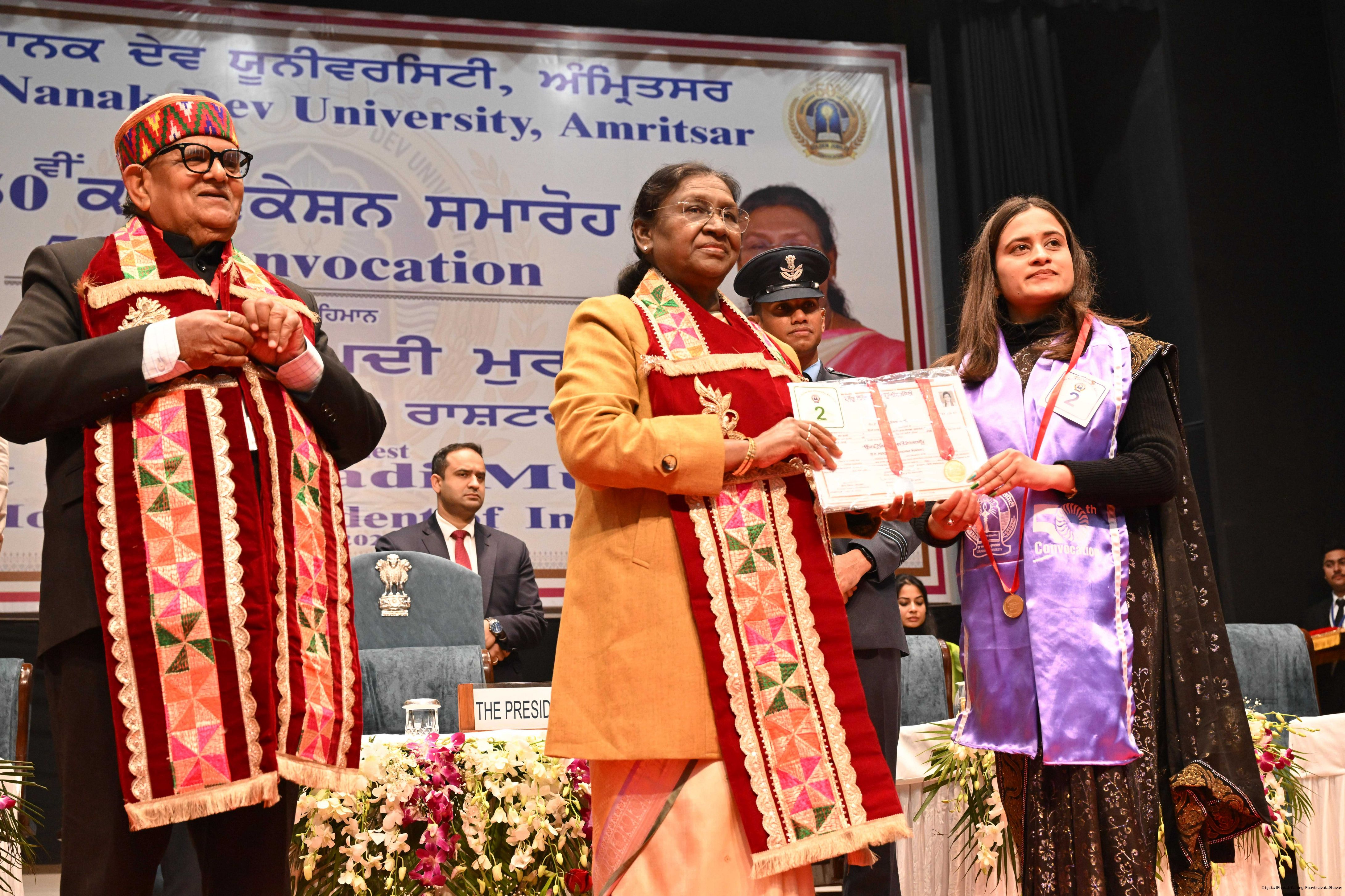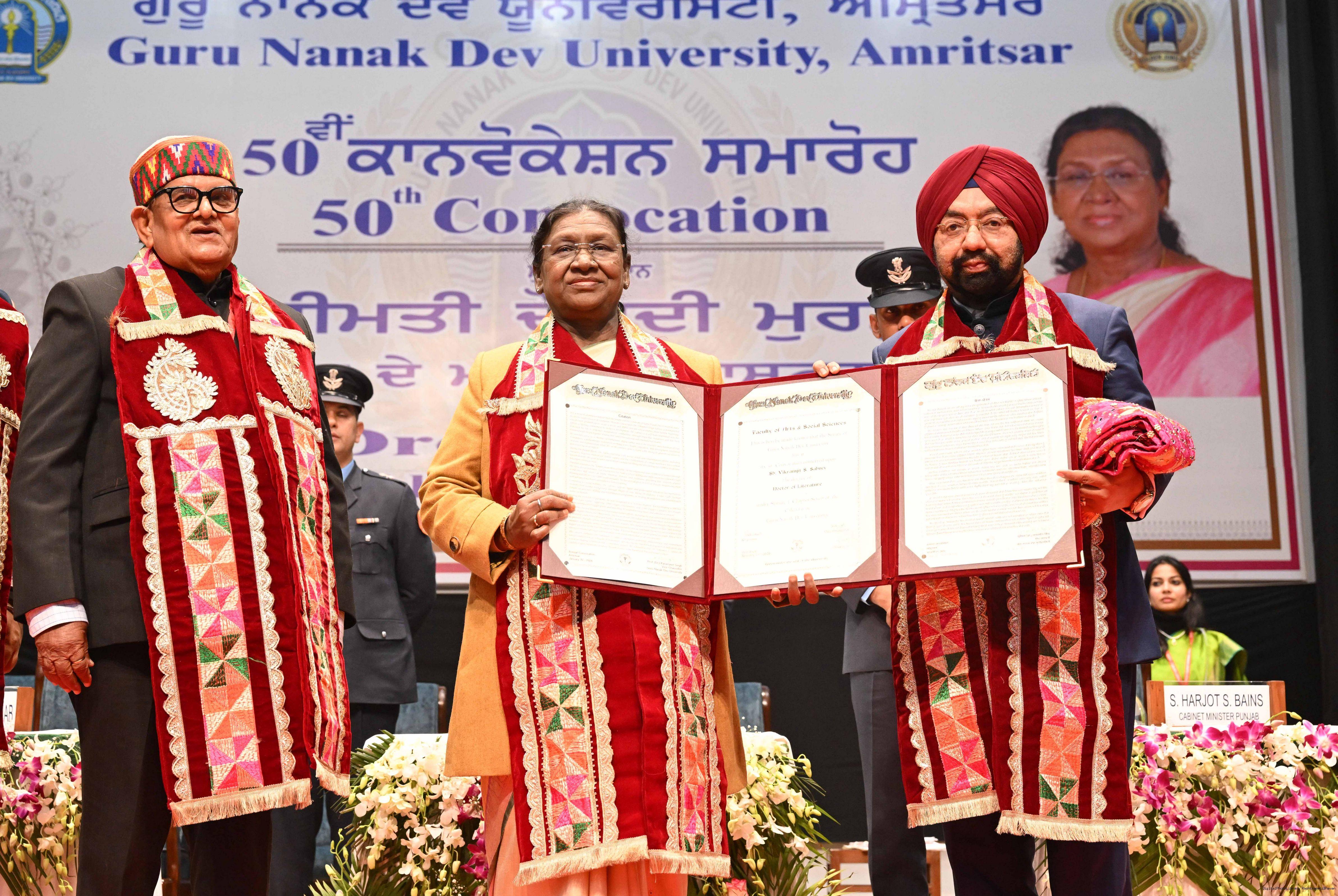 | Caption: | The President of India, Smt Droupadi Murmu, graced and addressed the convocation ceremony of the Guru Nanak Dev University at Amritsar, Punjab on January 15, 2026. |