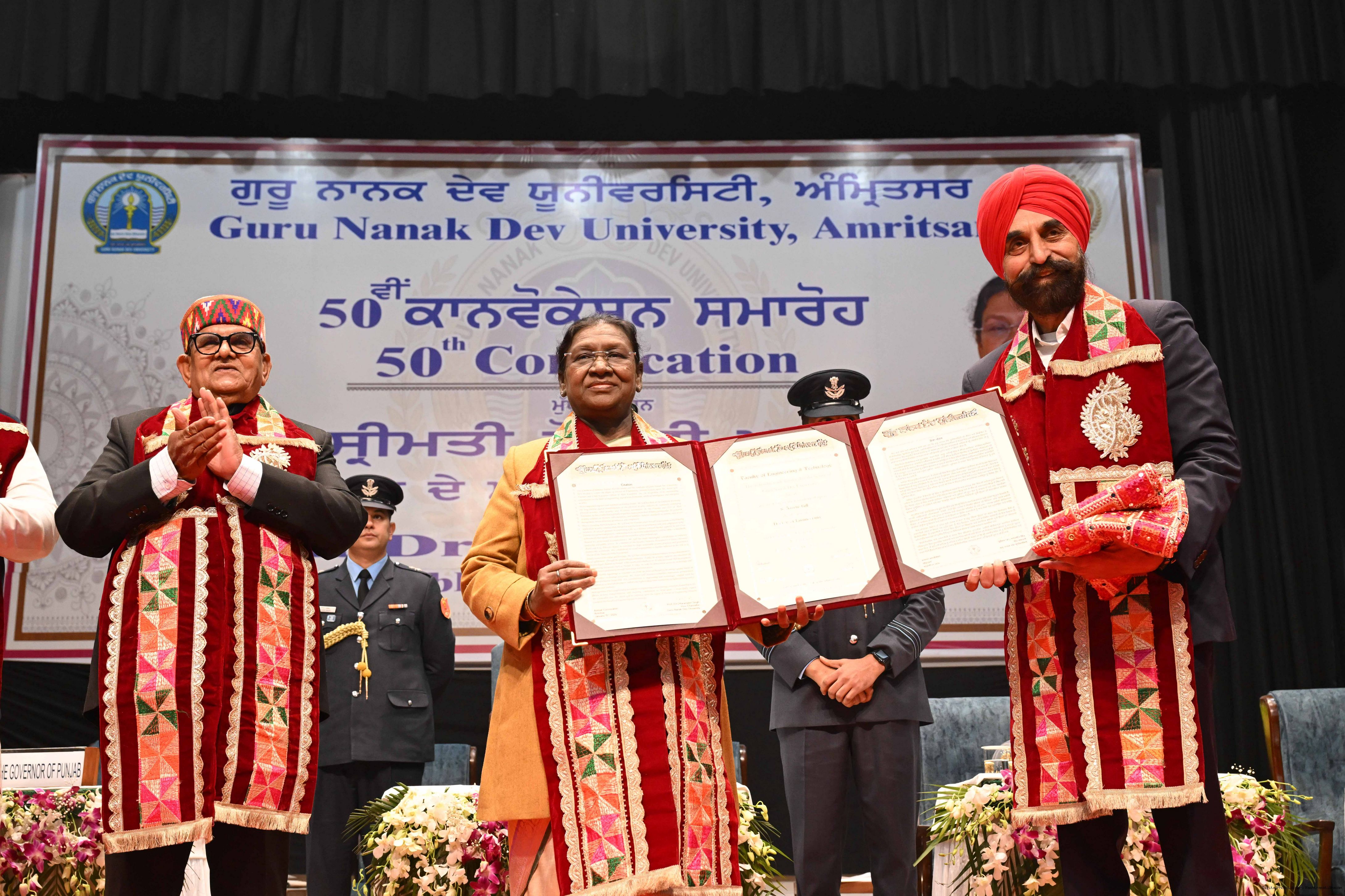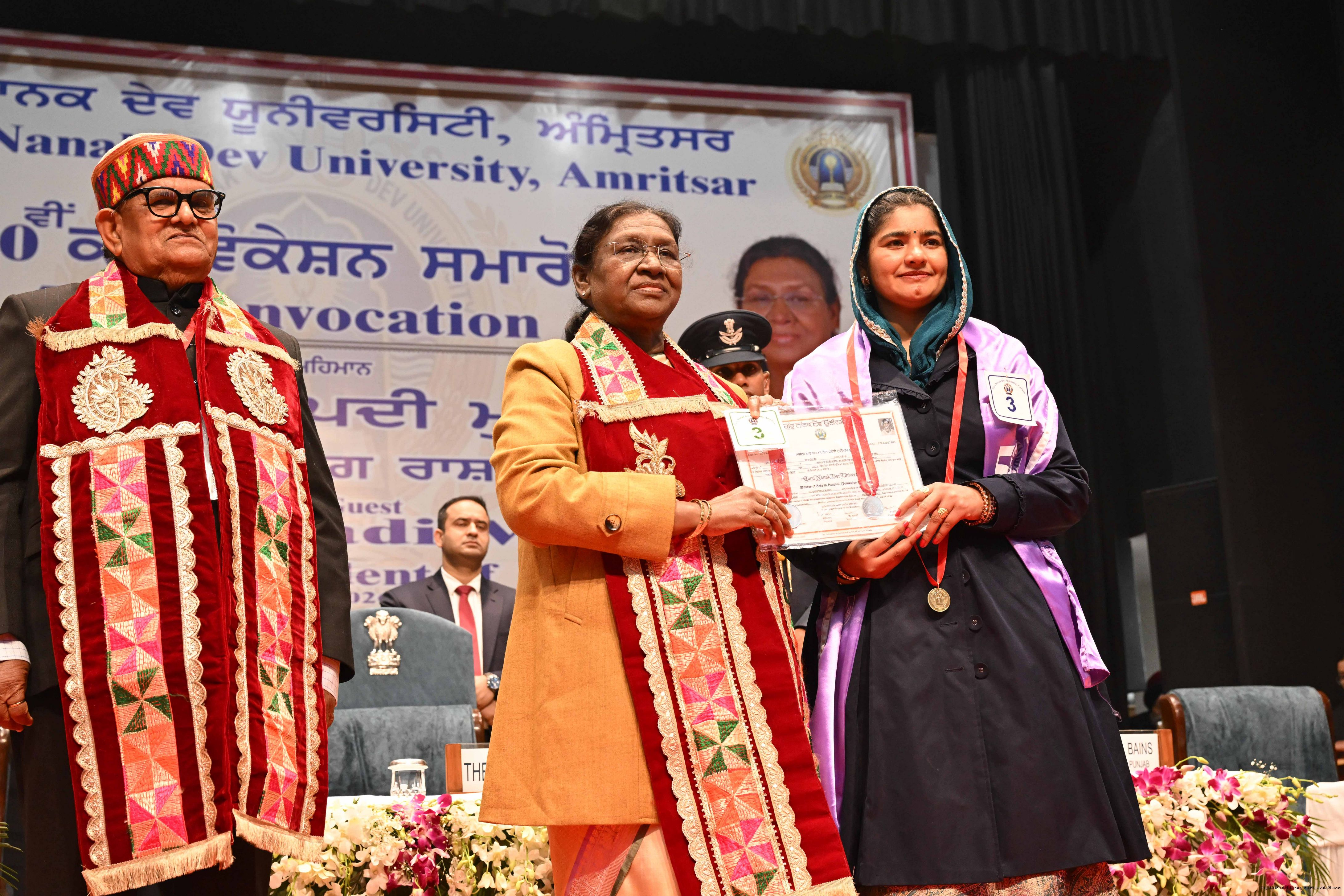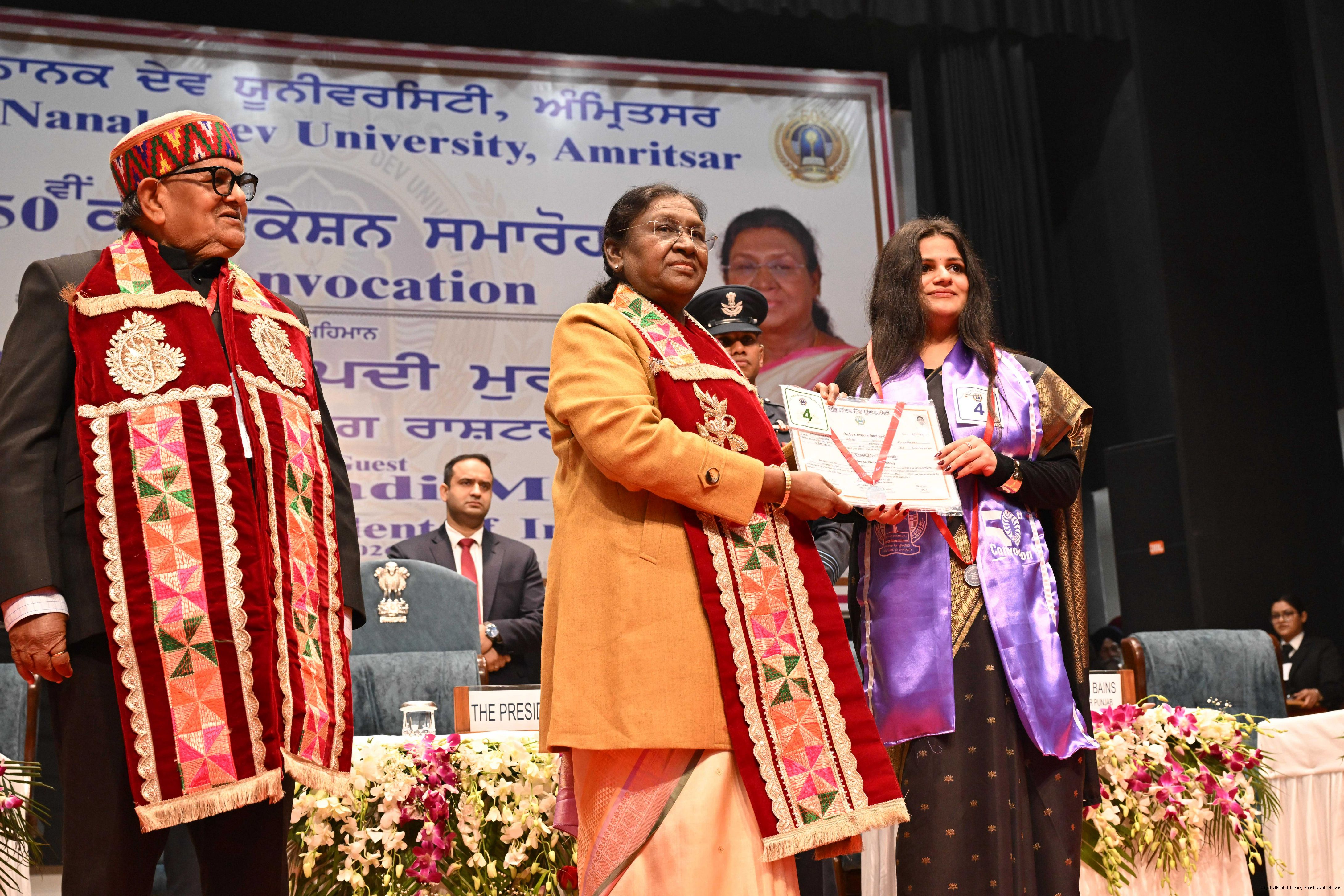 | Caption: | The President of India, Smt Droupadi Murmu, graced and addressed the convocation ceremony of the Guru Nanak Dev University at Amritsar, Punjab on January 15, 2026. |
