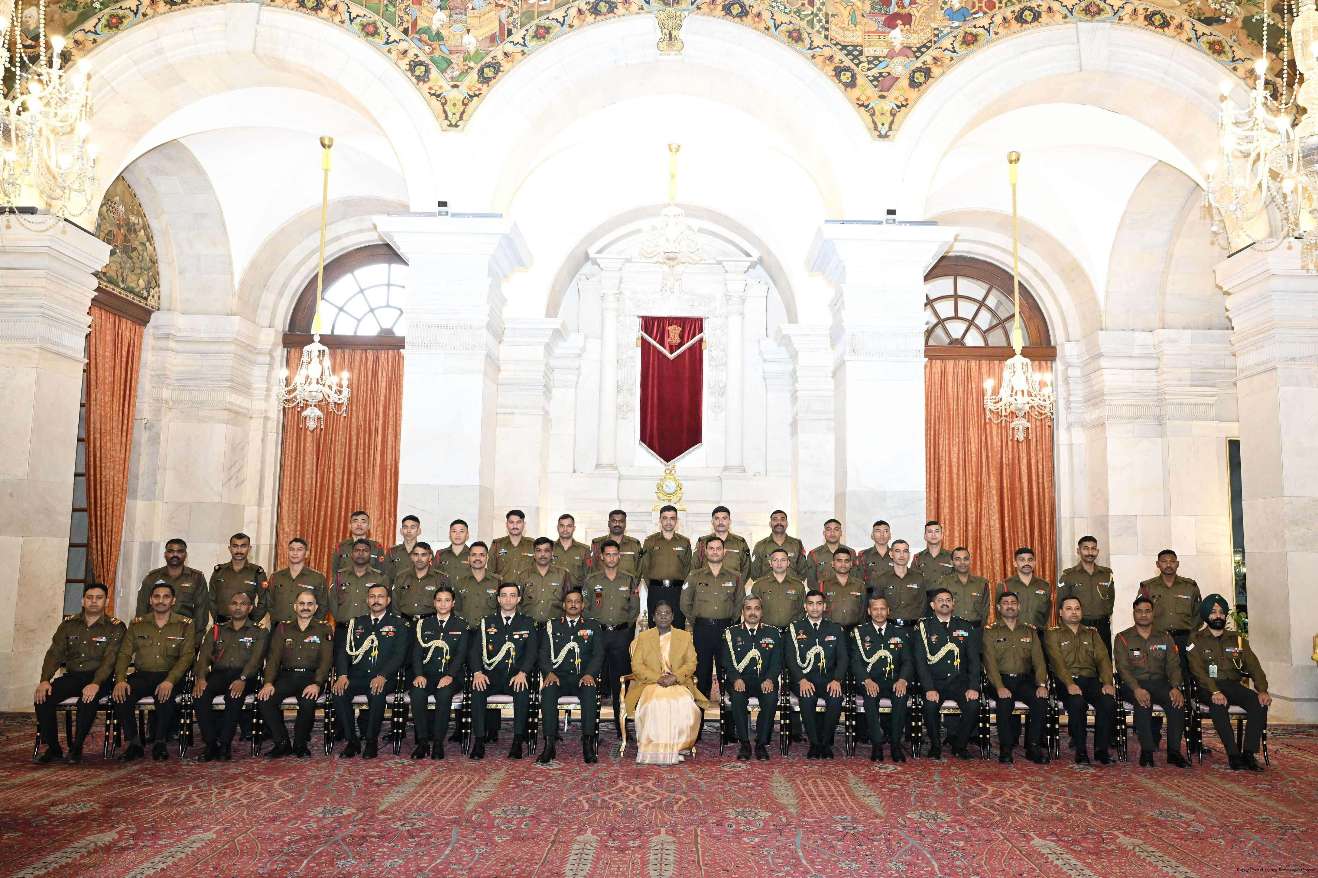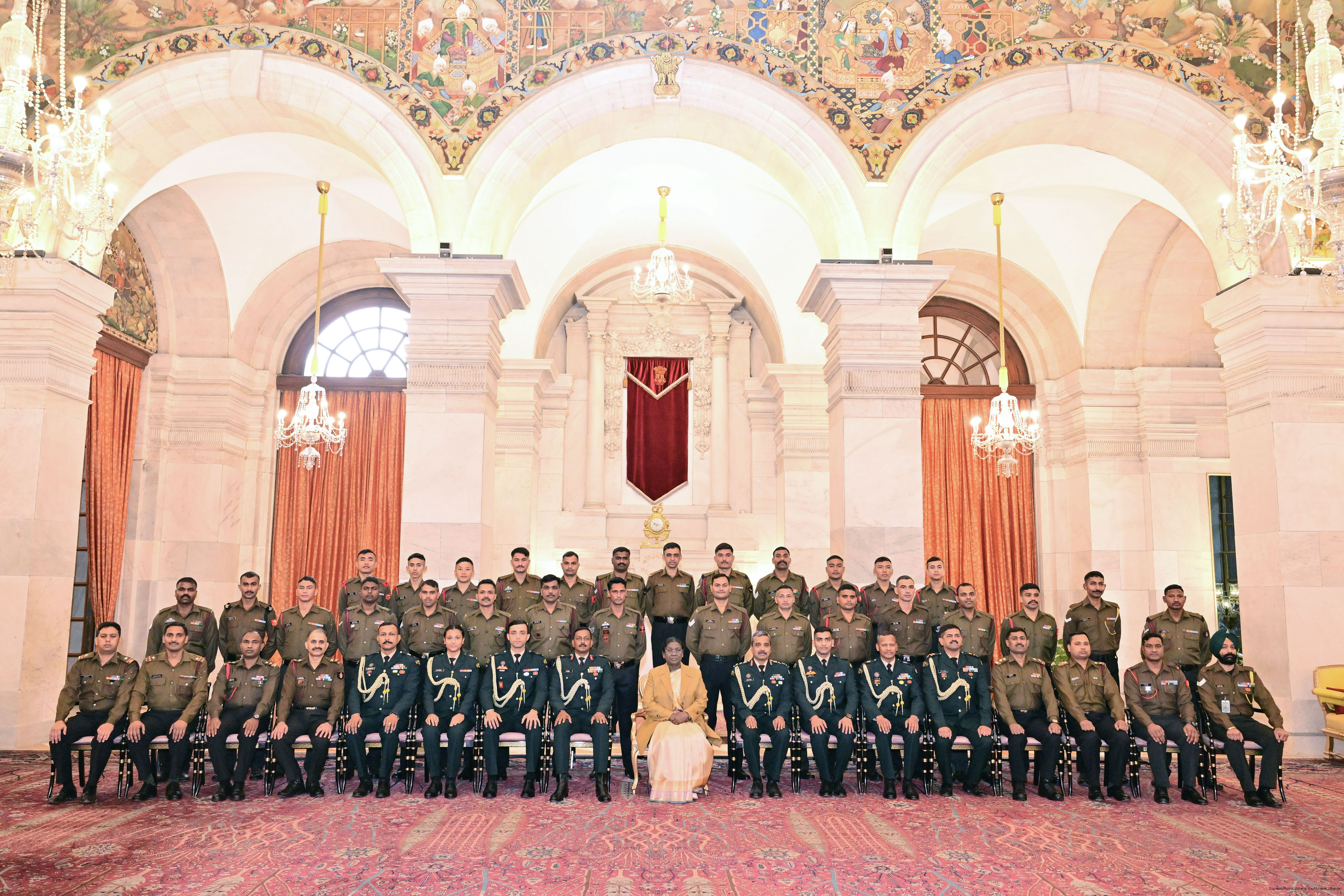 | Caption: | The President of India, Smt Droupadi Murmu posing a group photograph with the Army personnel in attachment with the Rashtrapati Bhavan on the occasion of Army Day on January 15, 2026. |