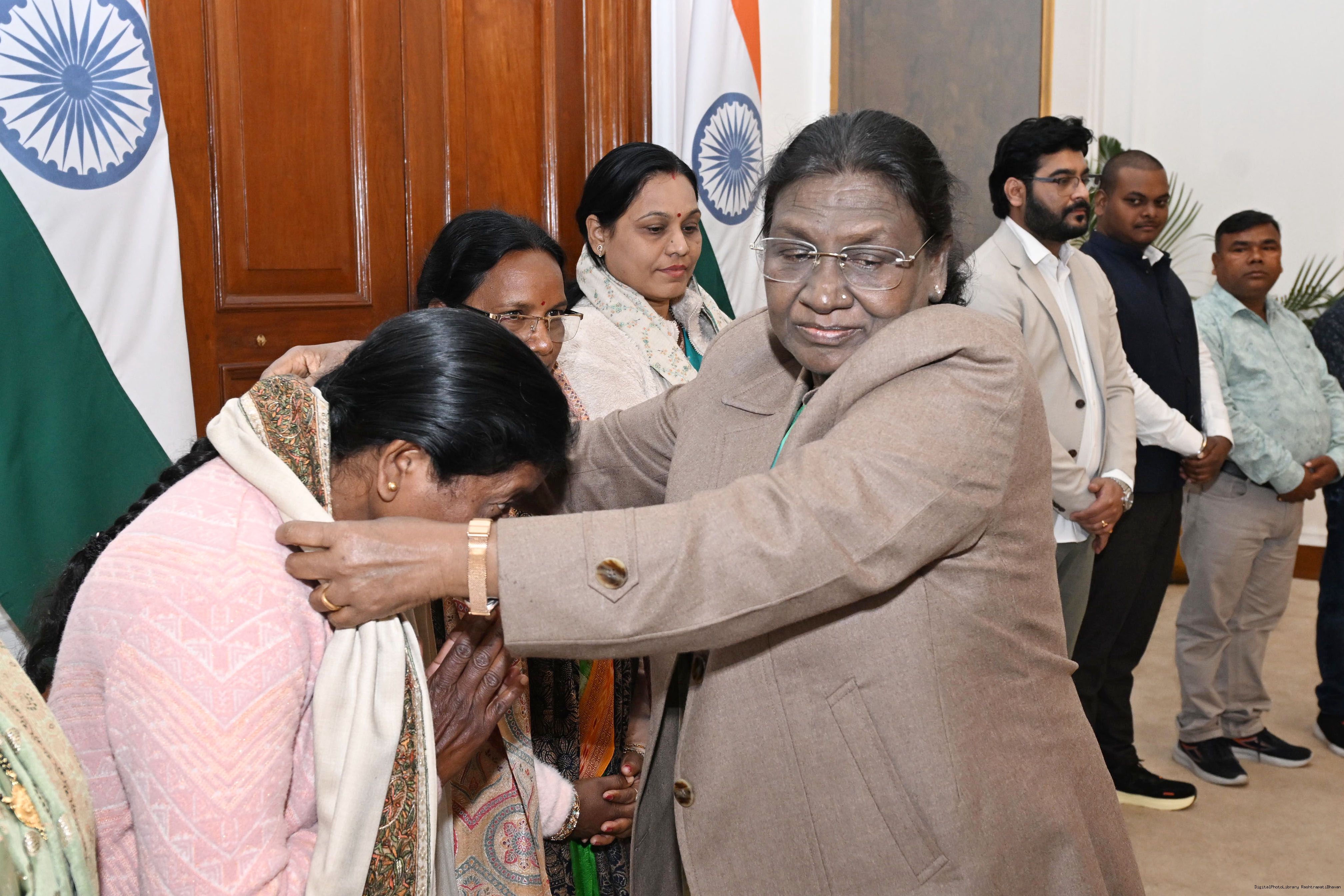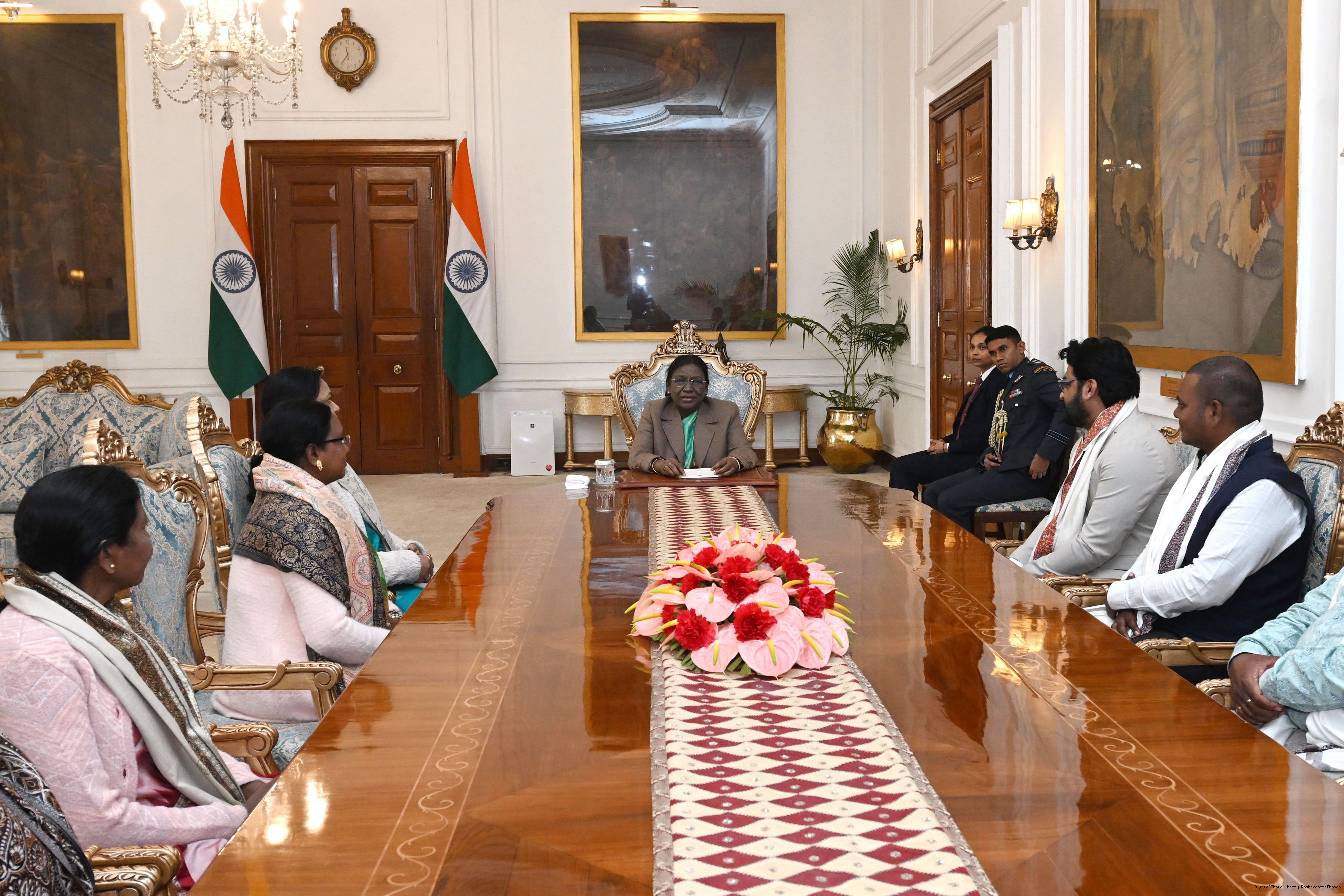 | Caption: | Shri Abhishek Pattnaik, Chairperson, Rairangpur Municipality along with others meeting with the President of India, Smt Droupadi Murmu at Rashtrapati Bhavan on January 19, 2026. |