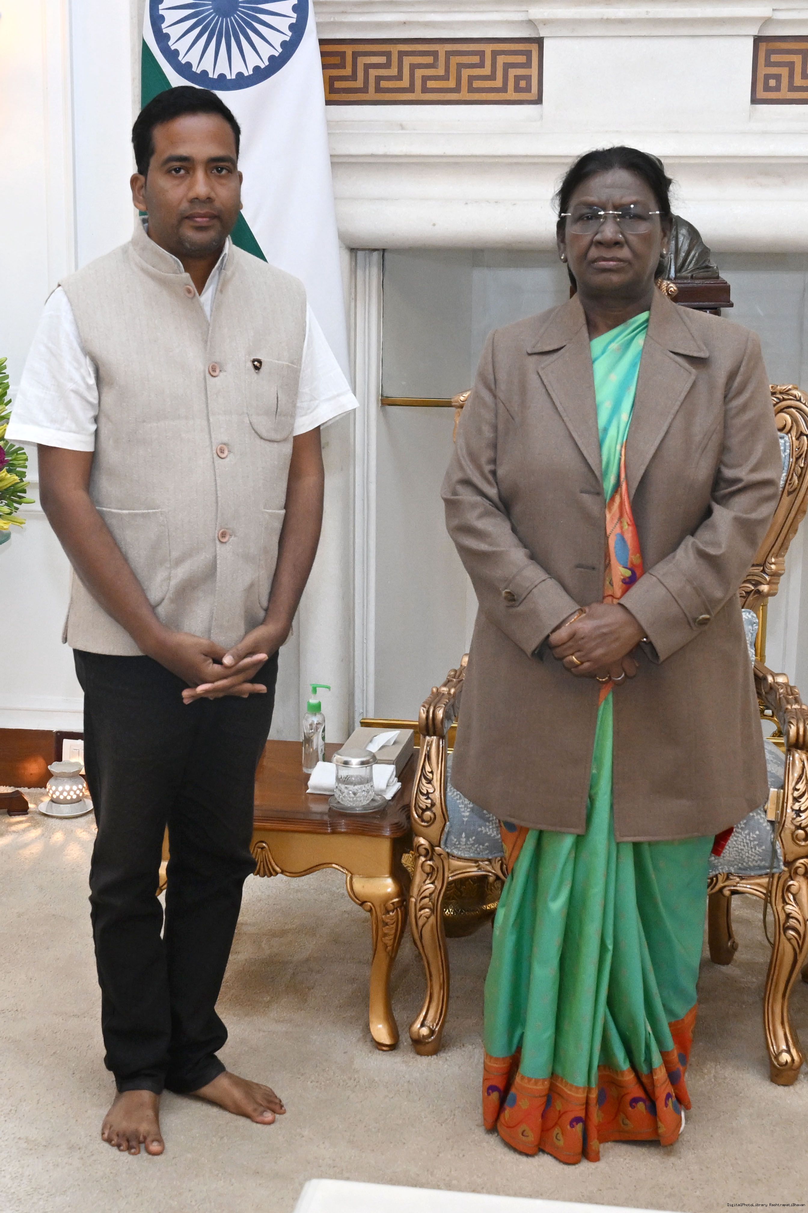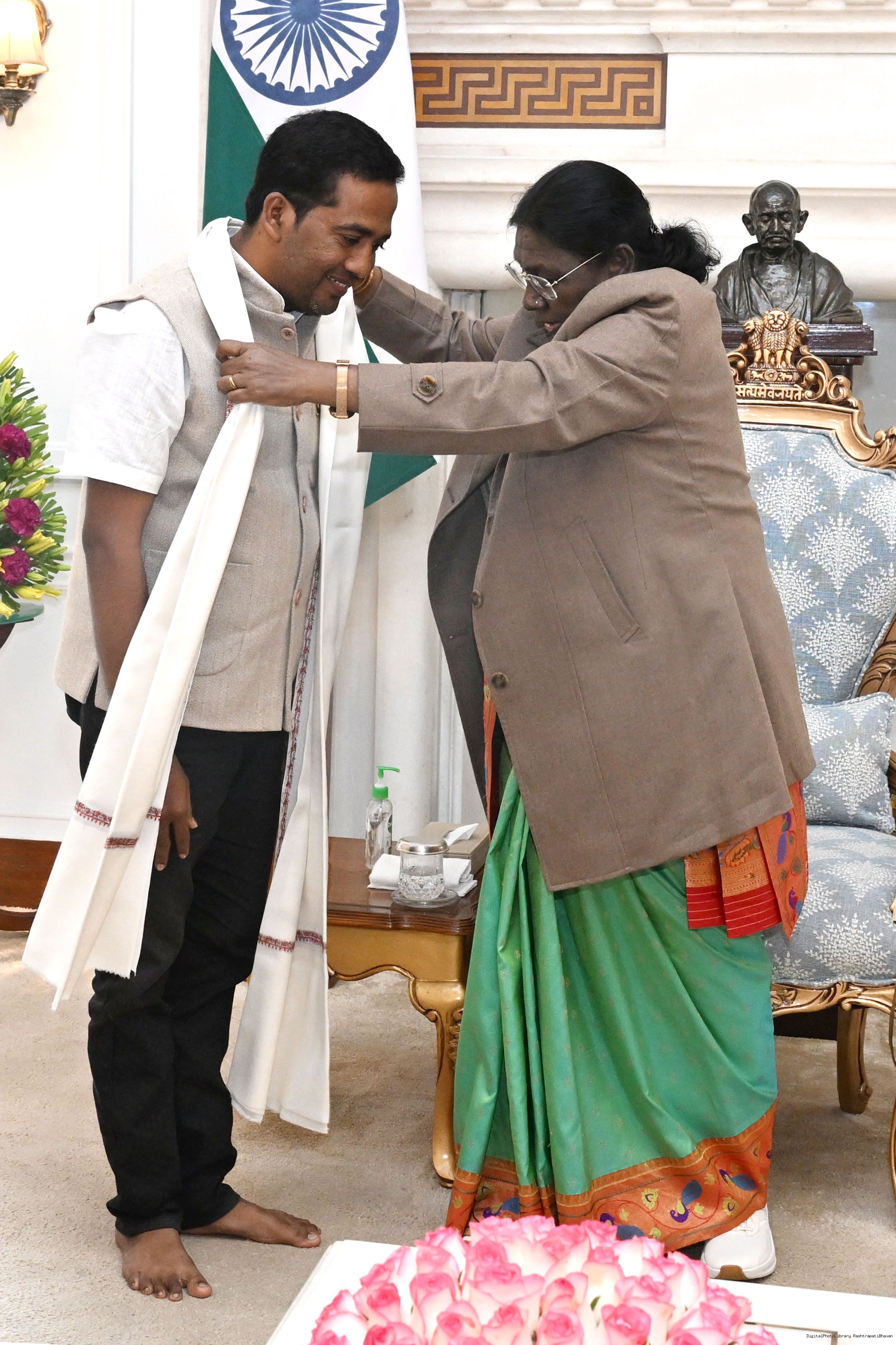 | Caption: | Shri Upendra Nath Giri, Professional Stonemason from Balasore, Odisha meeting with the President of India, Smt Droupadi Murmu at Rashtrapati Bhavan on January 19, 2026. |
