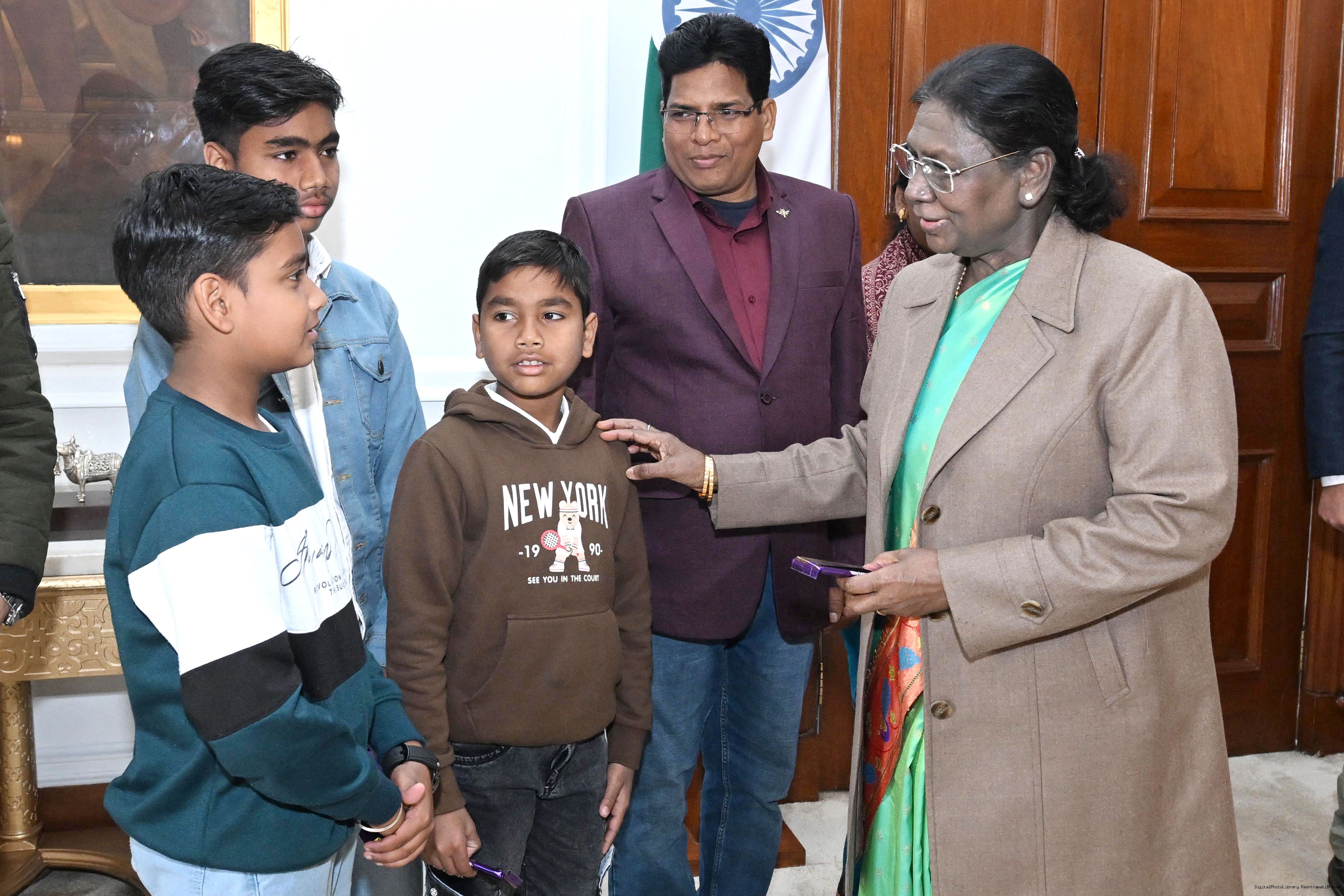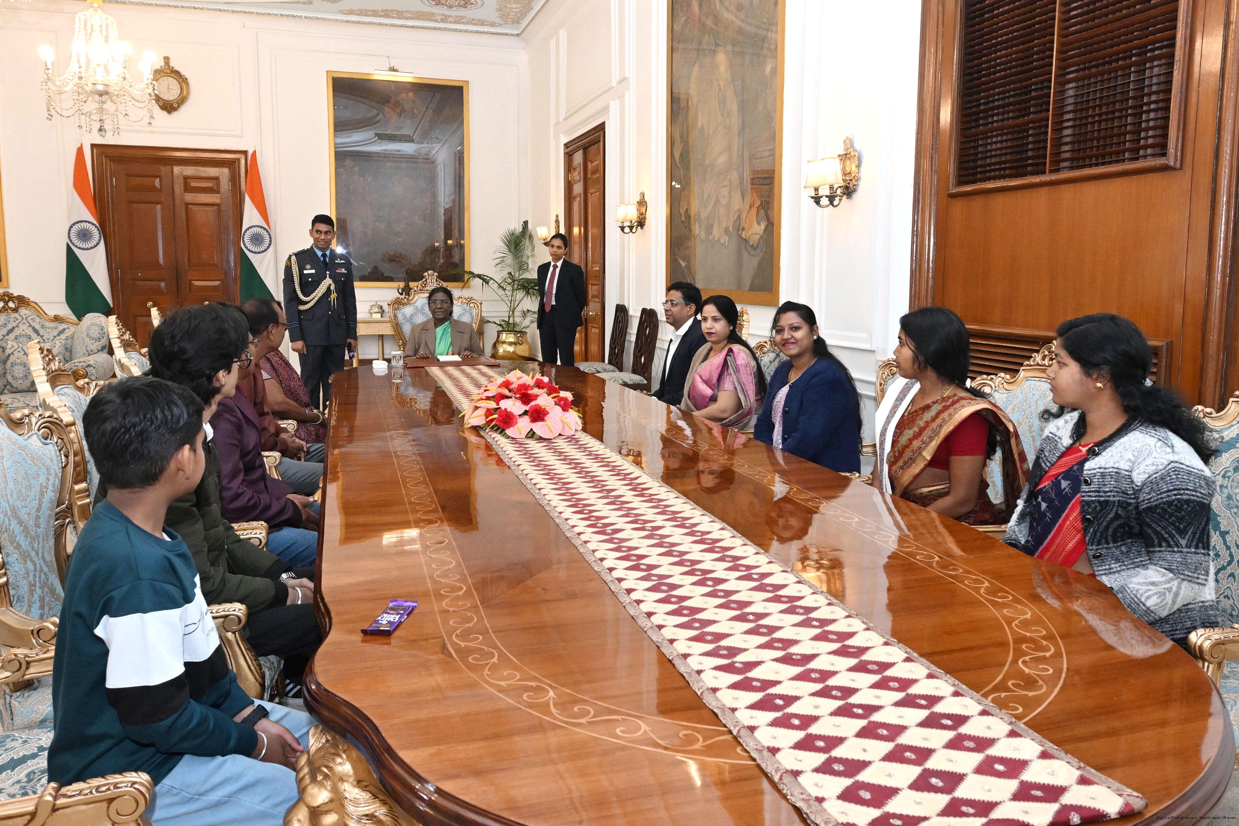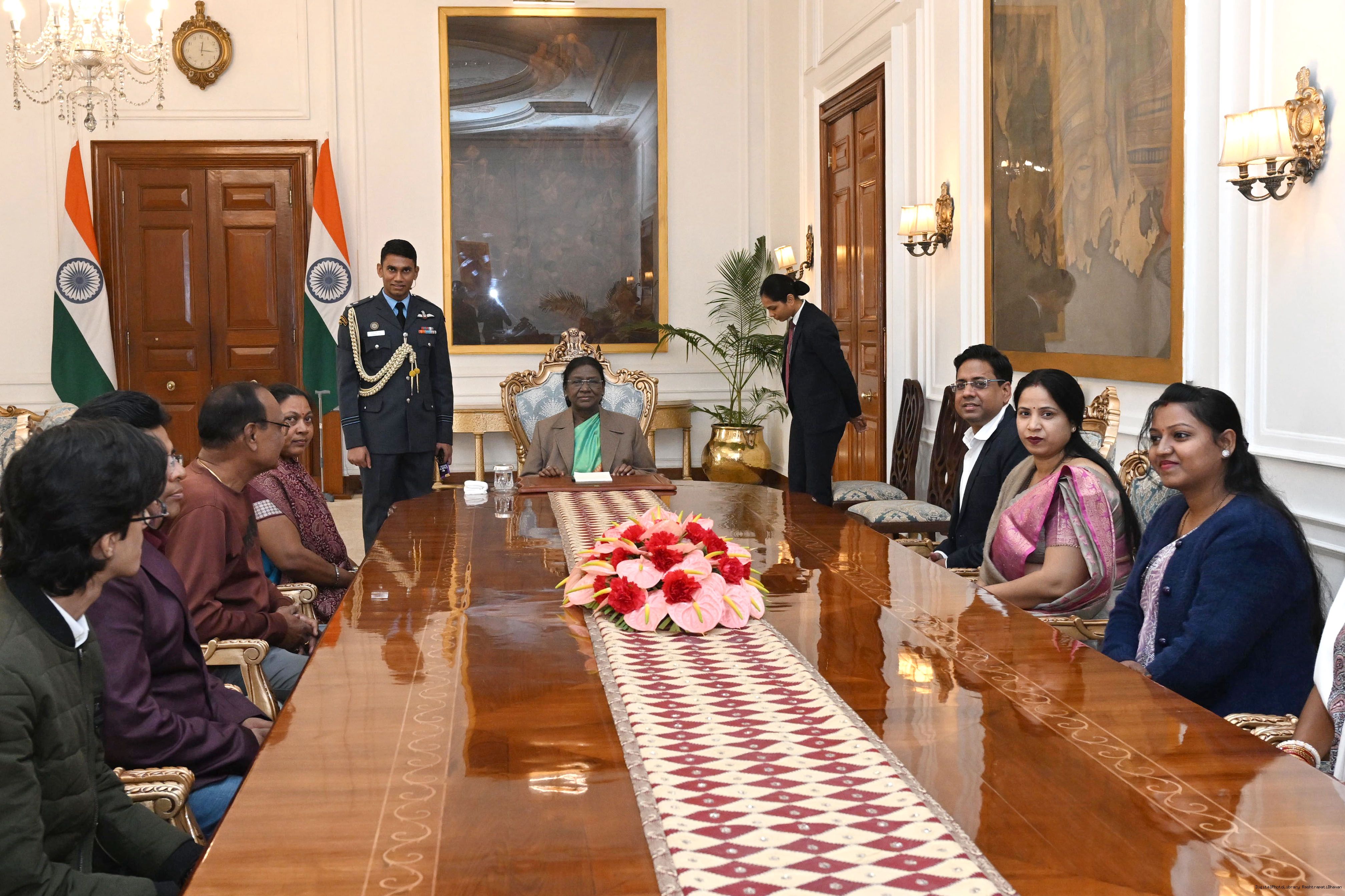| Caption: | Ms Durga Ch Marndi along with Ms Sudeshna Dhal and others meeting with the President of India, Smt Droupadi Murmu at Rashtrapati Bhavan on January 19, 2026. |