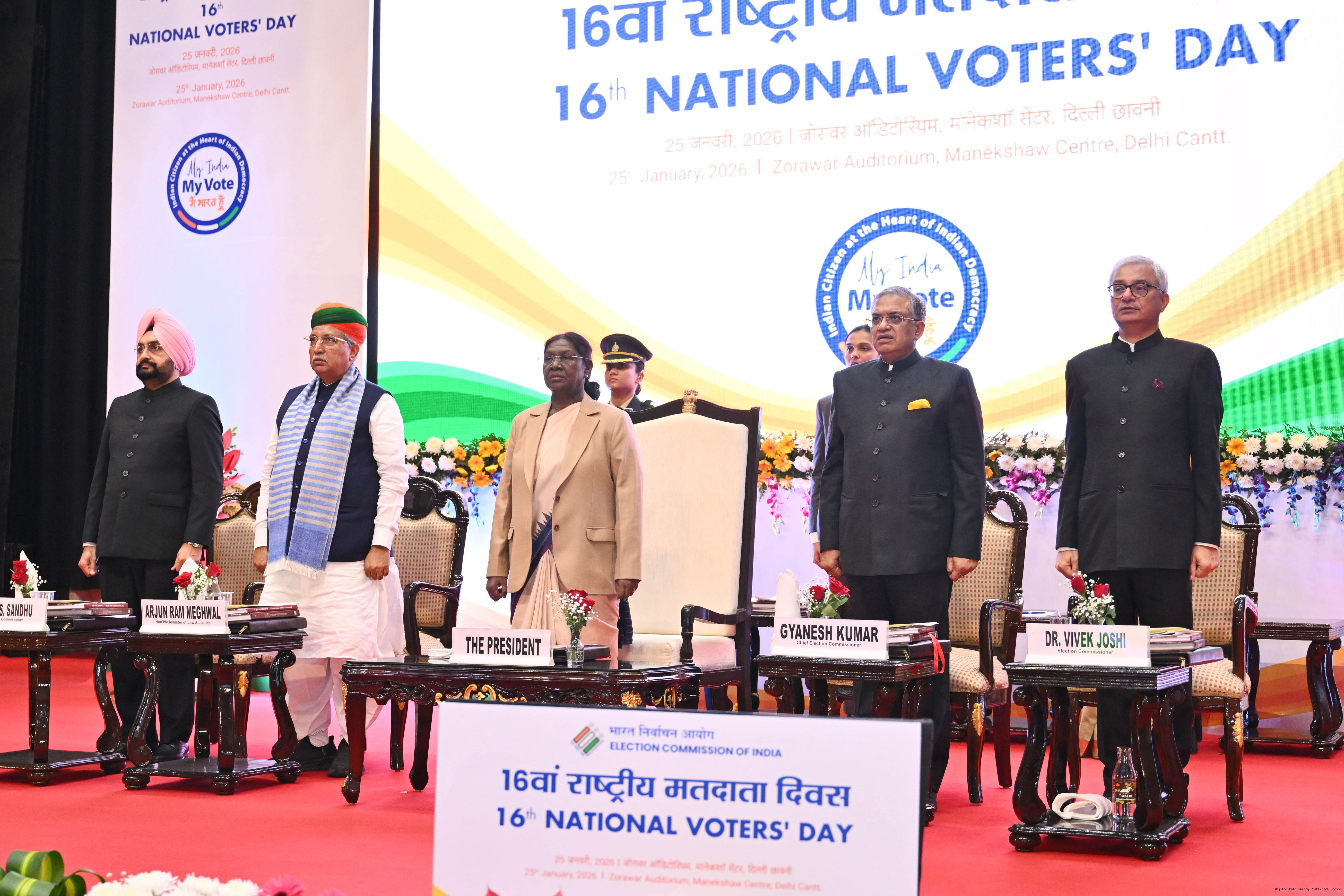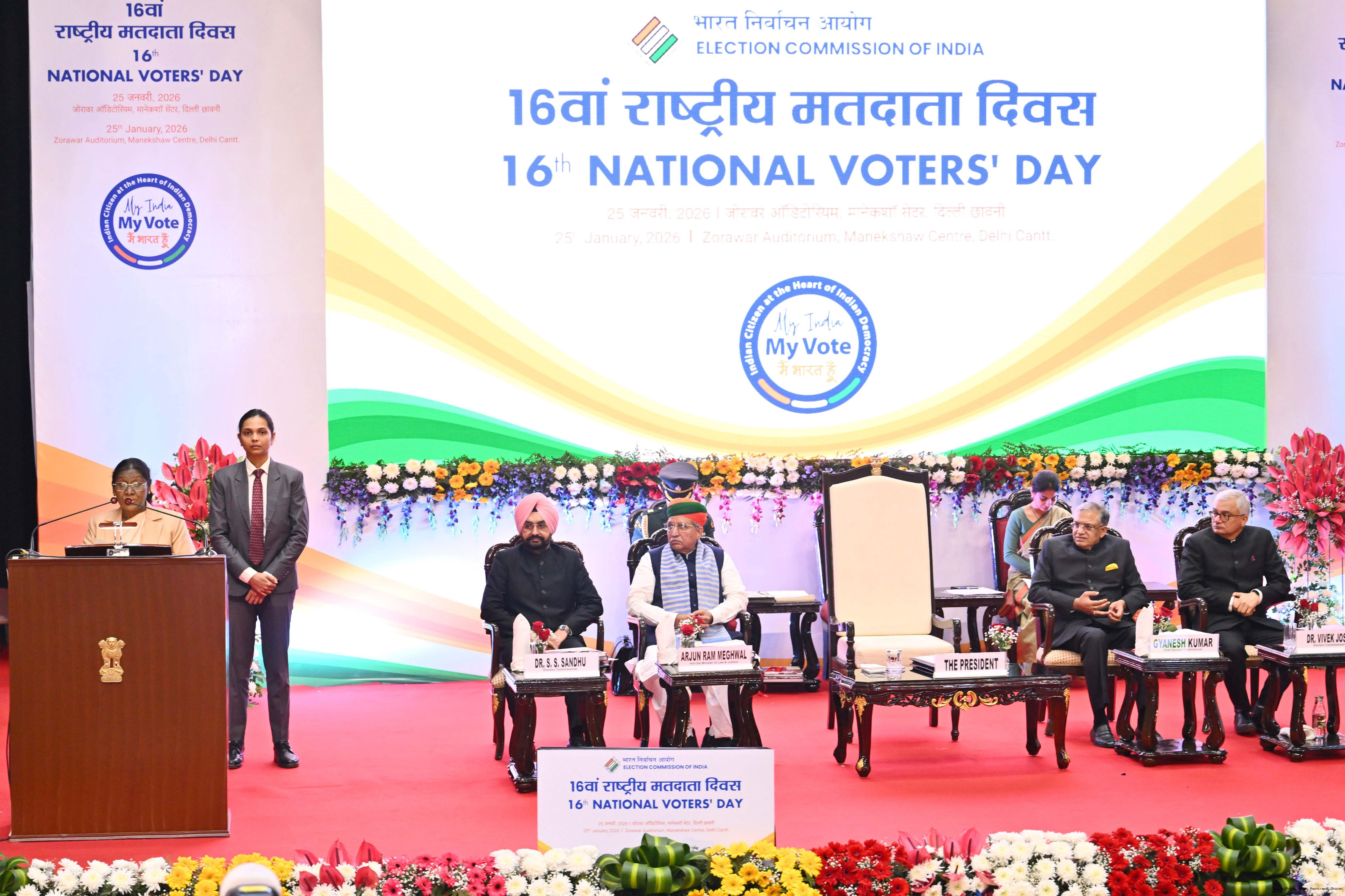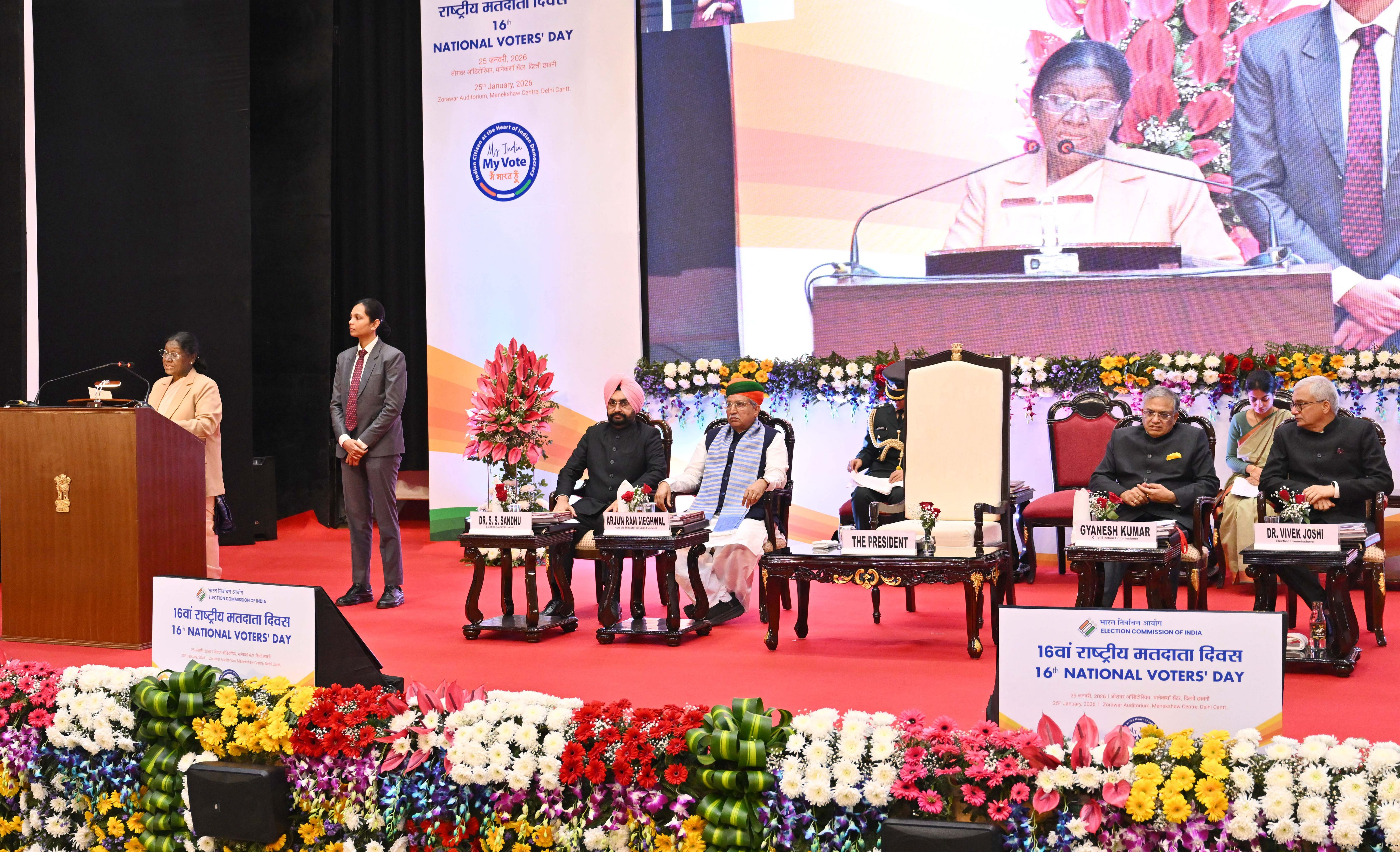 | Caption: | The President of India, Smt Droupadi Murmu, graced and addressed the 16th National Voters’ Day Celebrations in New Delhi on January 25, 2026. |