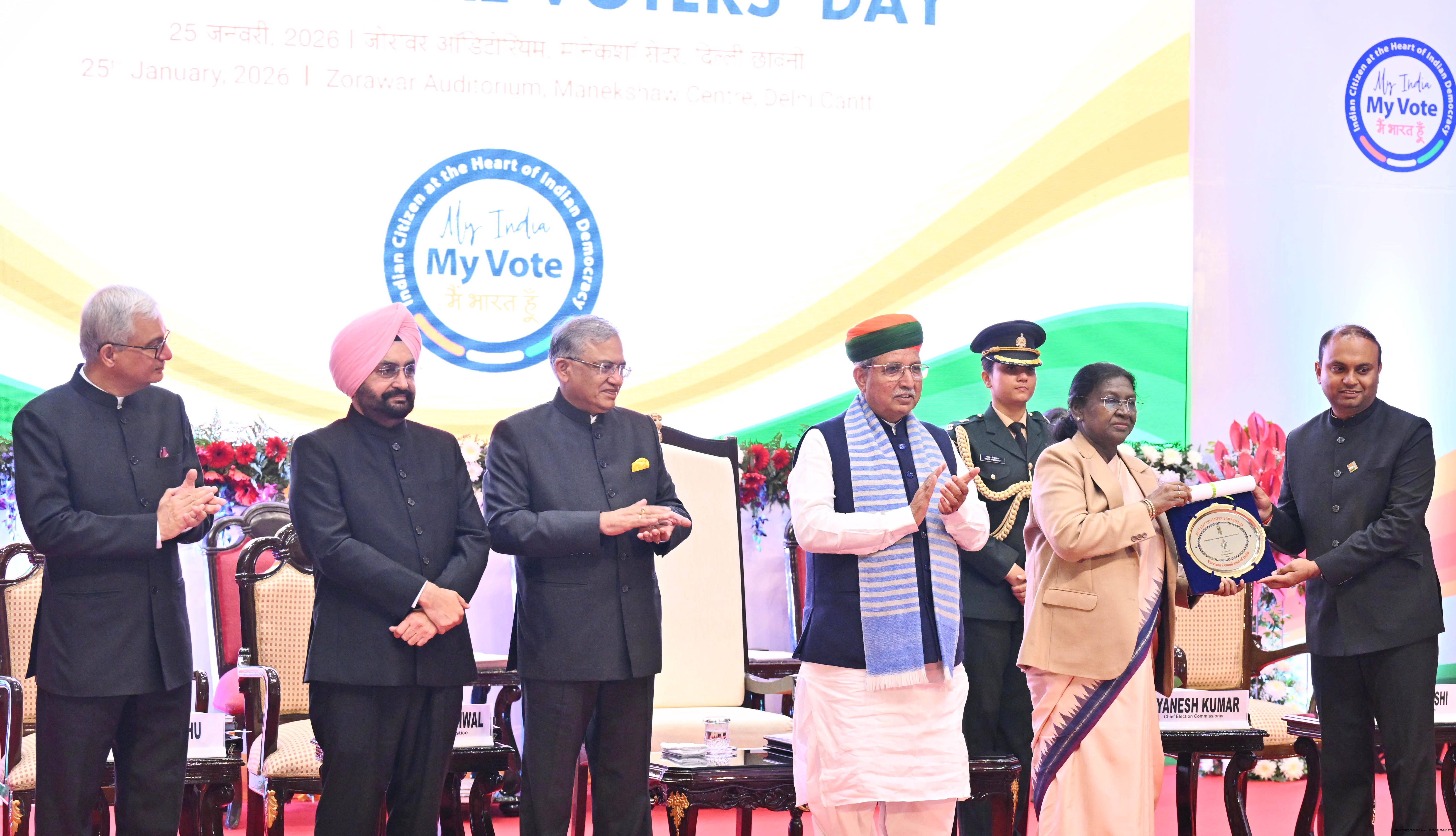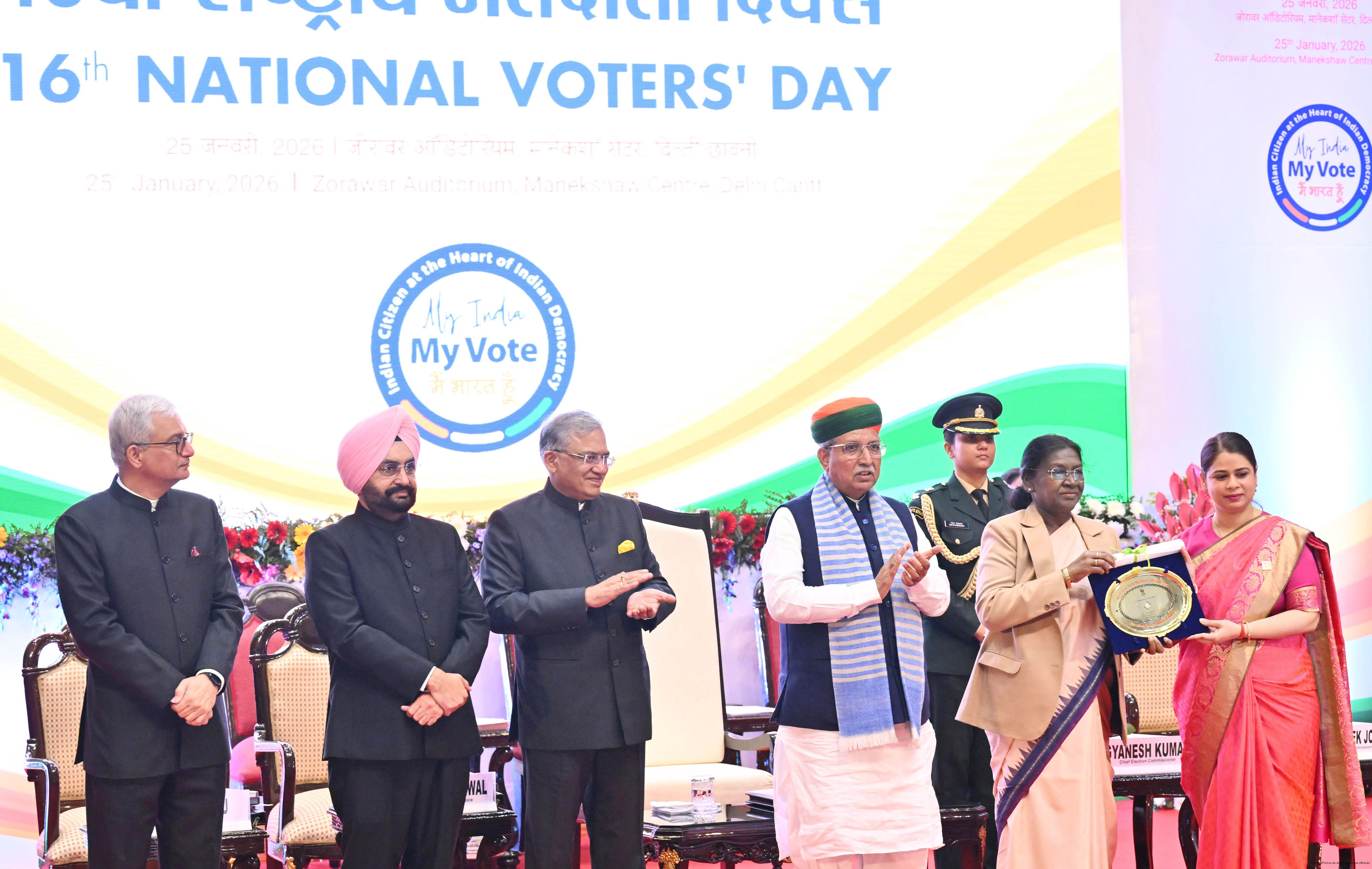 | Caption: | The President of India, Smt Droupadi Murmu, graced and addressed the 16th National Voters’ Day Celebrations in New Delhi on January 25, 2026. |