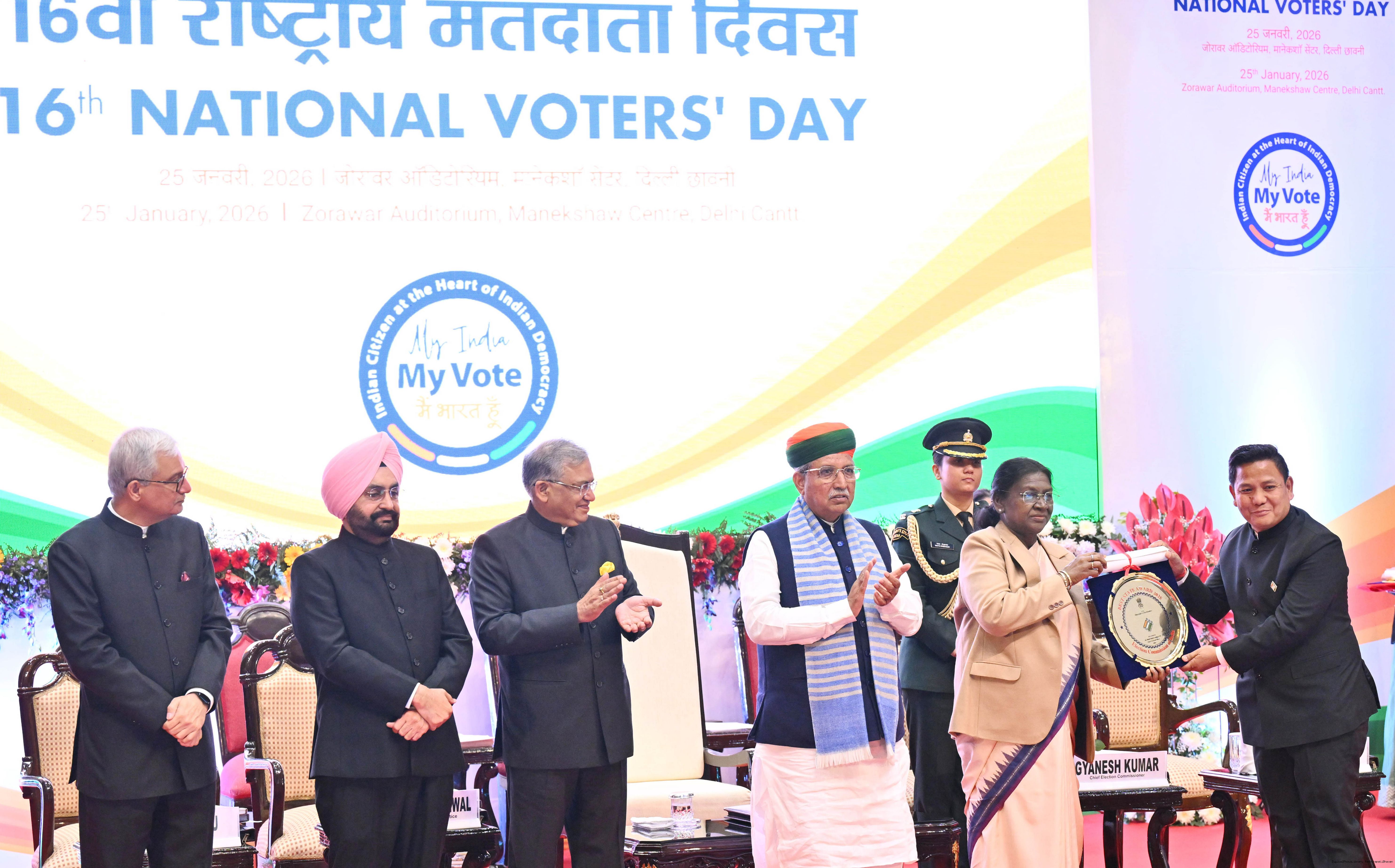 | Caption: | The President of India, Smt Droupadi Murmu, graced and addressed the 16th National Voters’ Day Celebrations in New Delhi on January 25, 2026. |