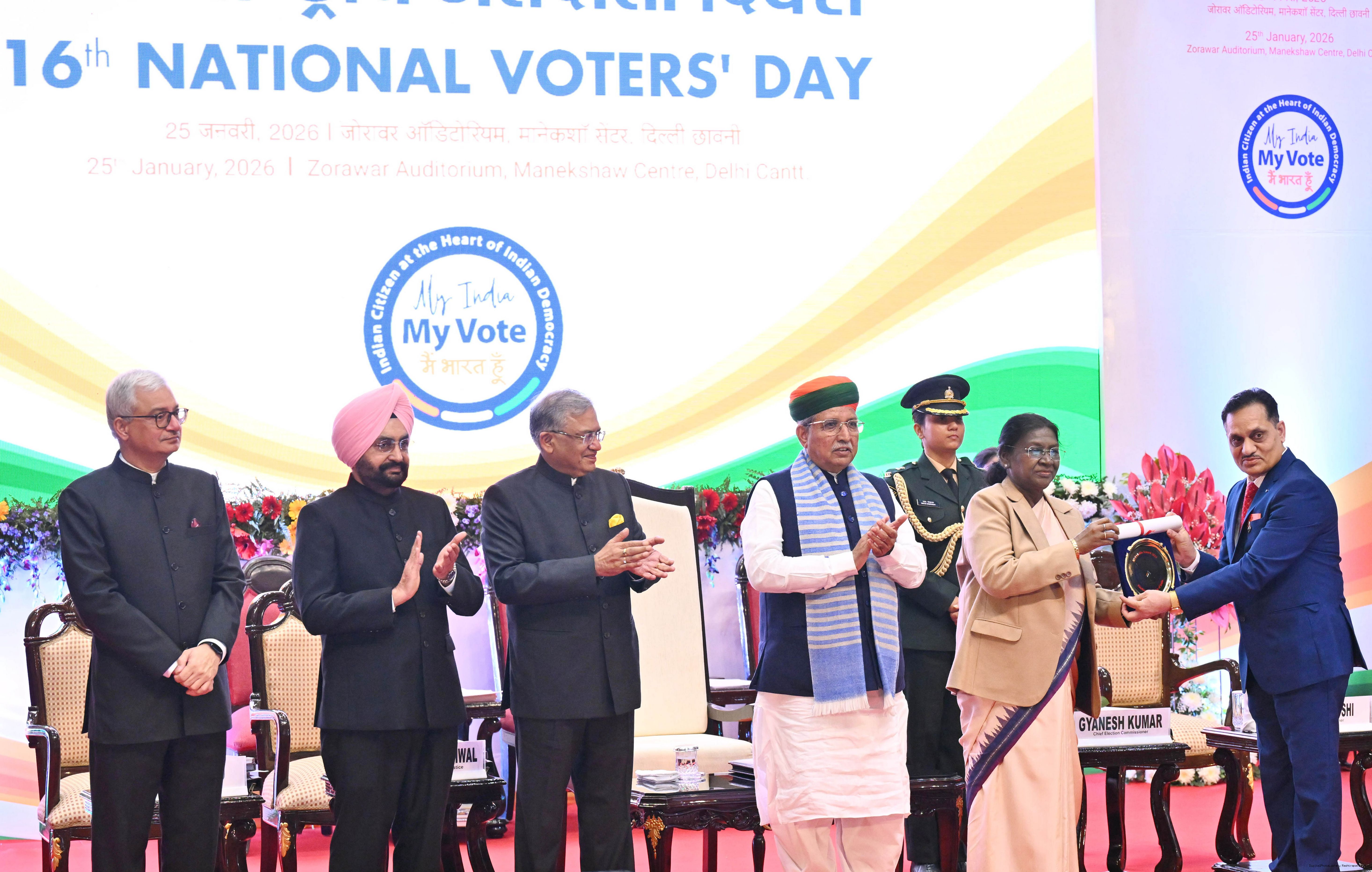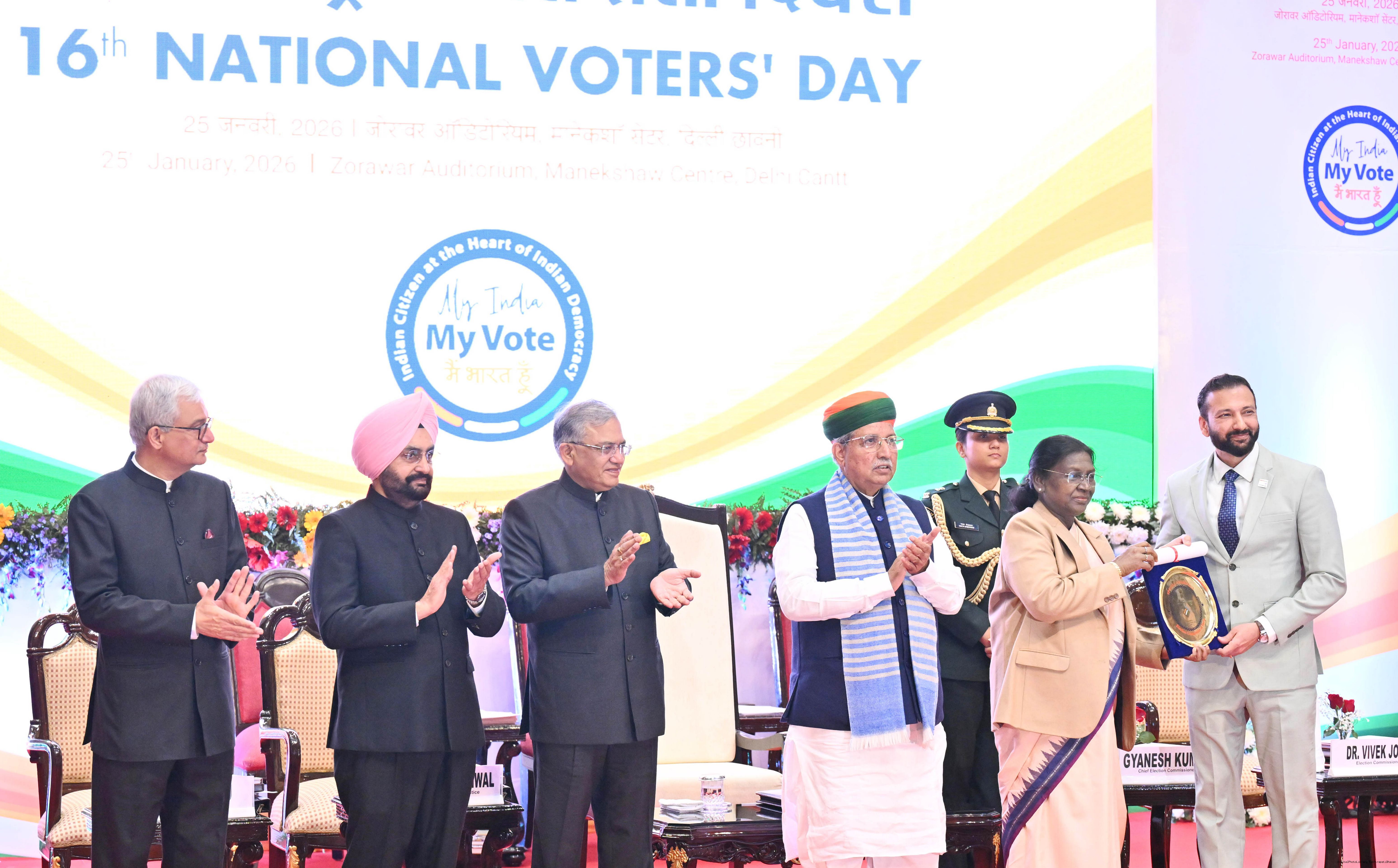 | Caption: | The President of India, Smt Droupadi Murmu, graced and addressed the 16th National Voters’ Day Celebrations in New Delhi on January 25, 2026. |