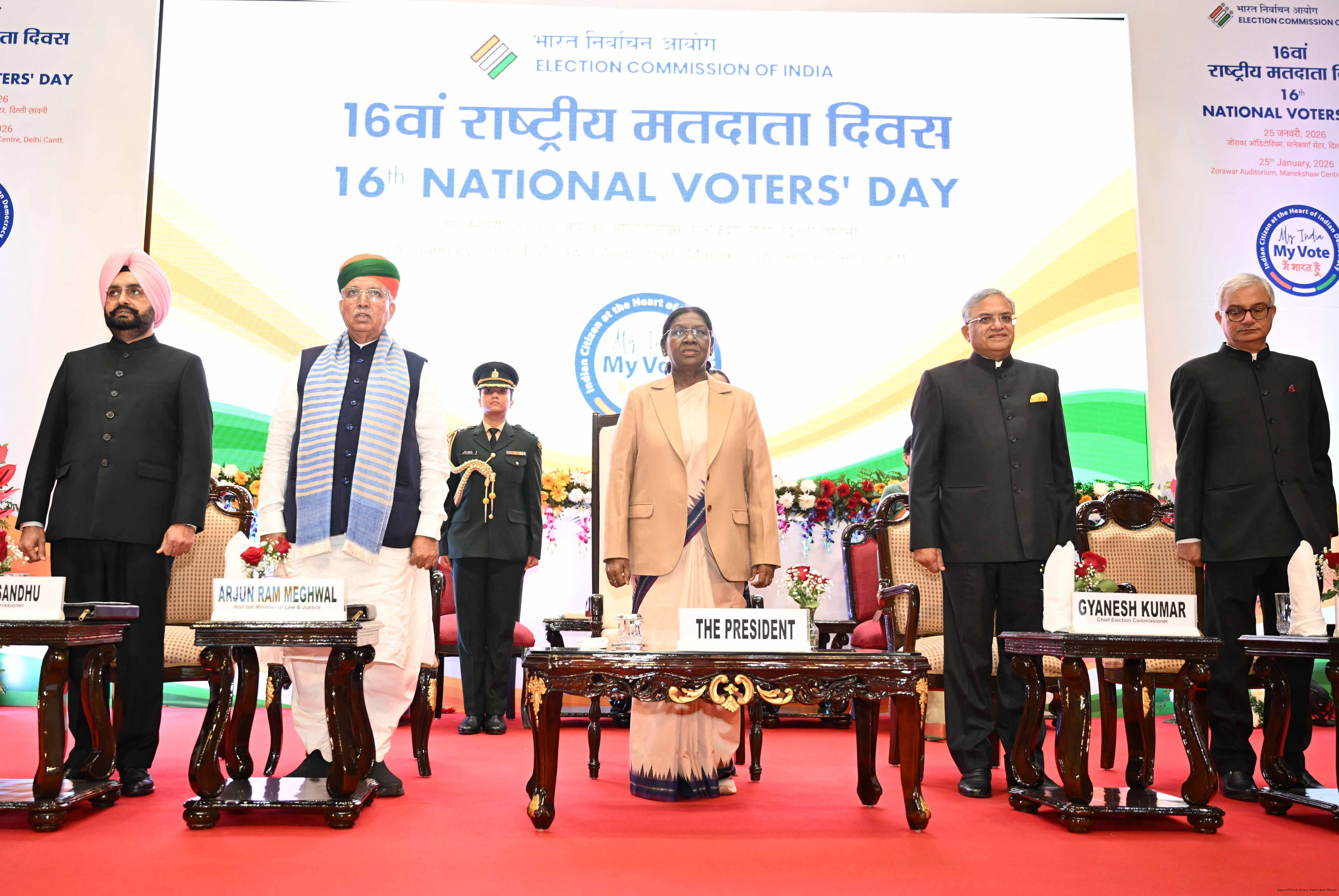 | Caption: | The President of India, Smt Droupadi Murmu, graced and addressed the 16th National Voters’ Day Celebrations in New Delhi on January 25, 2026. |