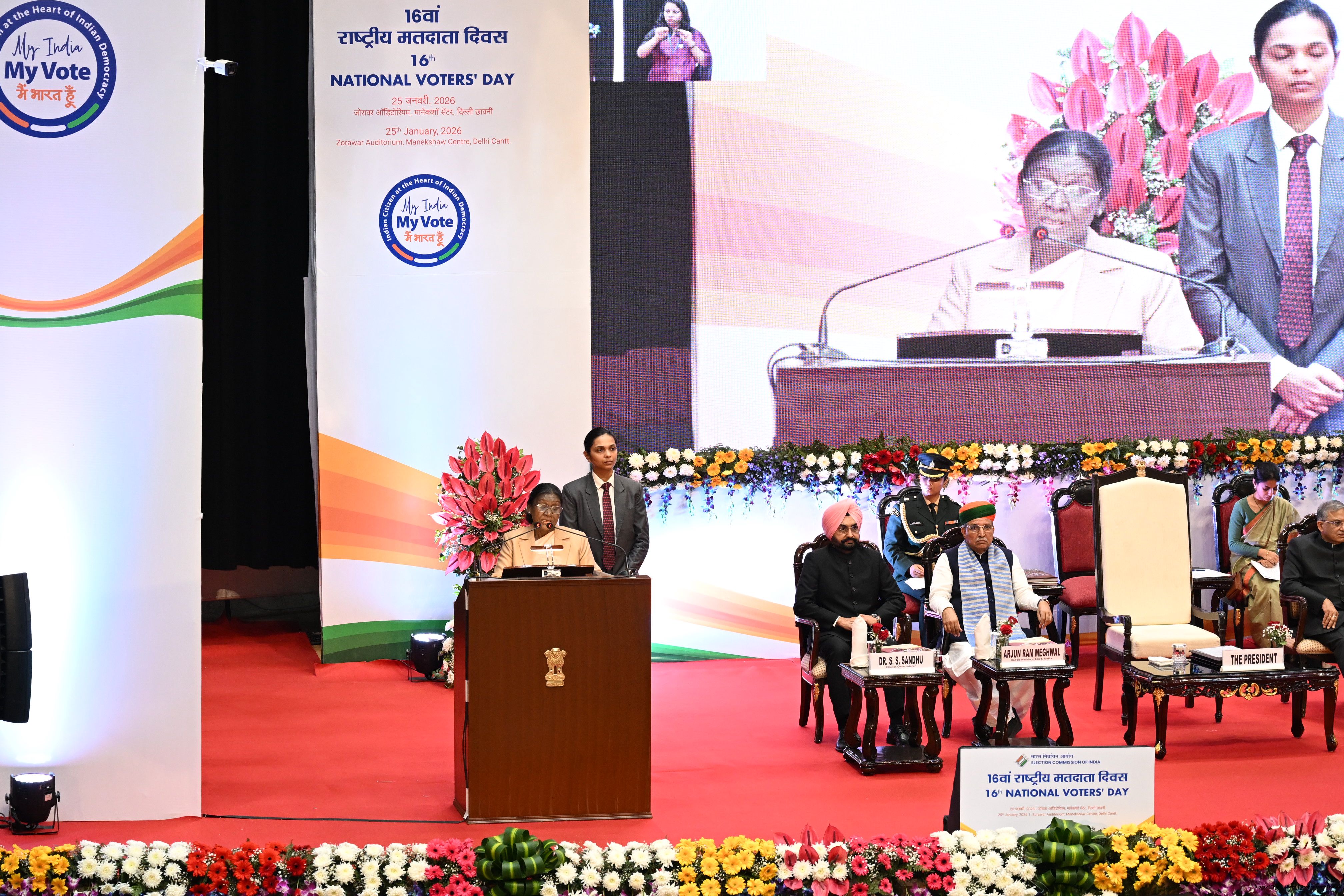| Caption: | The President of India, Smt Droupadi Murmu, graced and addressed the 16th National Voters’ Day Celebrations in New Delhi on January 25, 2026. |