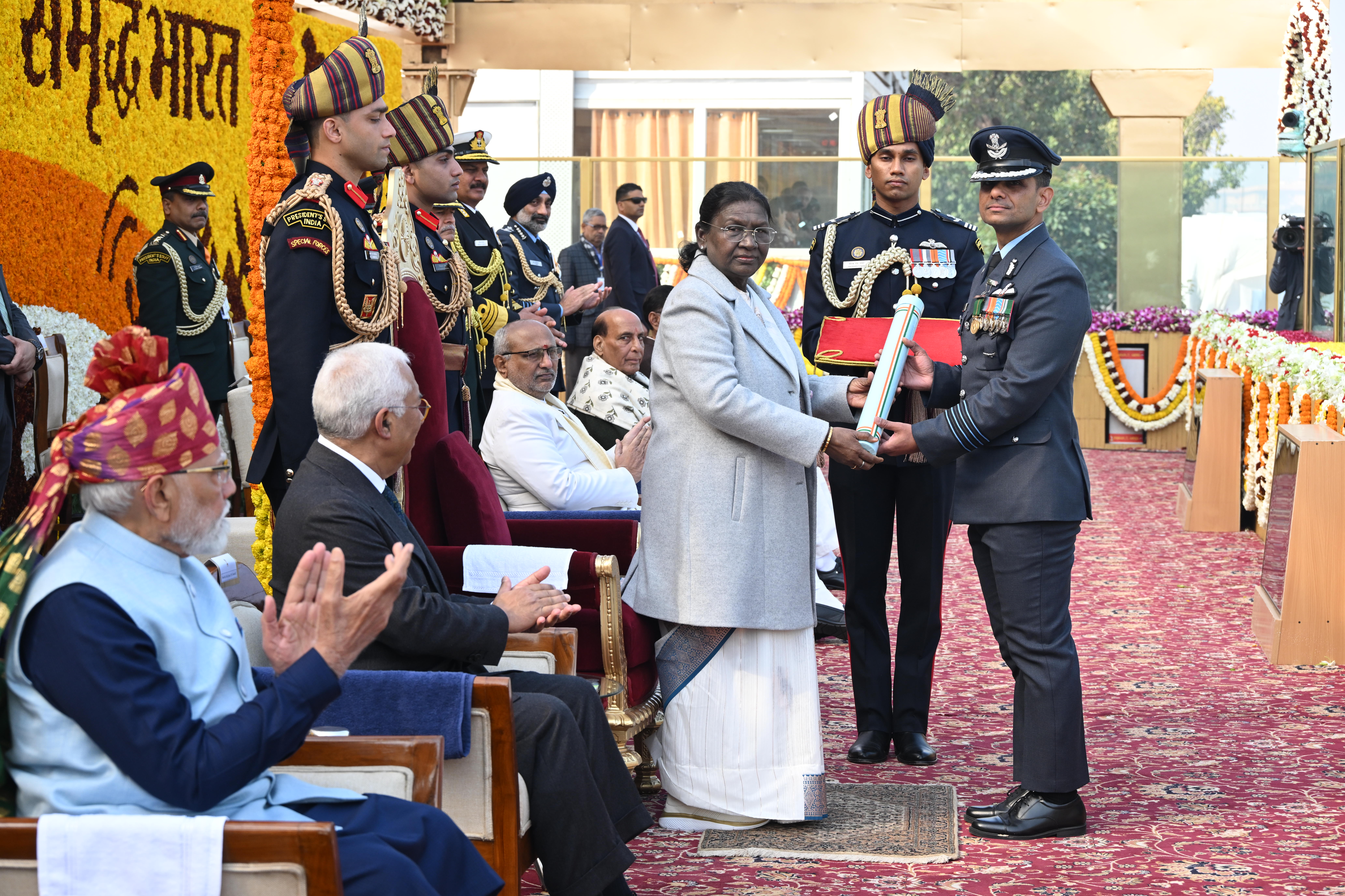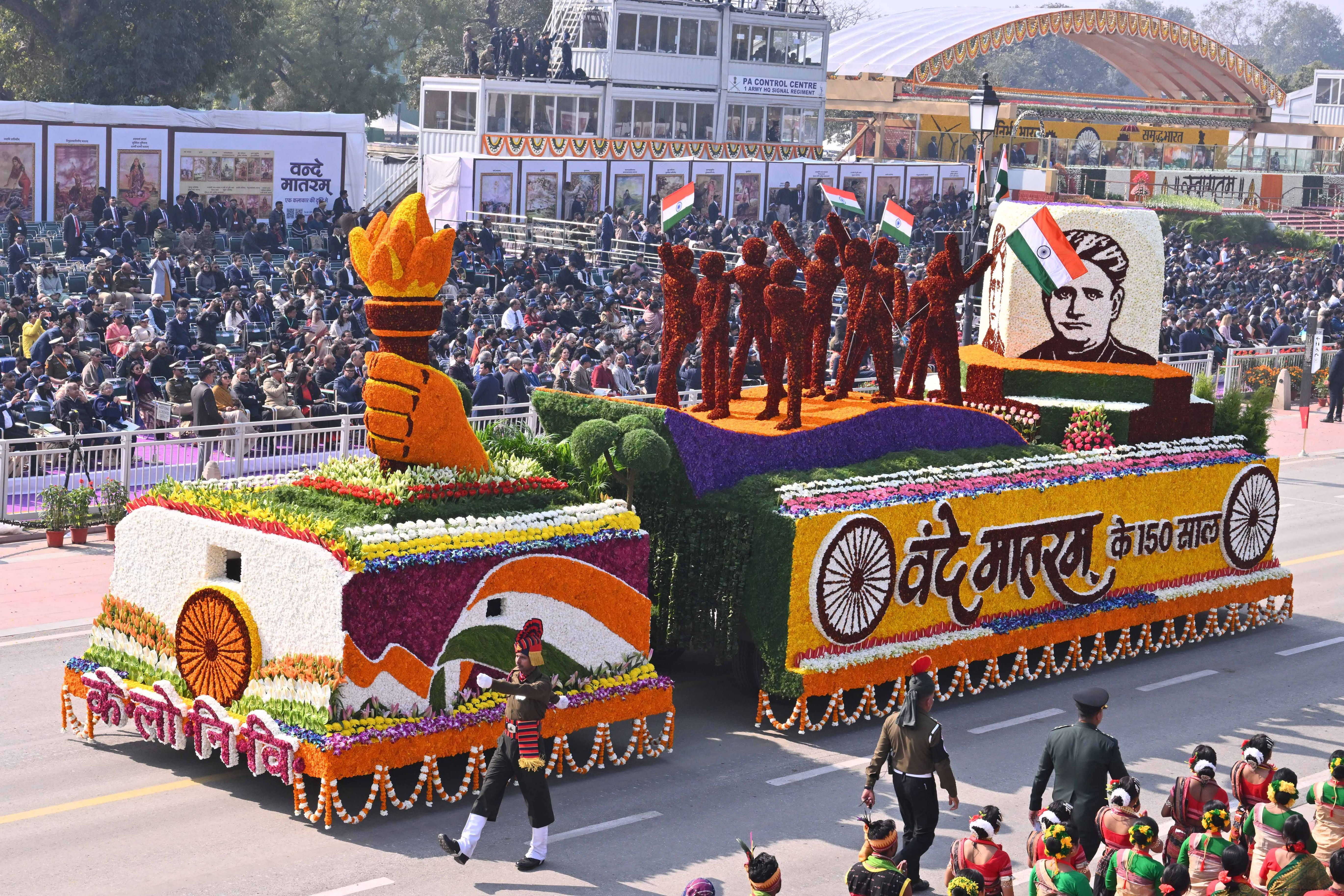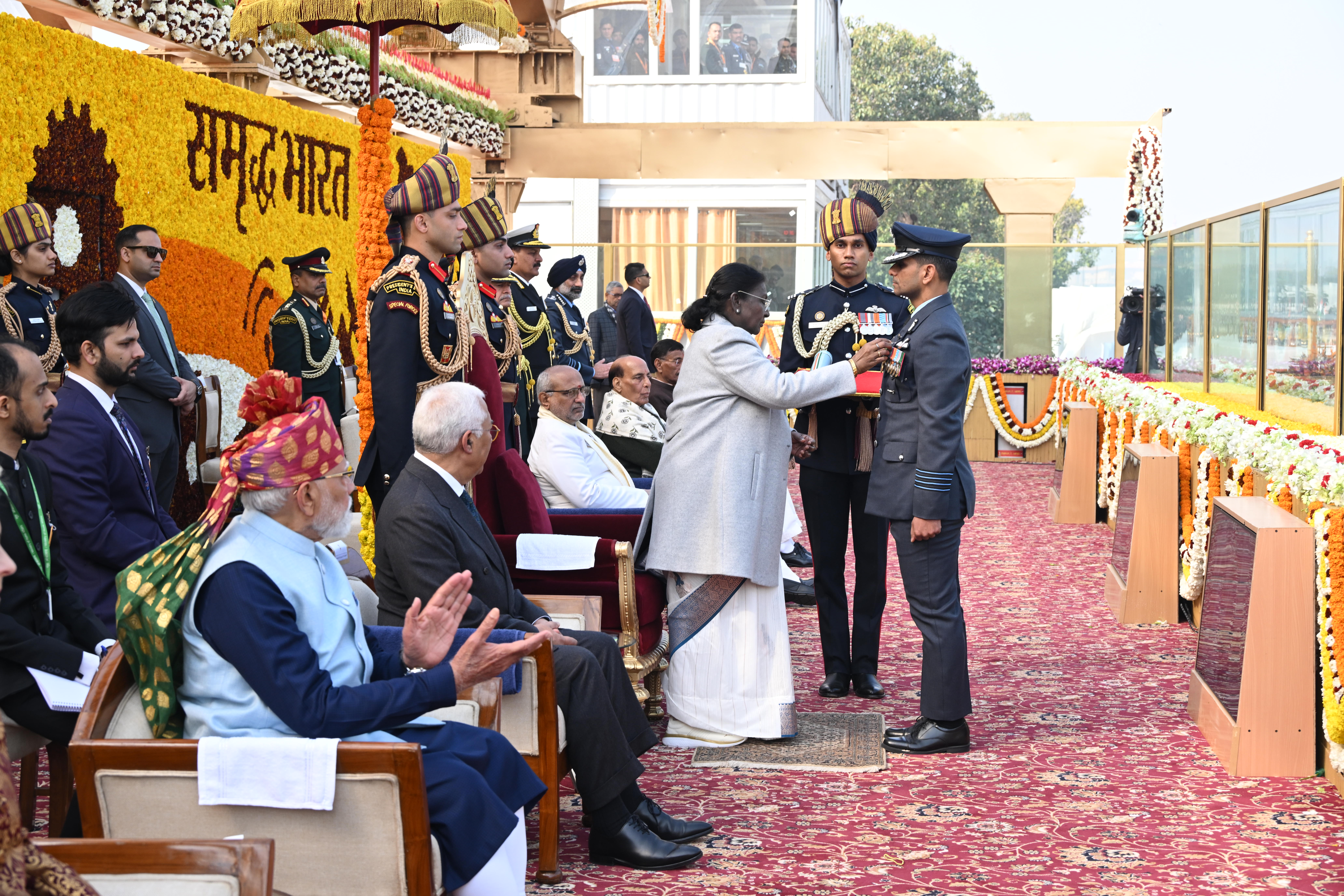 | Caption: | The President of India, Smt Droupadi Murmu, along with the Chief Guests, the President of the European Council Mr. Antonio Costa, and the President of the European Commission Ms. Ursula von der Leyen, witnessed the 77th Republic Day Parade at Kartavya Path on January 26, 2026. |