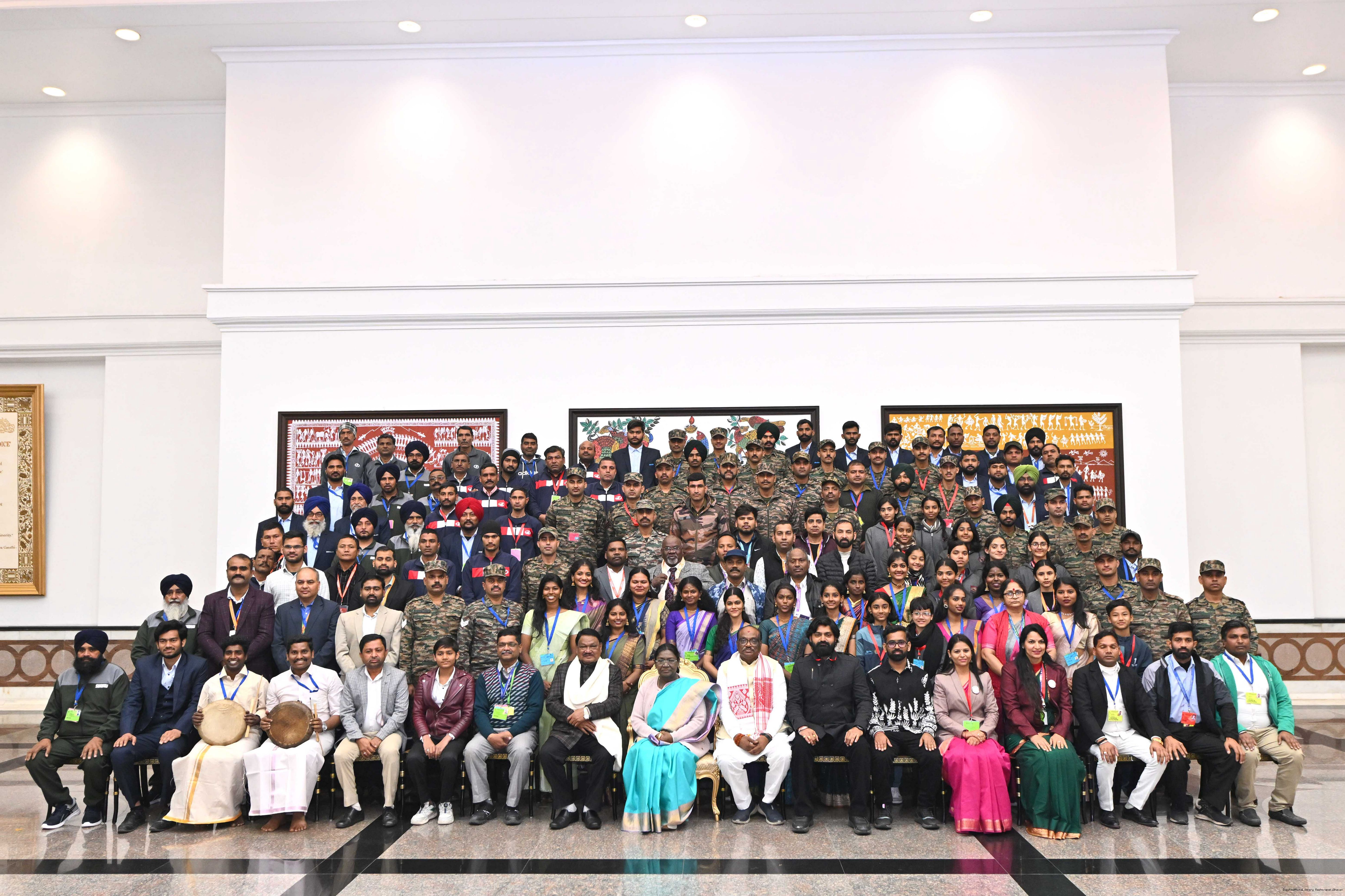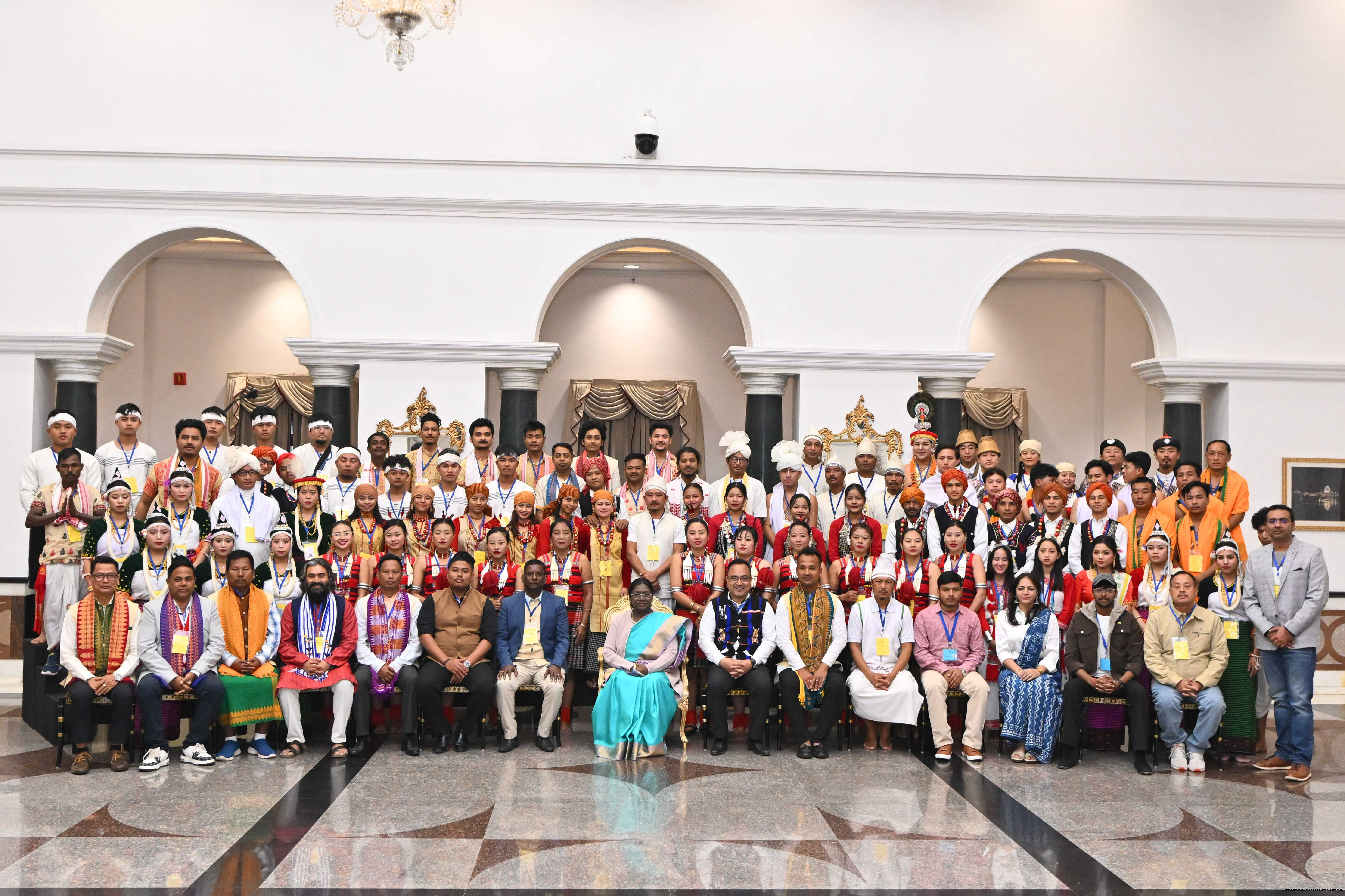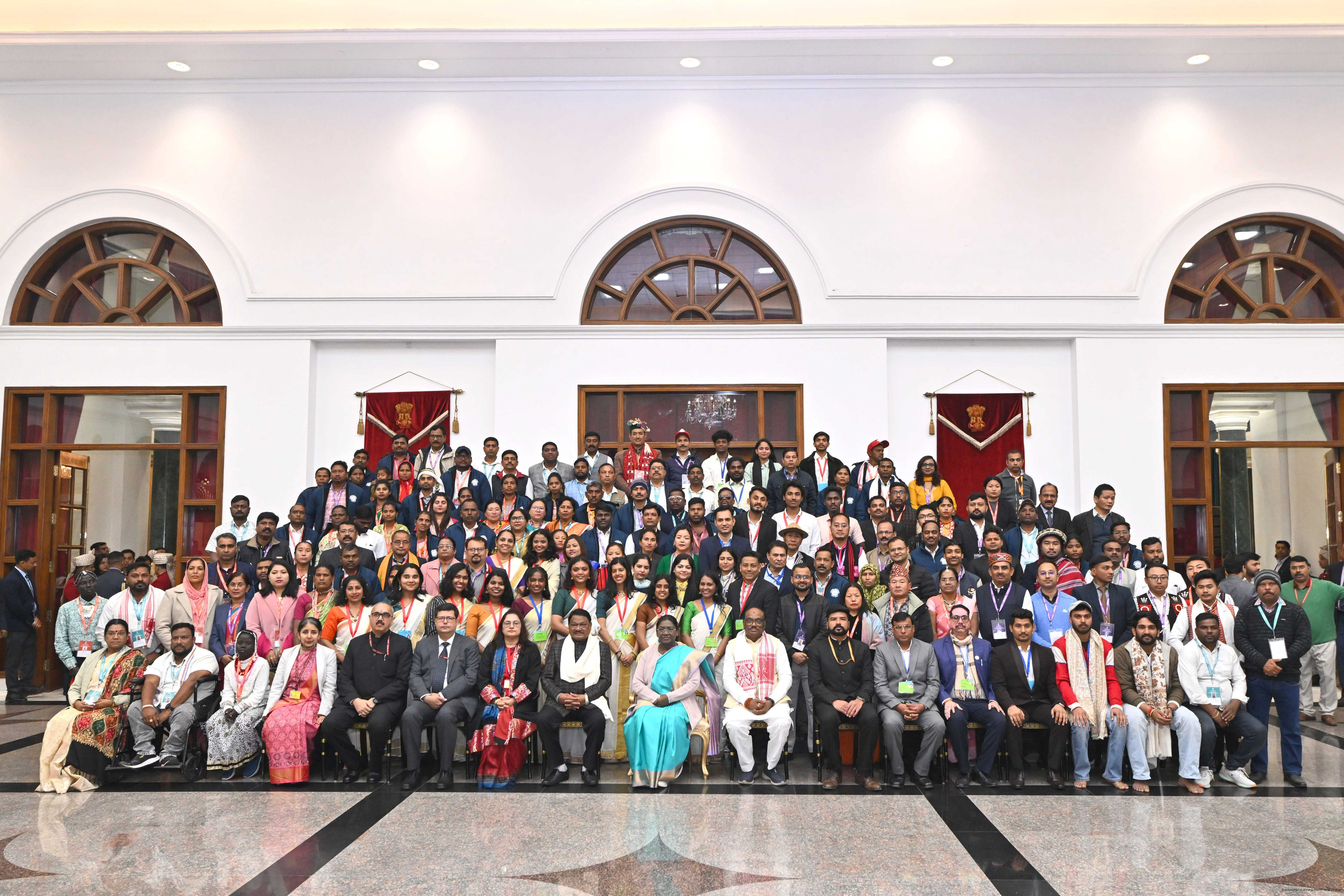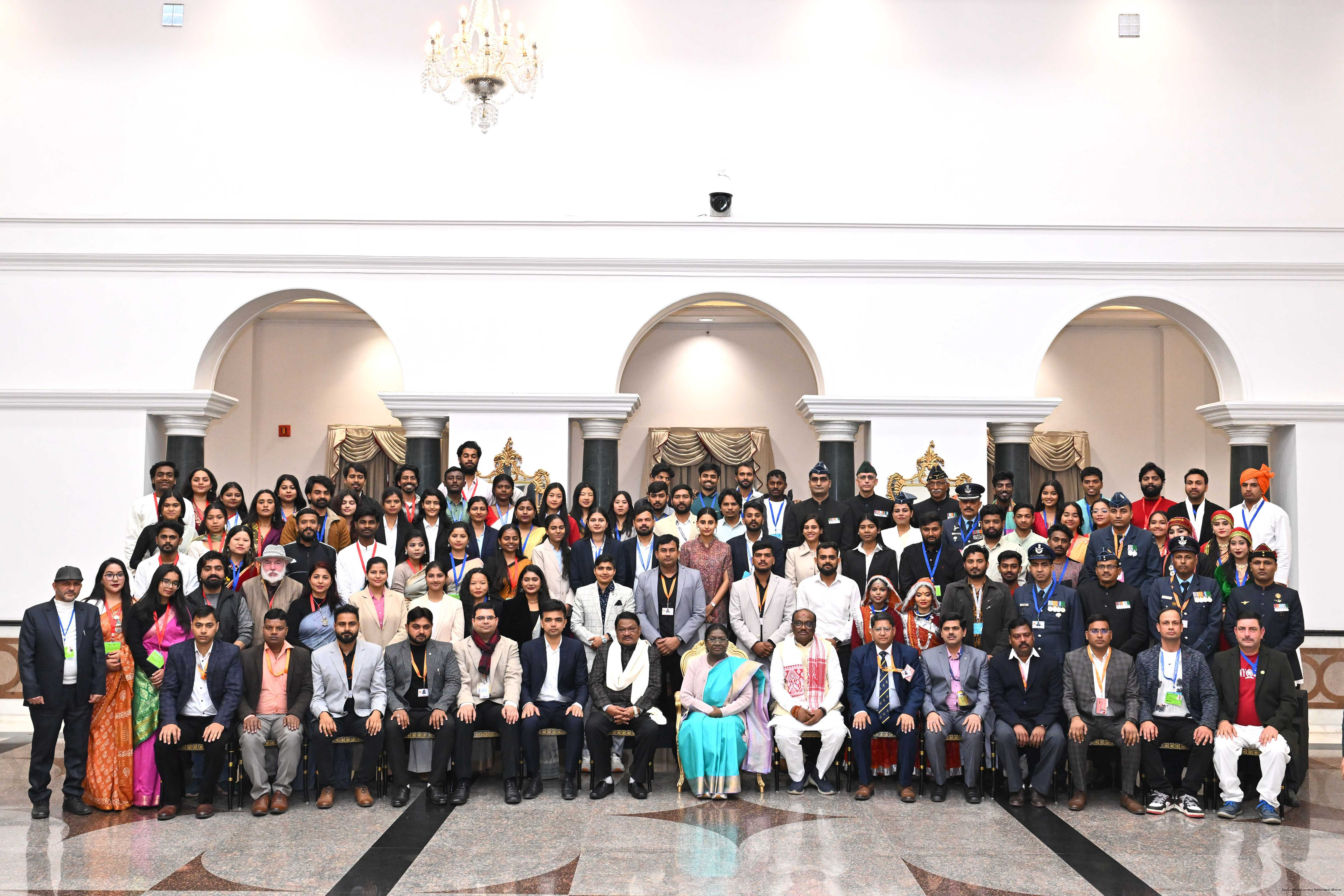| Caption: | The President of India, Smt Droupadi Murmu met guests from tribal communities, tableaux artists and tractor drivers, NSS volunteers and NCC cadets, officials and other participants of the Republic Day Parade 2026 at Rashtrapati Bhavan on January 27, 2026. |