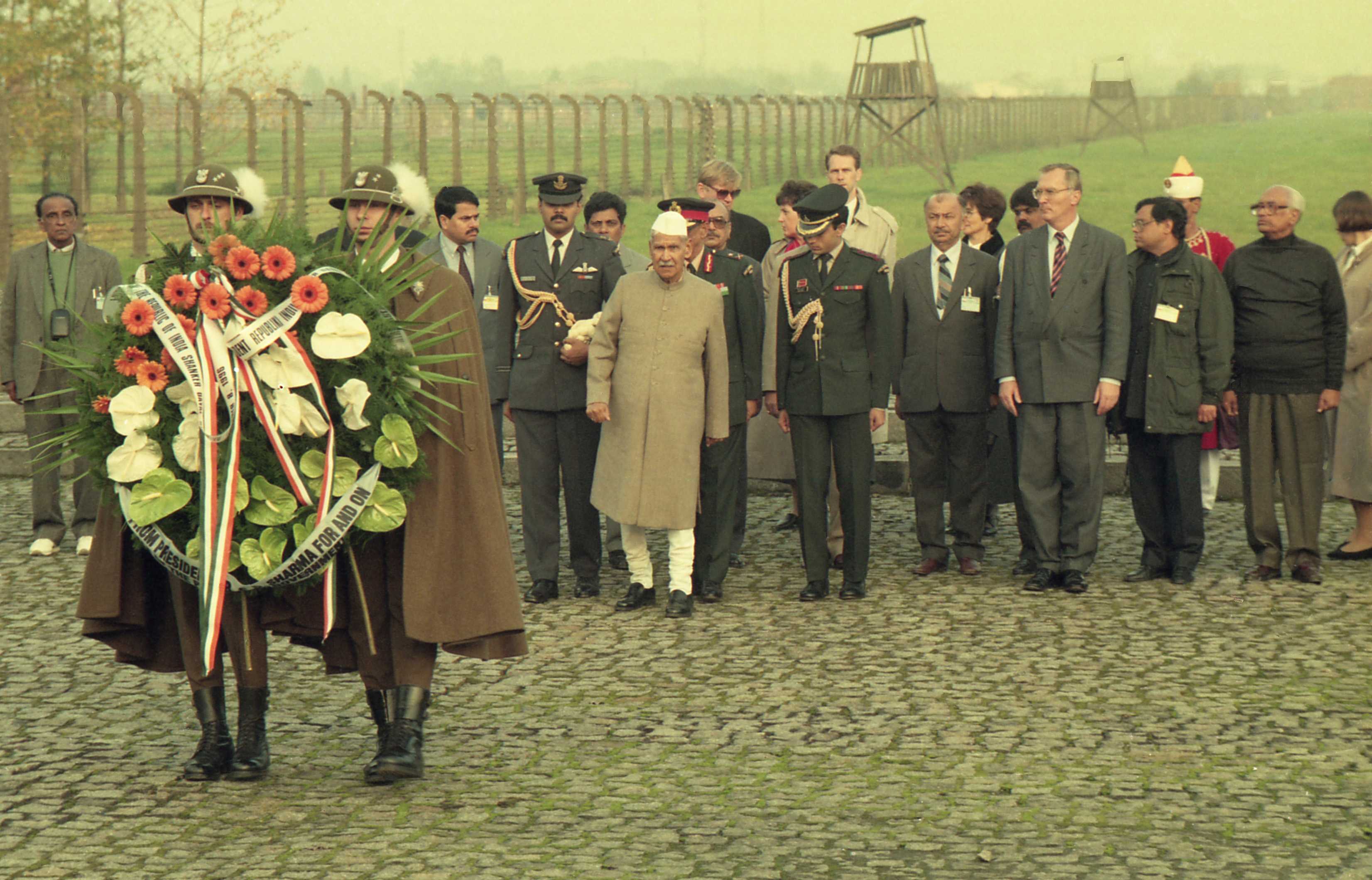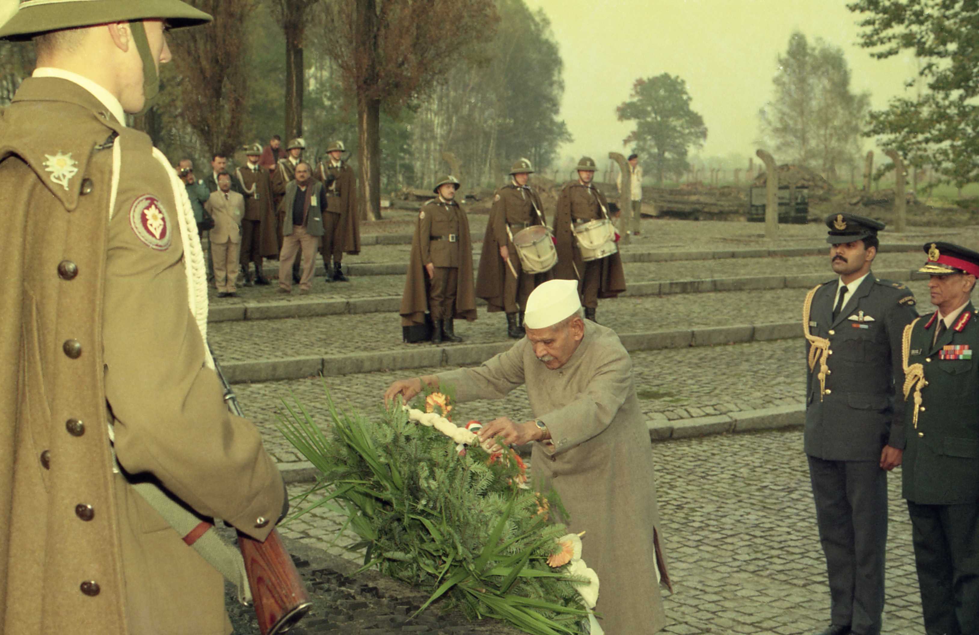 | Caption: | The President of India, Dr. Shankar Dayal Sharma laying wreath at the Monument of Nations, at former Birkenau Concentration Camp, in Warsaw, Poland on October 08, 1996. |