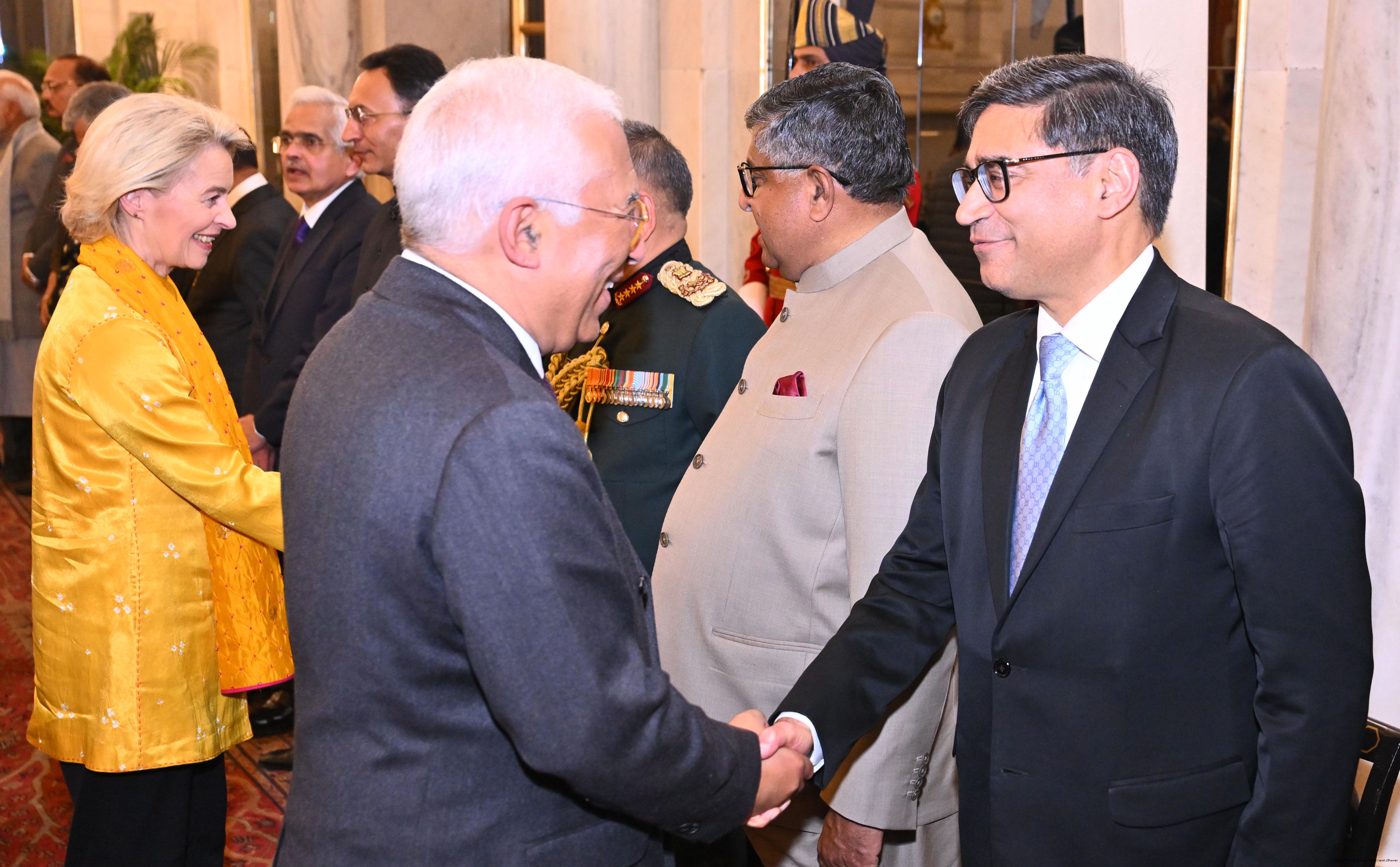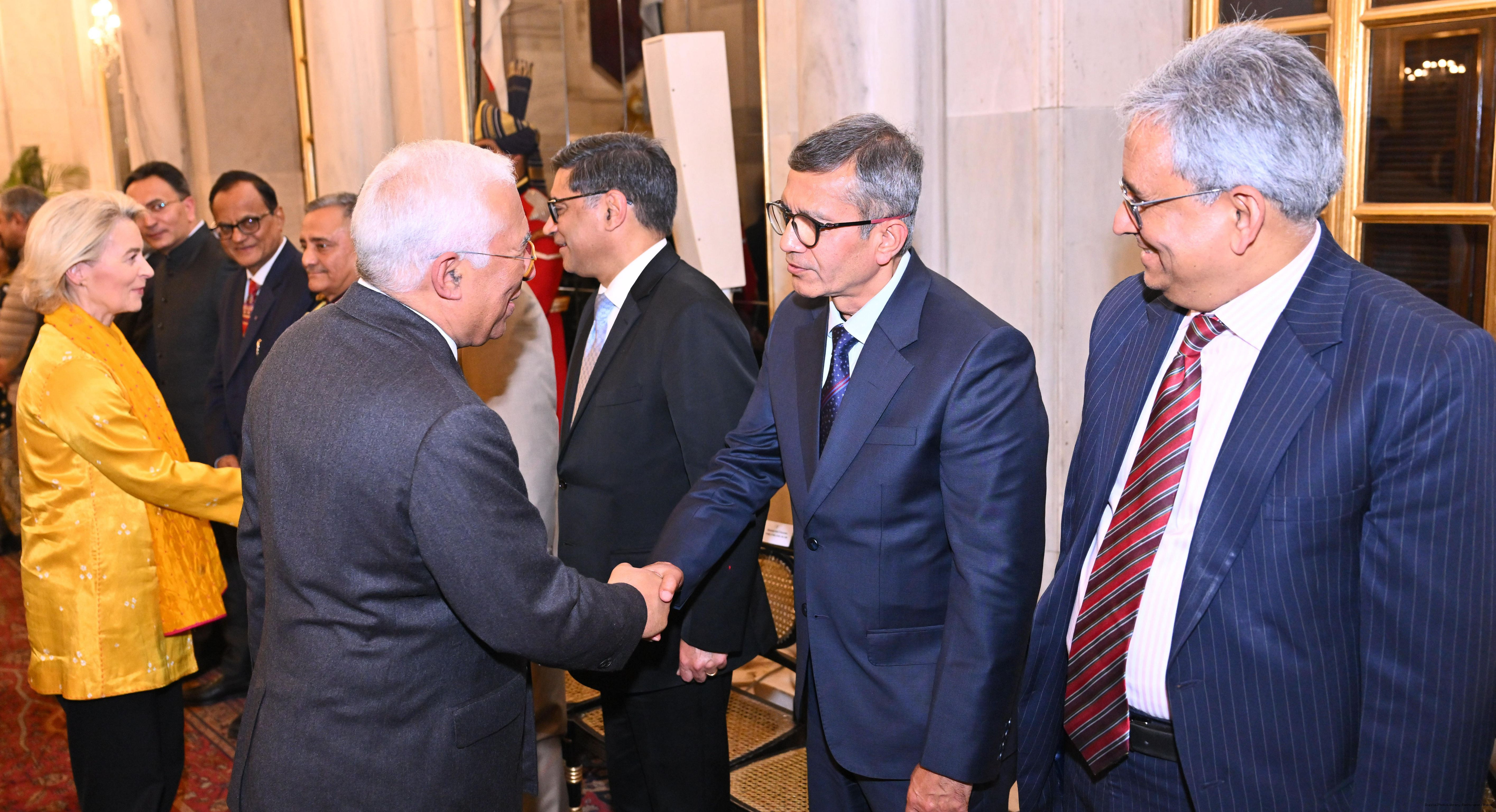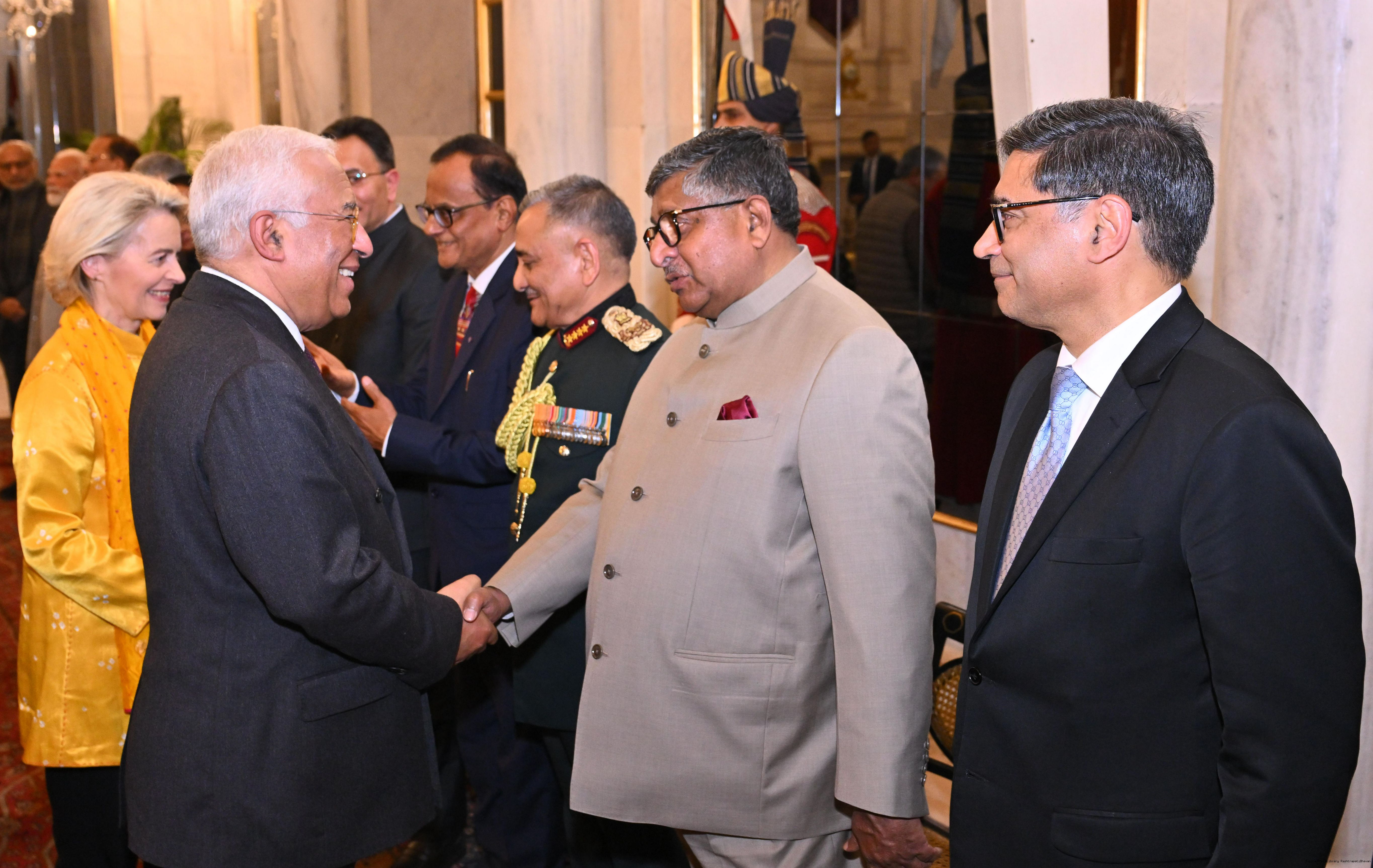 | Caption: | The President of India, Smt Droupadi Murmu hosted a banquet in the honour of the Chief Guests of the 77th Republic Day Celebrations, H. E. António Costa, President of the European Council and H. E. Ms Ursula von der Leyen, President of the European Commission at Rashtrapati Bhavan on January 27, 2026. |