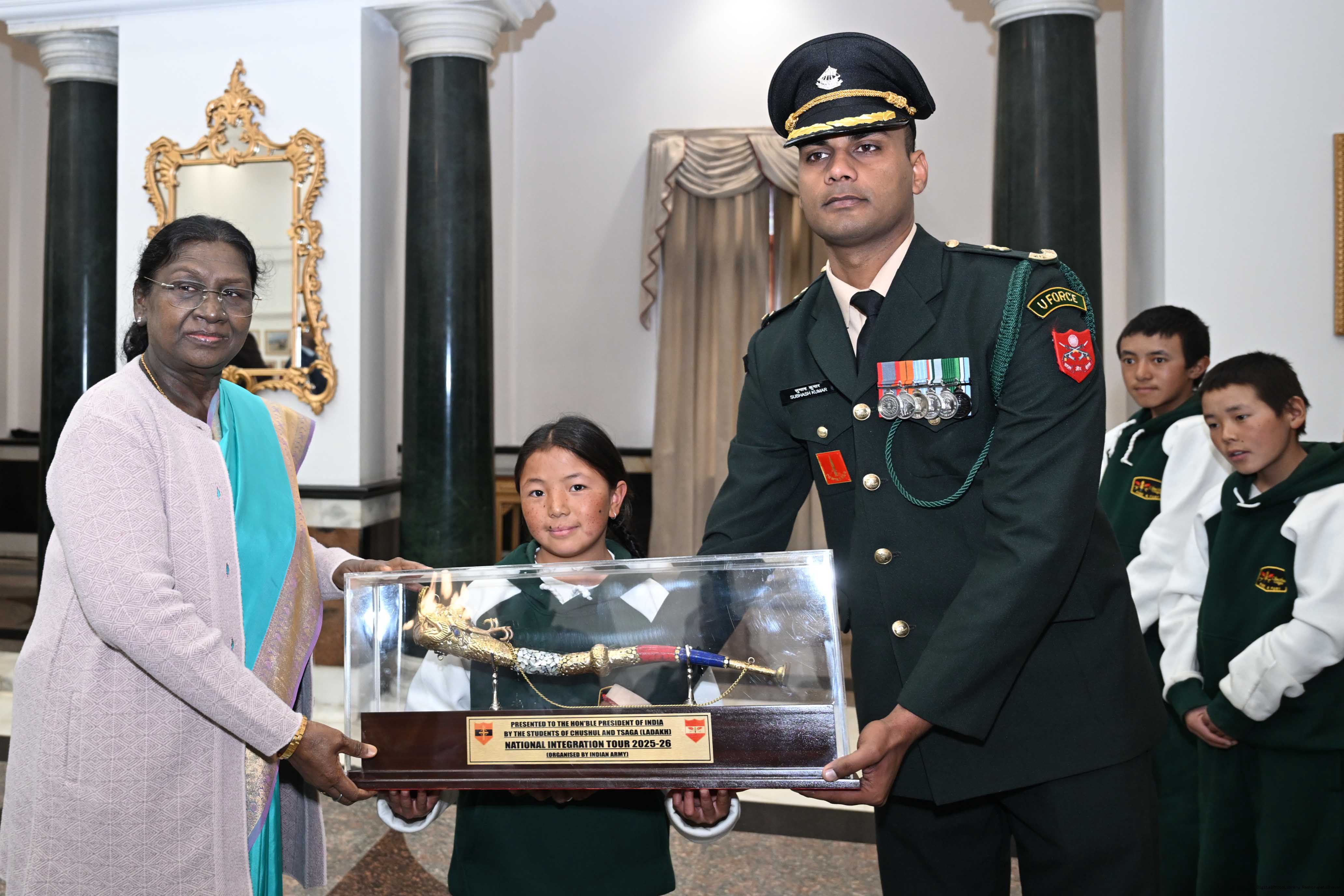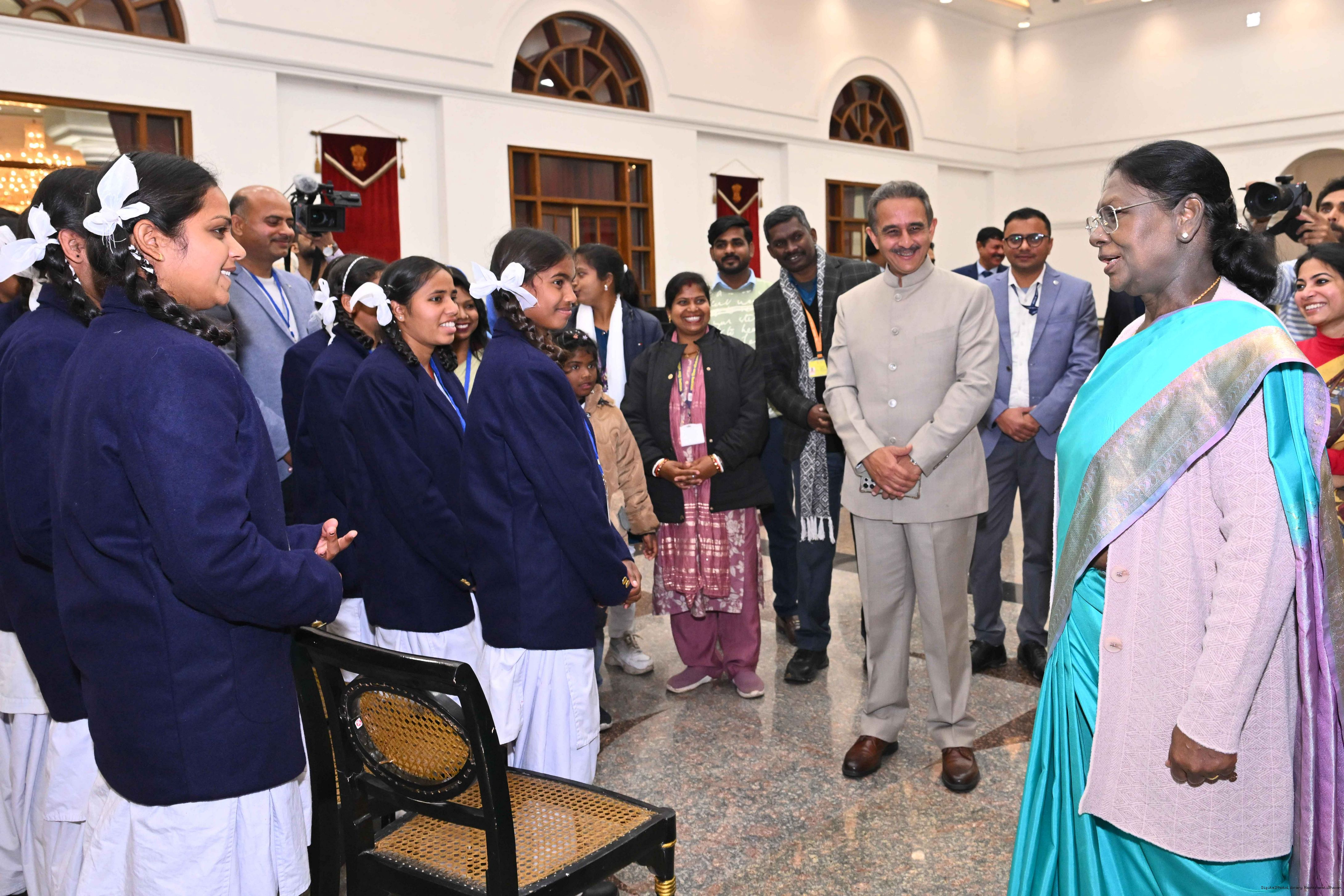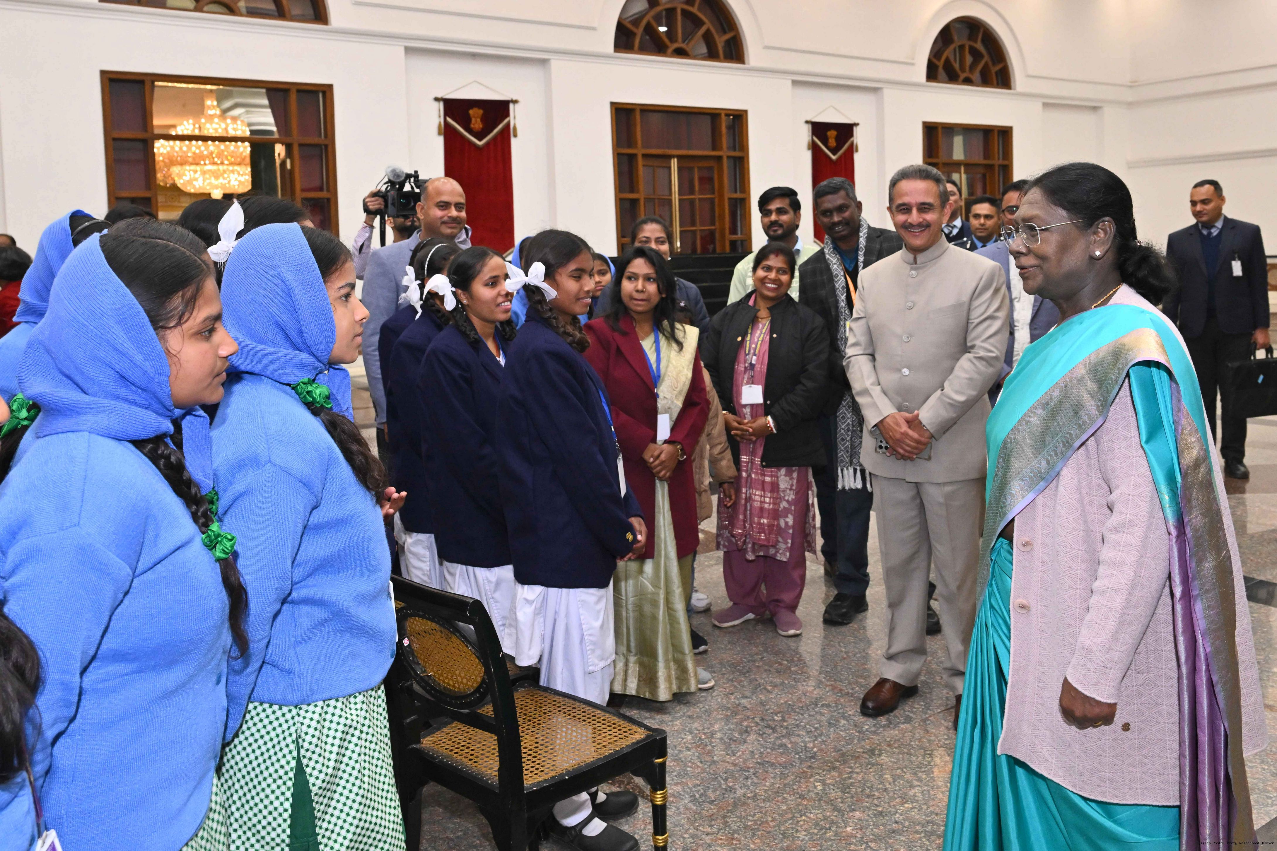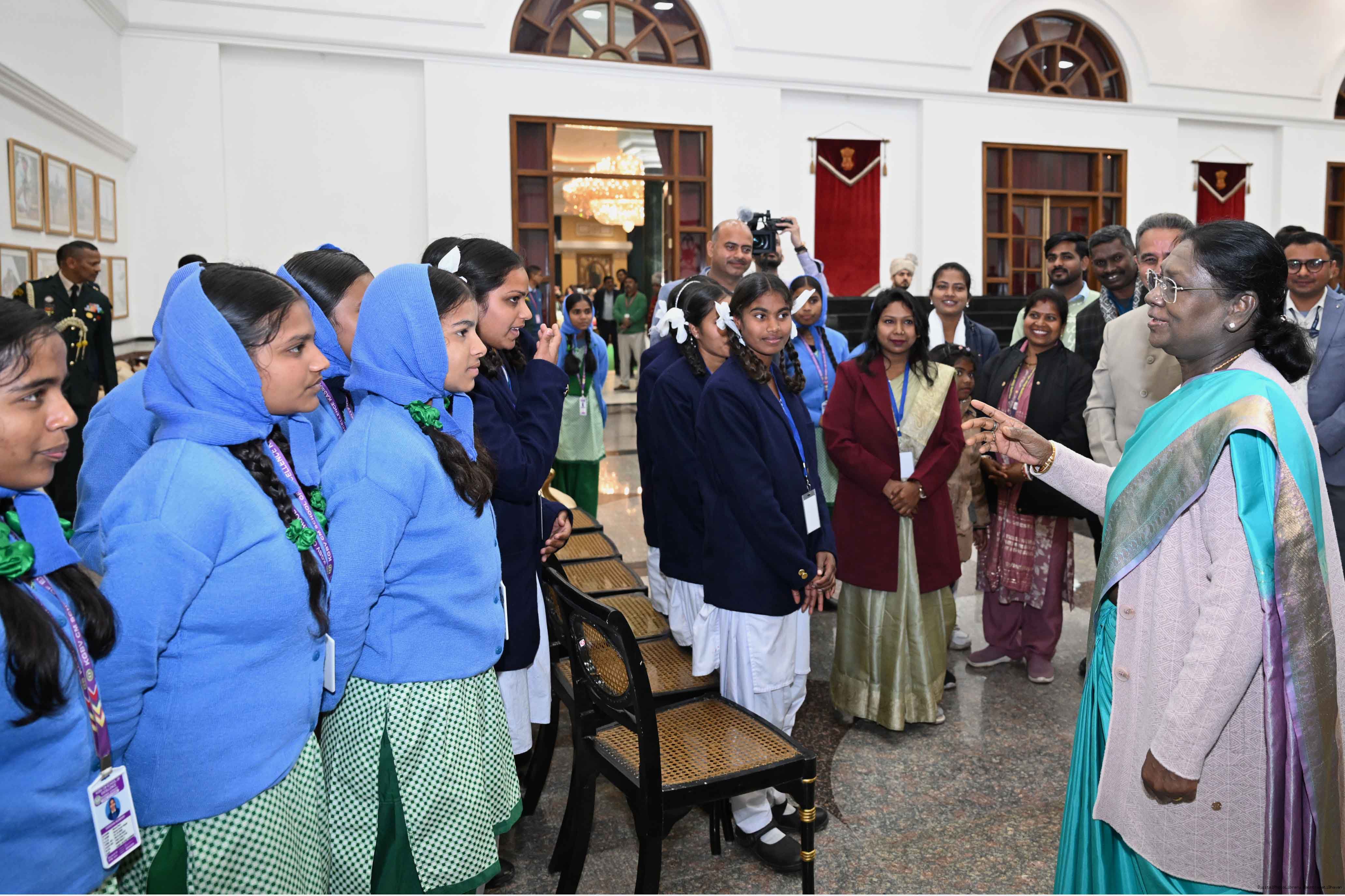 | Caption: | Separate groups of students from Leh, Jharkhand and Jammu Kashmir called on the President of India, Smt Droupadi Murmu at Rashtrapati Bhavan on January 27, 2026. The group visited Rashtrapati Bhavan as part of the National Integration Tour. |