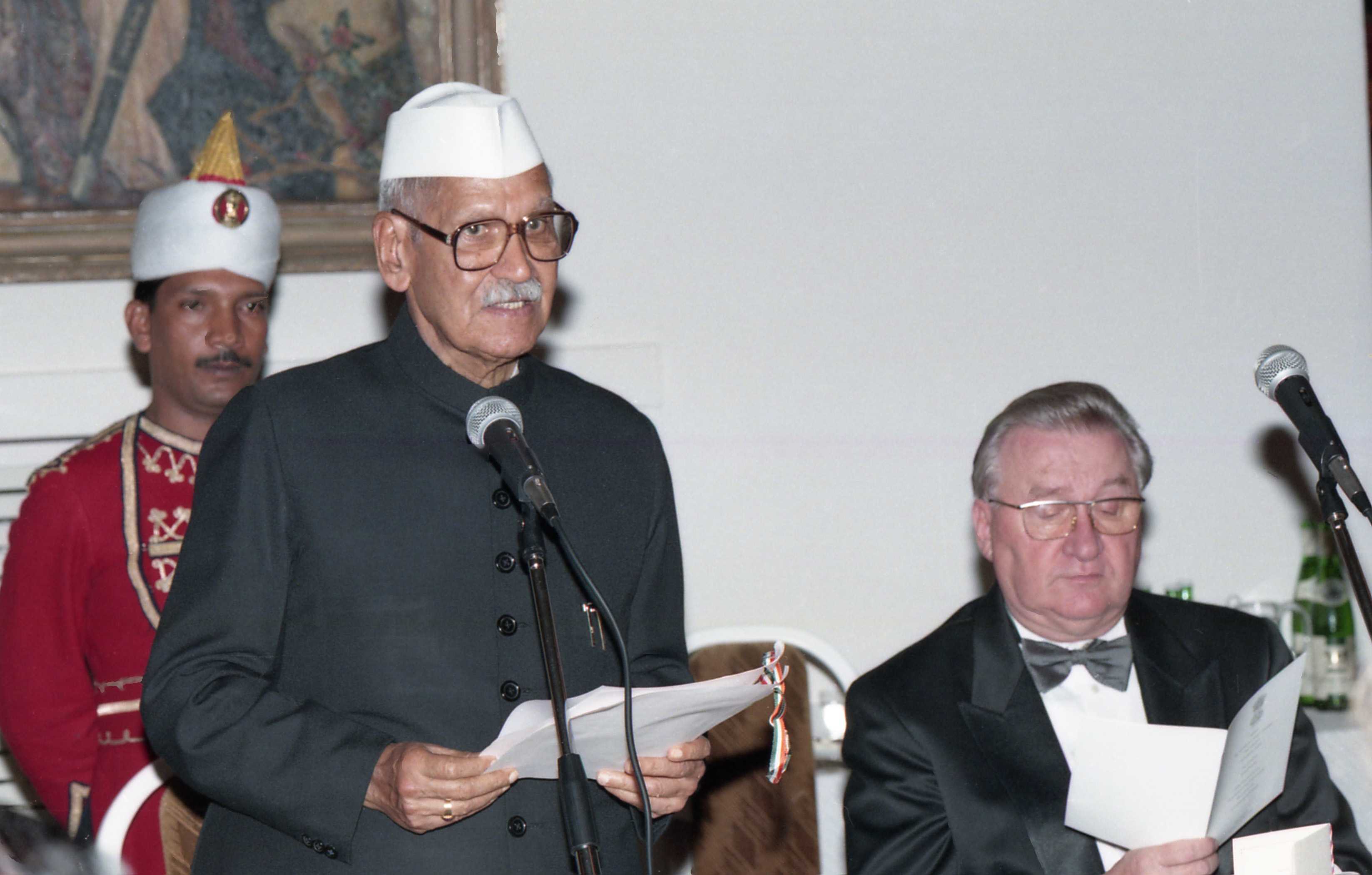 | Caption: | The President of India, Dr. Shankar Dayal Sharma addressing the Banquet hosted by President of the Slovak Republic, Mr. Michal Kovac, at Presidential Palace, in Bratislava, Slovakia on October 09, 1996. |