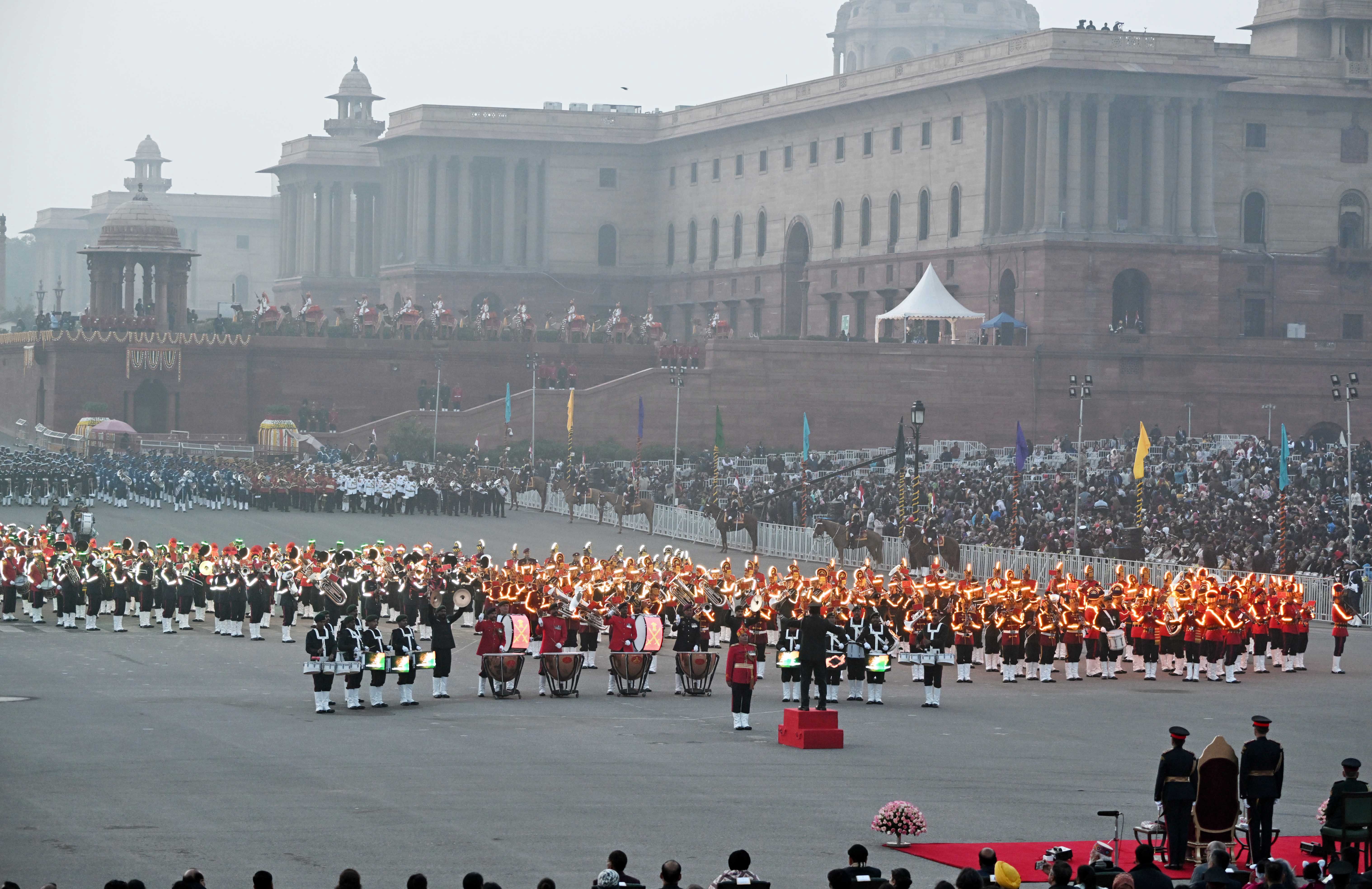 | Caption: | The 77th Republic Day celebrations concluded with the Beating Retreat ceremony at Vijay Chowk, presided over by the President of India, Smt Droupadi Murmu on January 29, 2026. |