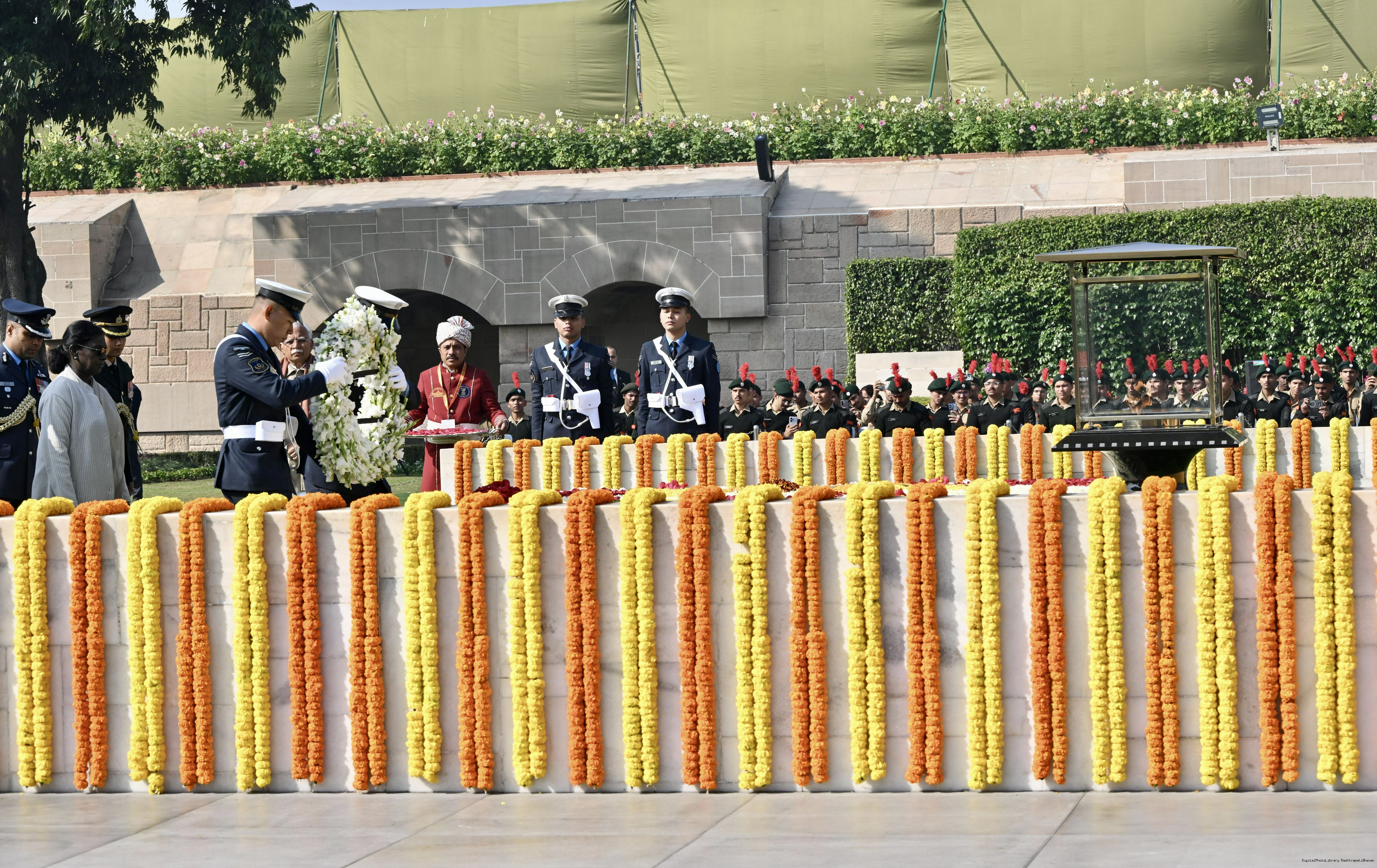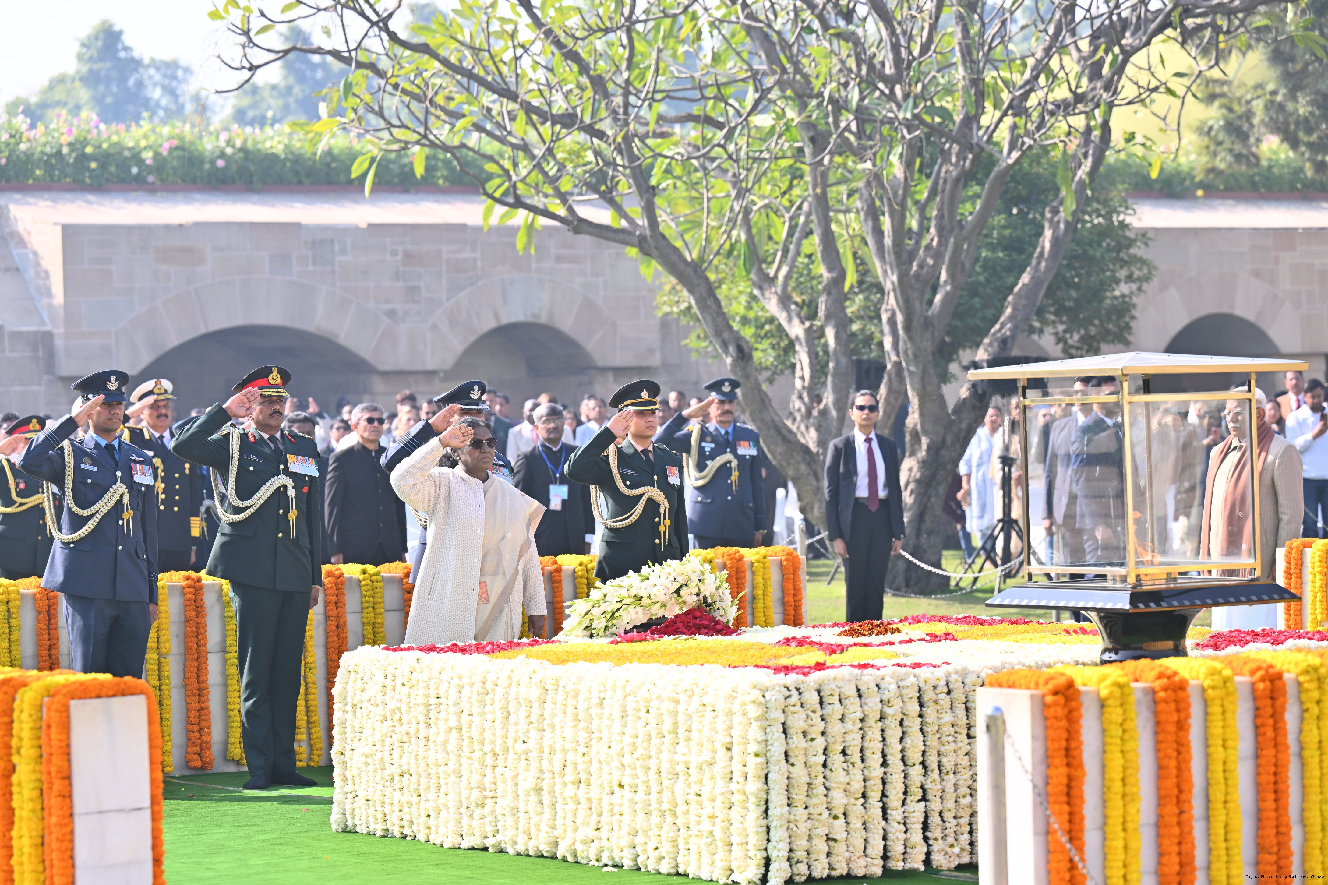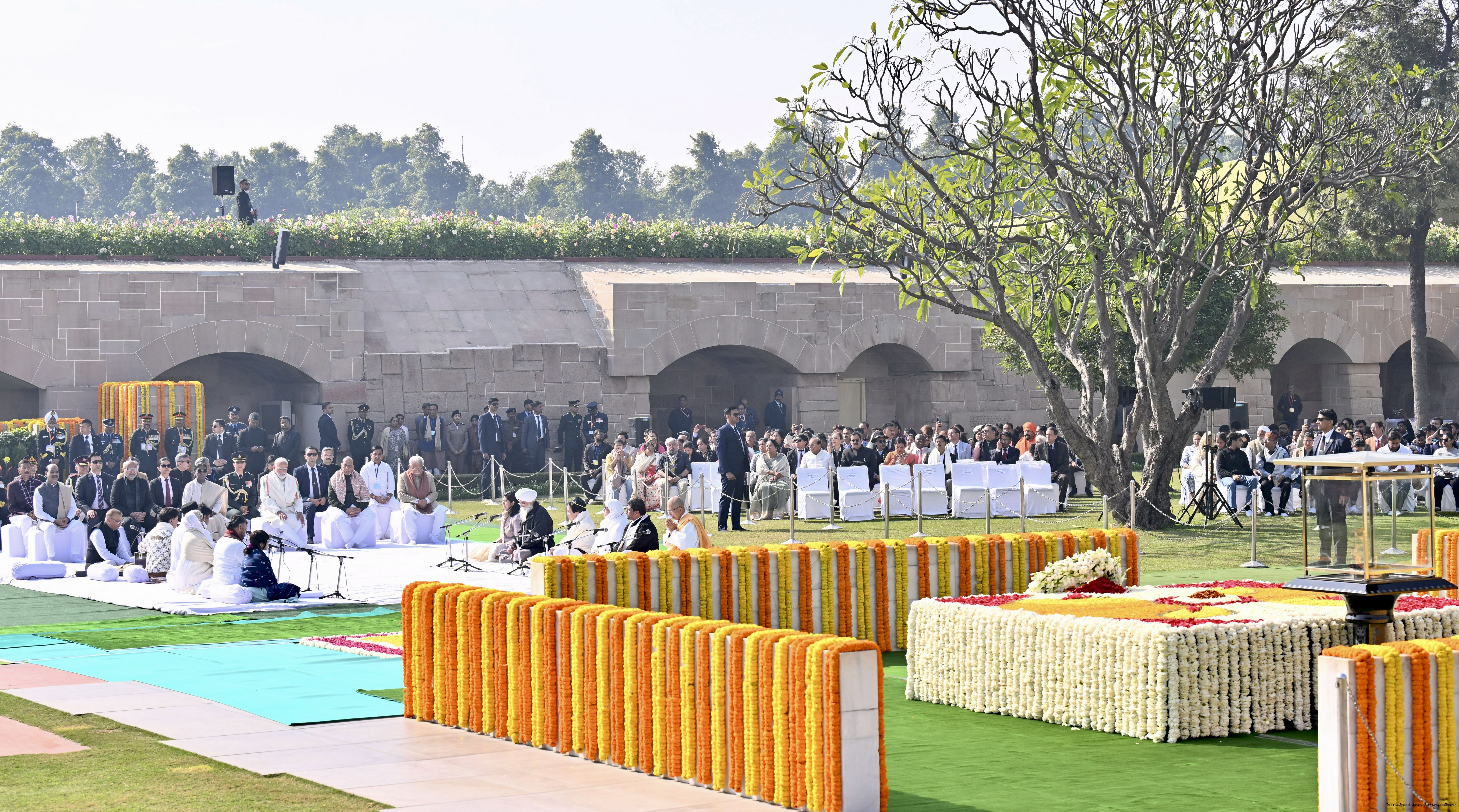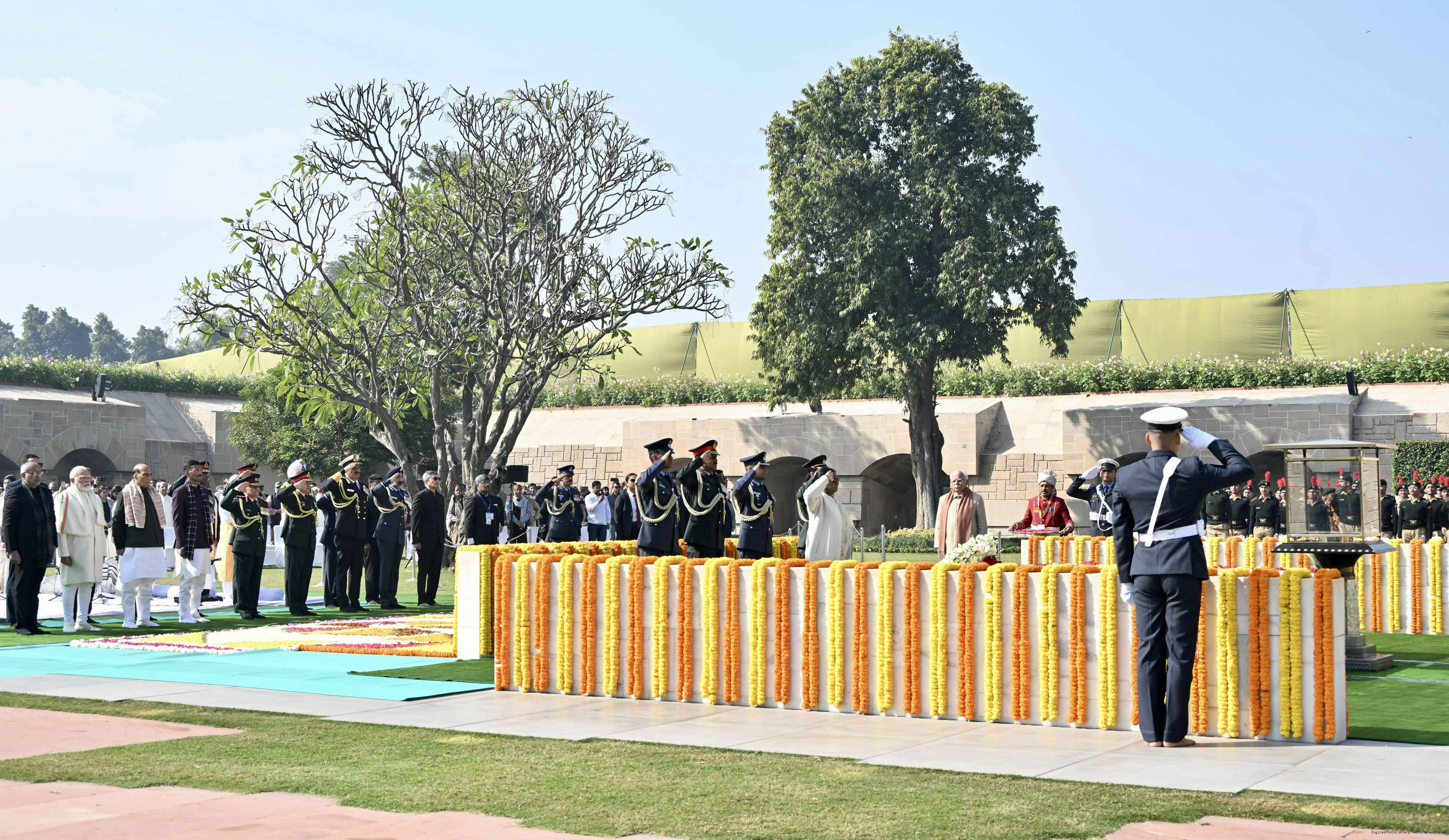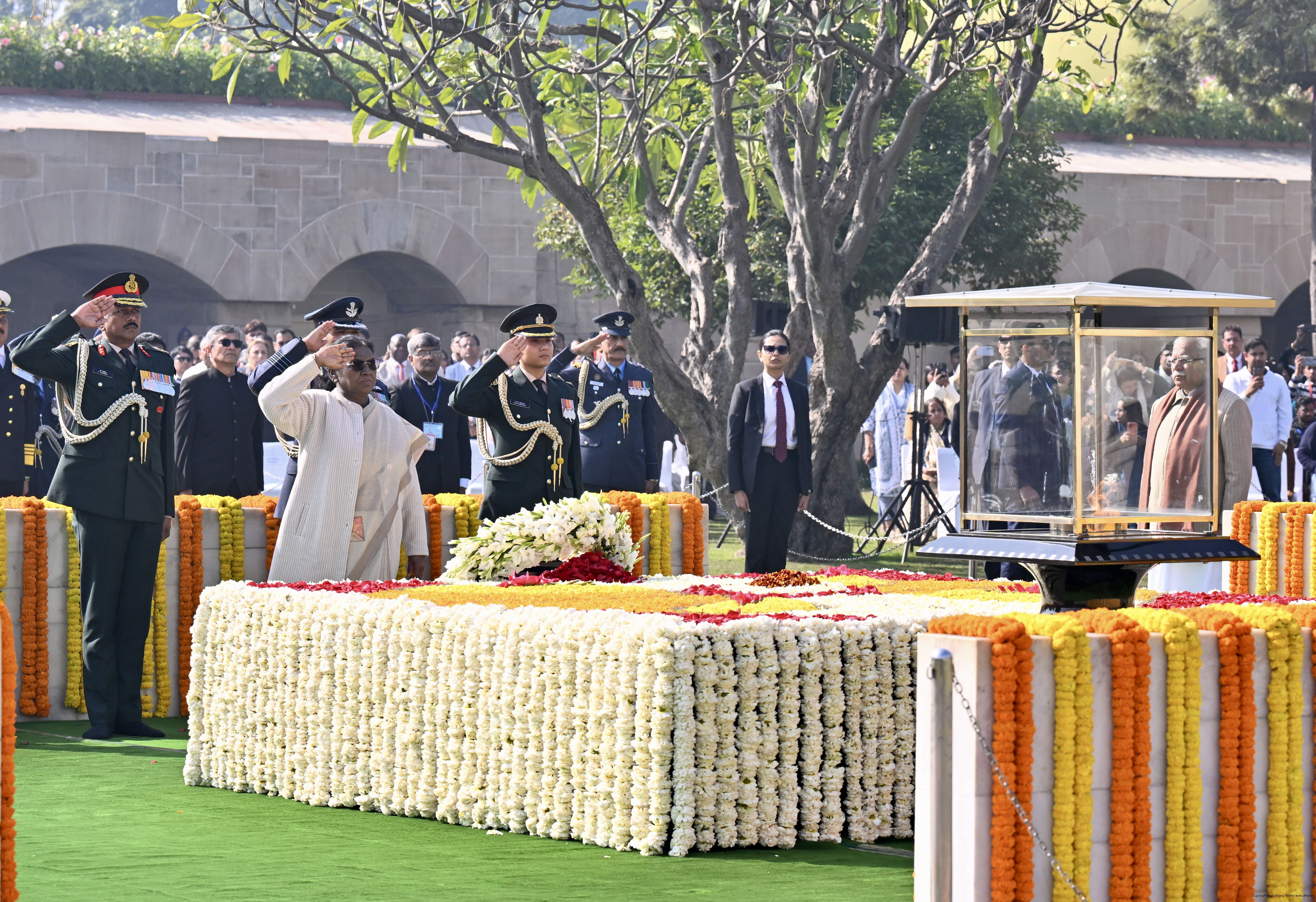 | Caption: | The President of India, Smt Droupadi Murmu paid homage to Mahatma Gandhi on his 78th Punyatithi and attended a Sarva Dharma Prarthana at Rajghat, New Delhi on January 30, 2026. |
