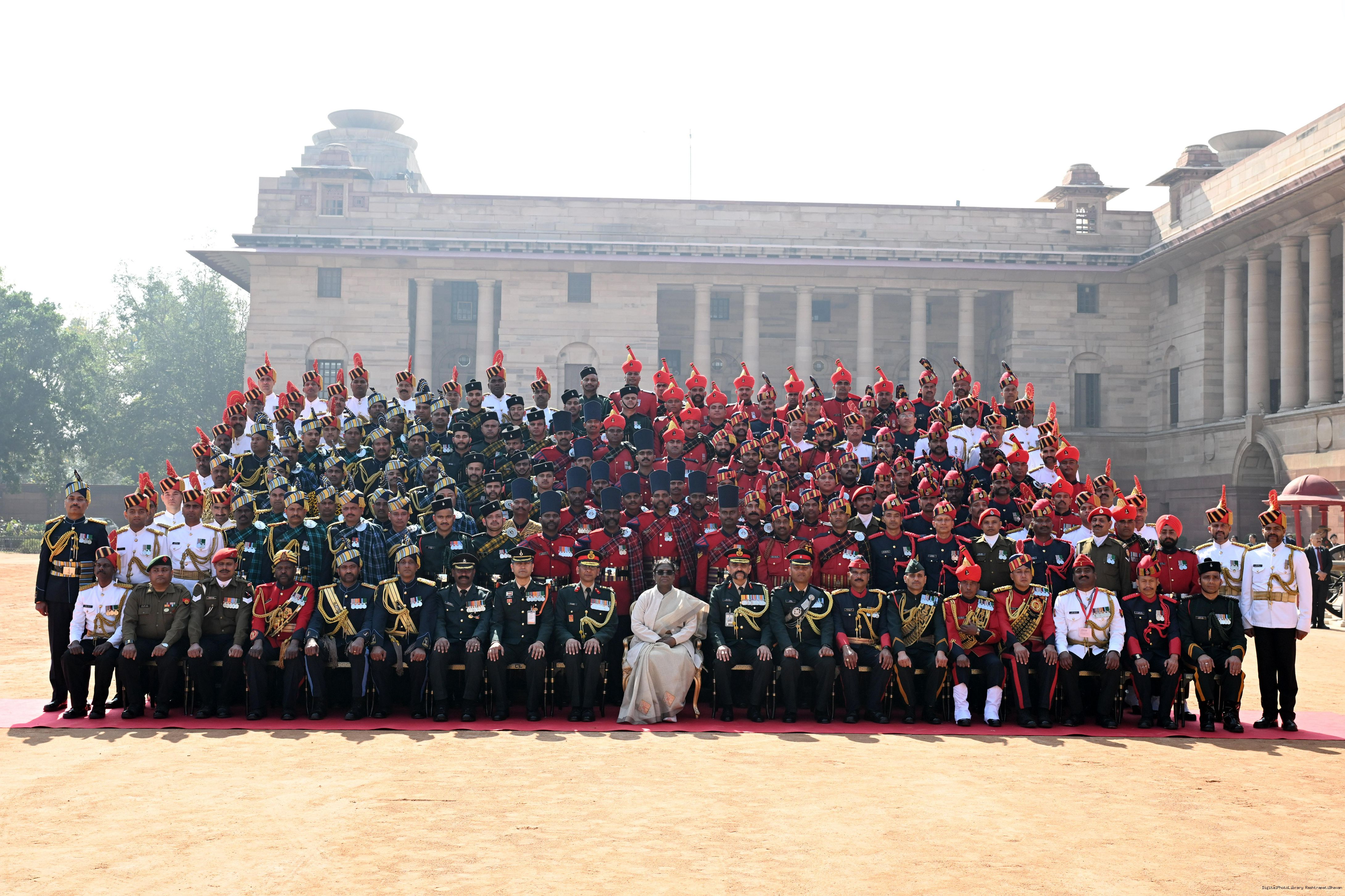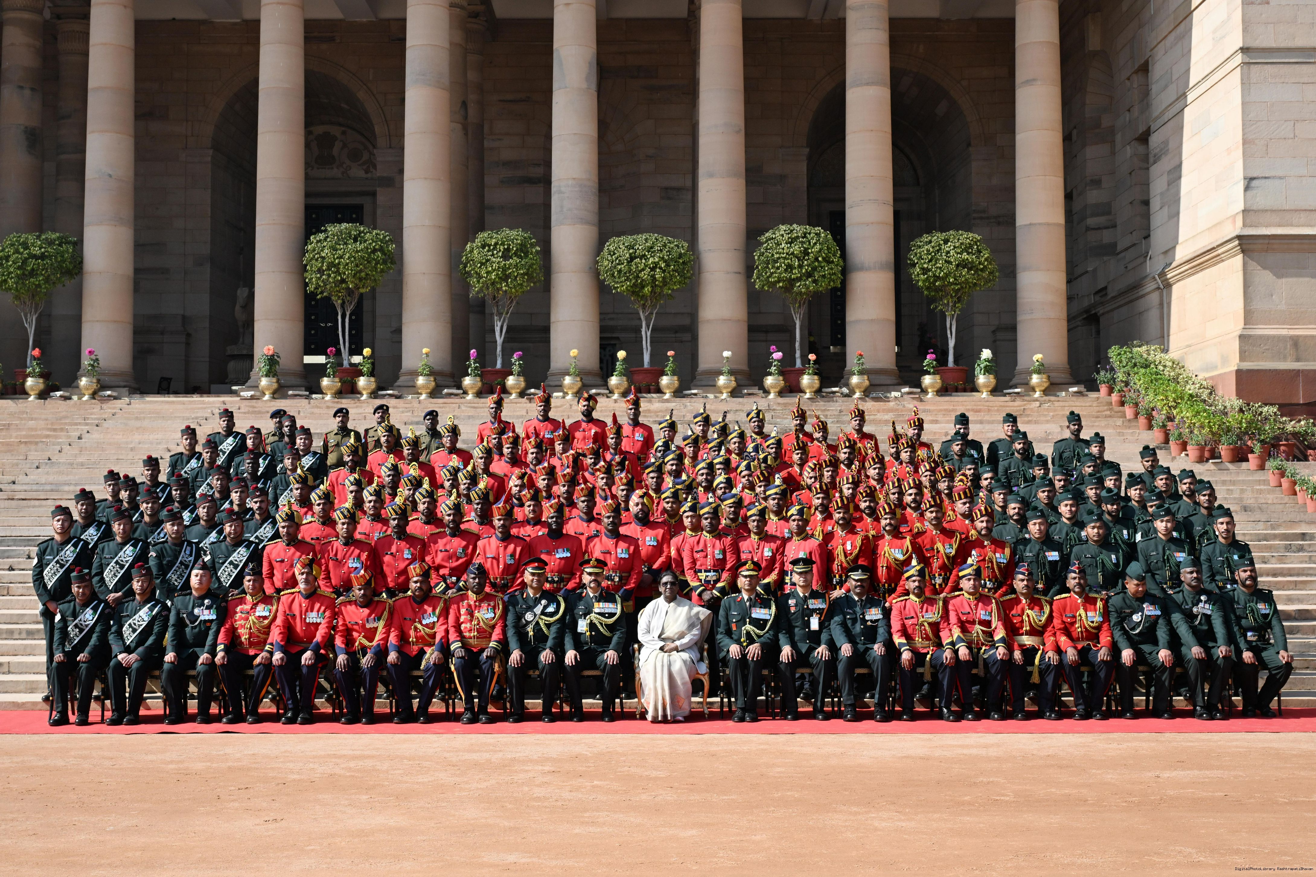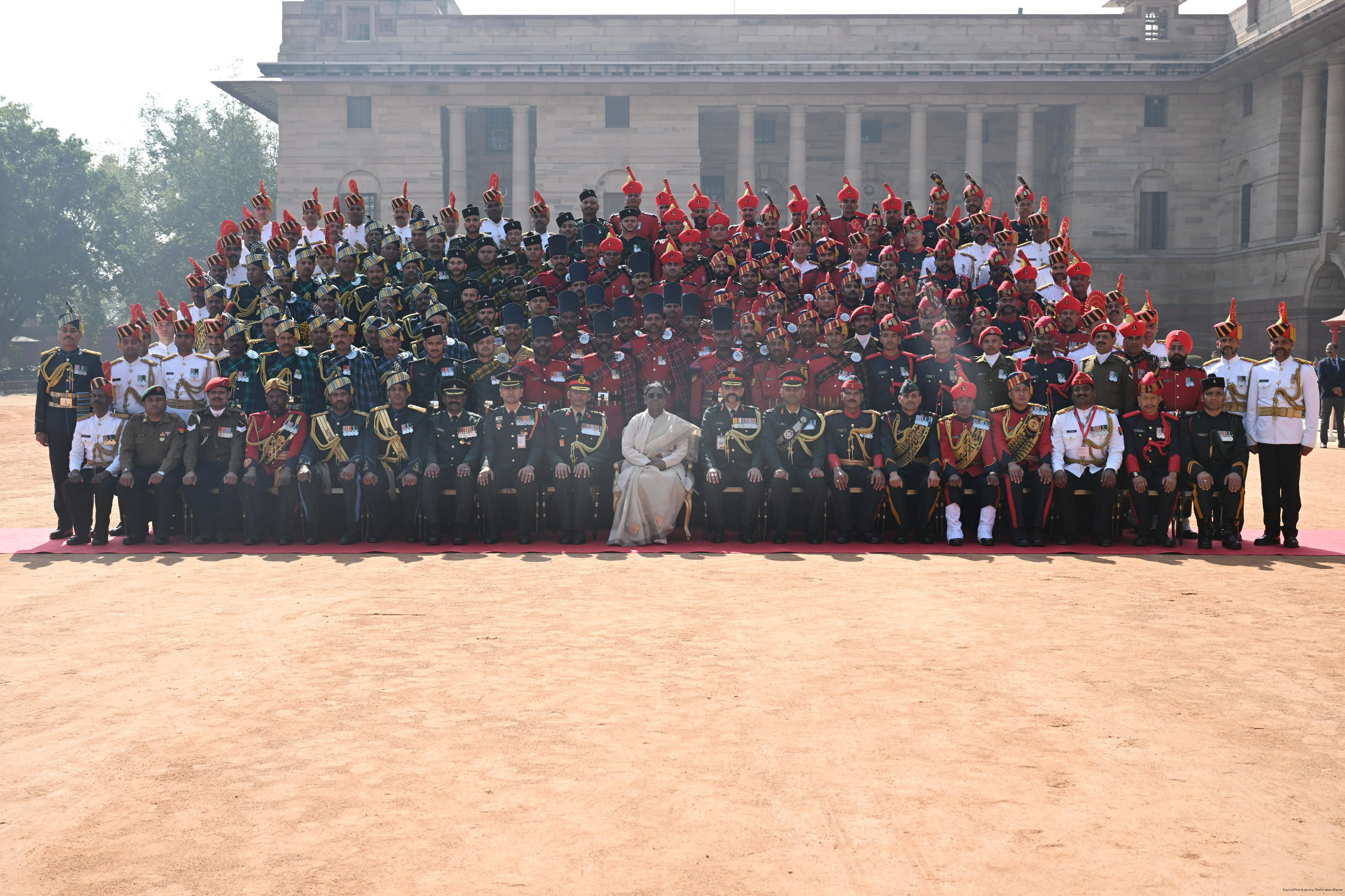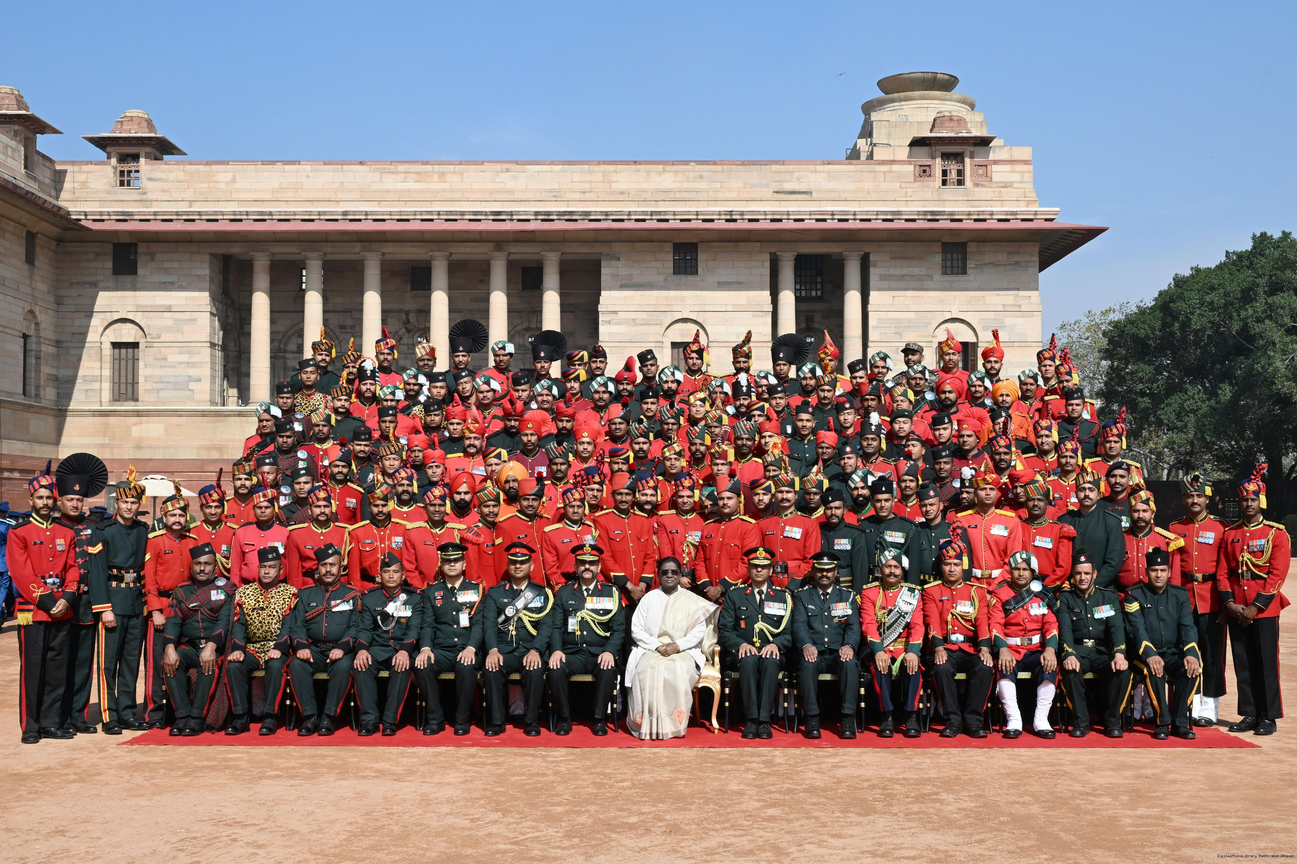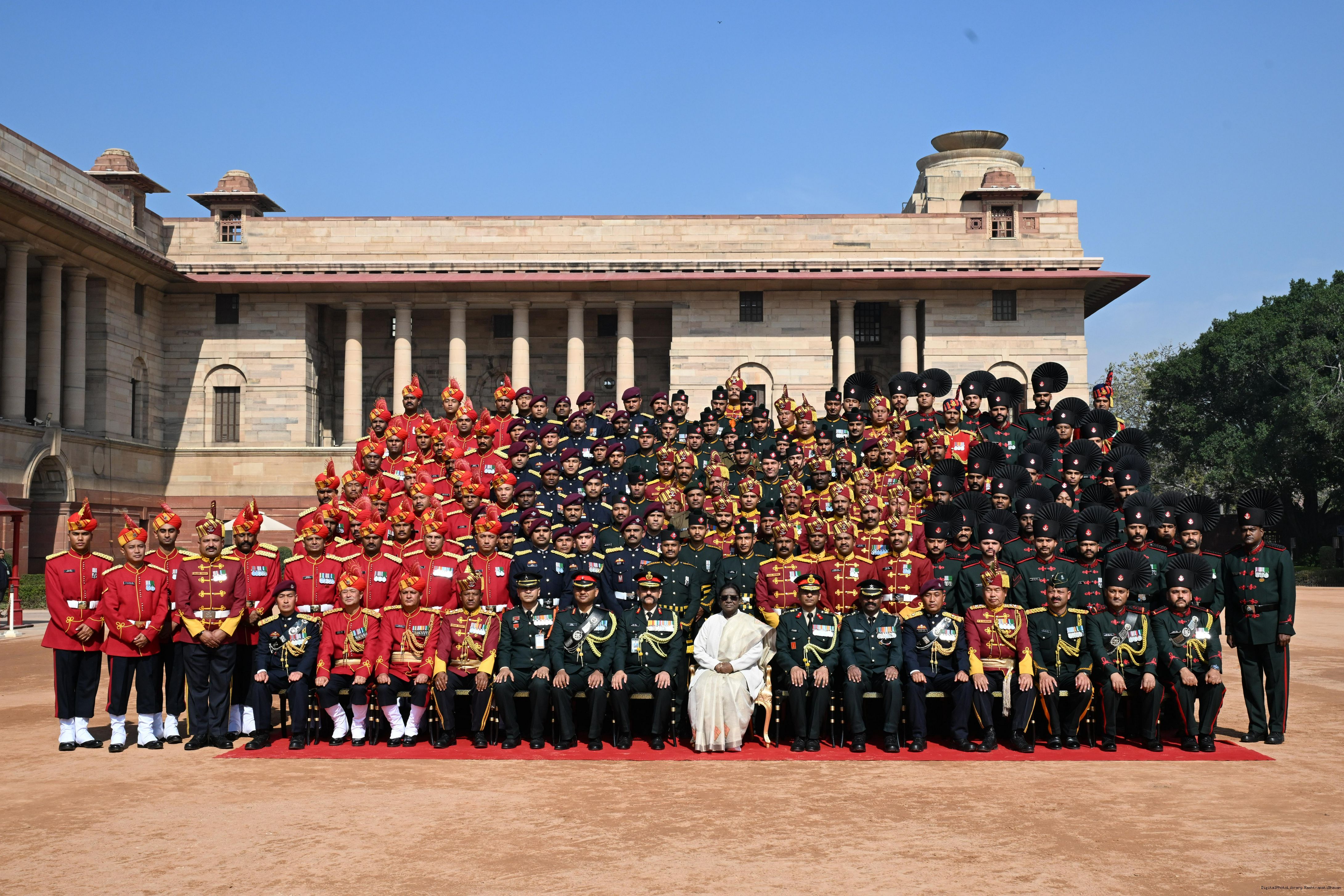 | Caption: | The President of India, Smt Droupadi Murmu met personnel of the Tri-Service Band contingents and Provost Outriders of the three Services who participated in the Republic Day Parade and Beating Retreat Ceremony 2026 at Rashtrapati Bhavan in New Delhi on January 30, 2026. |