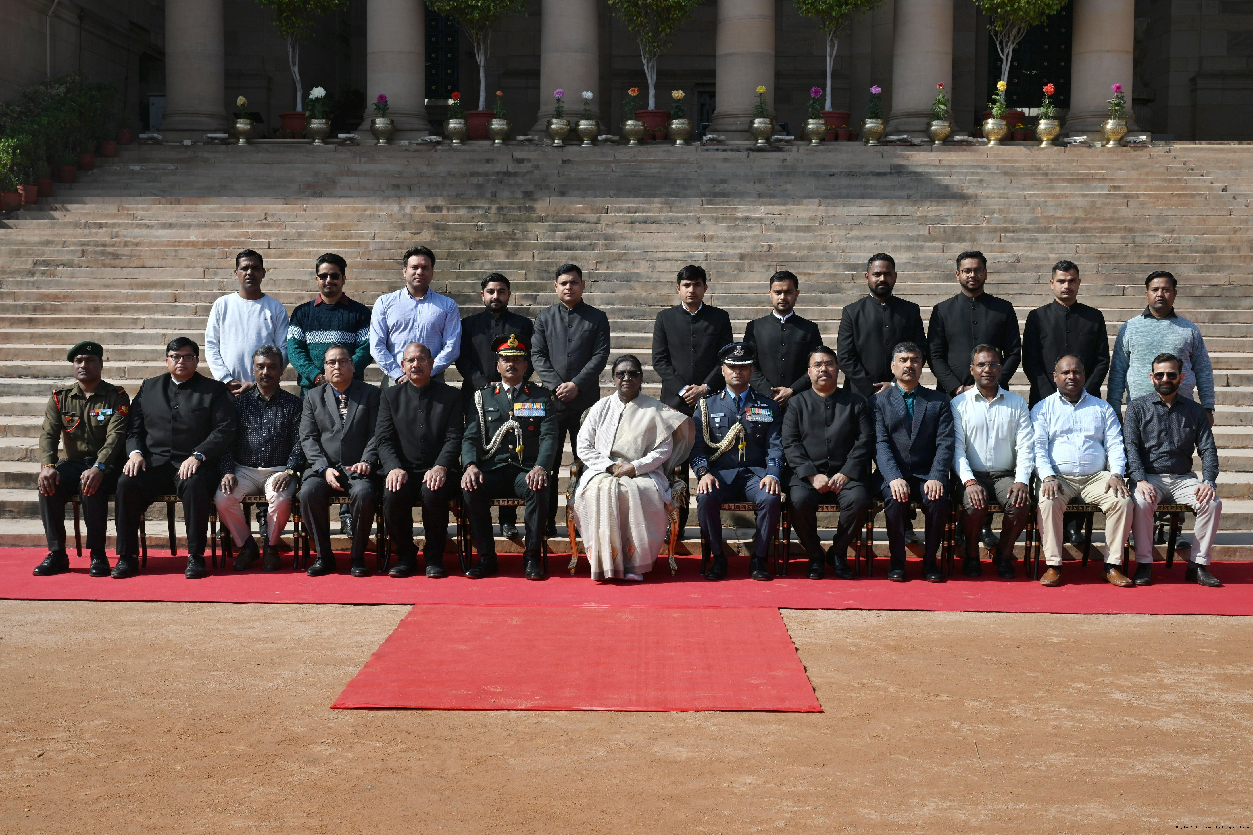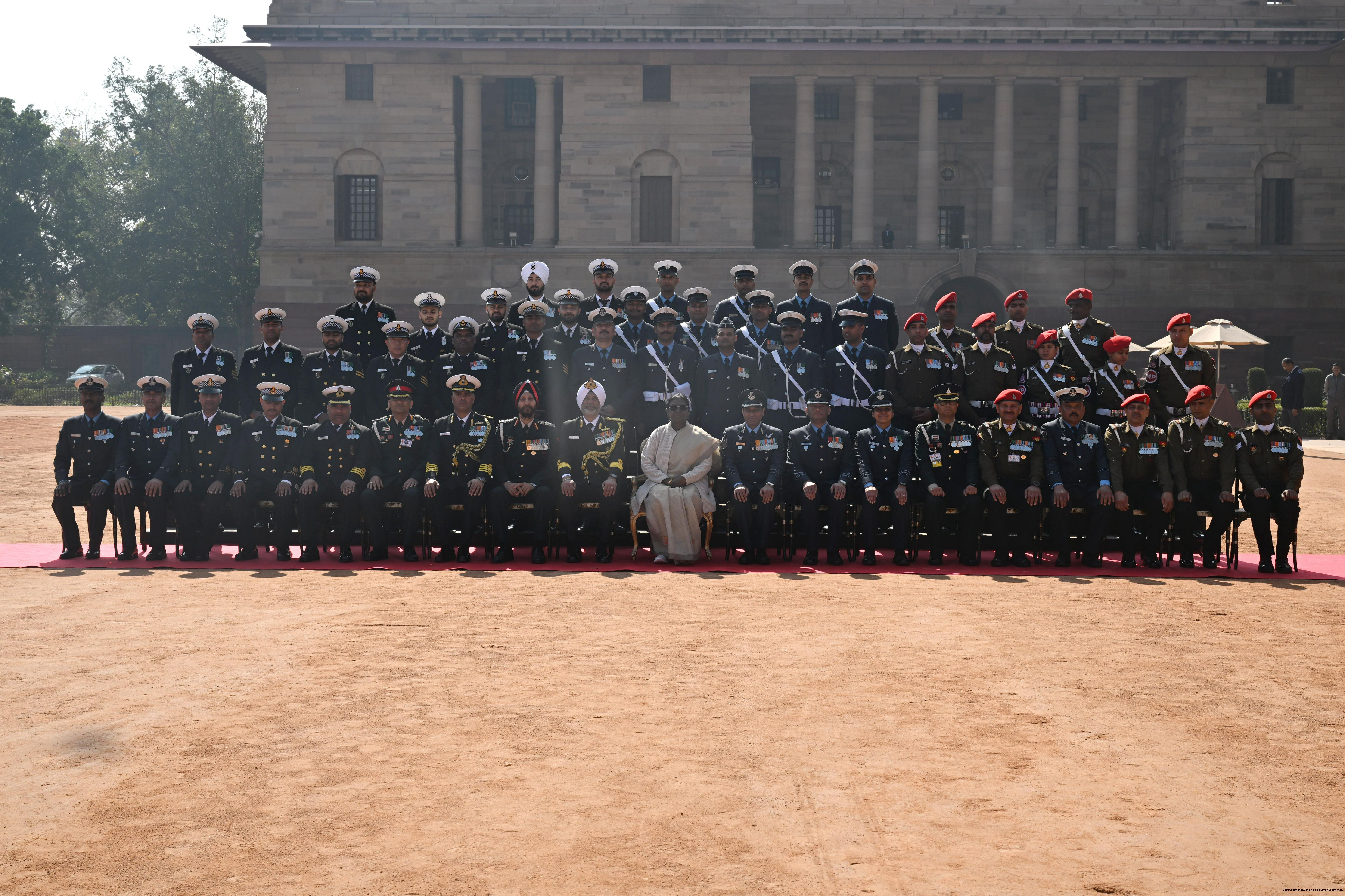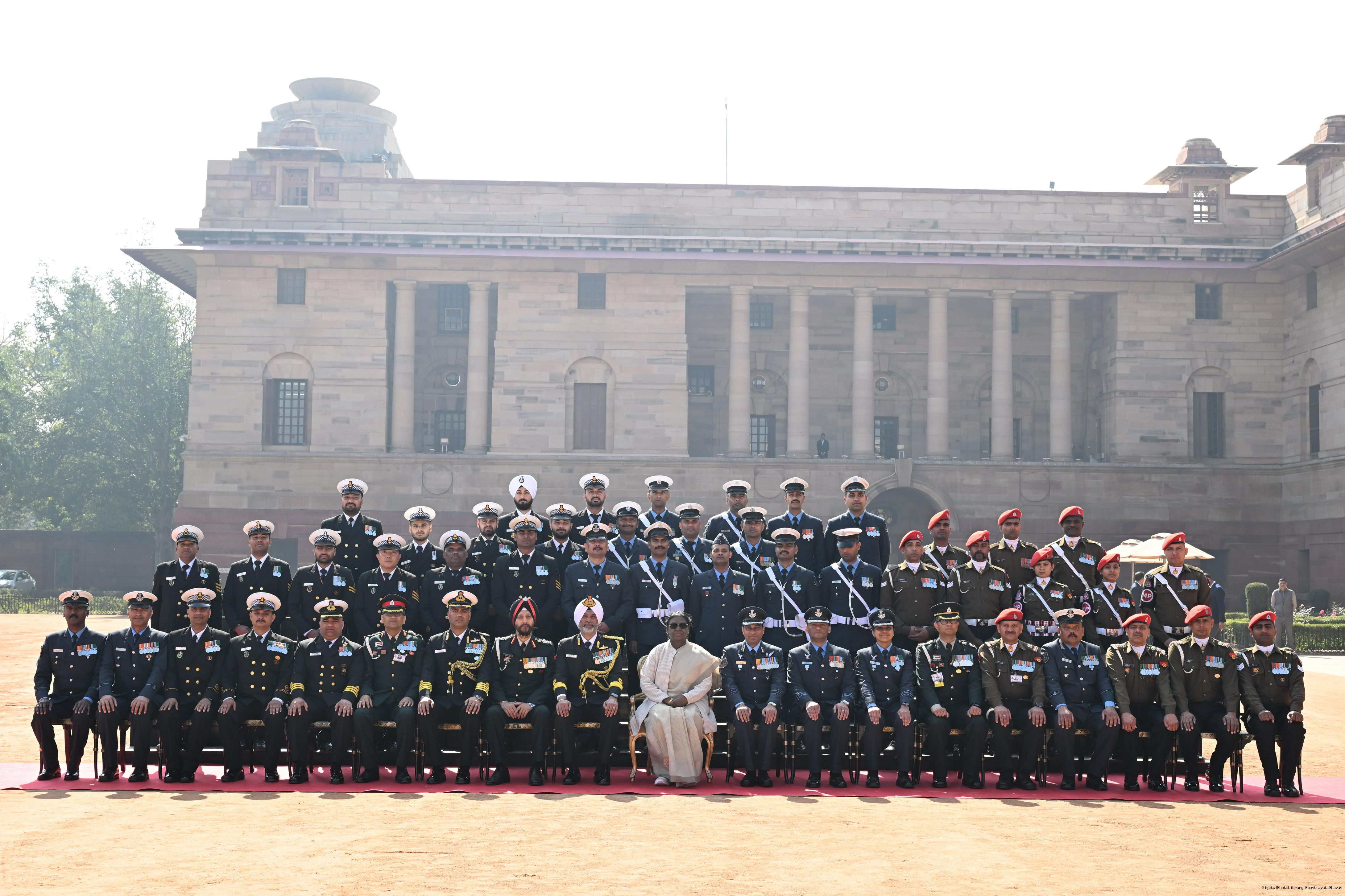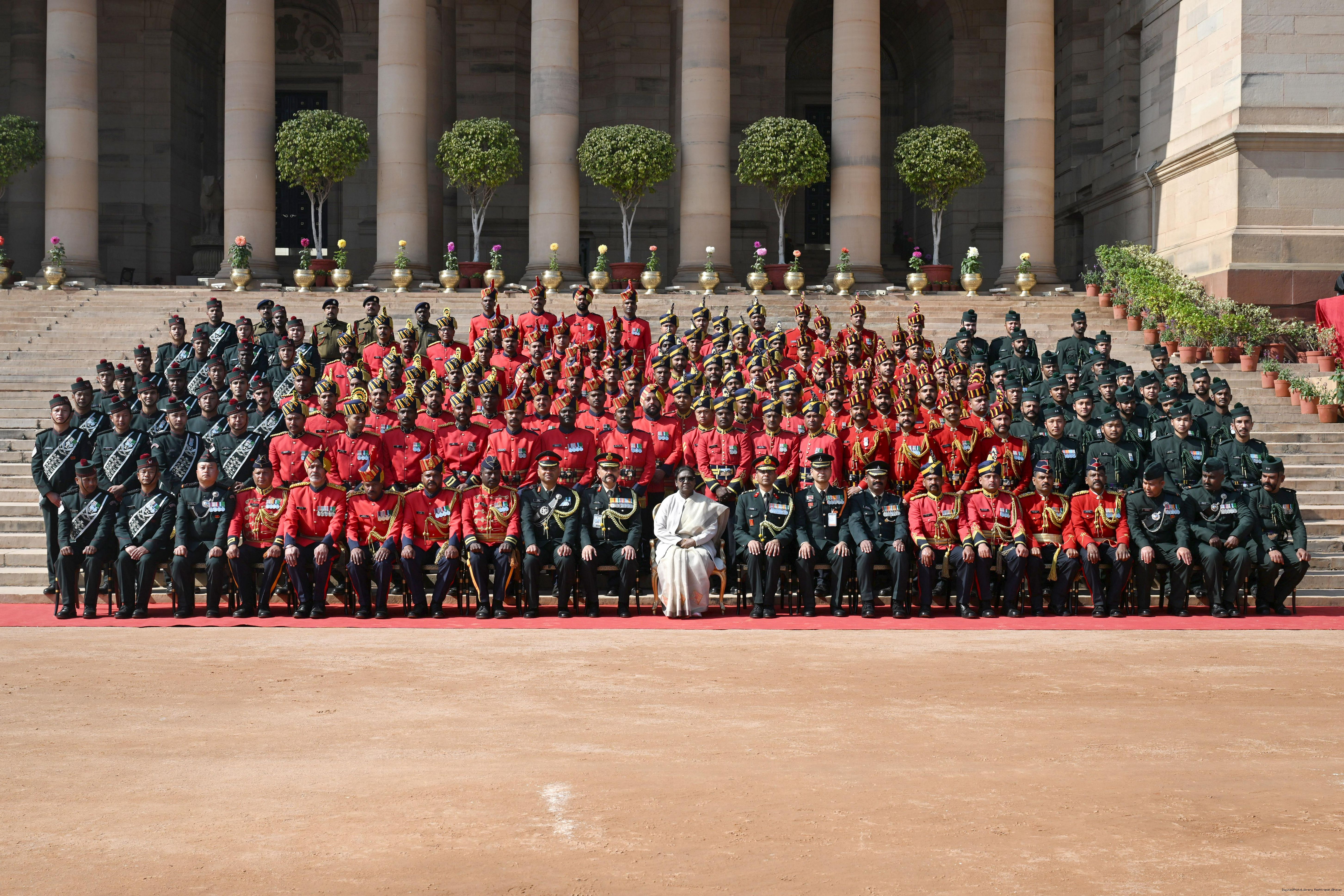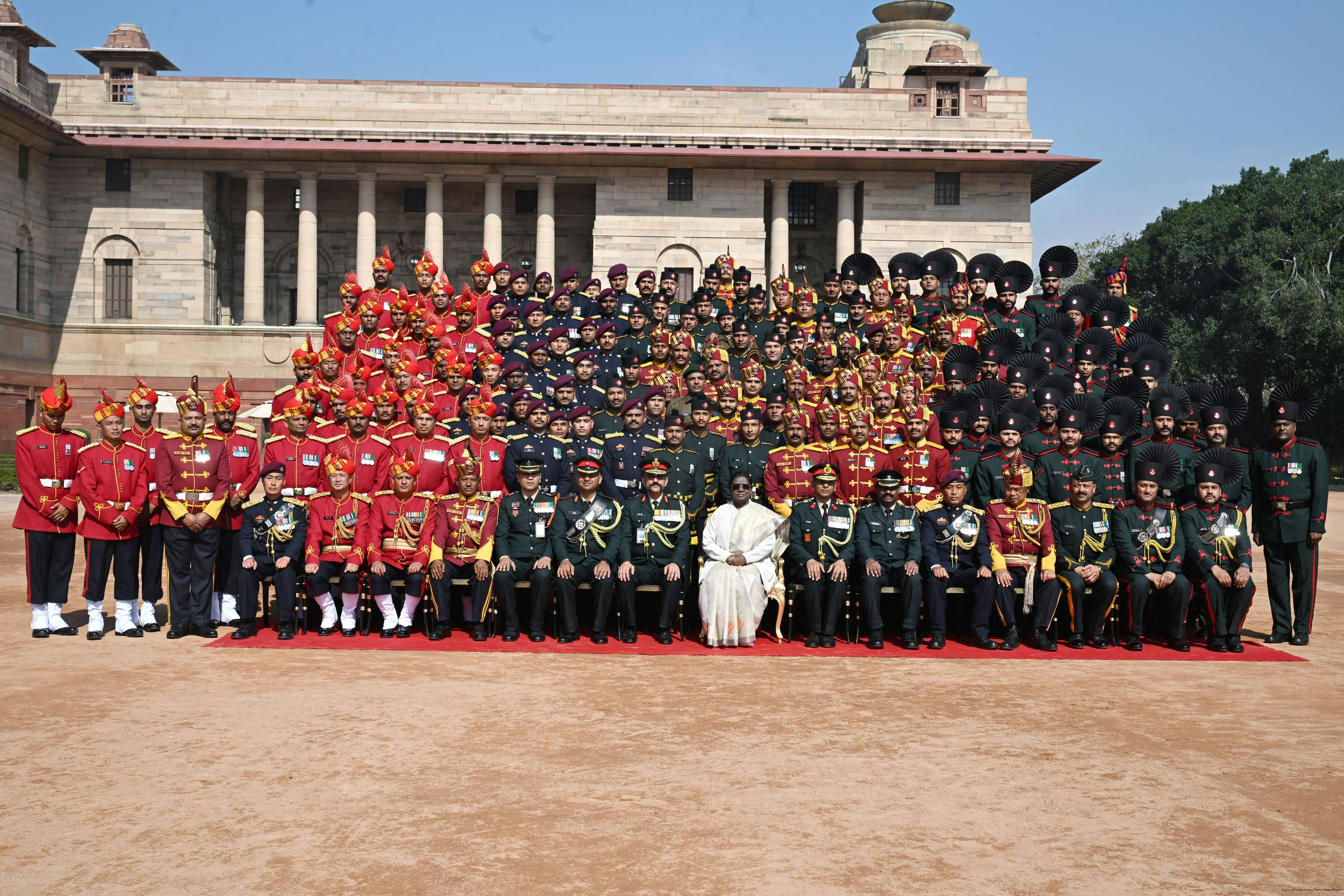 | Caption: | The President of India, Smt Droupadi Murmu met personnel of the Tri-Service Band contingents and Provost Outriders of the three Services who participated in the Republic Day Parade and Beating Retreat Ceremony 2026 at Rashtrapati Bhavan in New Delhi on January 30, 2026. |
