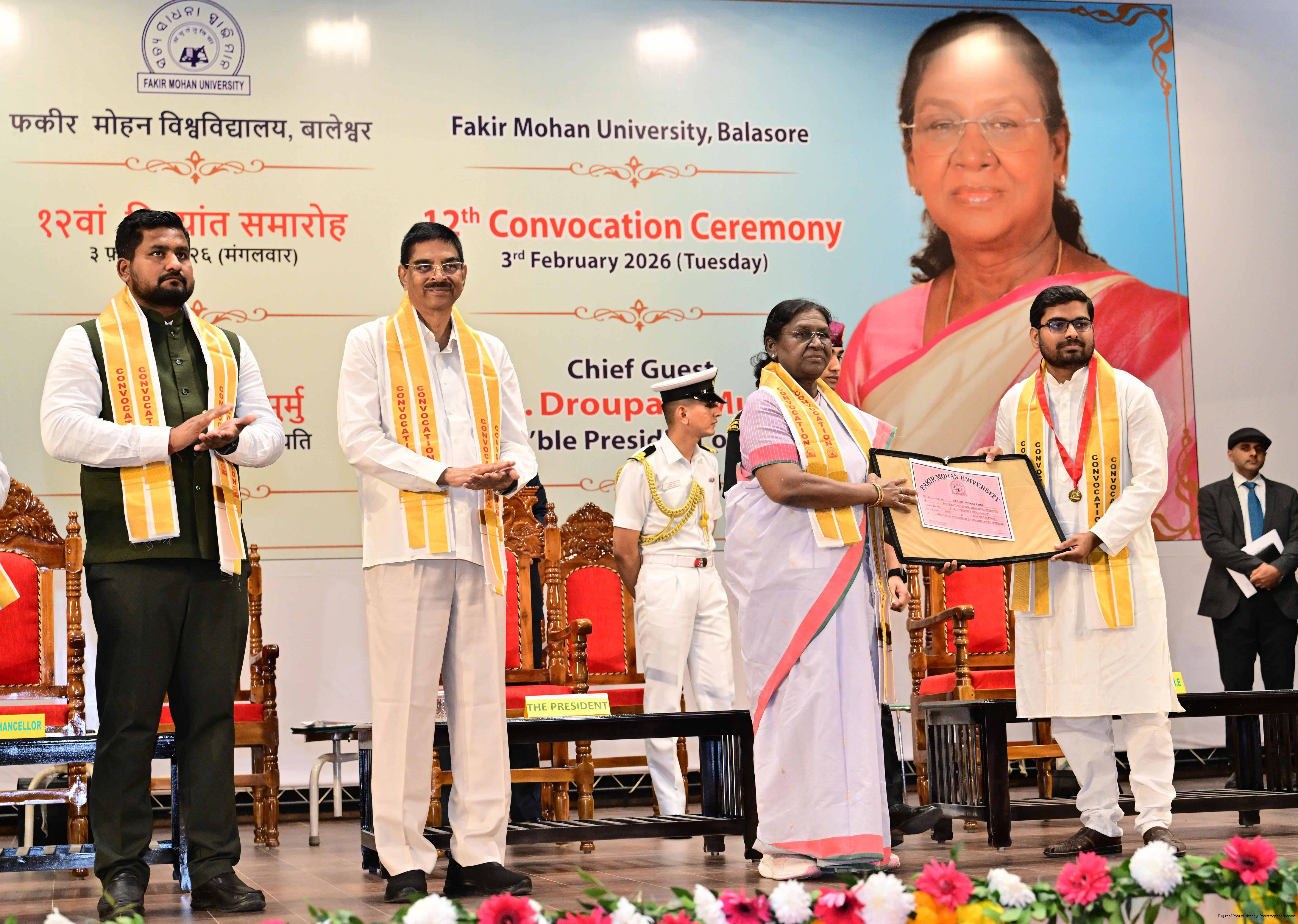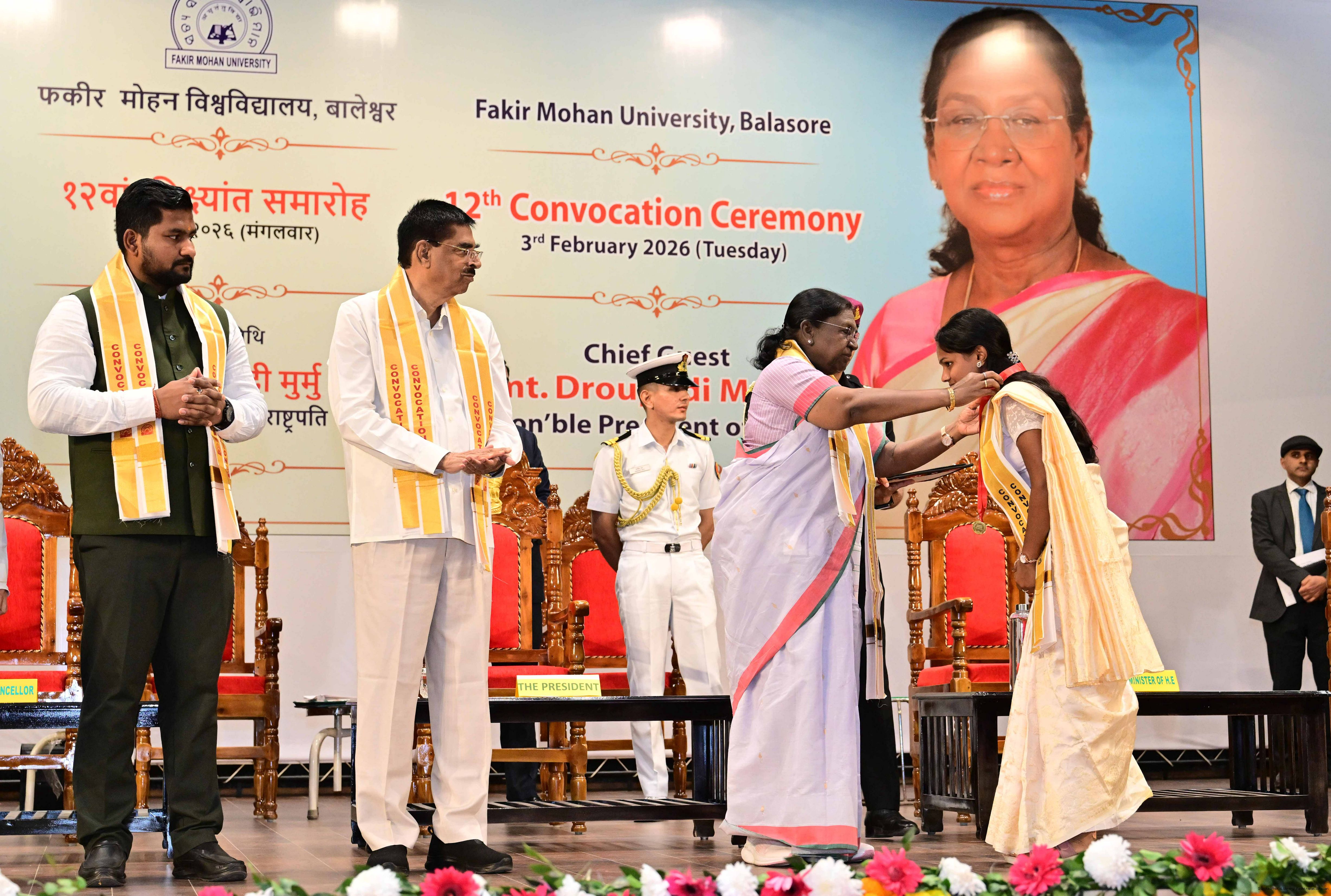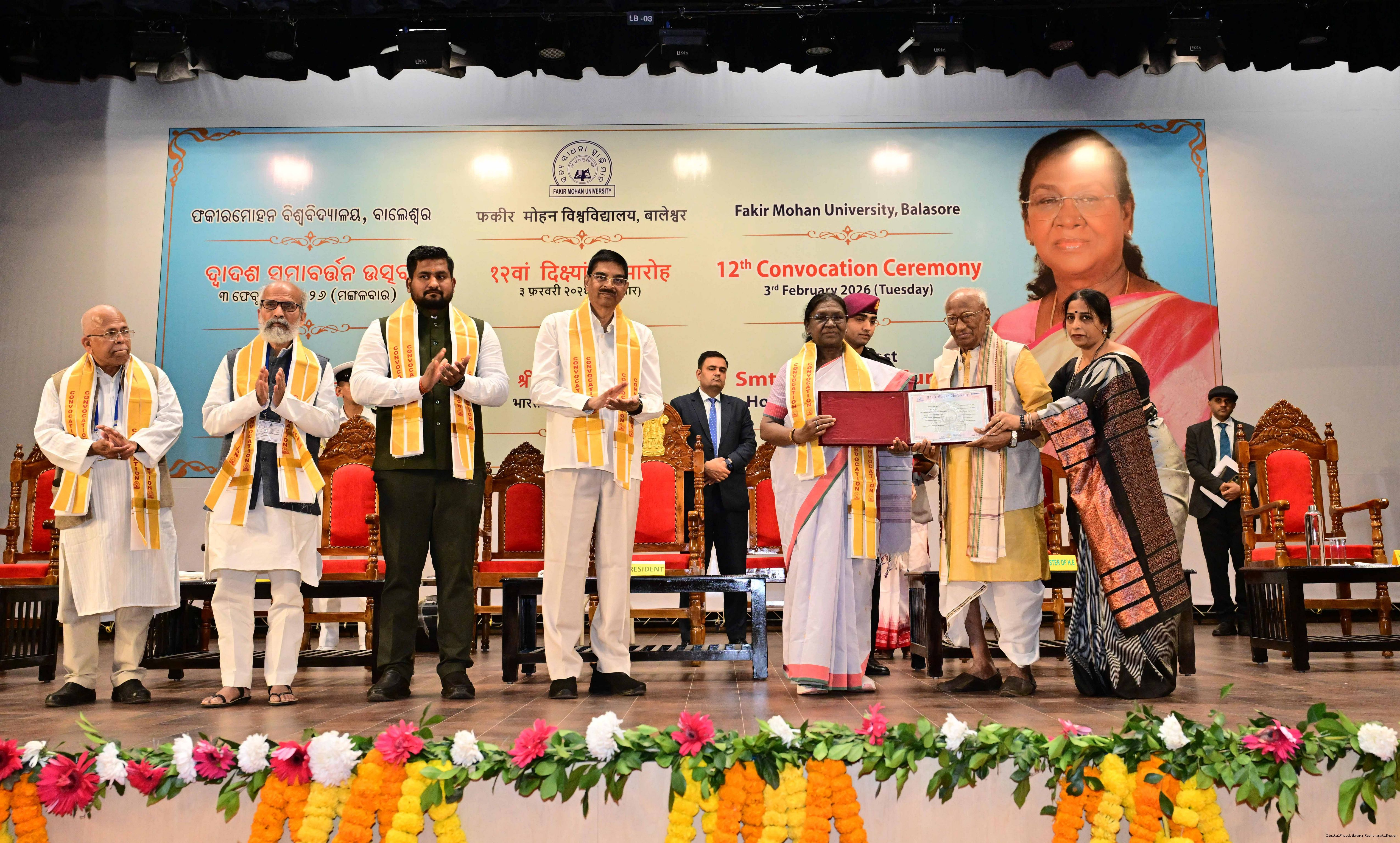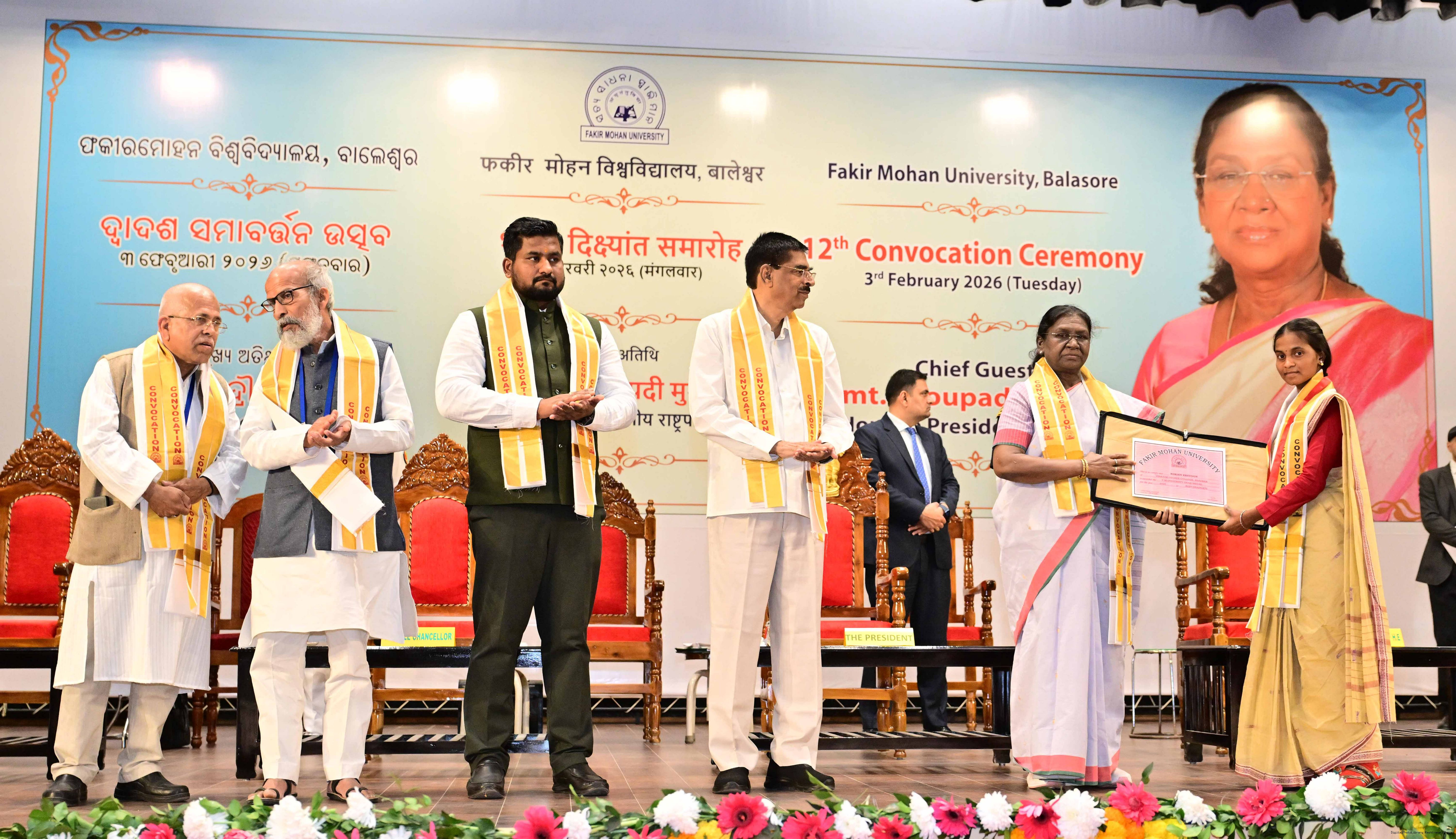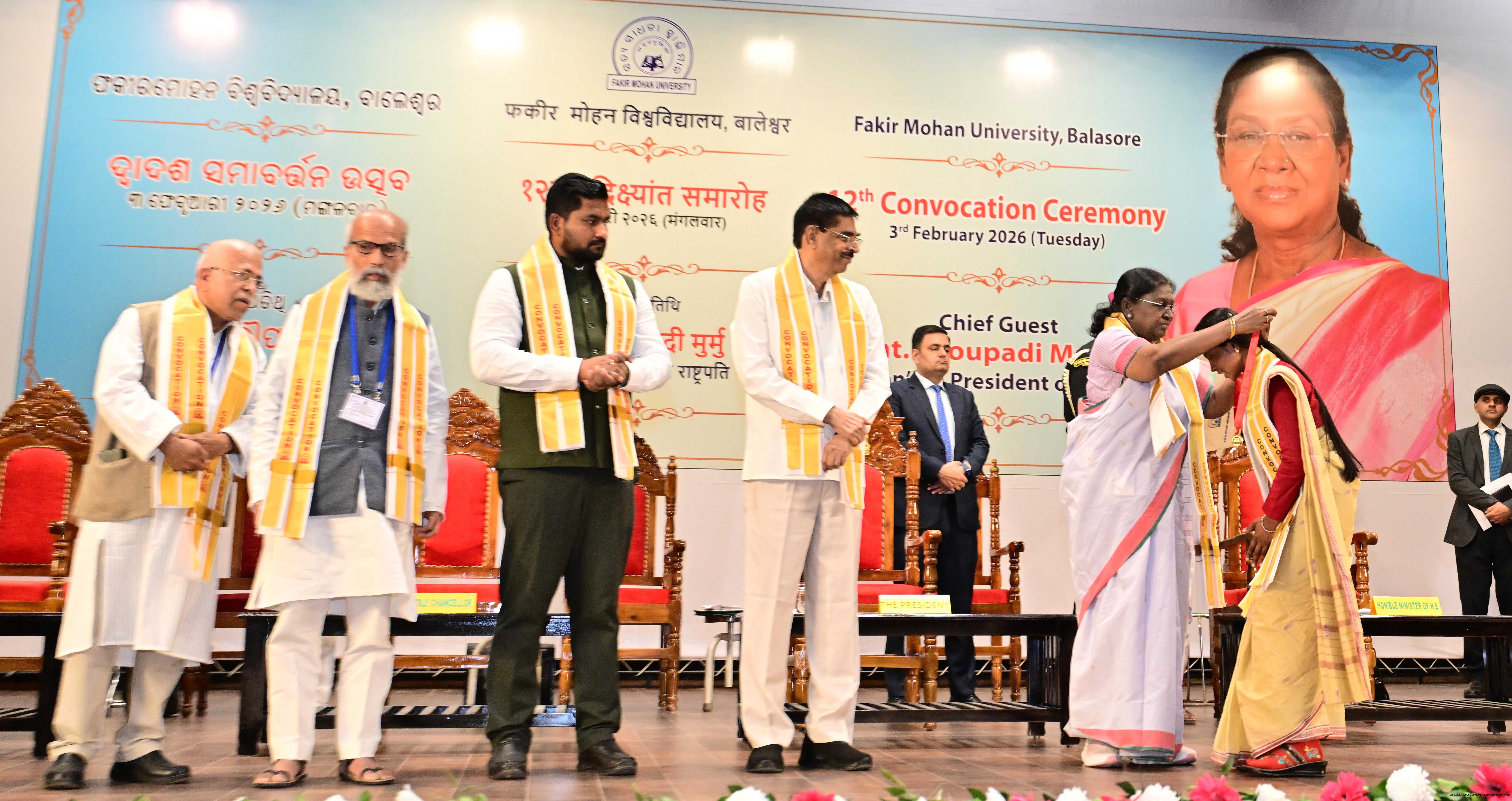 | Caption: | The President of India Smt Droupadi Murmu graced and addressed the convocation ceremony of Fakir Mohan University and inaugurated its new Auditorium at Balasore, Odisha on February 3, 2026. |