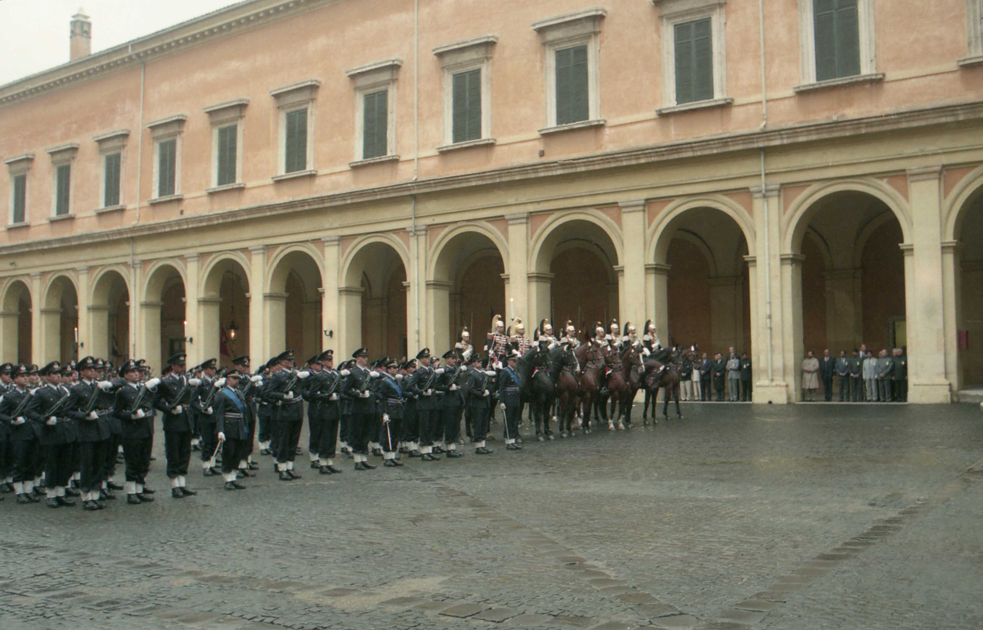 | Caption: | The President of India, Dr. Shankar Dayal Sharma with the Italian President, Mr. Oscar Luigi Scalfaro, at the Farewell ceremony, at Quirinale Palace, in Rome, Italy on October 16, 1996. |