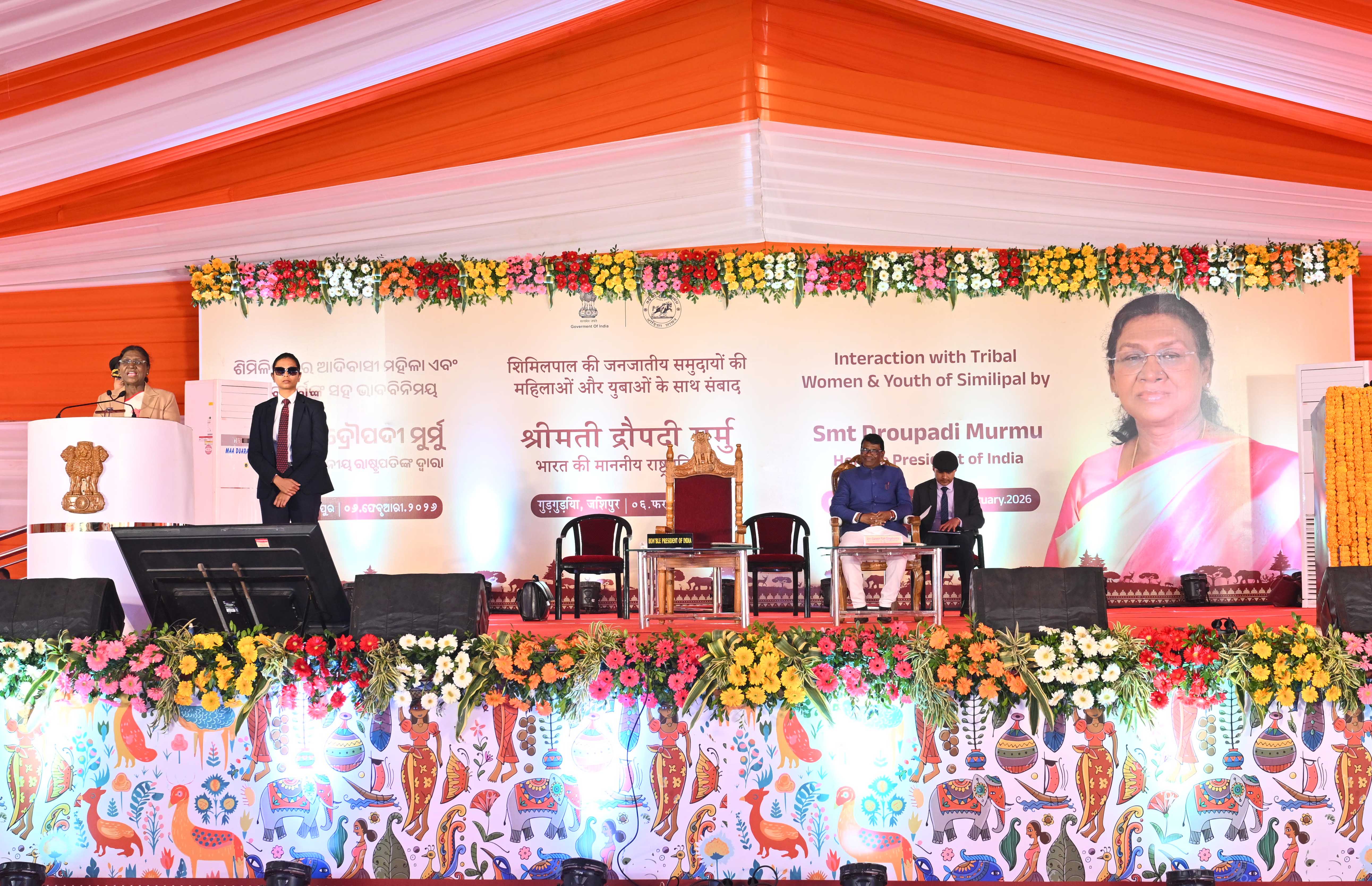| Caption: | The President of India Smt Droupadi Murmu interacted with women and youth of tribal communities at Simlipal, Odisha on February 6, 2026. |