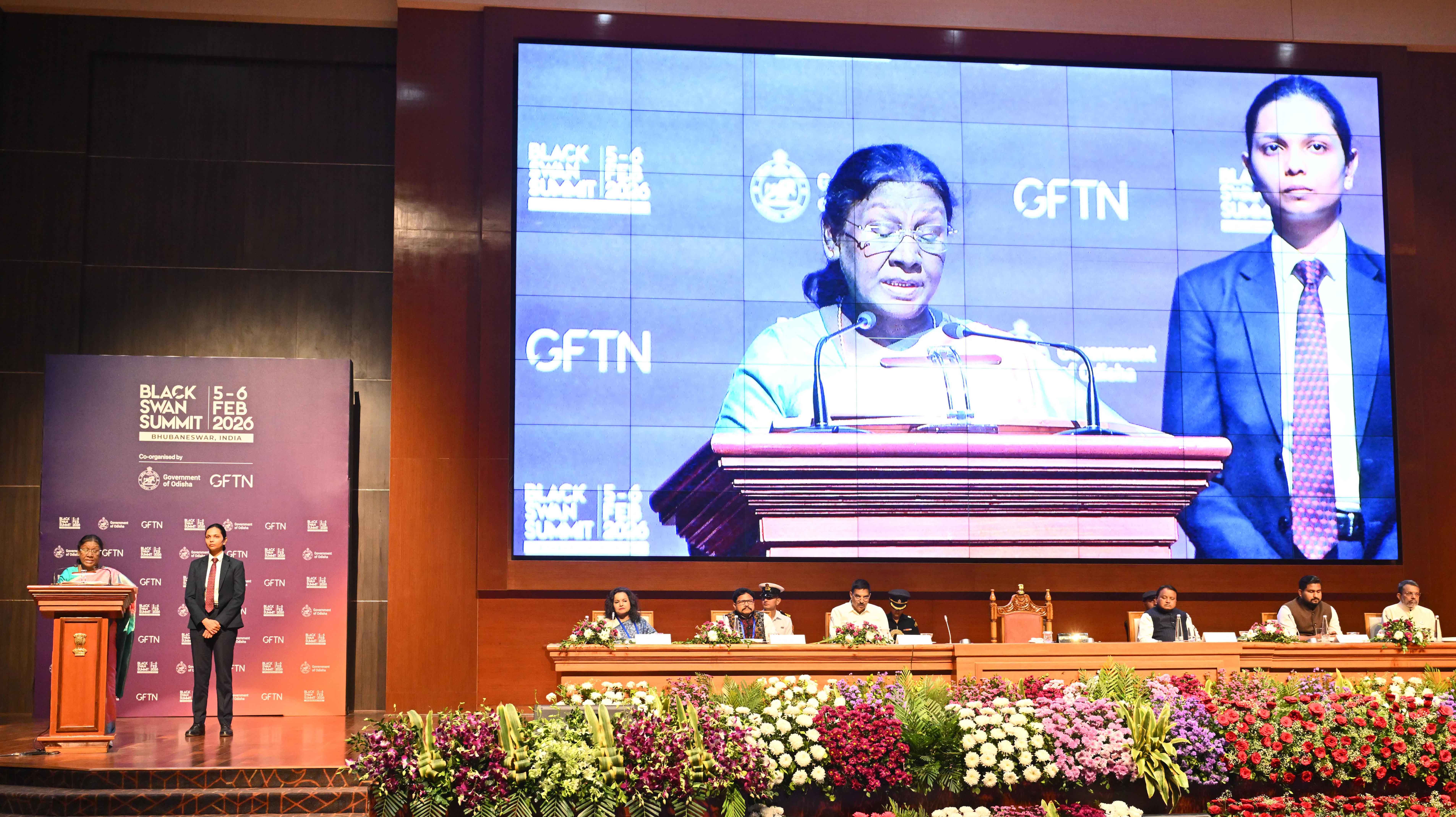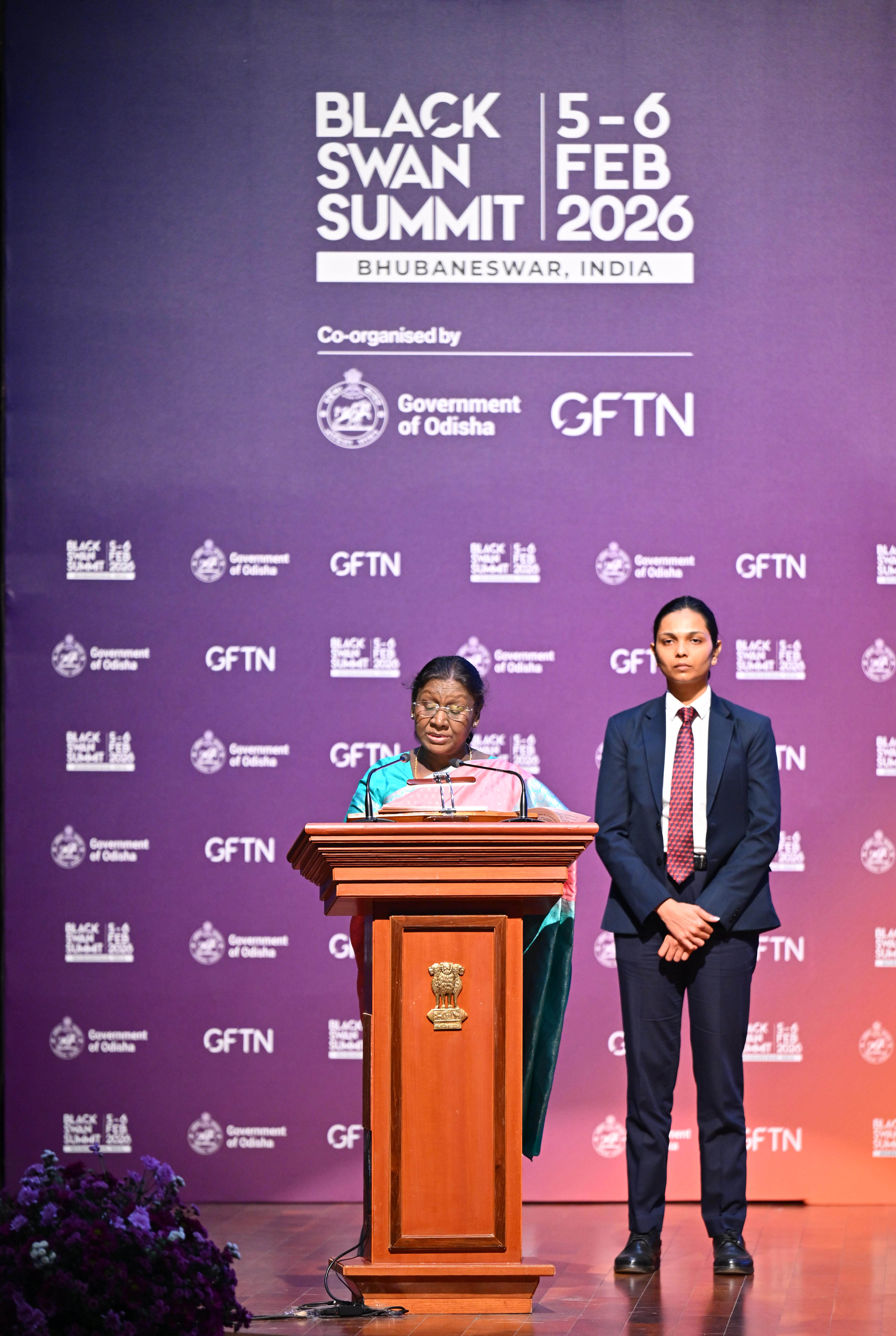 | Caption: | The President of India Smt Droupadi Murmu graced the Black Swan Summit, India, organised by the Government of Odisha in collaboration with Global Finance and Technology Network, at Bhubaneswar, Odisha, on February 6, 2026. |