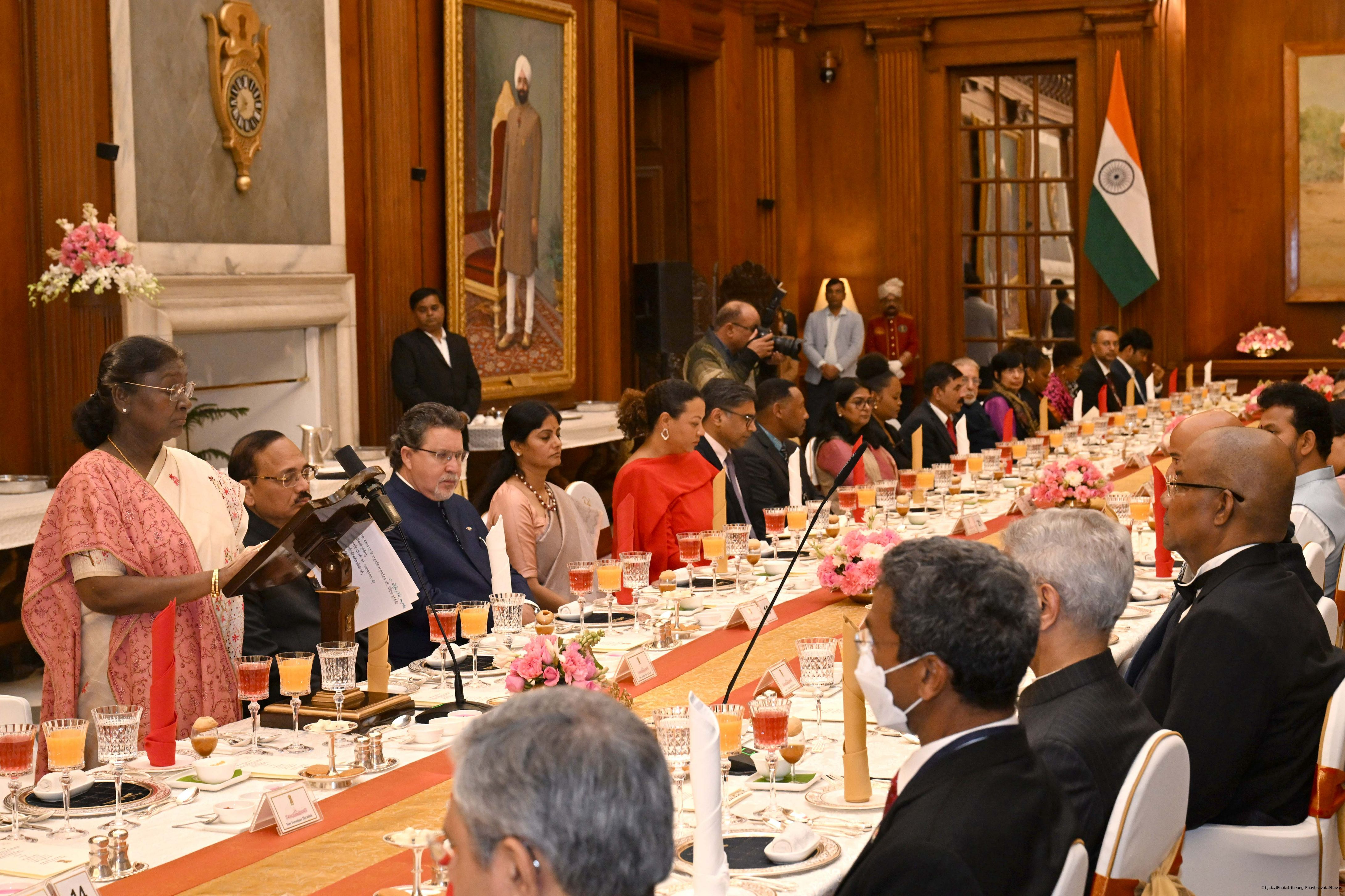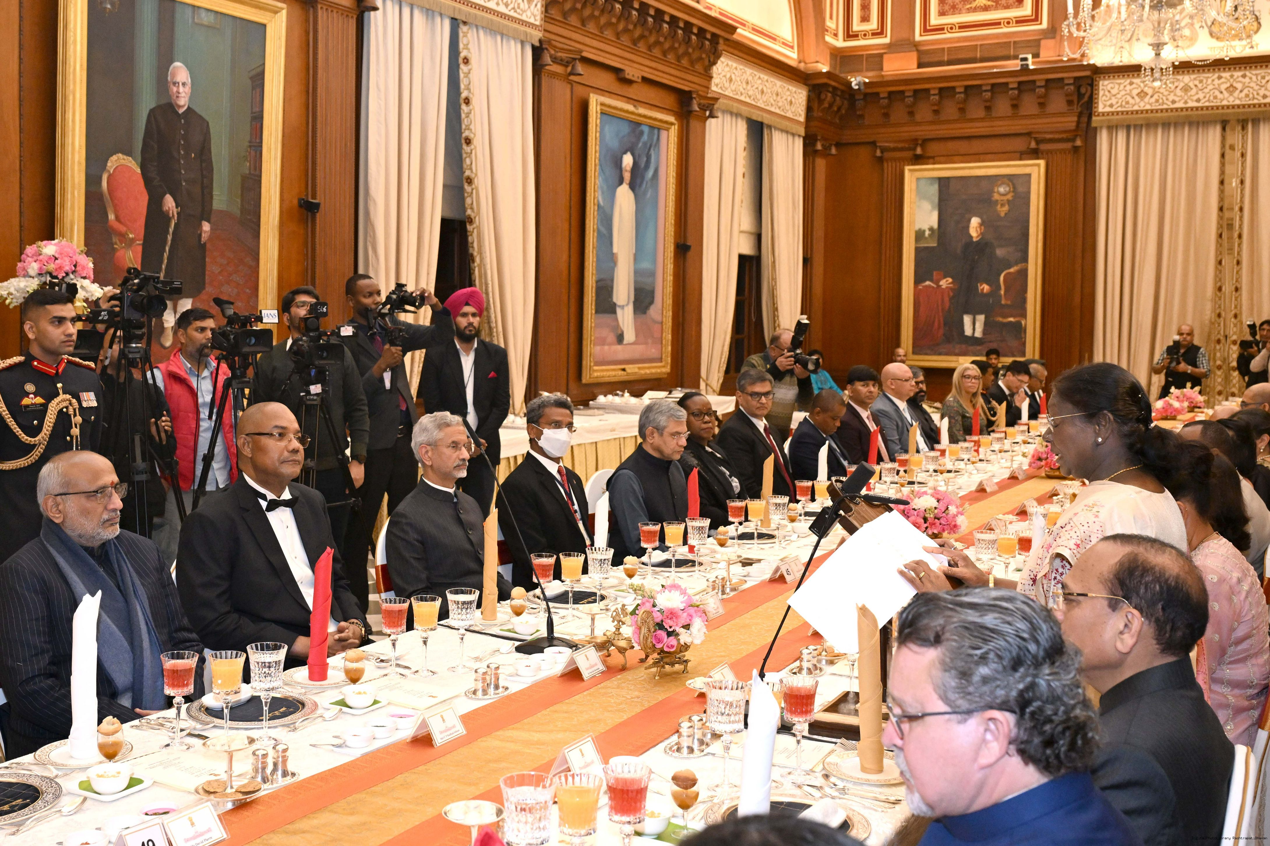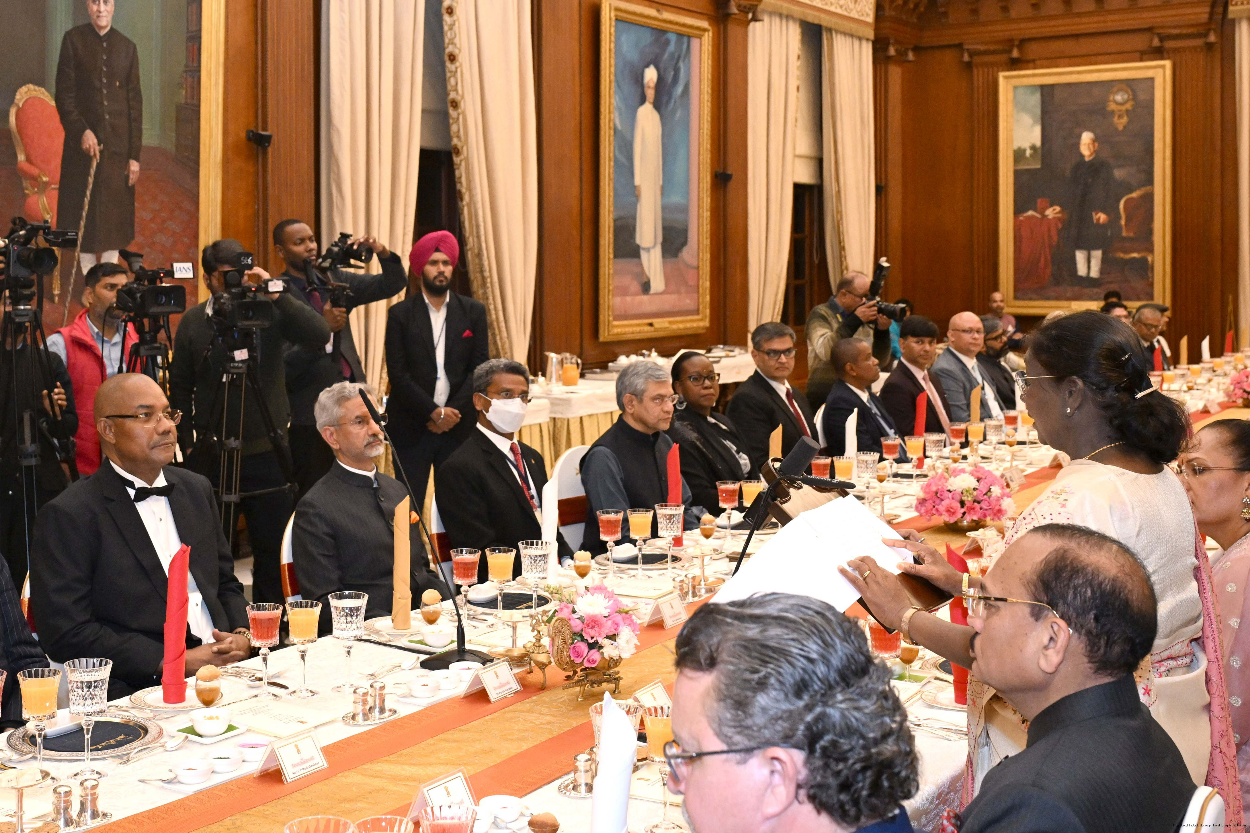 | Caption: | The President of India, Smt Droupadi Murmu hosted a banquet dinner in his honour the President of the Republic of Seychelles H.E. Dr Patrick Herminie at Rashtrapati Bhavan on February 9, 2026. |