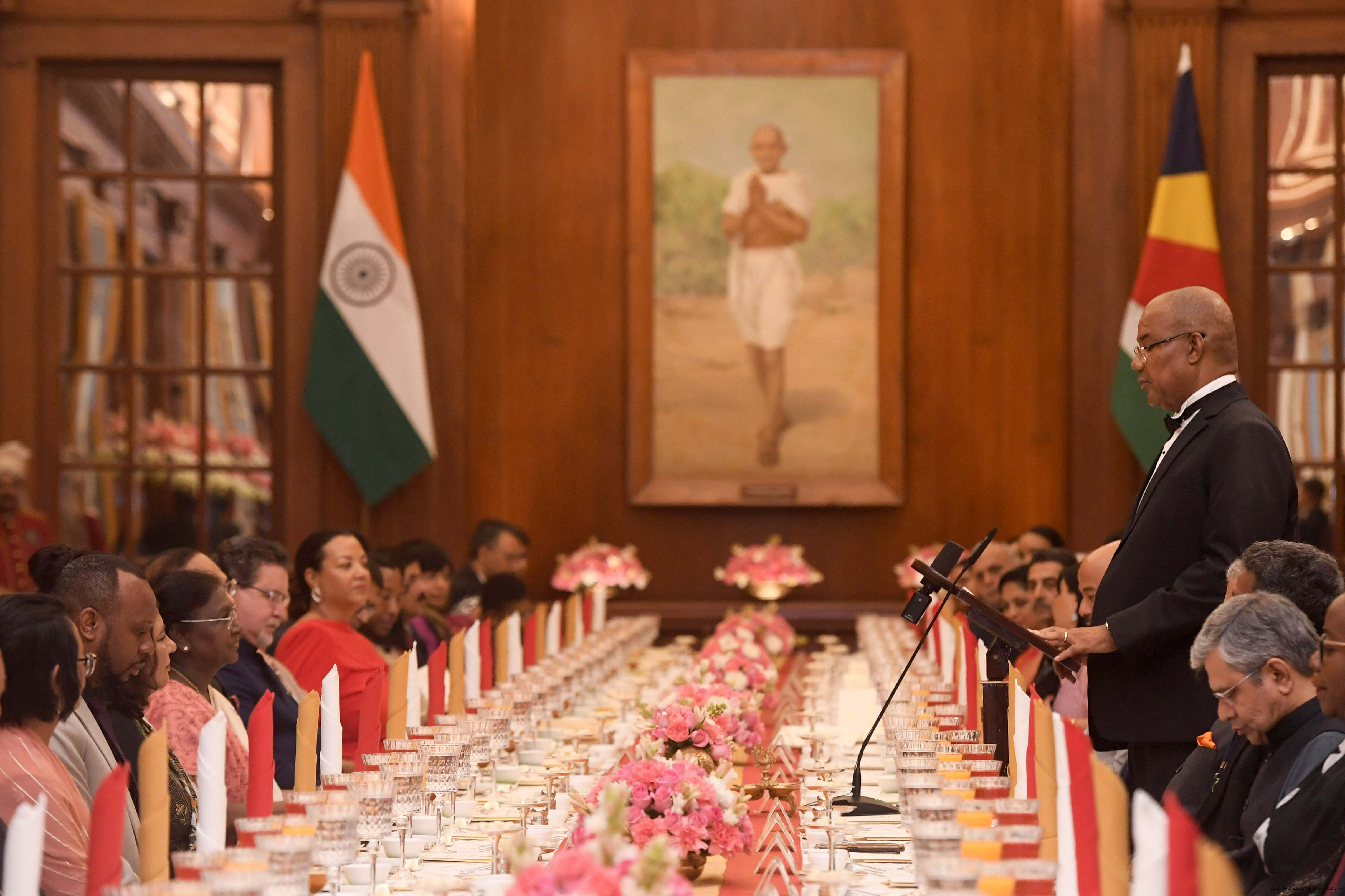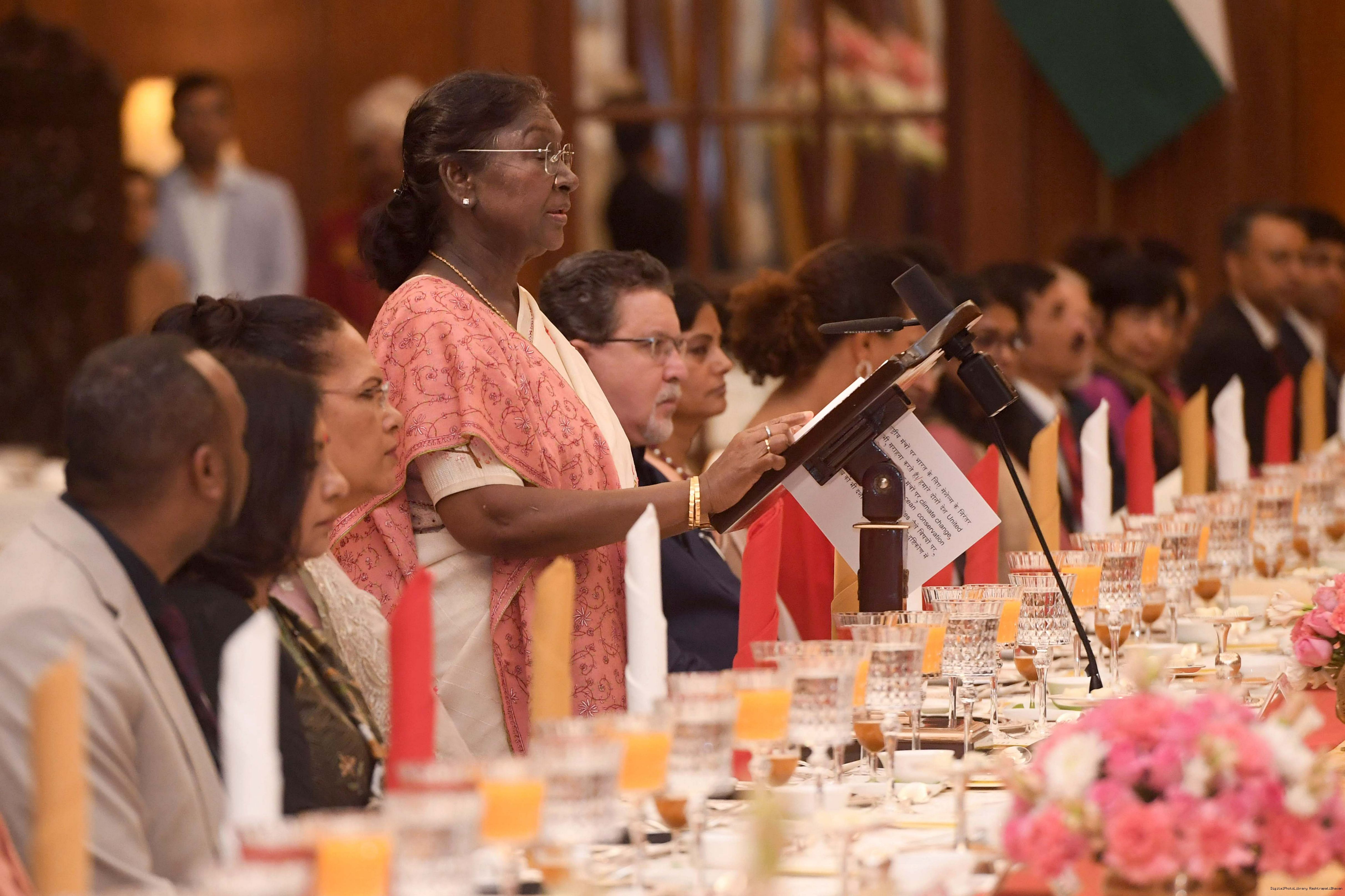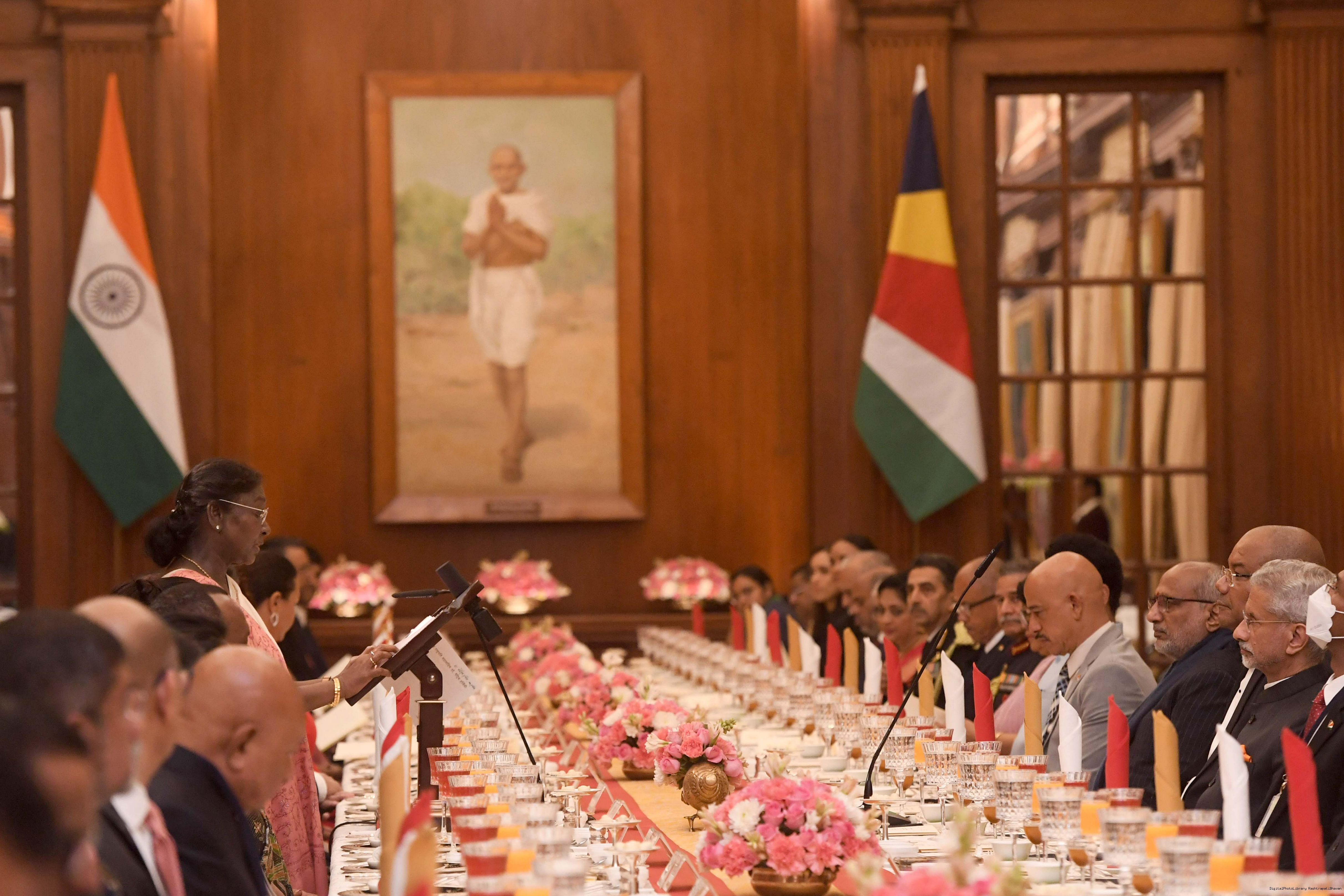 | Caption: | The President of India, Smt Droupadi Murmu hosted a banquet dinner in his honour the President of the Republic of Seychelles H.E. Dr Patrick Herminie at Rashtrapati Bhavan on February 9, 2026. |