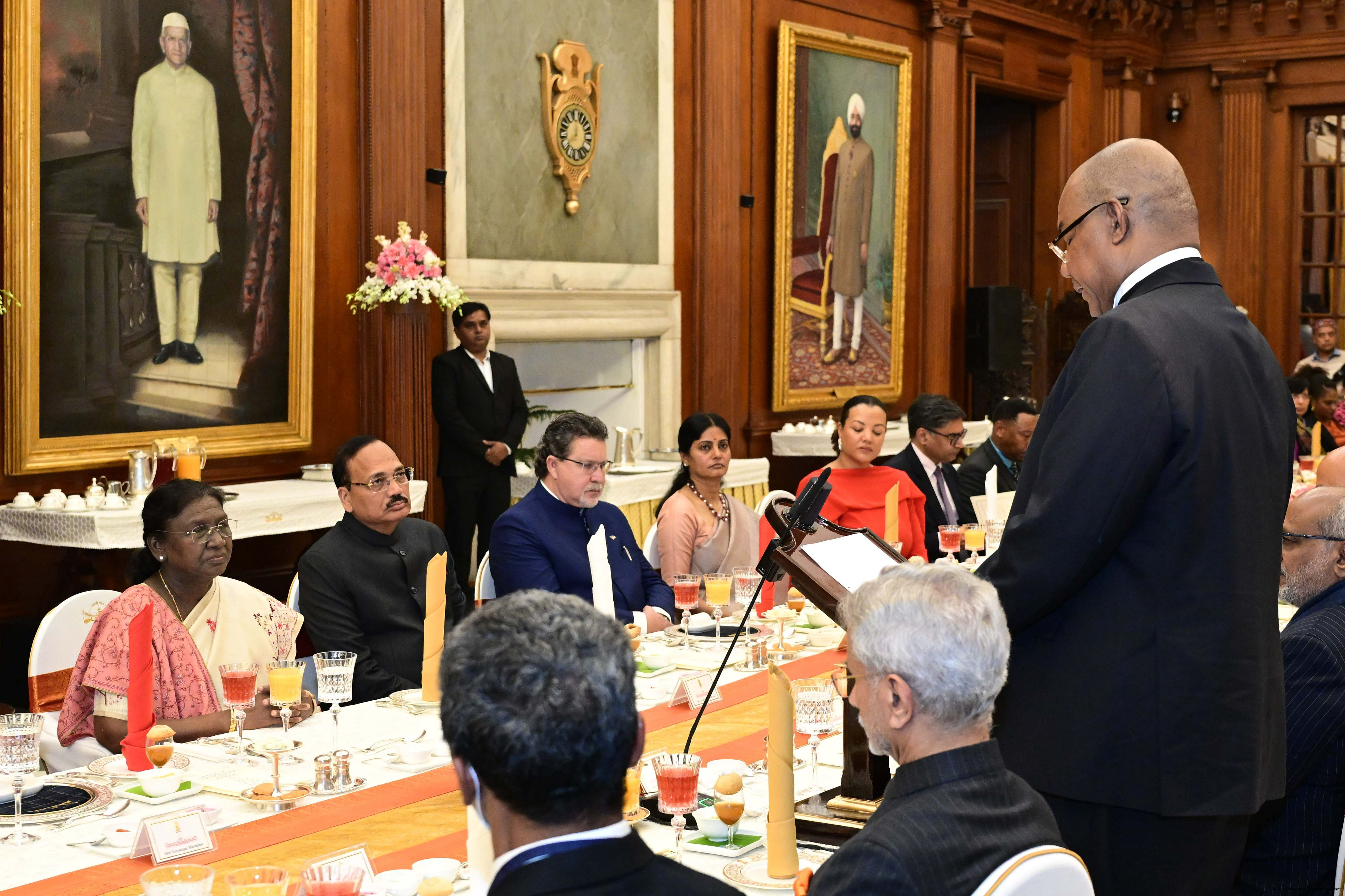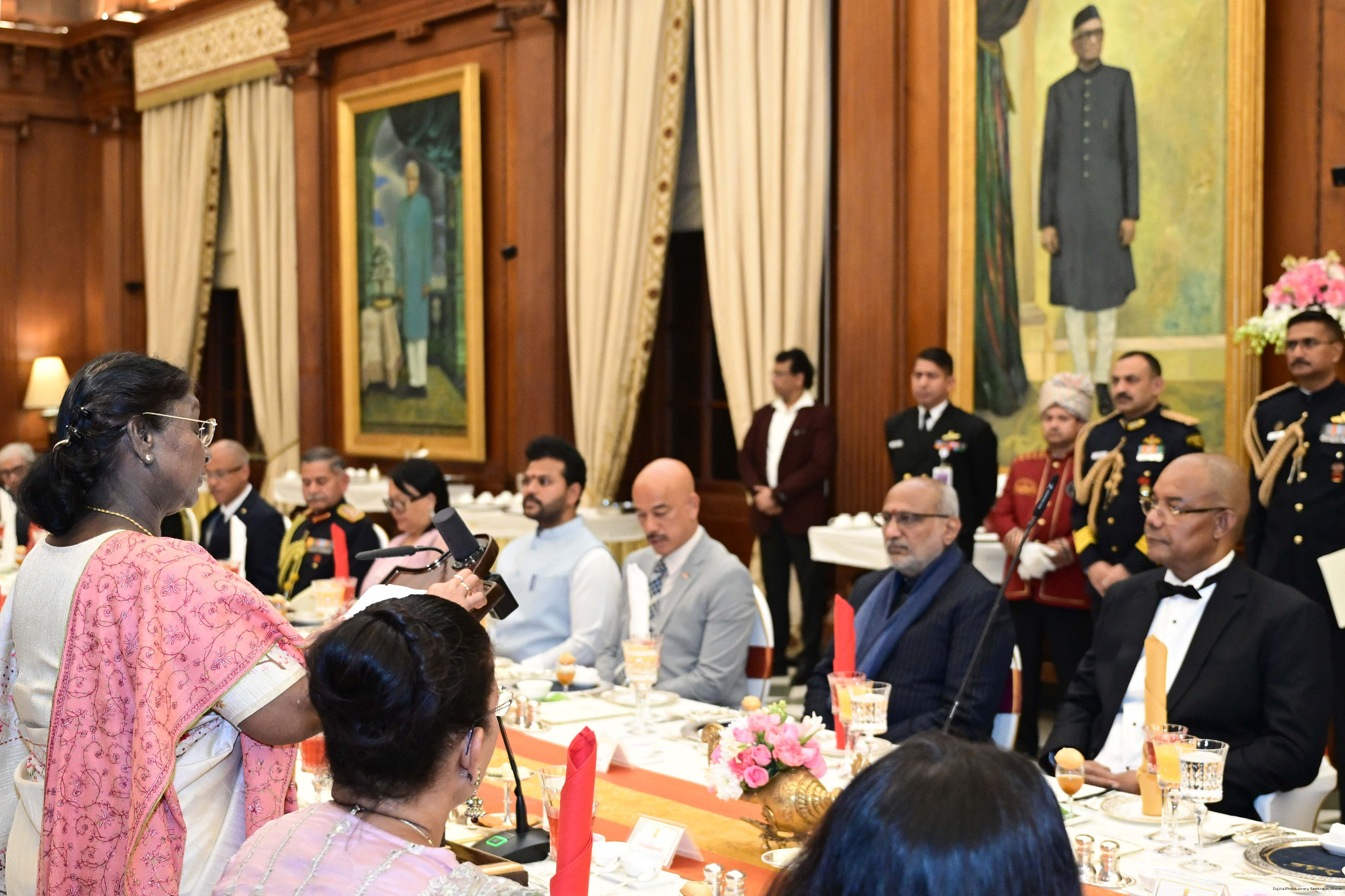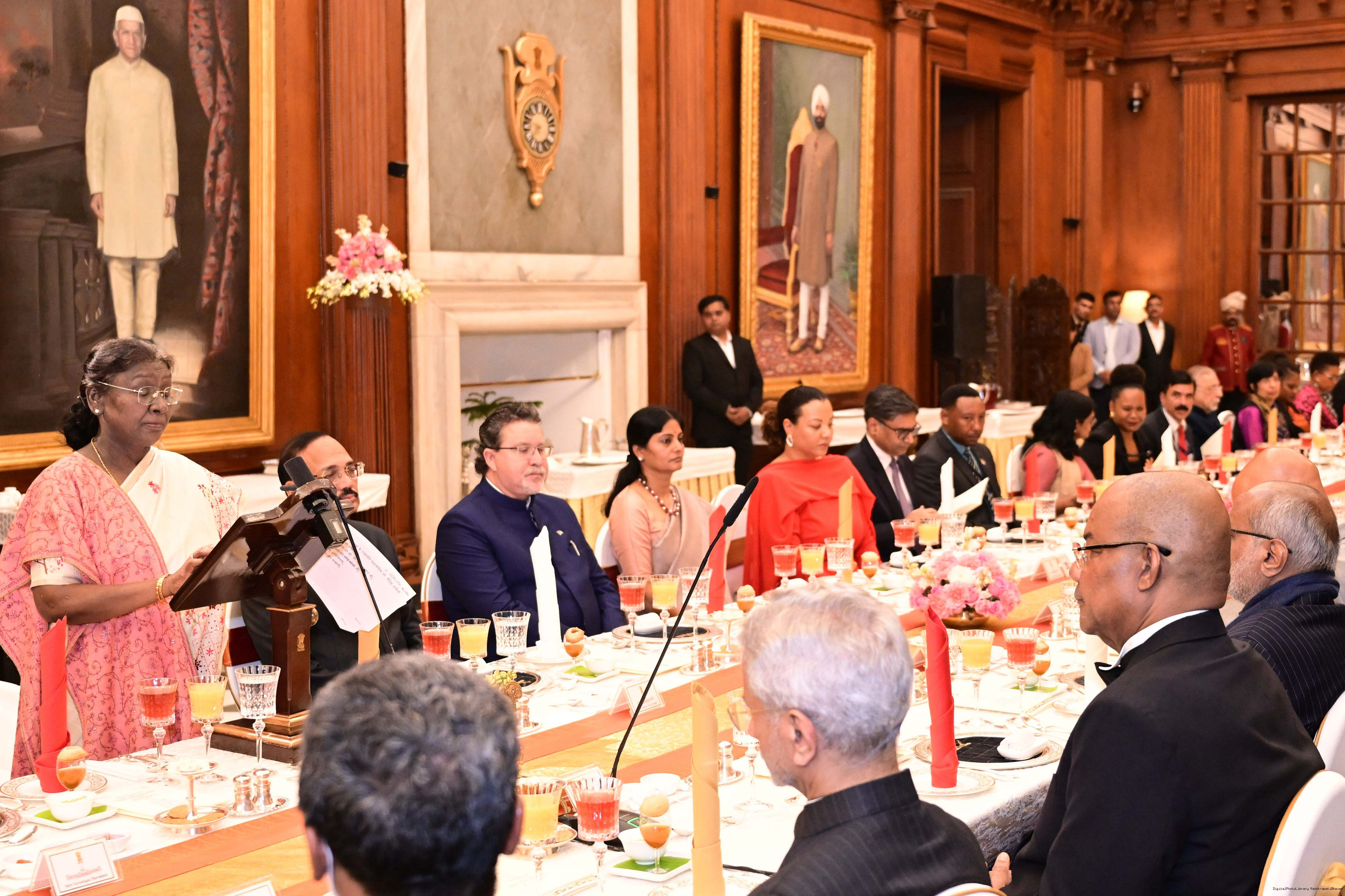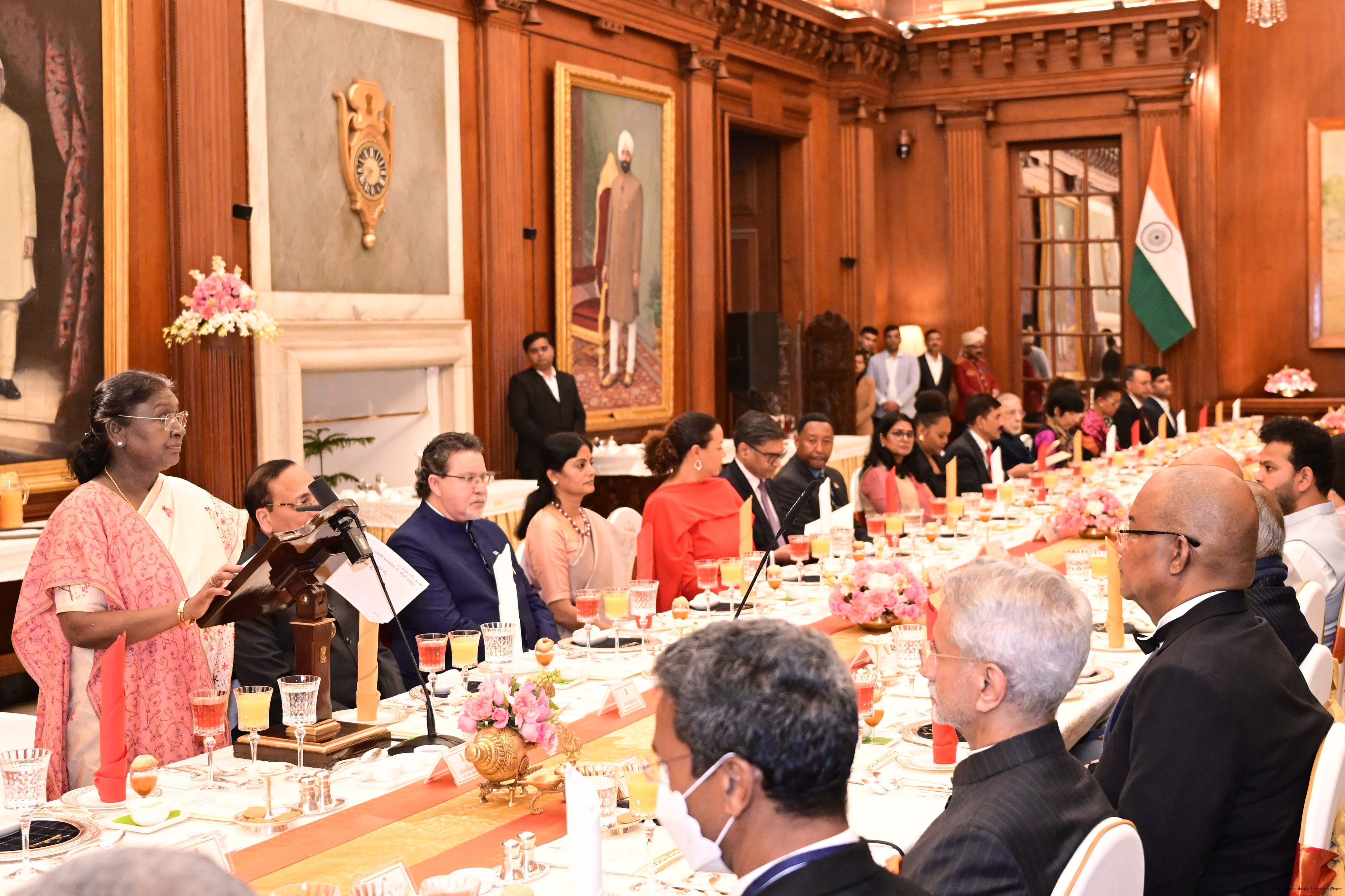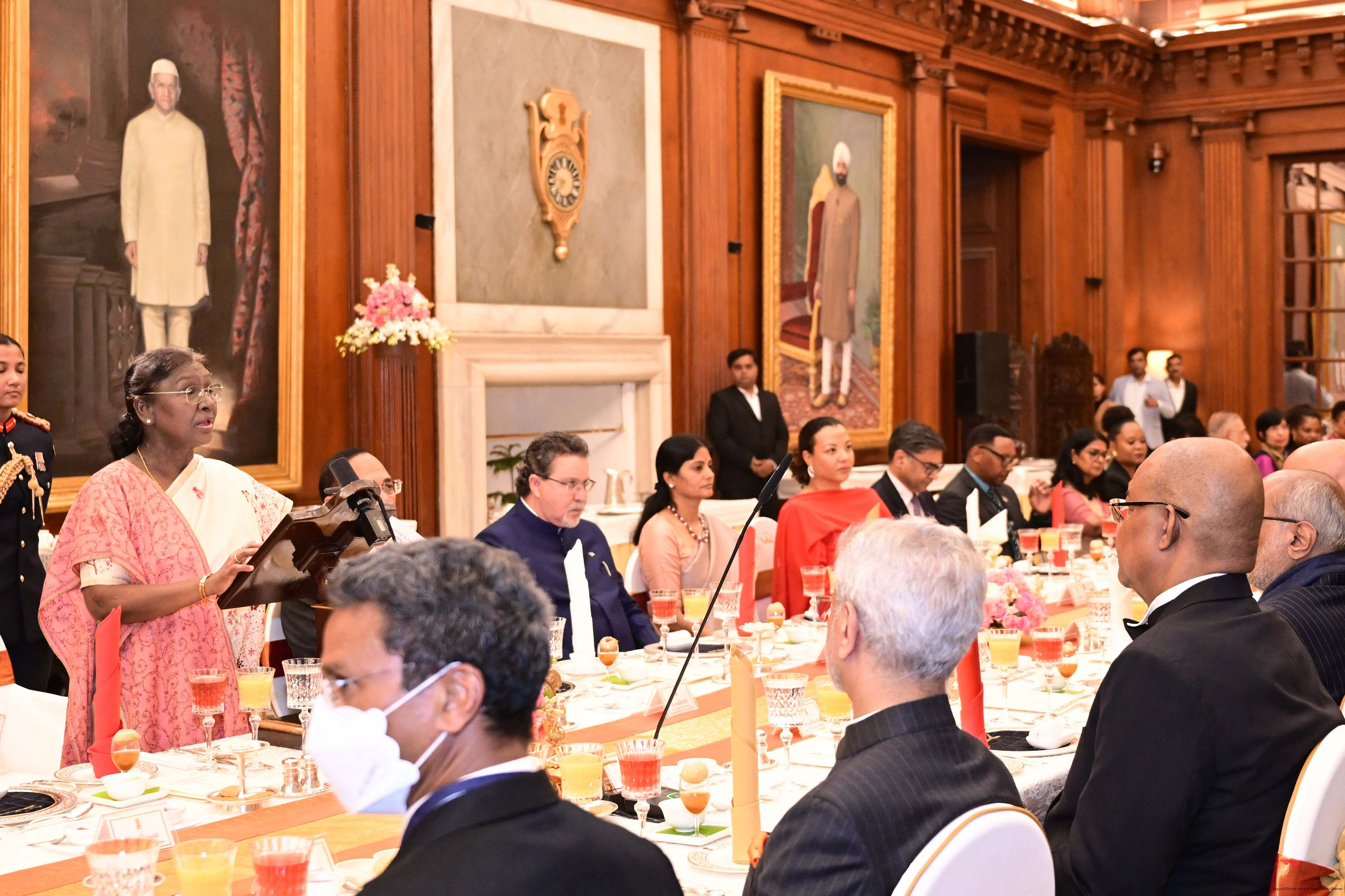 | Caption: | The President of India, Smt Droupadi Murmu hosted a banquet dinner in his honour the President of the Republic of Seychelles H.E. Dr Patrick Herminie at Rashtrapati Bhavan on February 9, 2026. |