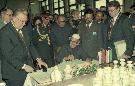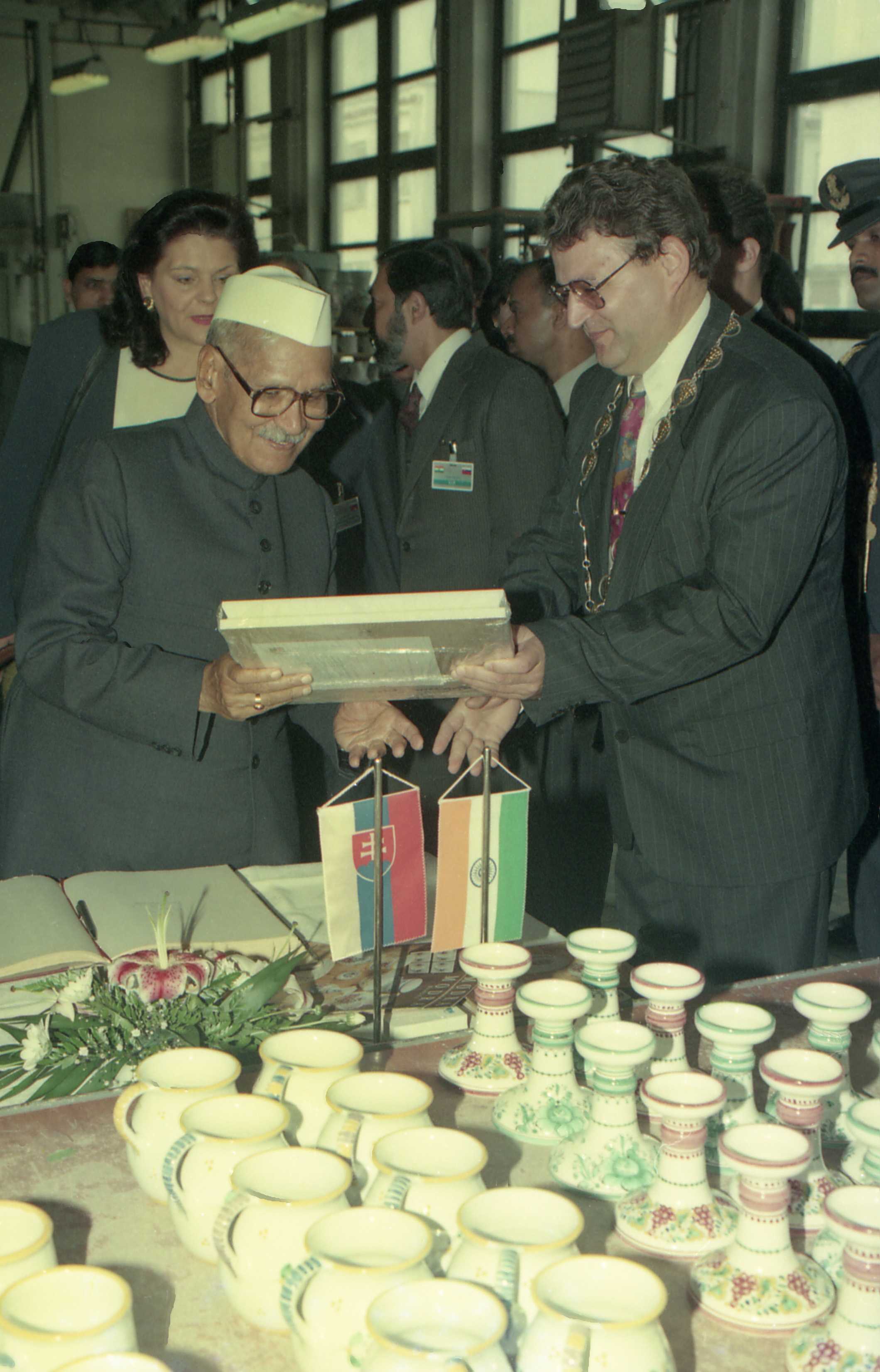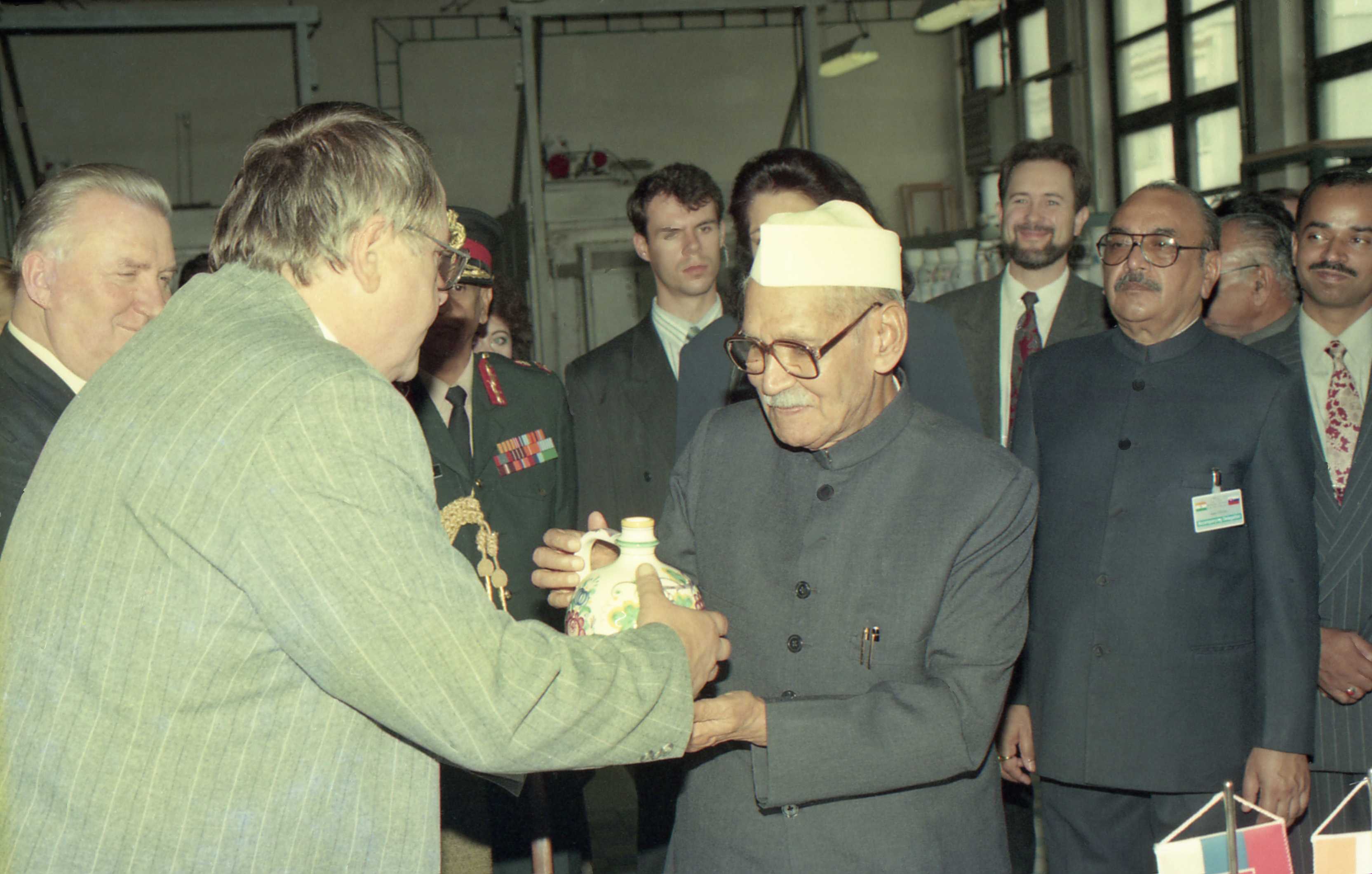 | Caption: | The President of India, Dr. Shankar Dayal Sharma visiting Slovenska Ludova Majolika Porcelain Factory, at Modra, in Slovakia on October 10, 1996. |