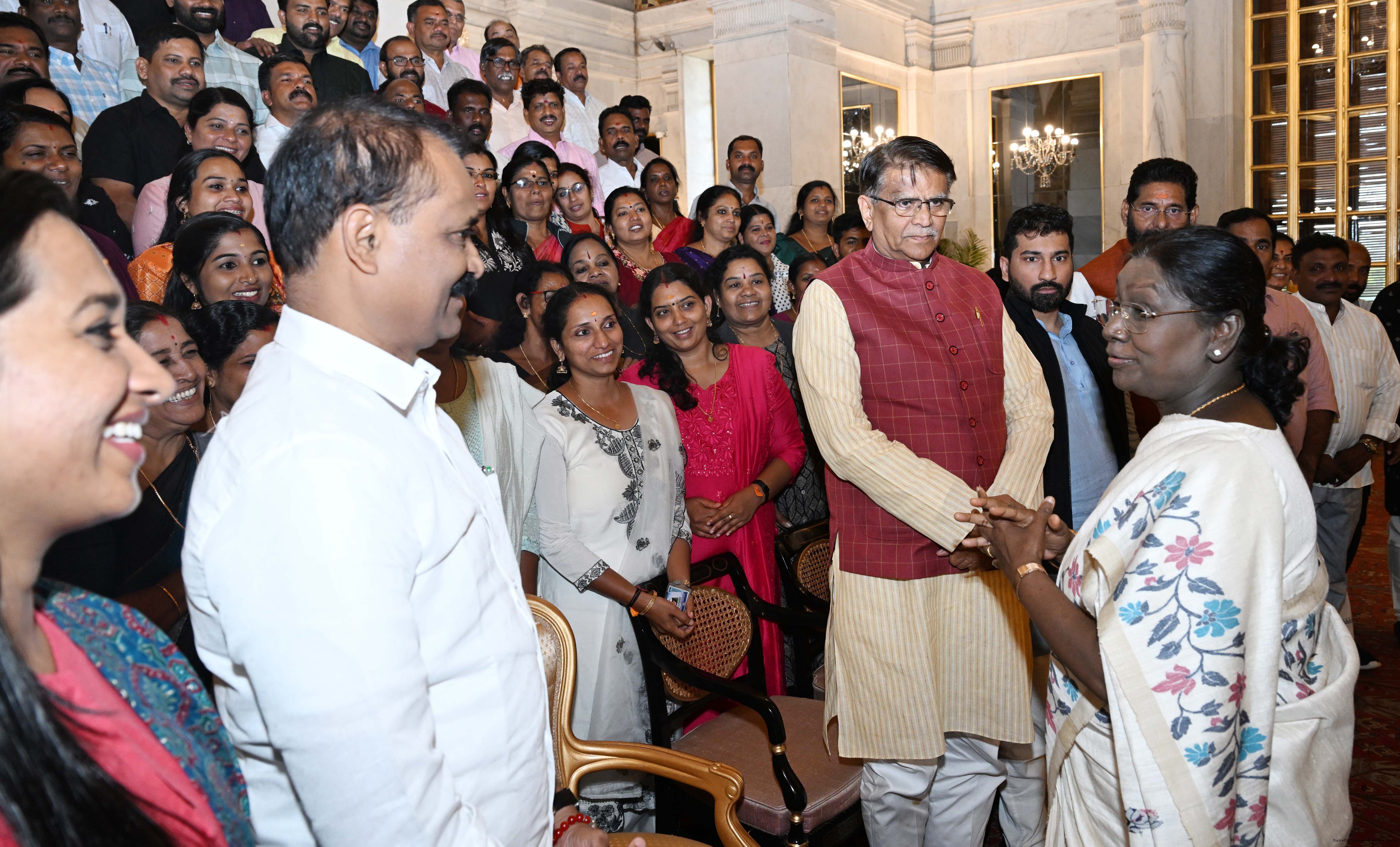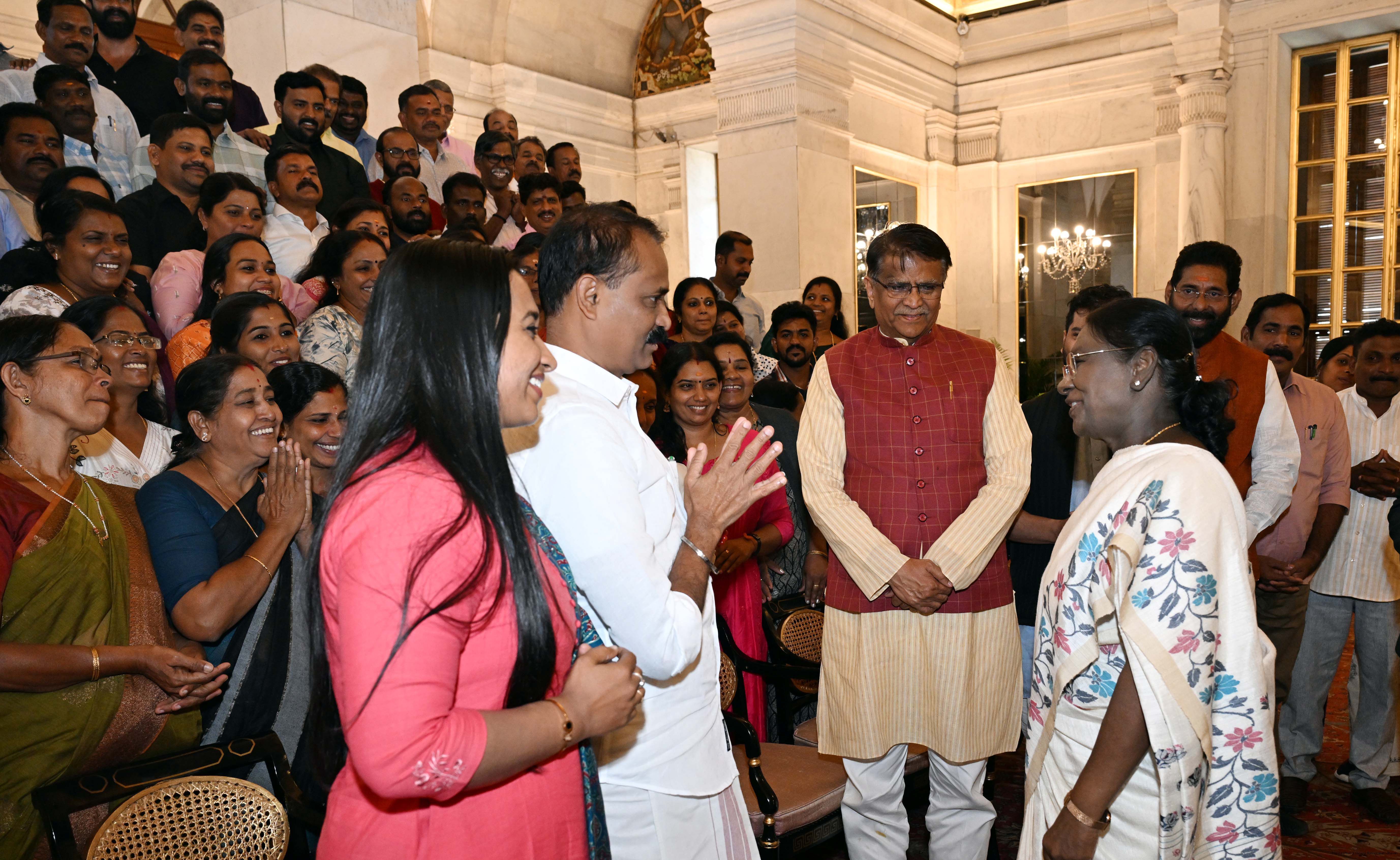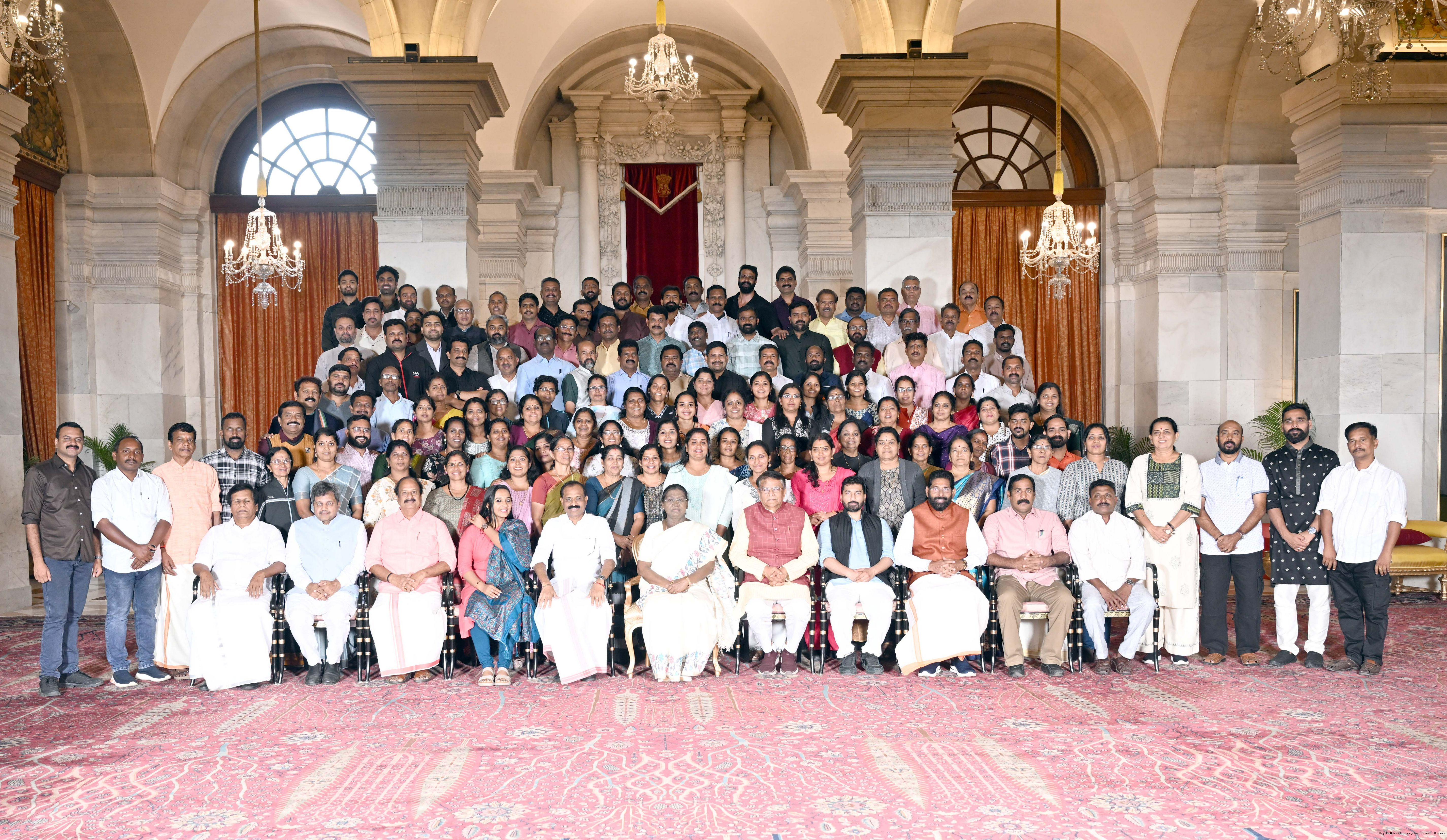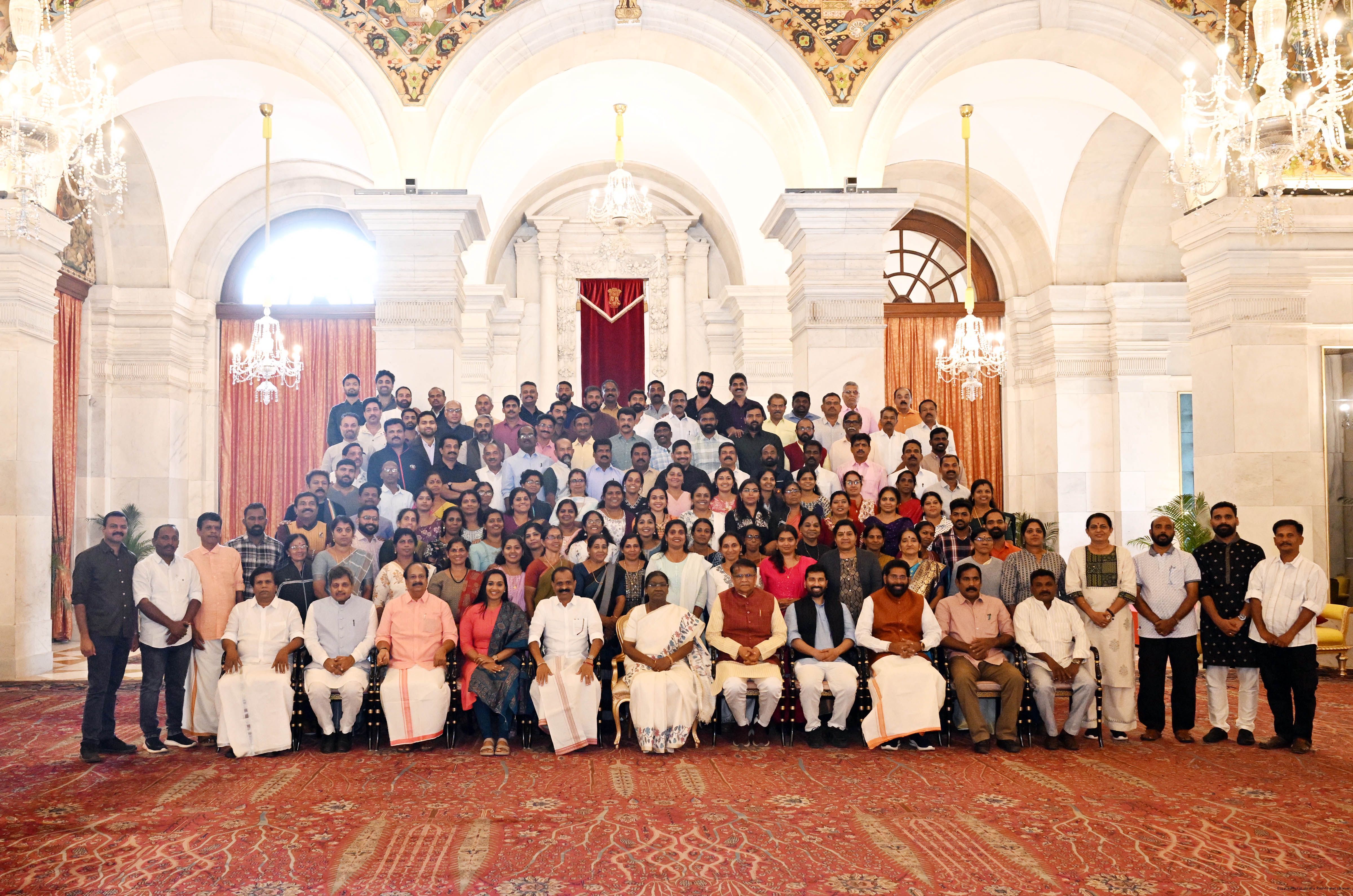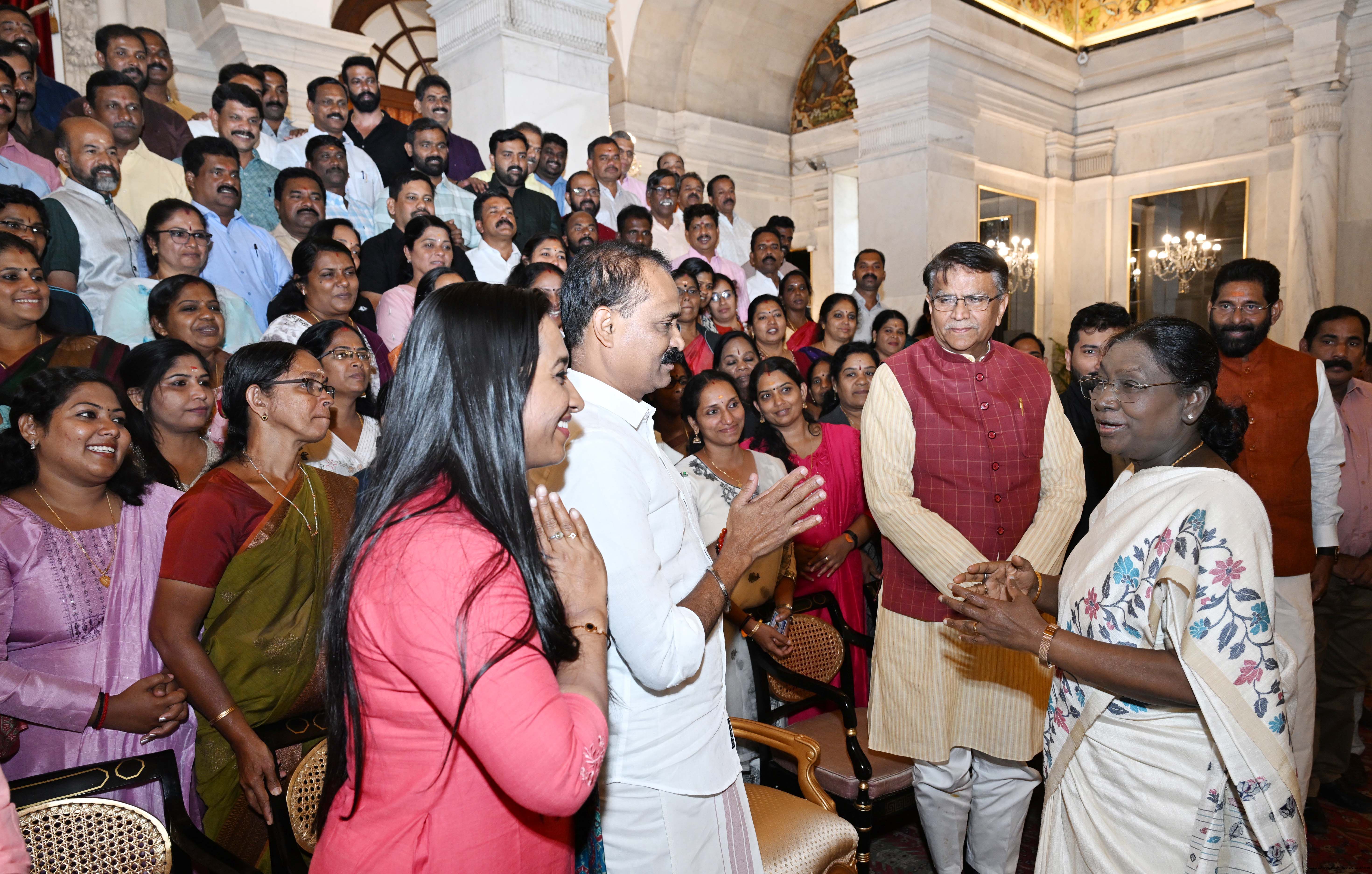 | Caption: | A group of representatives of Local Self Government institutions from Kerala called on the President of India, Smt Droupadi Murmu at Rashtrapati Bhavan on February 13, 2026. |