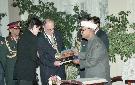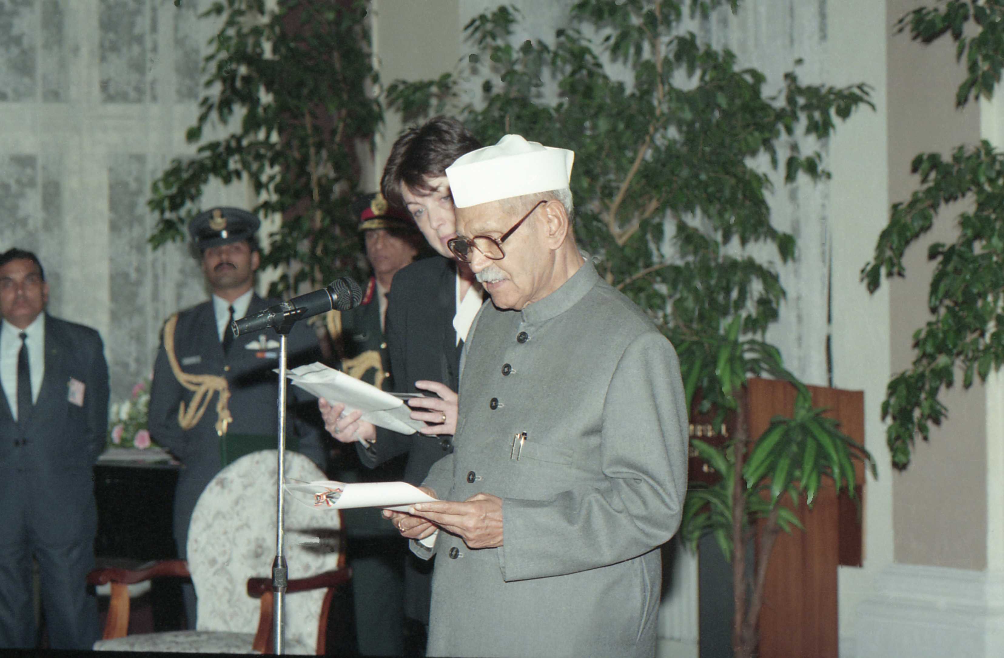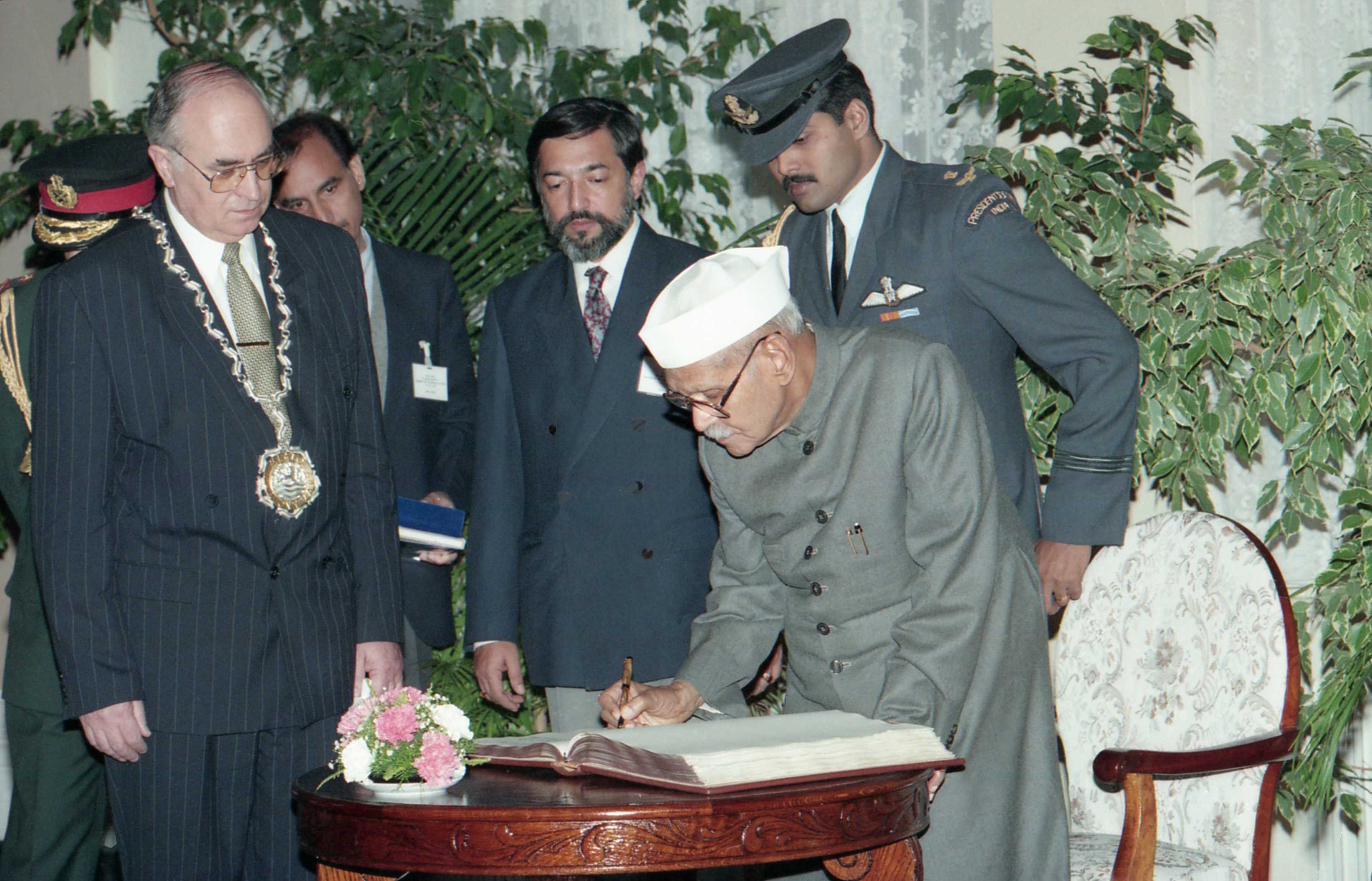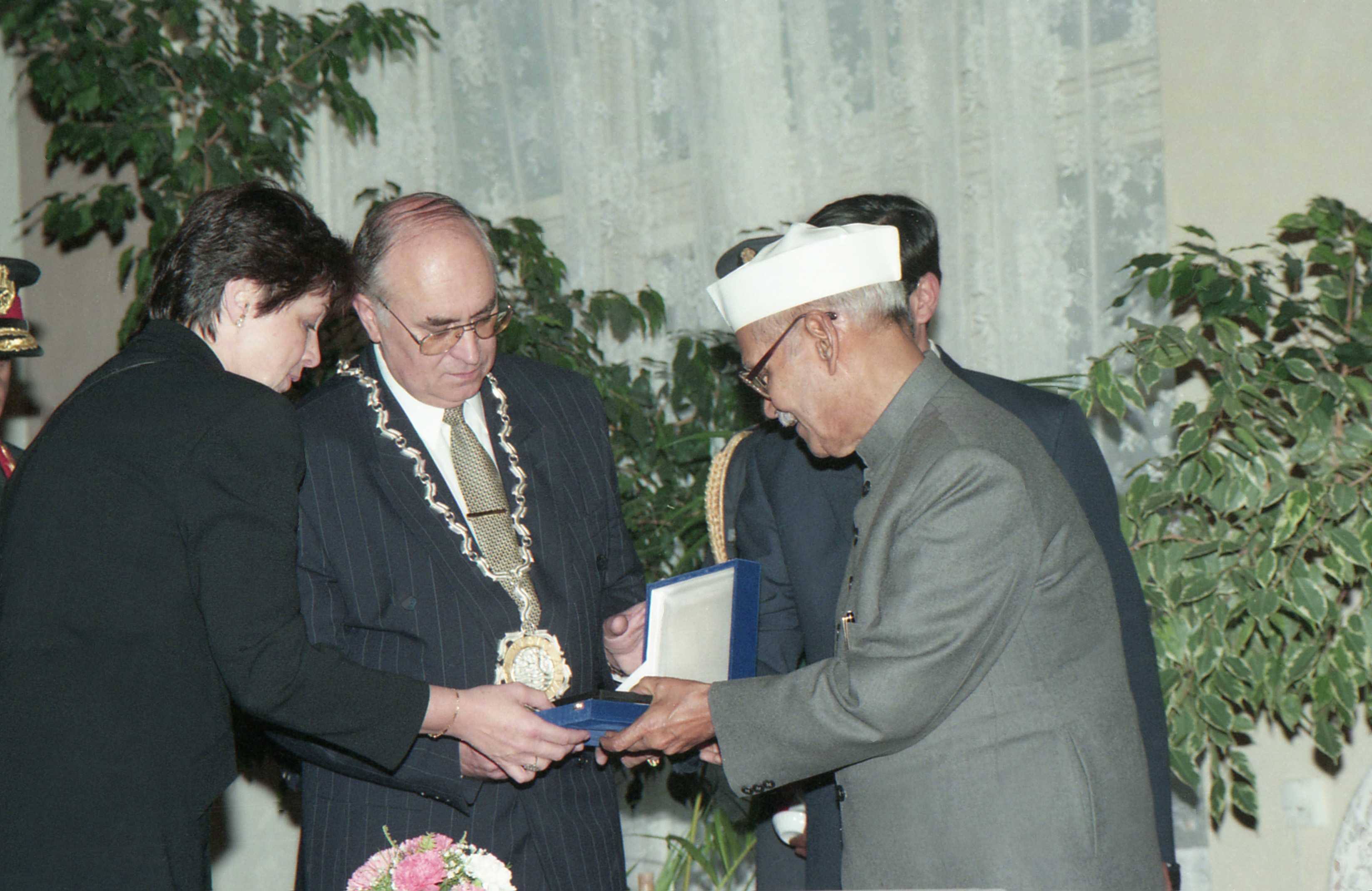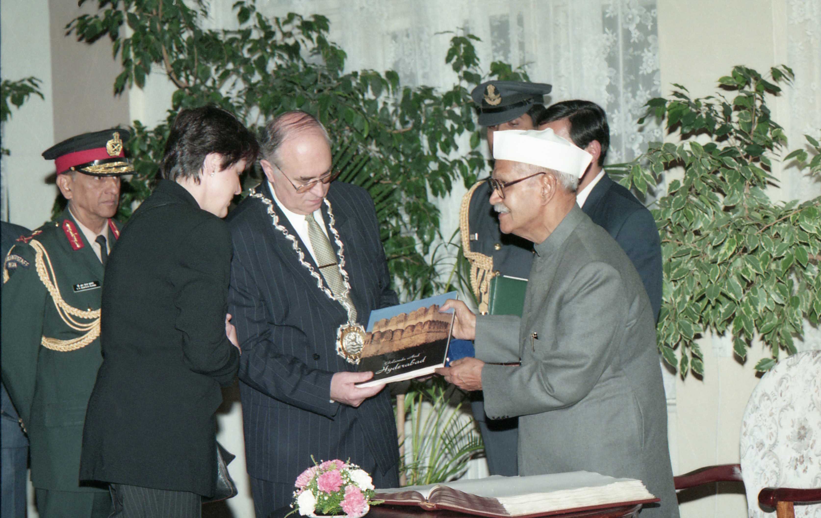 | Caption: | The President of India, Dr. Shankar Dayal Sharma signing the Golden Book of Karlovy Vary during his meeting with the Lord Mayor of Karlovy Vary, in Czech on October 12, 1996. |