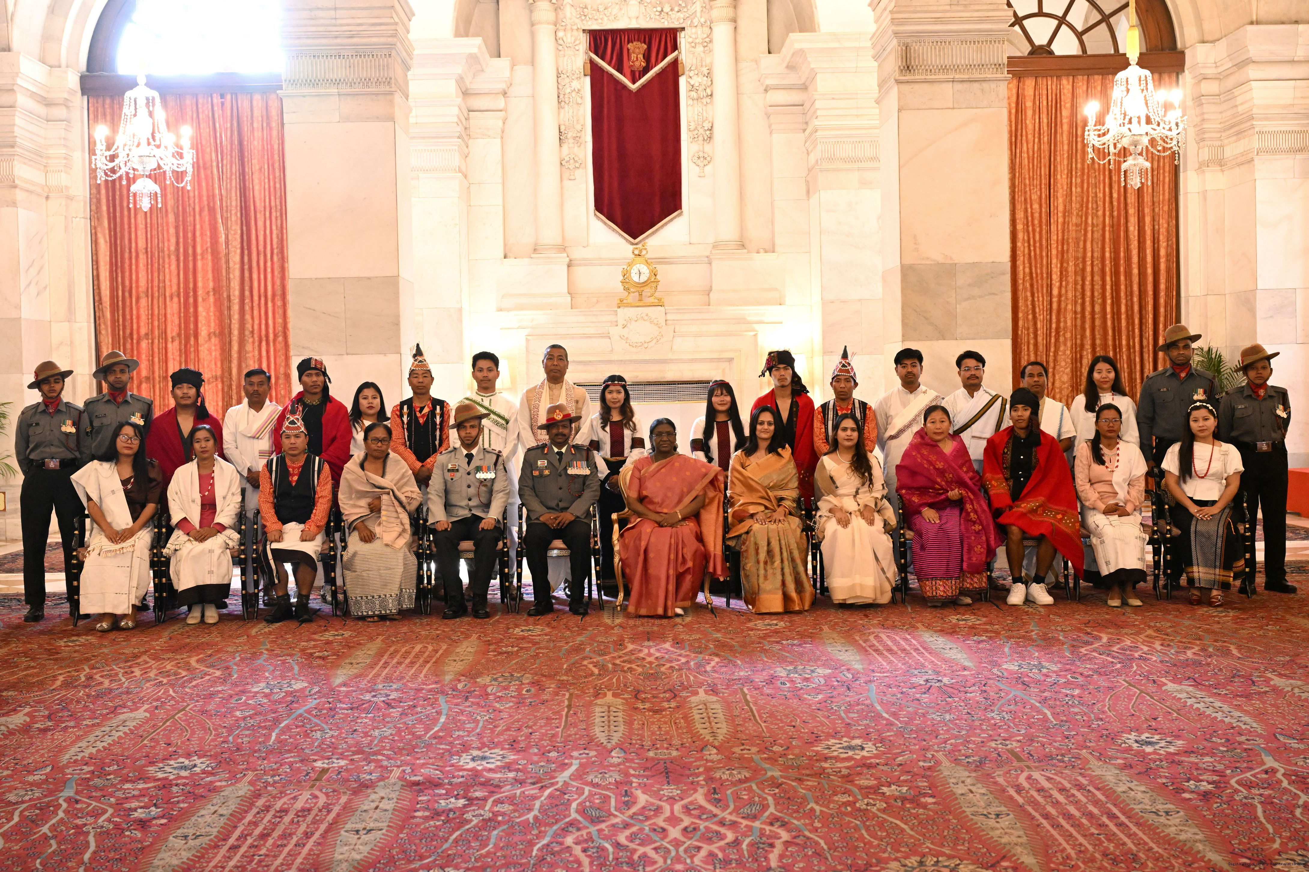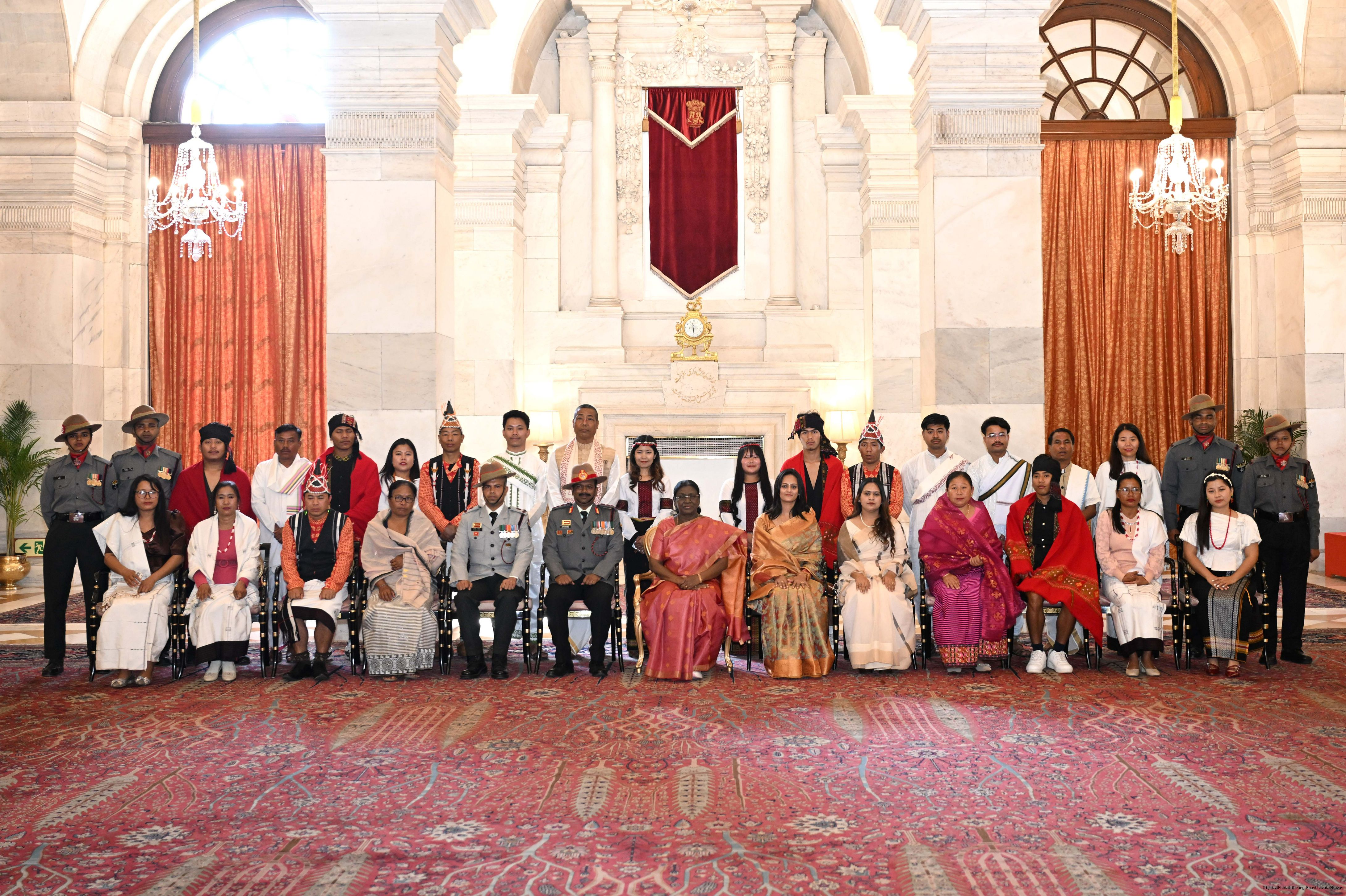 | Caption: | Members of Civil Society Organisations from Chandel and Tengnoupal districts of Manipur called on the President of India, Smt Droupadi Murmu at Rashtrapati Bhavan on February 16, 2026. They visited Rashtrapati Bhavan as part of the National Integration Tour (NIT). |