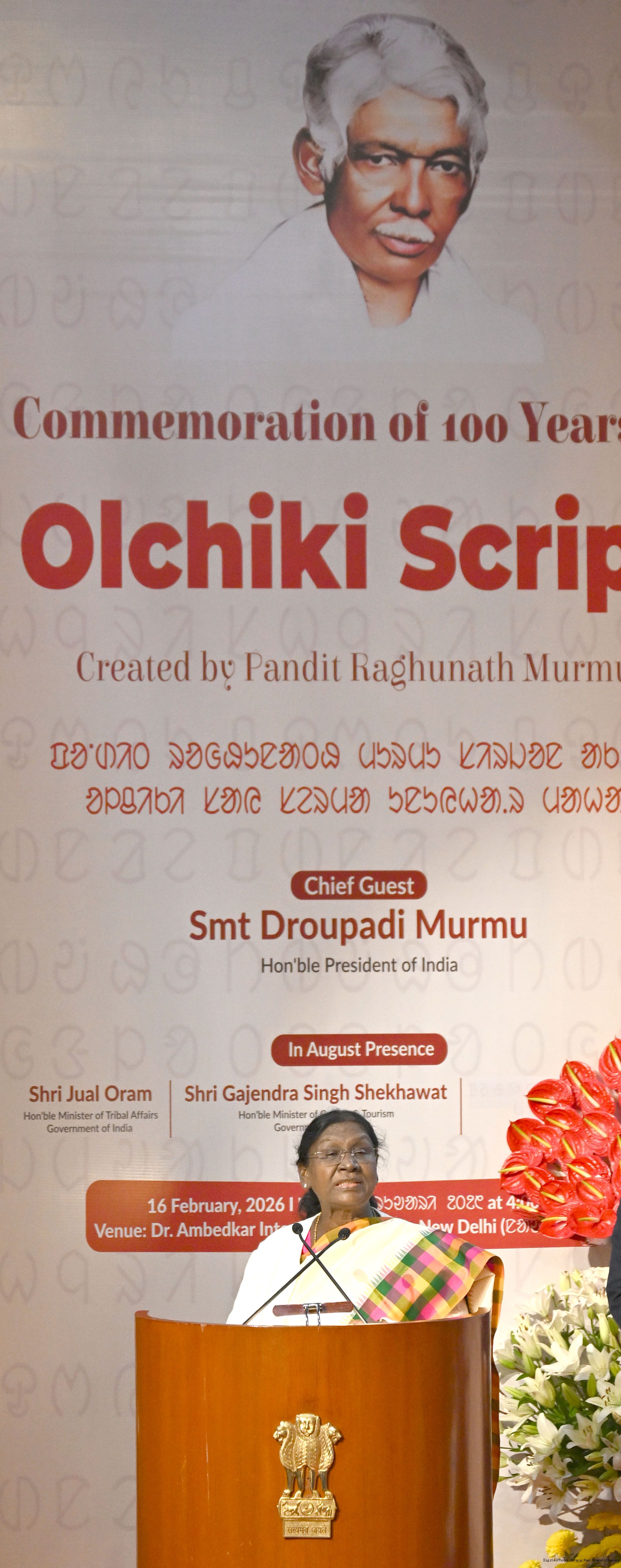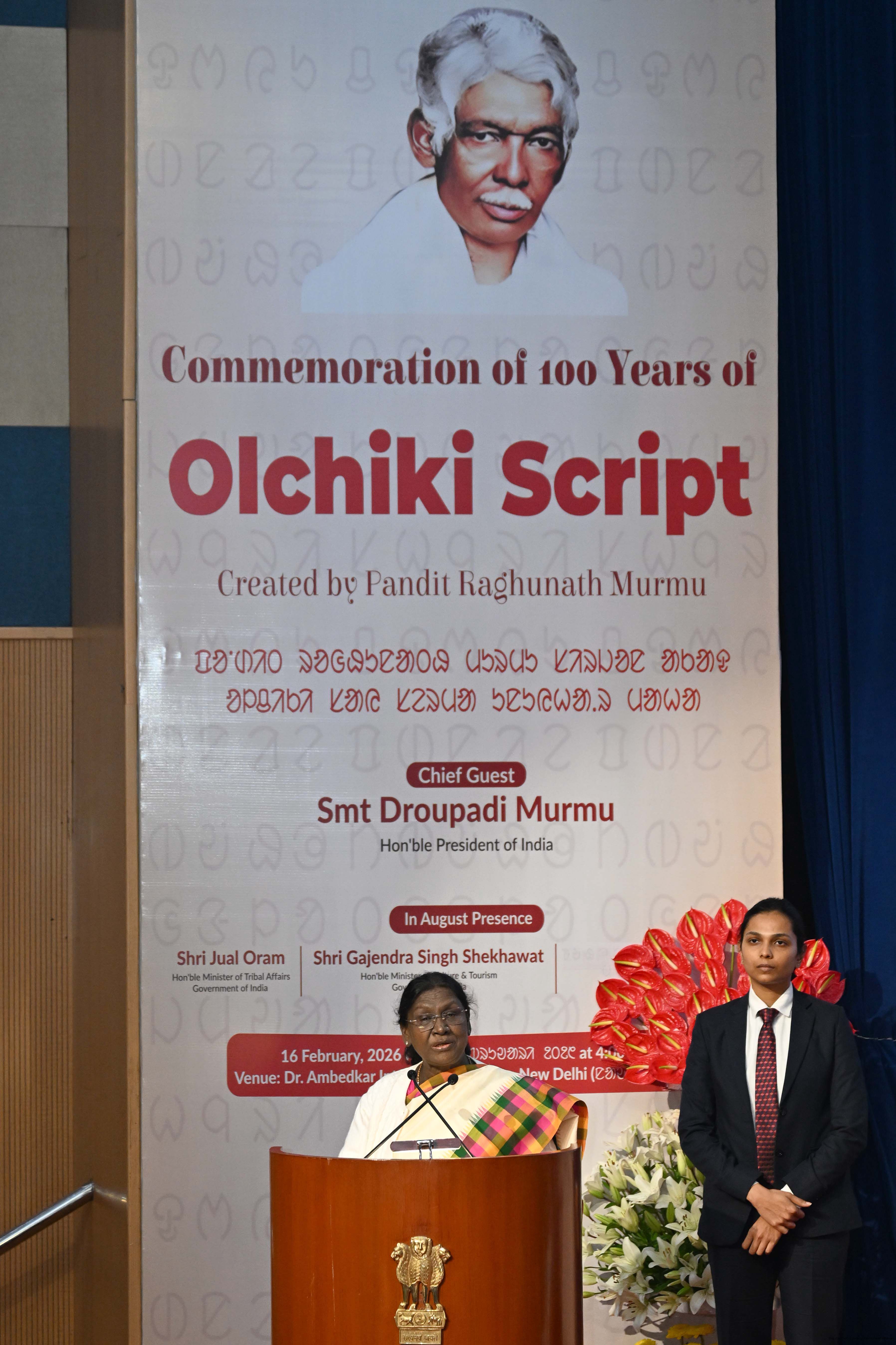 | Caption: | The President of India Smt Droupadi Murmu inaugurated the Centenary Celebration of the Ol Chiki , being organised by the Ministry of Culture in New Delhi on February 16, 2026. |