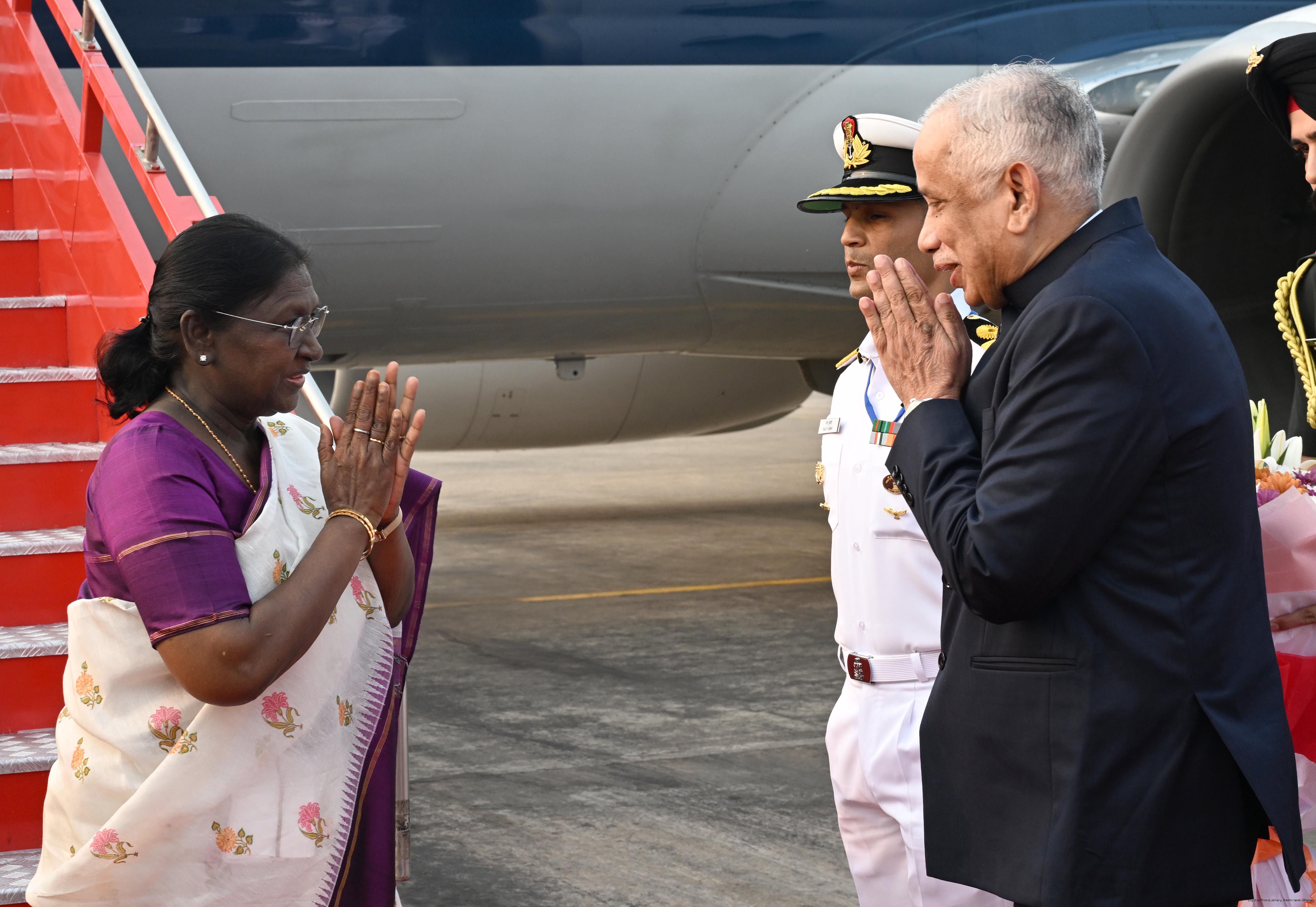 | Caption: | The Governor of Andhra Pradesh, Shri S. Abdul Nazeer and Deputy Chief Minister Shri K. Pawan Kalyan received the President of India, Smt Droupadi Murmu on her arrival at Visakhapatnam on February 17, 2026. |